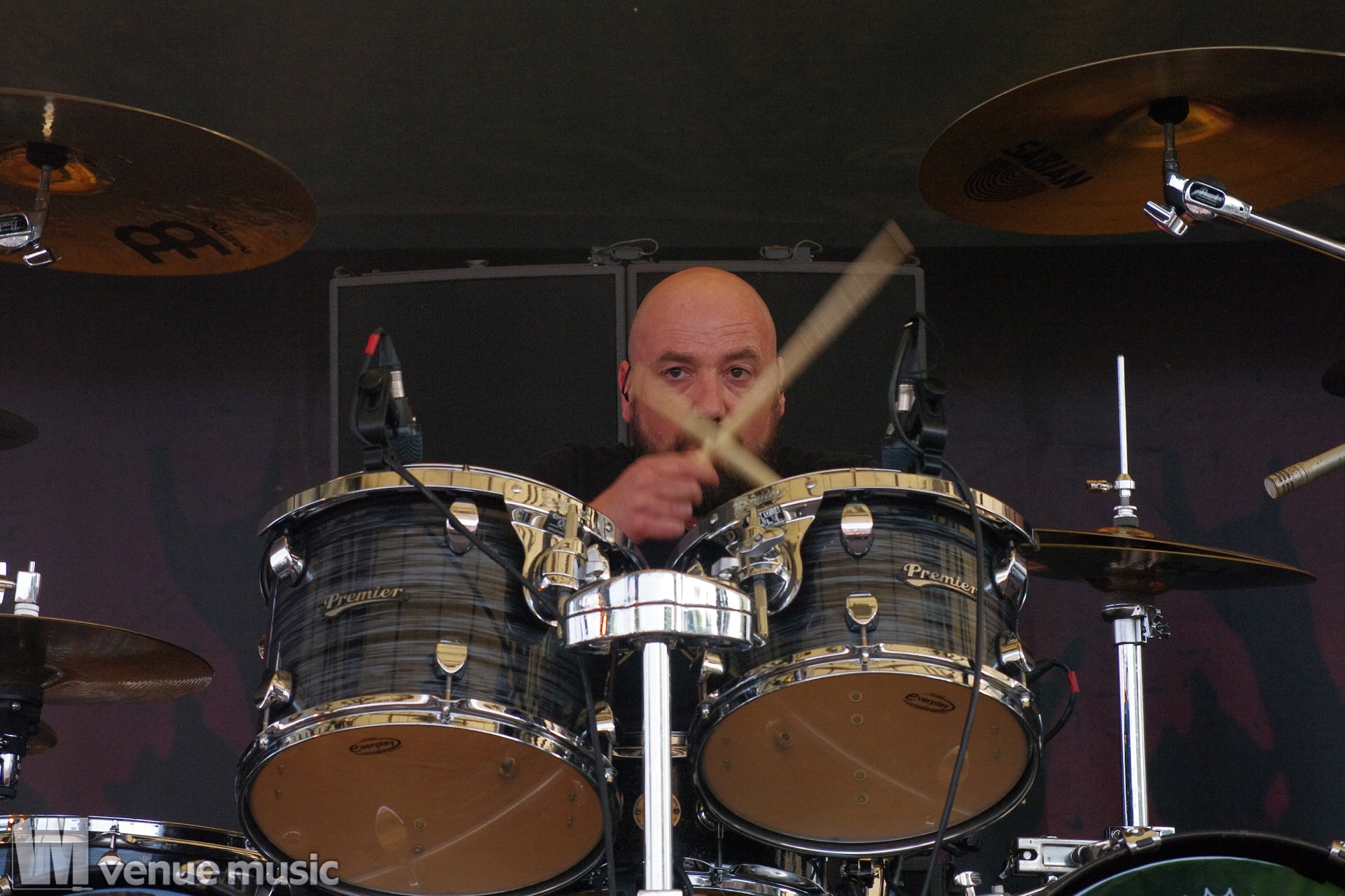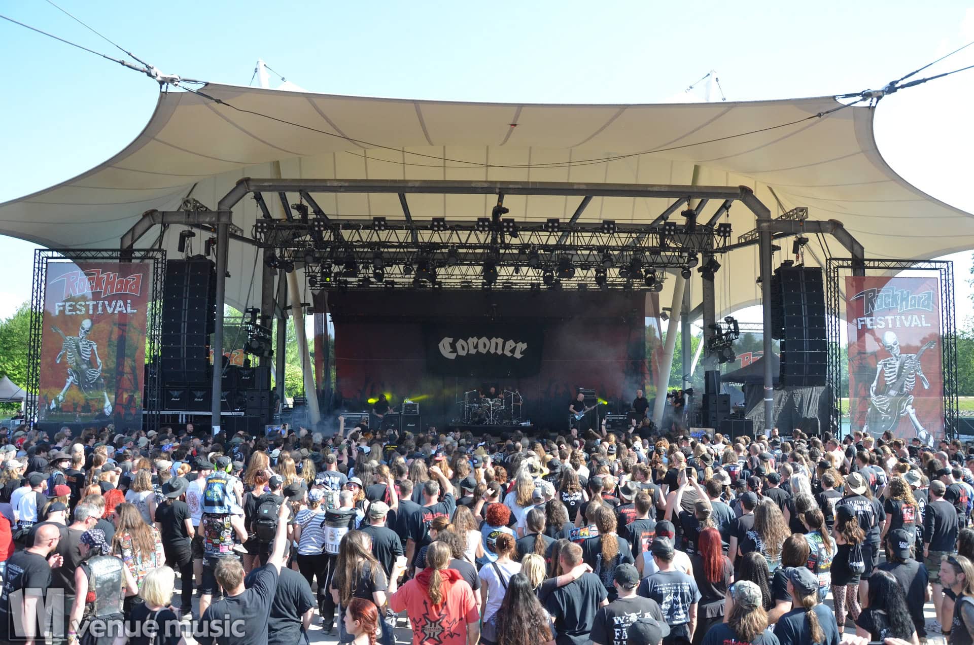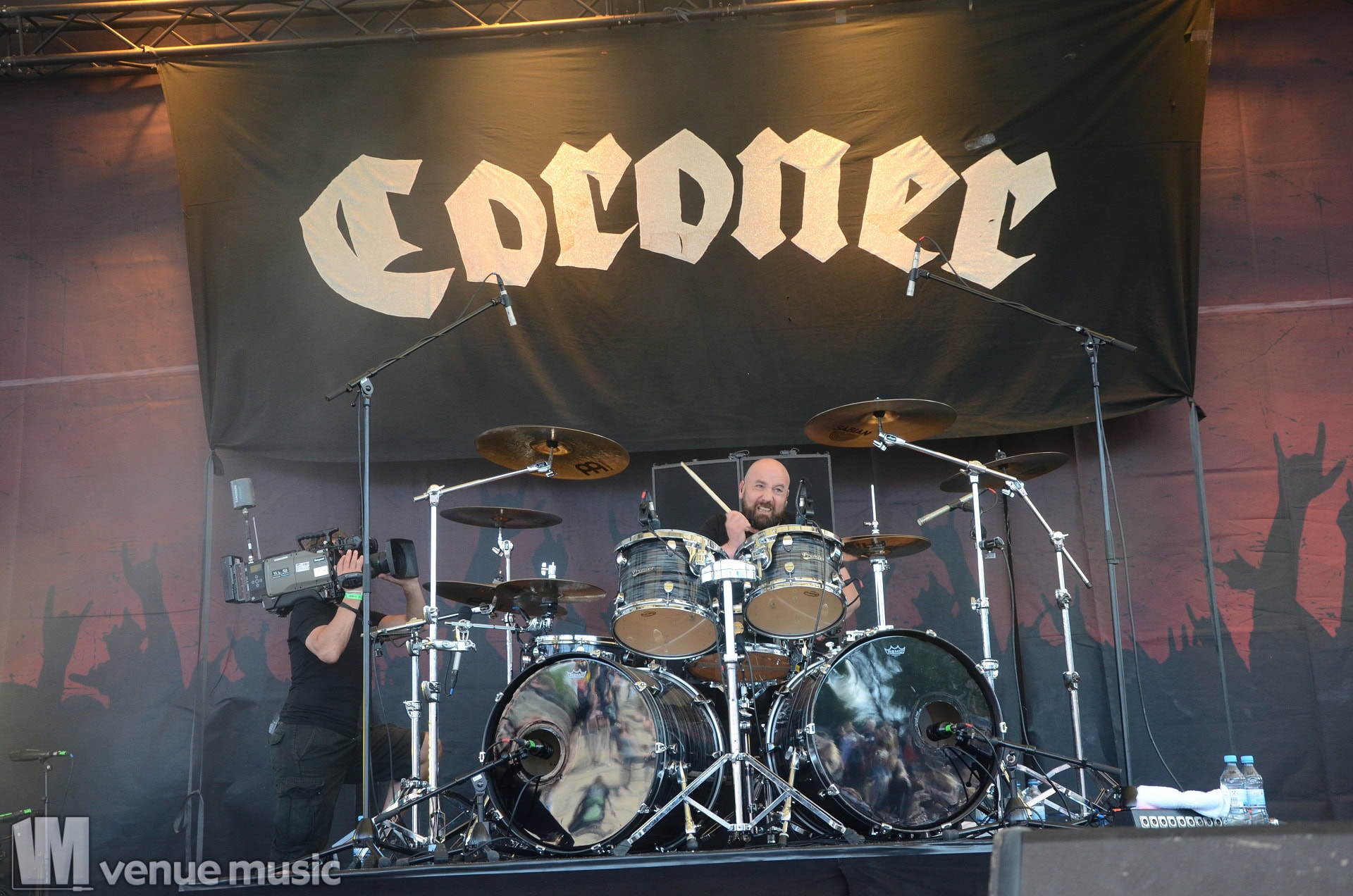 Das neuste Album von Coroner ist immerhin 25 Jahre alt, denn die Band hatte sich in den 90ern eigentlich aufgelöst um nun seit einigen Jahren wieder ein paar Shows zusammen zu spielen. Sie bedachten jedes ihrer 5 Werke mit mind. einem Song in der Setlist. Eine aufwändige Bühnenshow lieferten die Schweizer zwar nicht ab, aber rockten dennoch richtig los. Vor allem Drummer Marky Edelmann gab alles und hängte sich so richtig rein. Ein großartiges Moshpit oder viele Crowdsurfer waren nicht zu verzeichnen, doch das Amphitheater war gut gefüllt.