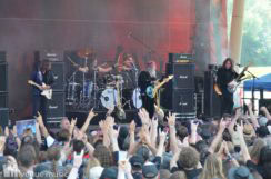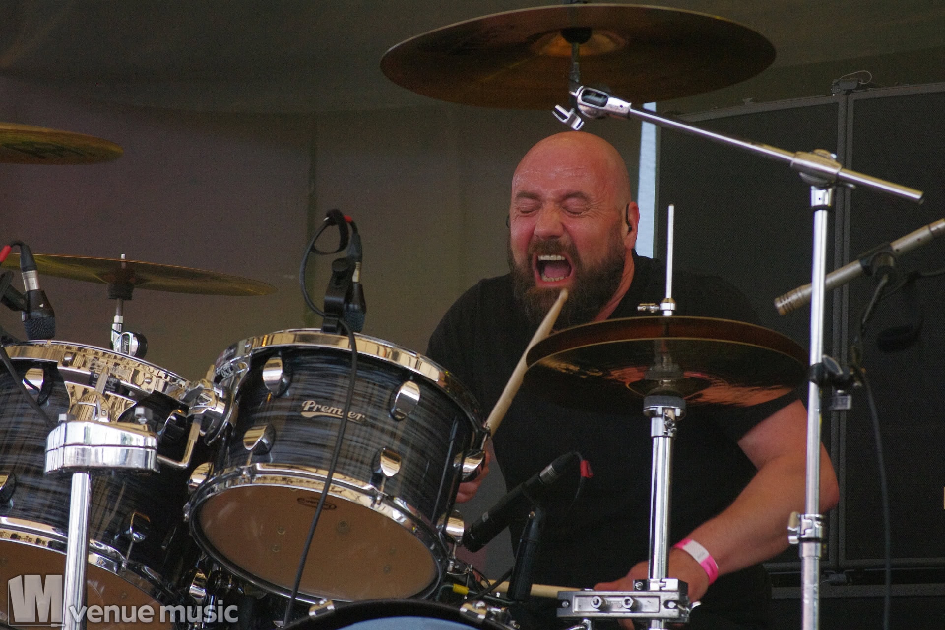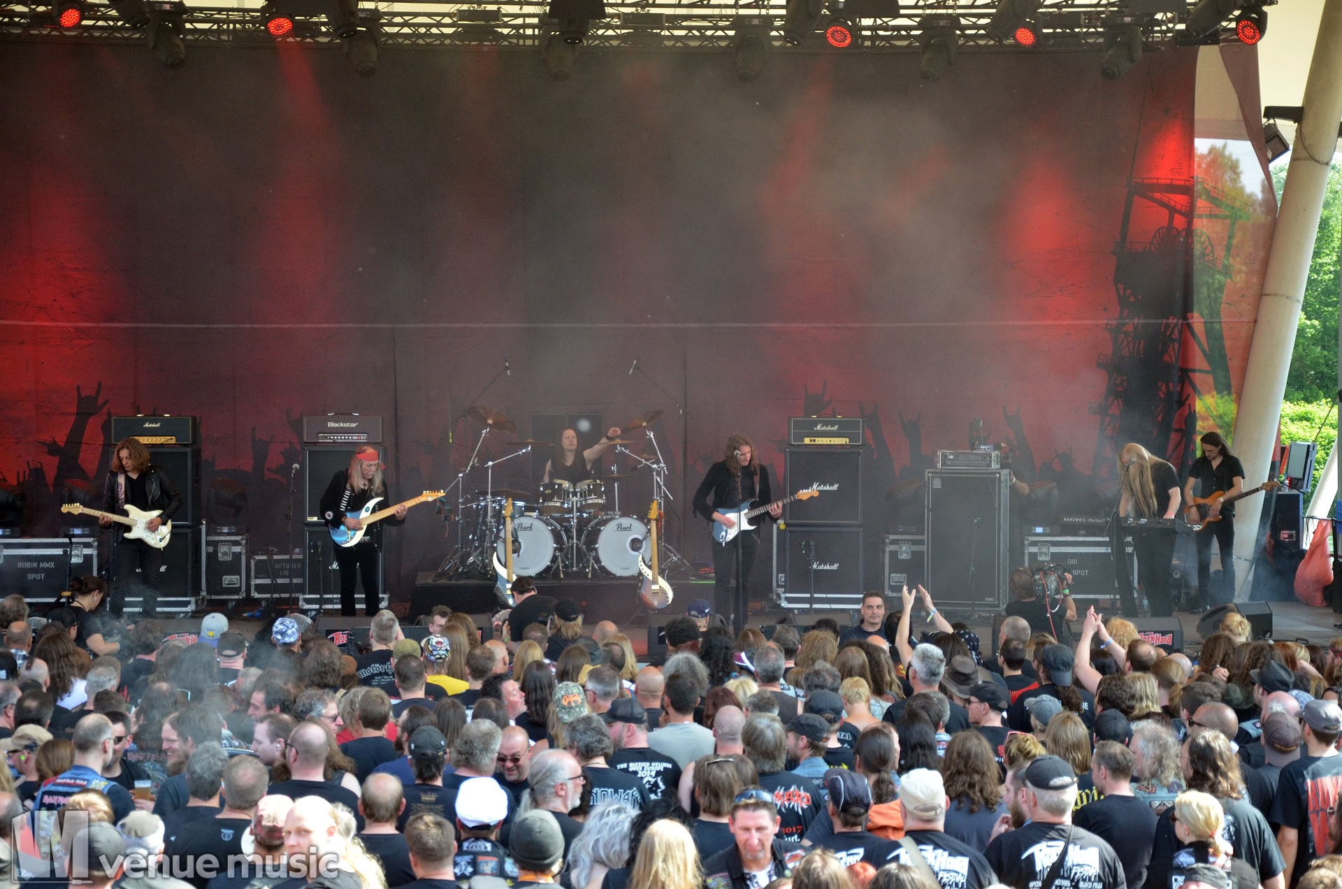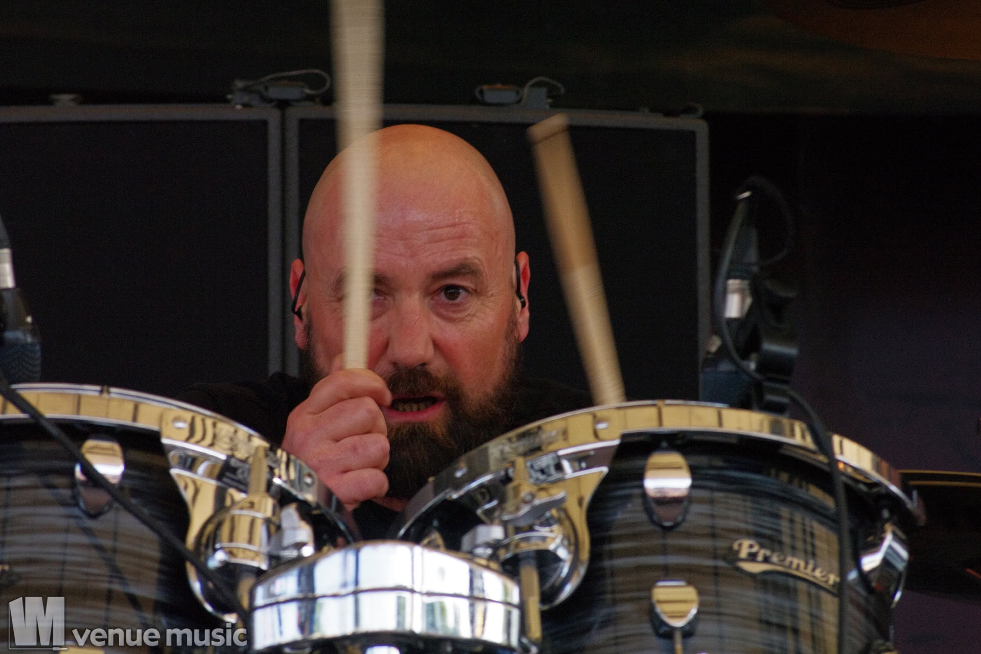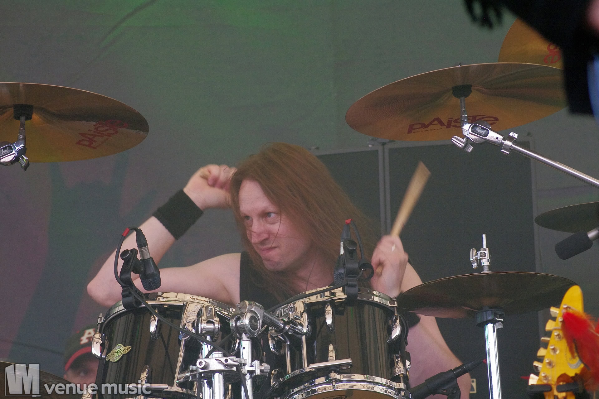 Das neuste Album von Coroner ist immerhin 25 Jahre alt, denn die Band hatte sich in den 90ern eigentlich aufgelöst um nun seit einigen Jahren wieder ein paar Shows zusammen zu spielen. Sie bedachten jedes ihrer 5 Werke mit mind. einem Song in der Setlist. Eine aufwändige Bühnenshow lieferten die Schweizer zwar nicht ab, aber rockten dennoch richtig los. Vor allem Drummer Marky Edelmann gab alles und hängte sich so richtig rein. Ein großartiges Moshpit oder viele Crowdsurfer waren nicht zu verzeichnen, doch das Amphitheater war gut gefüllt.