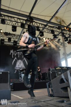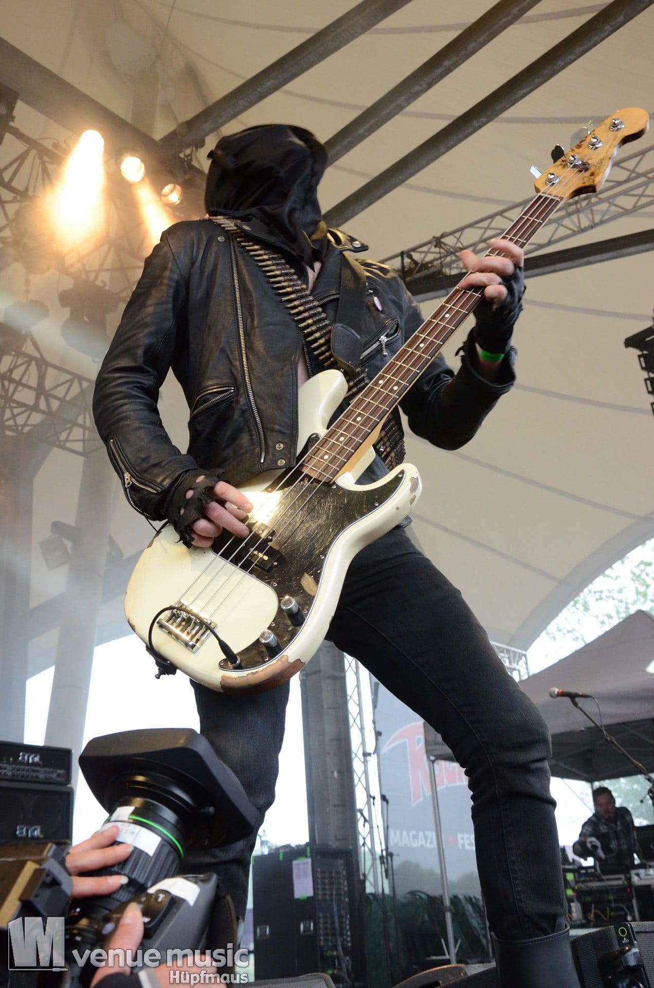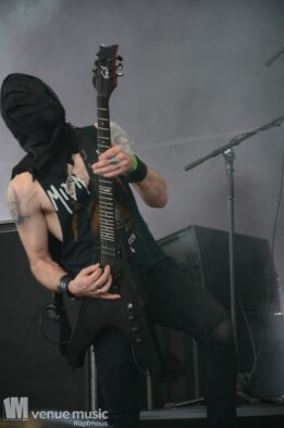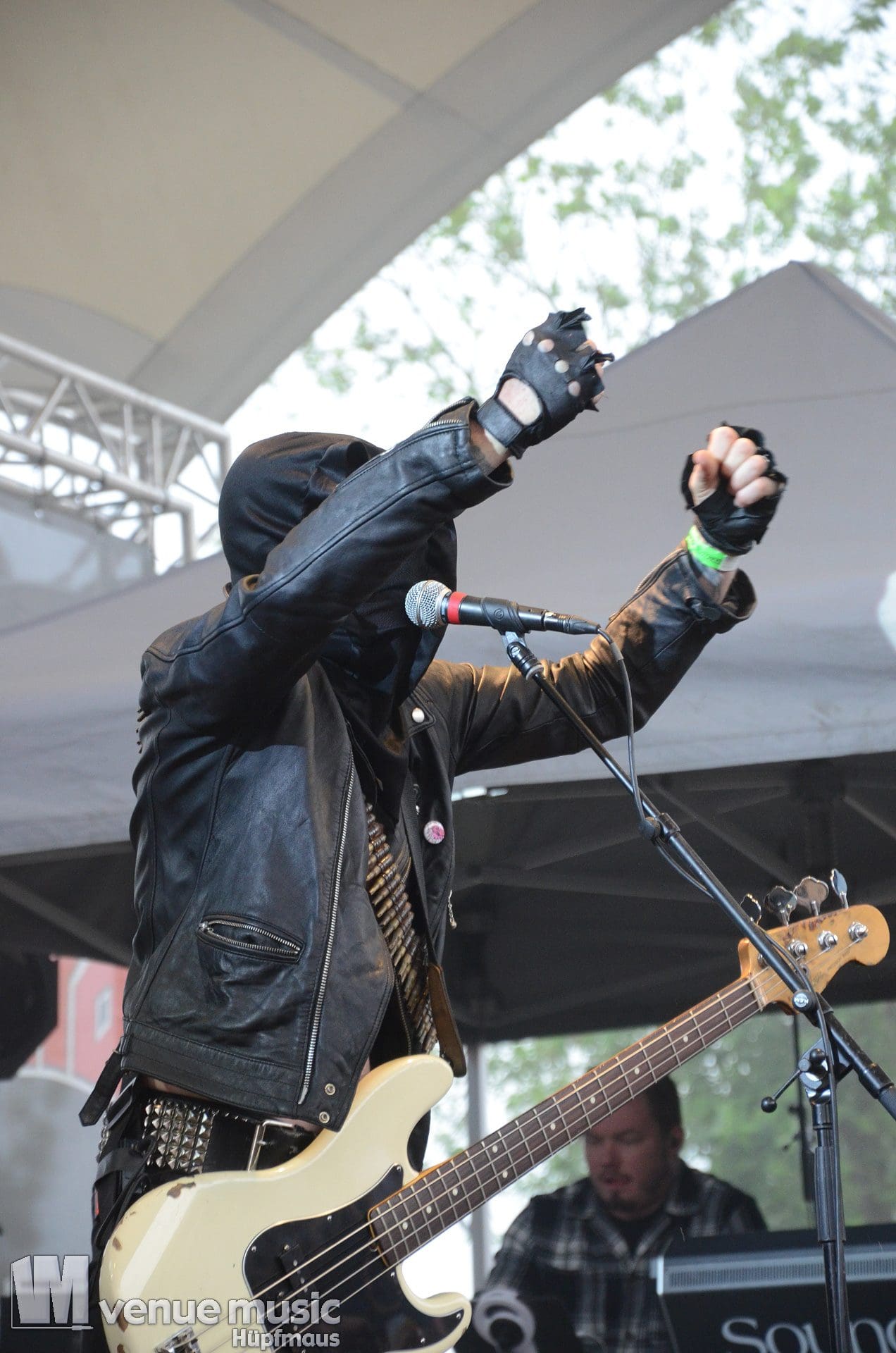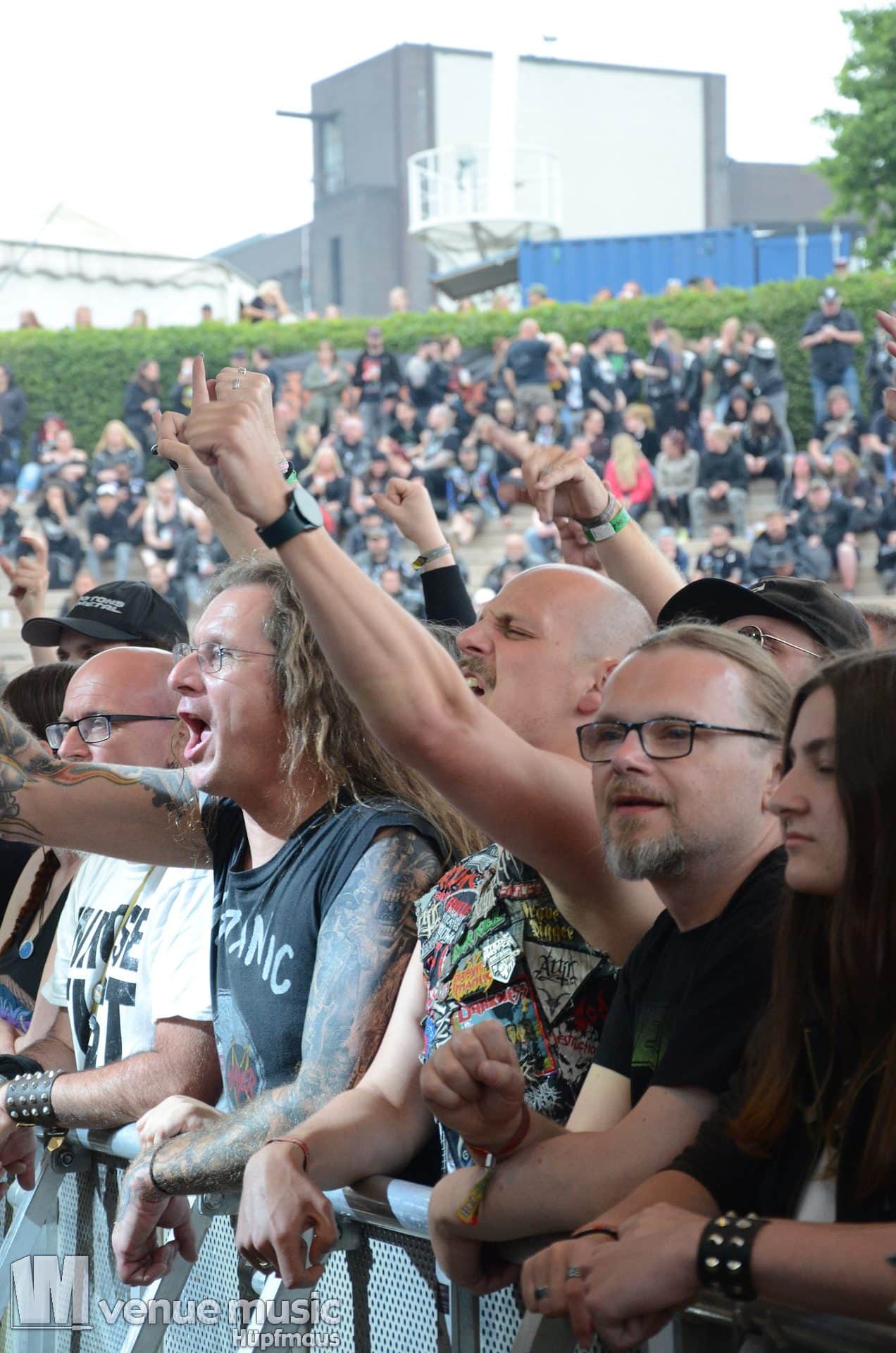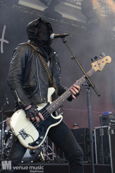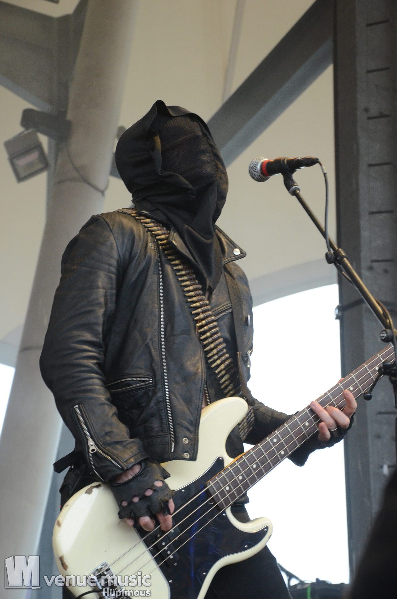 Midnight haben zwar nicht um Mitternacht gespielt, aber sich mittels ihrer Kapuzen in Dunkelheit begeben. Zumindest, was ihre Identität anging ;) Die drei Jungs aus Ohio hatten allerdings keine gute Karten beim Wettergott, denn der öffnete zeitweise mehr oder weniger stark seine Schleusen. Die Hardcore-Fans konnte das natürlich nicht schocken, also wurde weiter fleissig vor der Bühne mitgefeiert. Unter anderem von Teutonic Slaughter Sänger Philip in der ersten Reihe. Sonst auf der Bühne, heute mal davor ;) Auch nach ihrem Set war die Band noch zur Autogrammstunde inmitten ihrer Fans sehr lange anzutreffen.