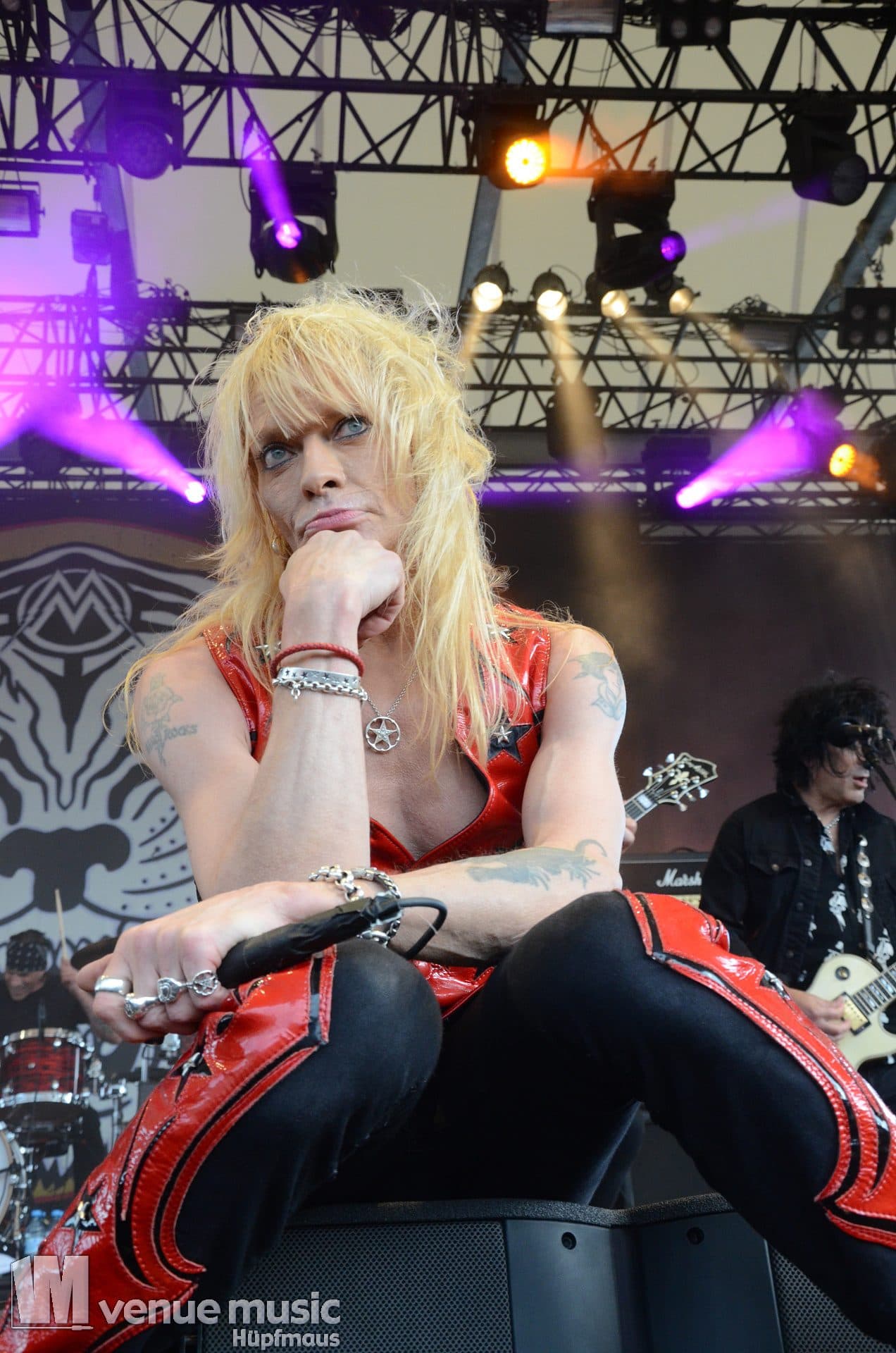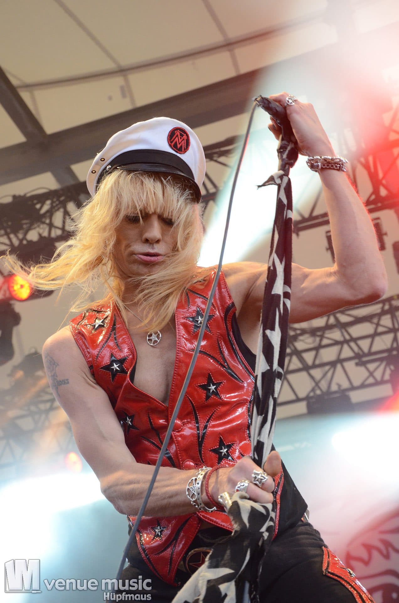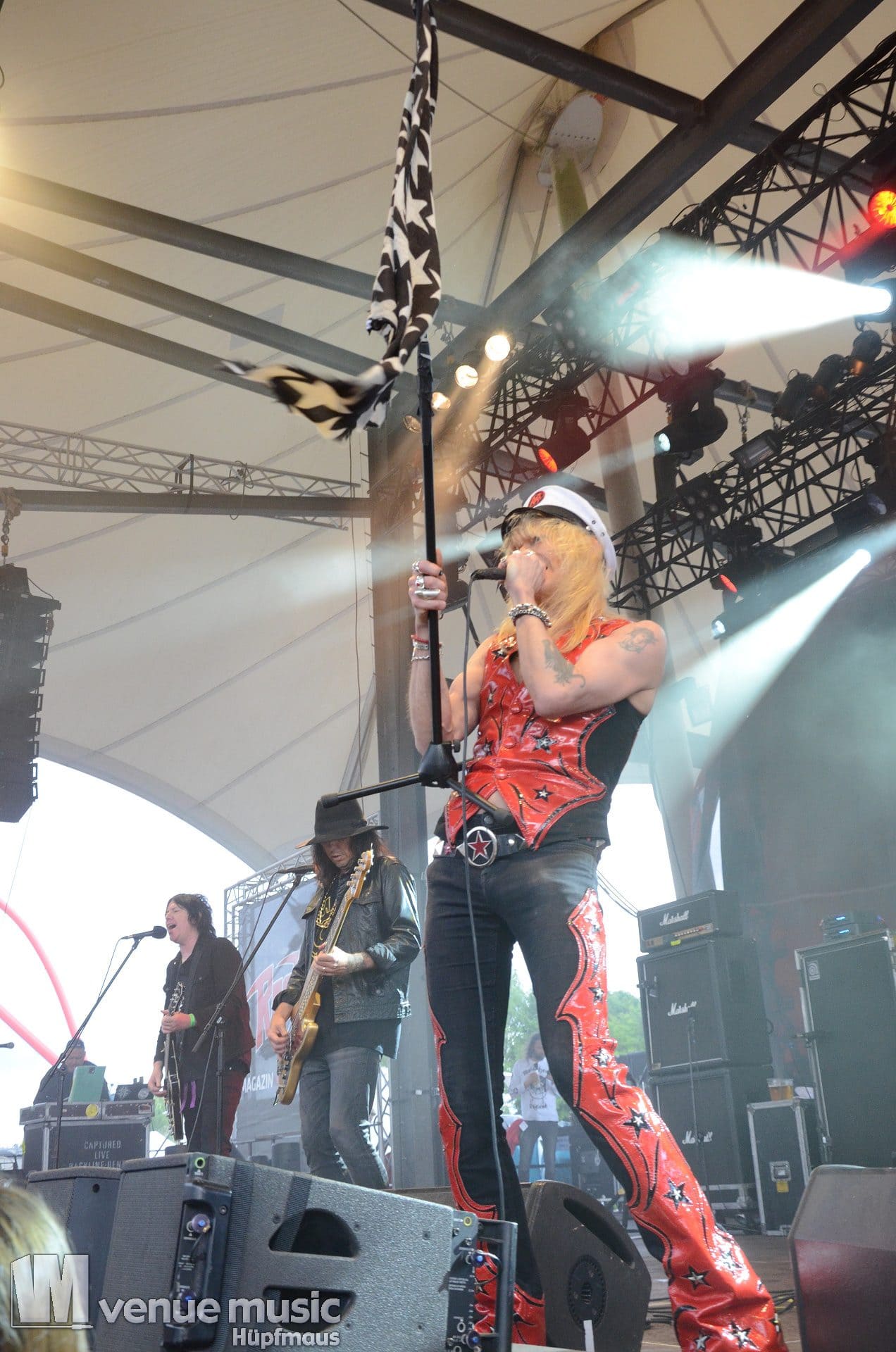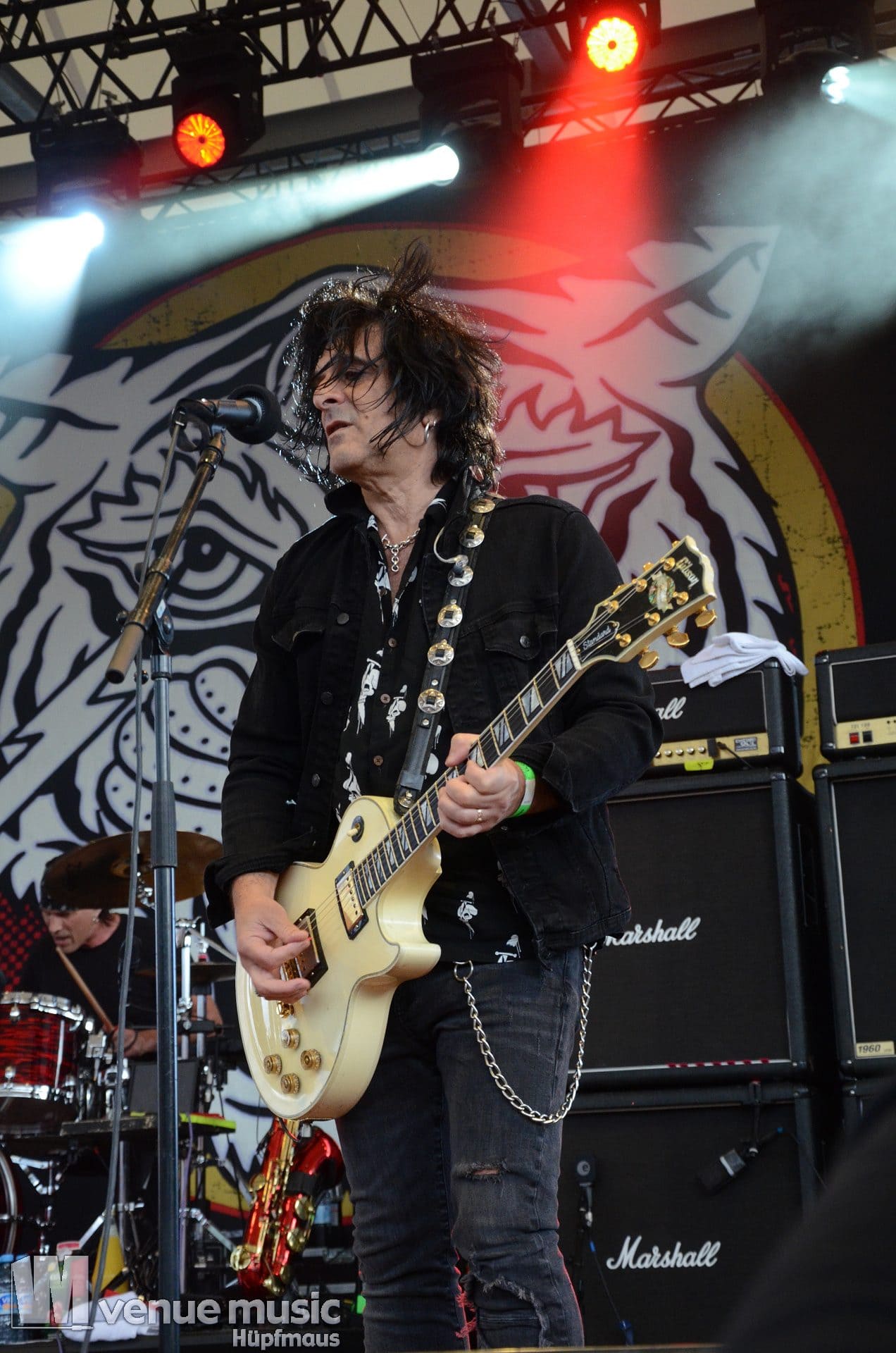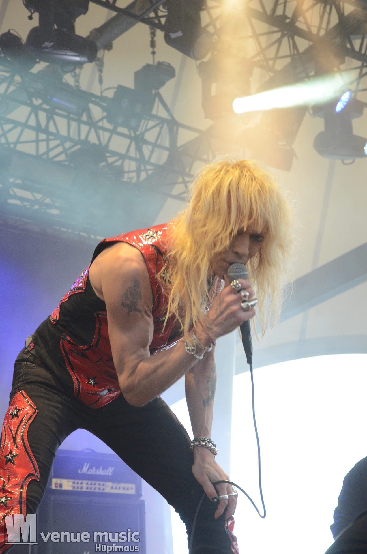 Danach war so richtig Stimmung auf der Bühne mit Michael Monroe, der wirklich quasi nie still stand. Und wenn doch, dann gab es aber eine Grimasse nach der anderen. Glam Rock´n´Roll. Vielleicht nicht jedermanns Sache, aber unterhaltsam allemal. Und nicht nur er, sondern auch der Rest der Band gaben alles, so dass es ein absolut unterhaltsames Set war. Auch wenn man – wie ich – vorher nicht einen Song kannte. Dass es da noch teils regnete, war da ziemlich egal, das trübte die Stimmung nicht.