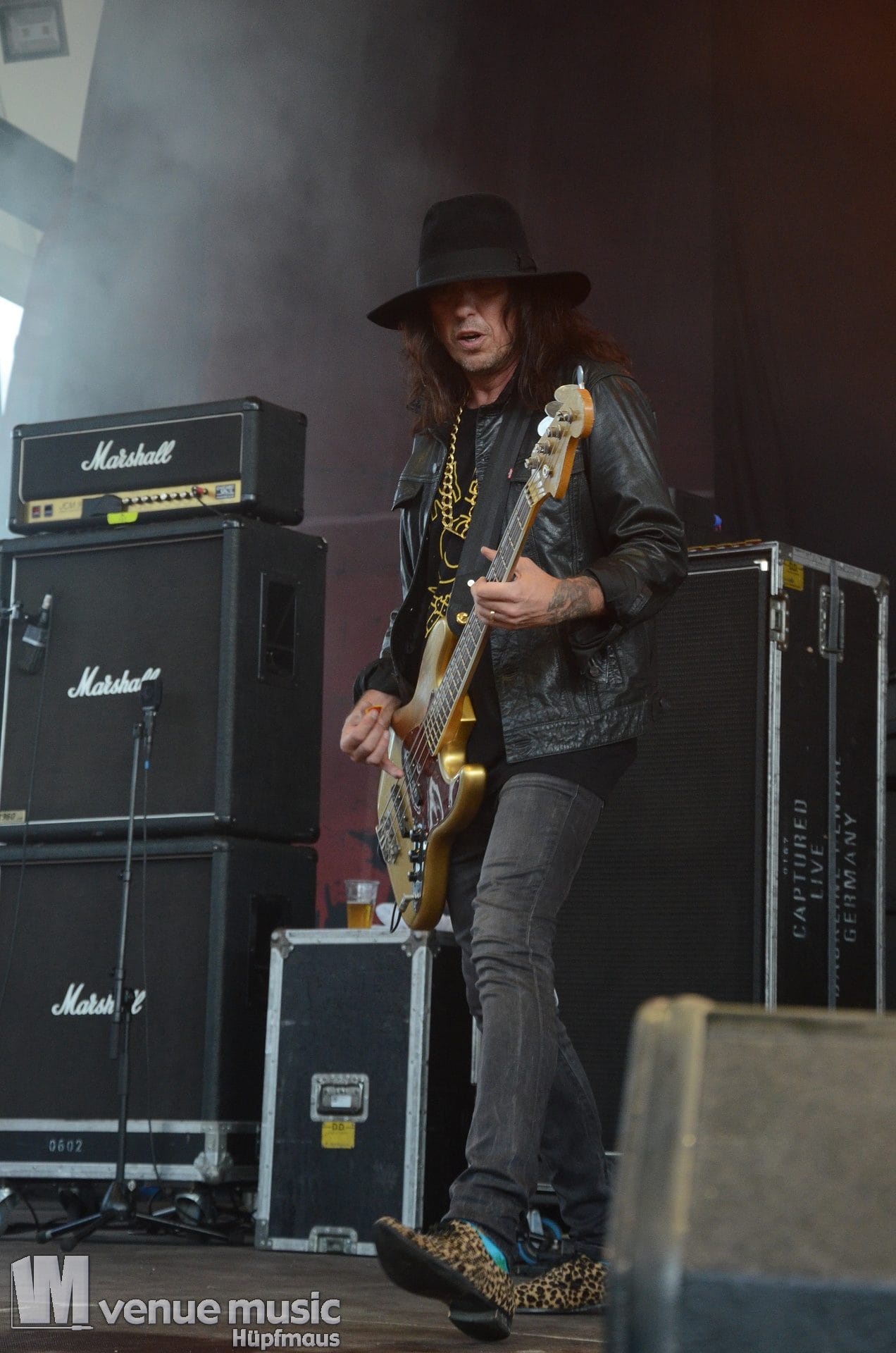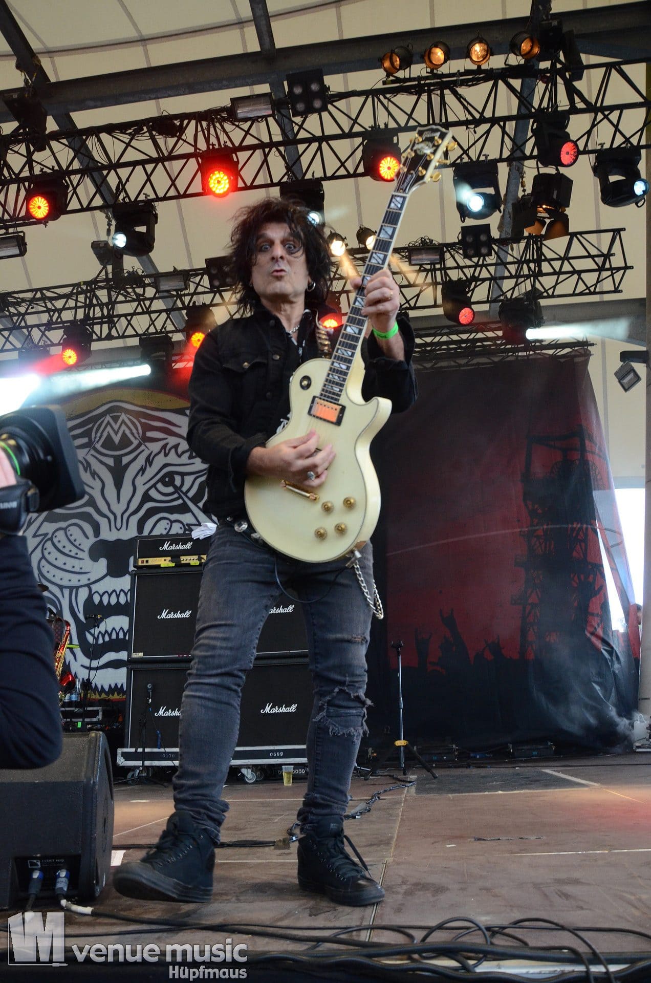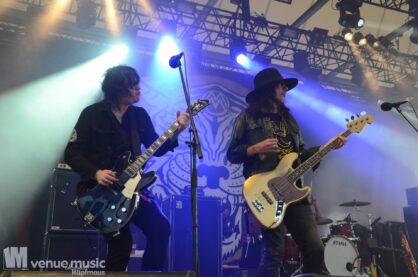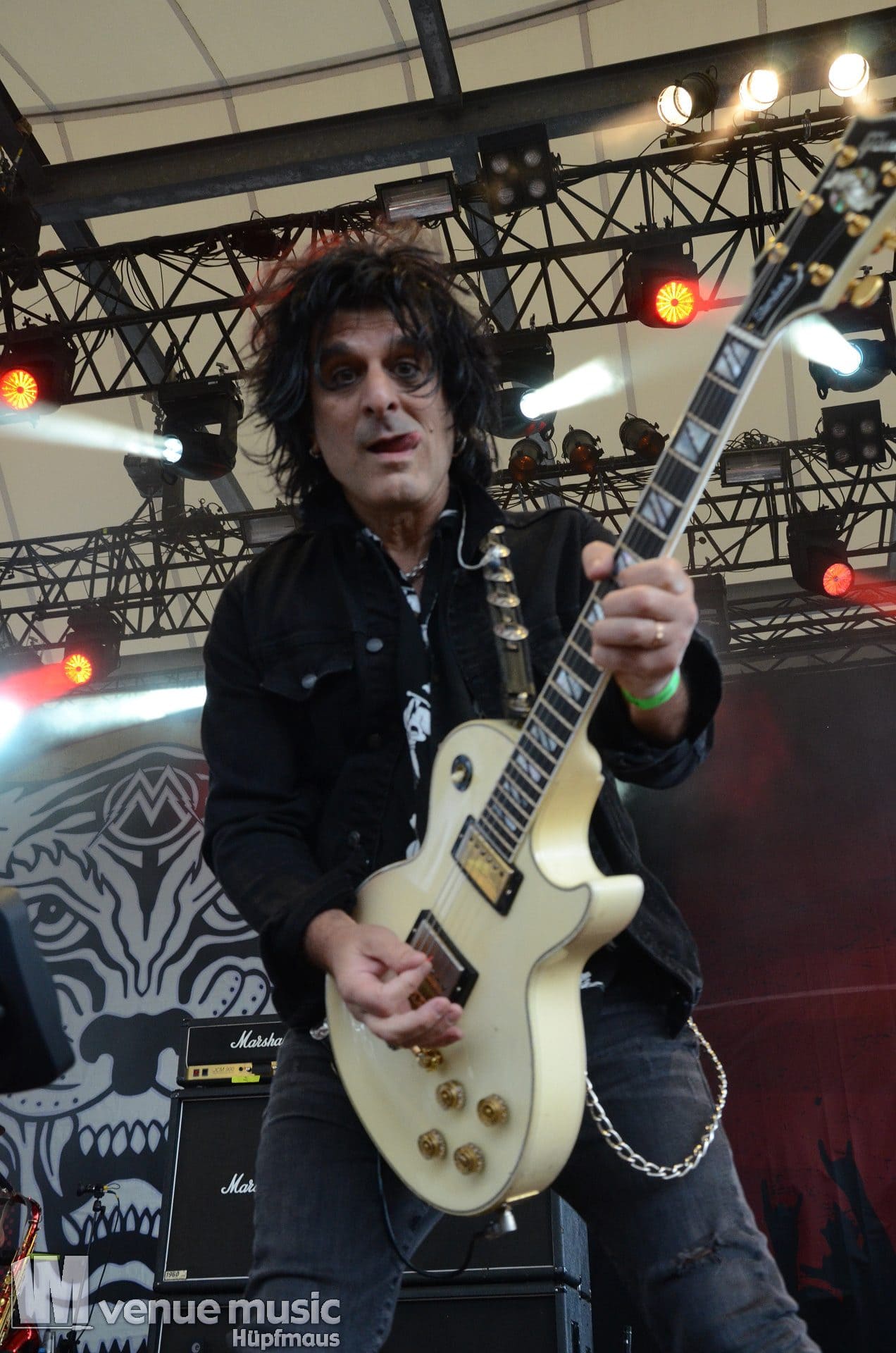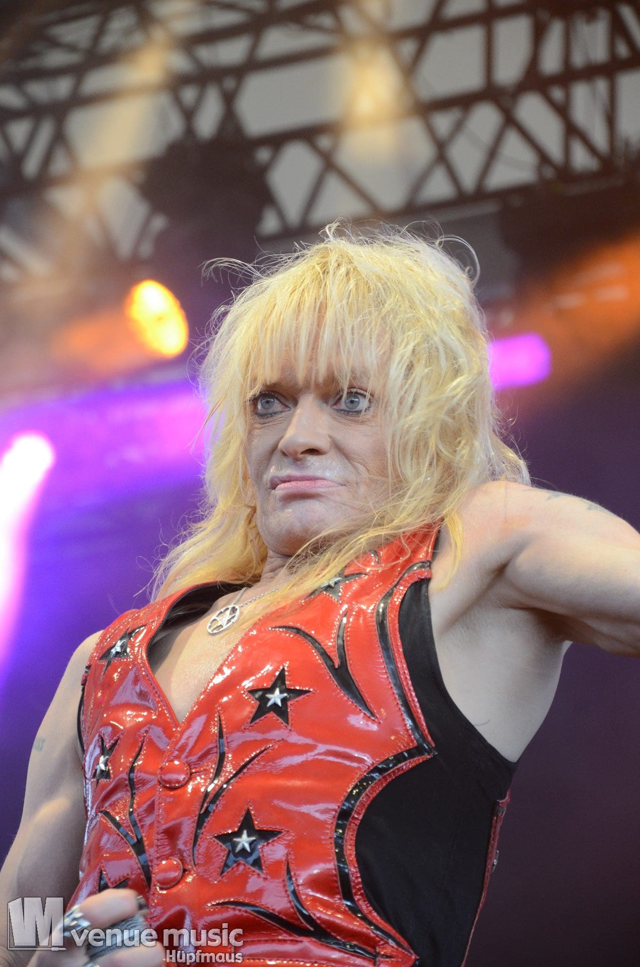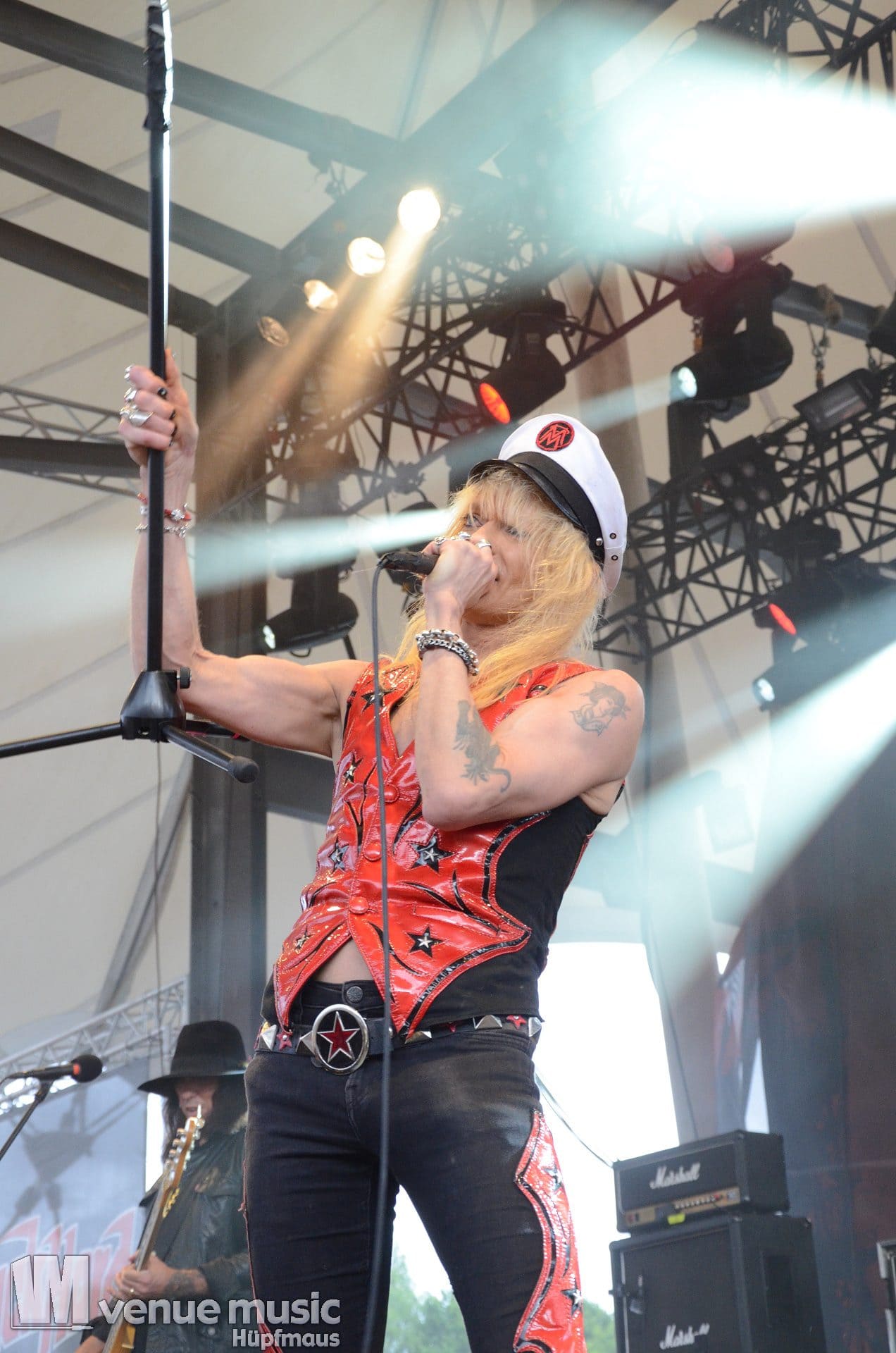 Danach war so richtig Stimmung auf der Bühne mit Michael Monroe, der wirklich quasi nie still stand. Und wenn doch, dann gab es aber eine Grimasse nach der anderen. Glam Rock´n´Roll. Vielleicht nicht jedermanns Sache, aber unterhaltsam allemal. Und nicht nur er, sondern auch der Rest der Band gaben alles, so dass es ein absolut unterhaltsames Set war. Auch wenn man – wie ich – vorher nicht einen Song kannte. Dass es da noch teils regnete, war da ziemlich egal, das trübte die Stimmung nicht.