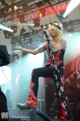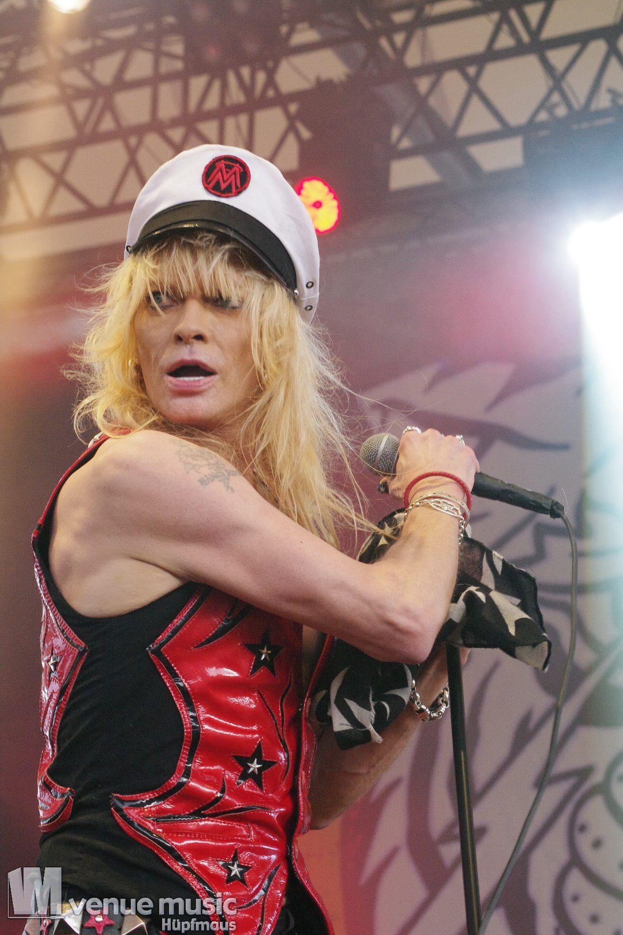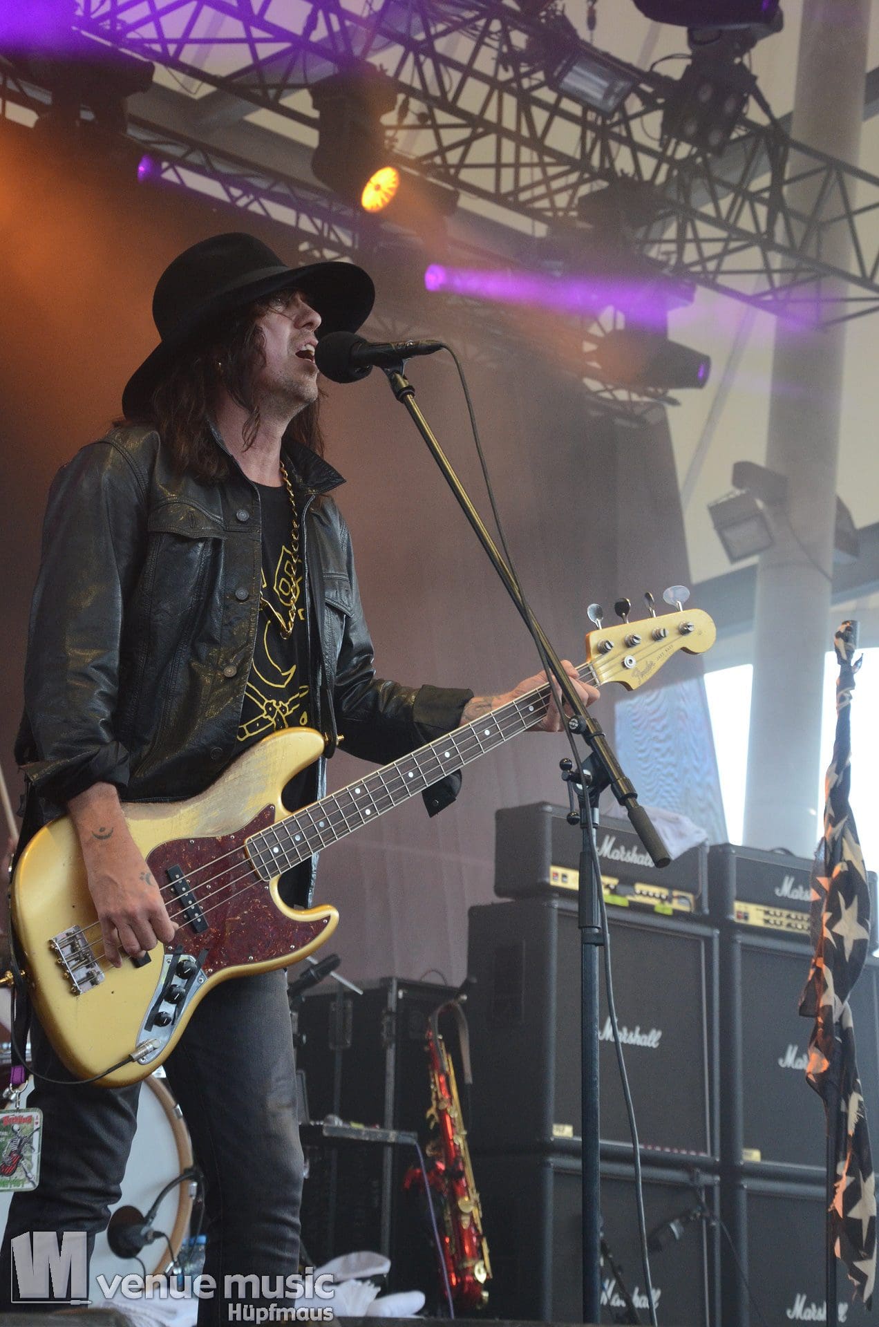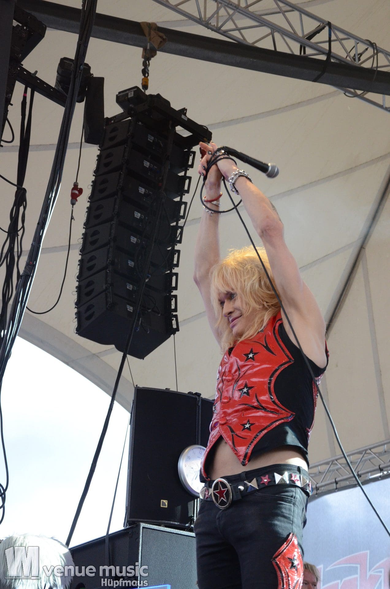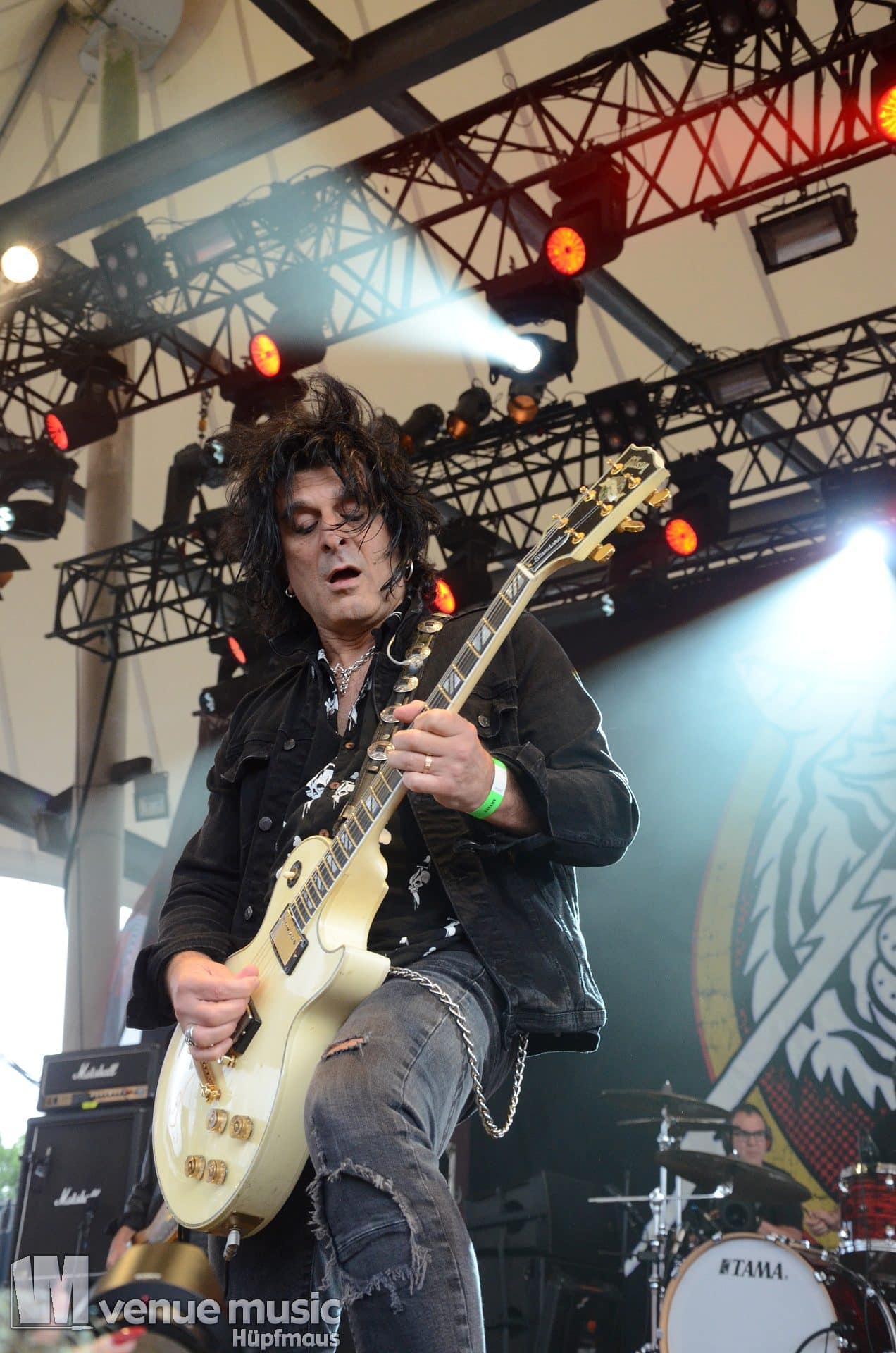Danach war so richtig Stimmung auf der Bühne mit Michael Monroe, der wirklich quasi nie still stand. Und wenn doch, dann gab es aber eine Grimasse nach der anderen. Glam Rock´n´Roll. Vielleicht nicht jedermanns Sache, aber unterhaltsam allemal. Und nicht nur er, sondern auch der Rest der Band gaben alles, so dass es ein absolut unterhaltsames Set war. Auch wenn man – wie ich – vorher nicht einen Song kannte. Dass es da noch teils regnete, war da ziemlich egal, das trübte die Stimmung nicht.