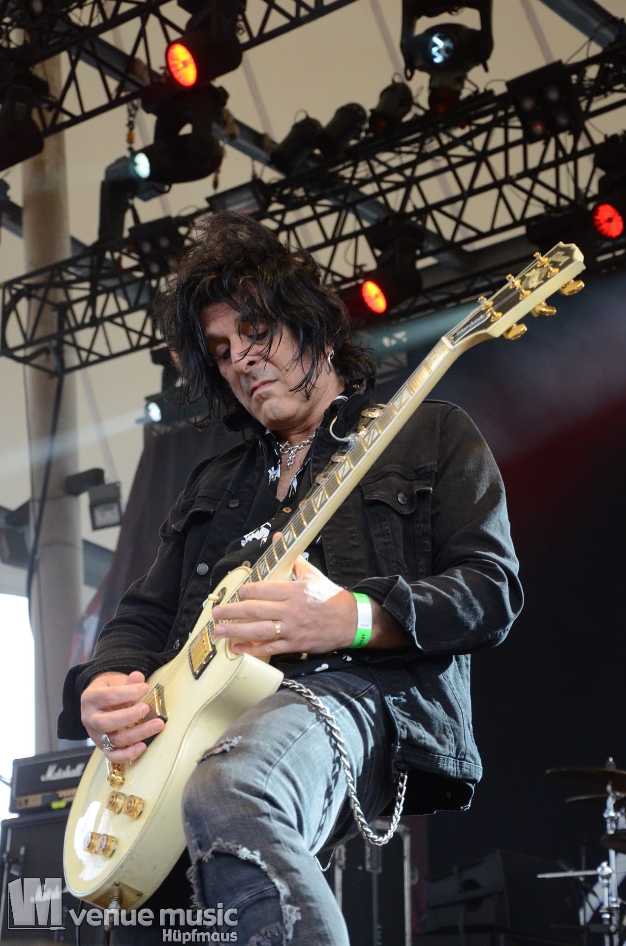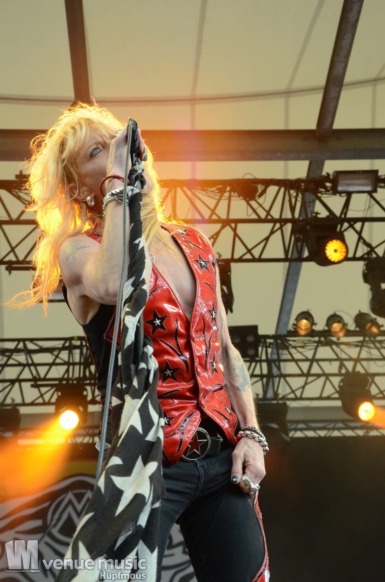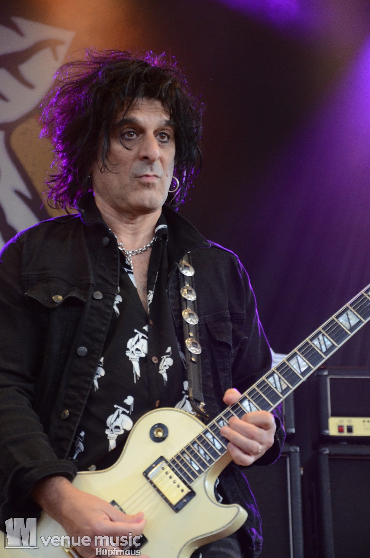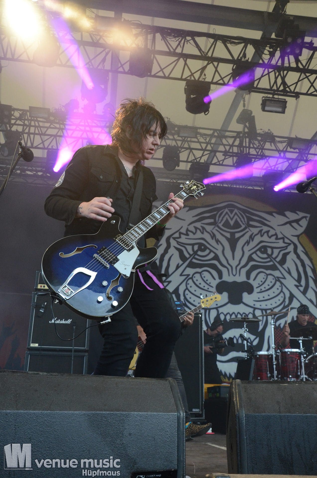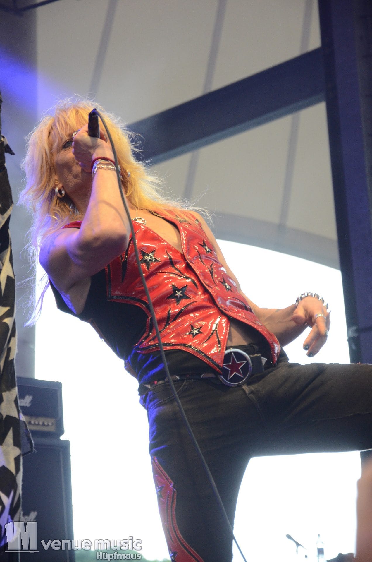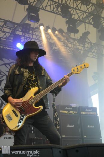Danach war so richtig Stimmung auf der Bühne mit Michael Monroe, der wirklich quasi nie still stand. Und wenn doch, dann gab es aber eine Grimasse nach der anderen. Glam Rock´n´Roll. Vielleicht nicht jedermanns Sache, aber unterhaltsam allemal. Und nicht nur er, sondern auch der Rest der Band gaben alles, so dass es ein absolut unterhaltsames Set war. Auch wenn man – wie ich – vorher nicht einen Song kannte. Dass es da noch teils regnete, war da ziemlich egal, das trübte die Stimmung nicht.