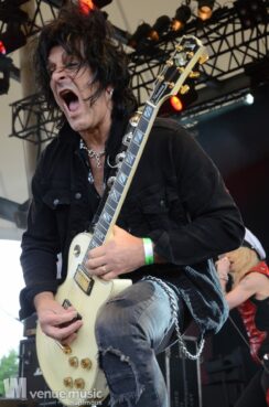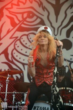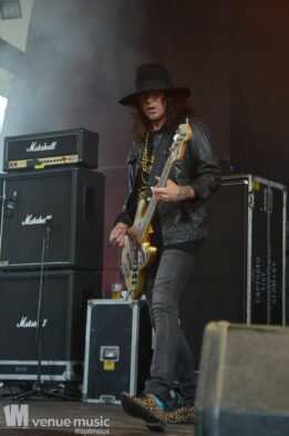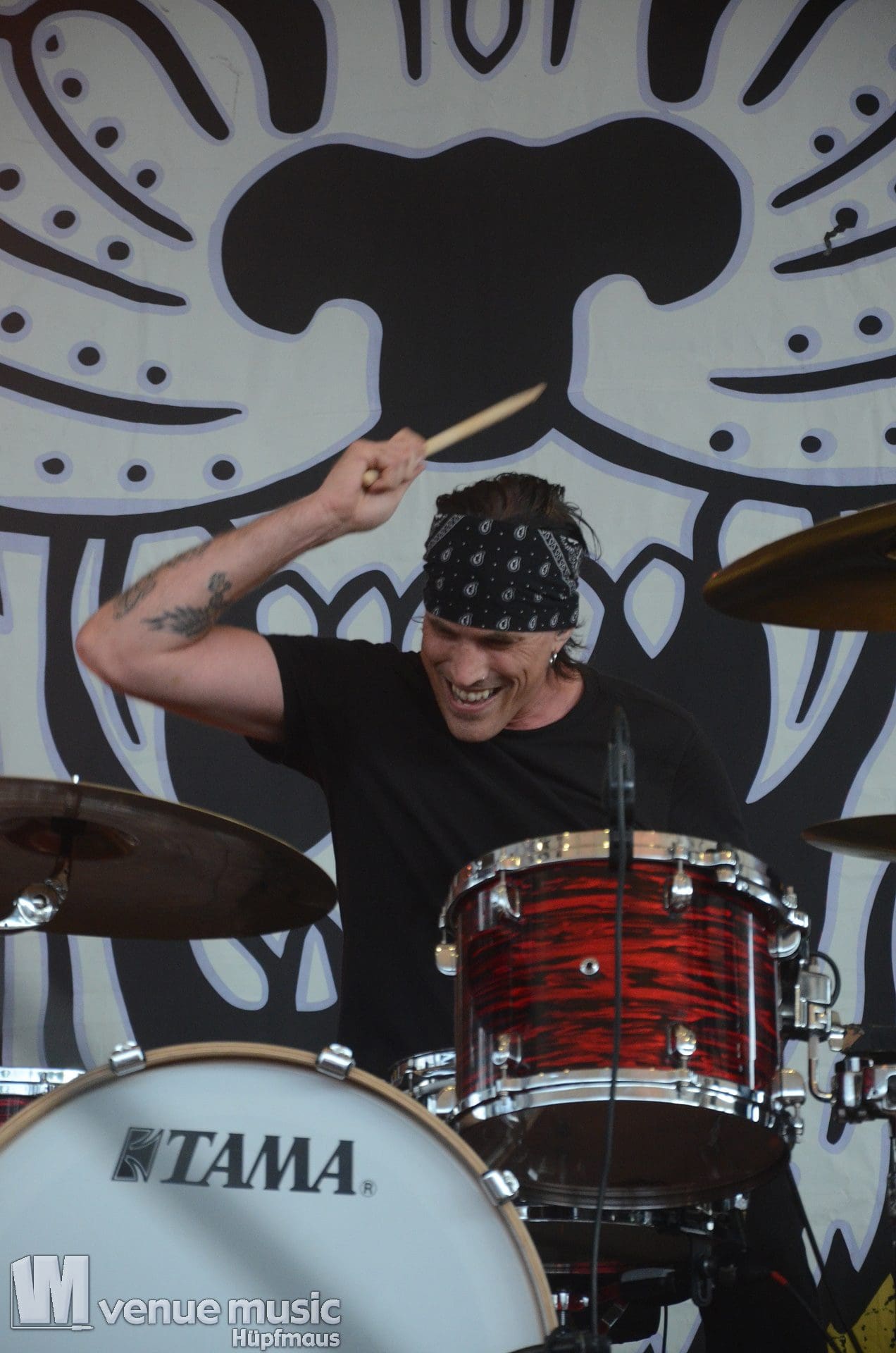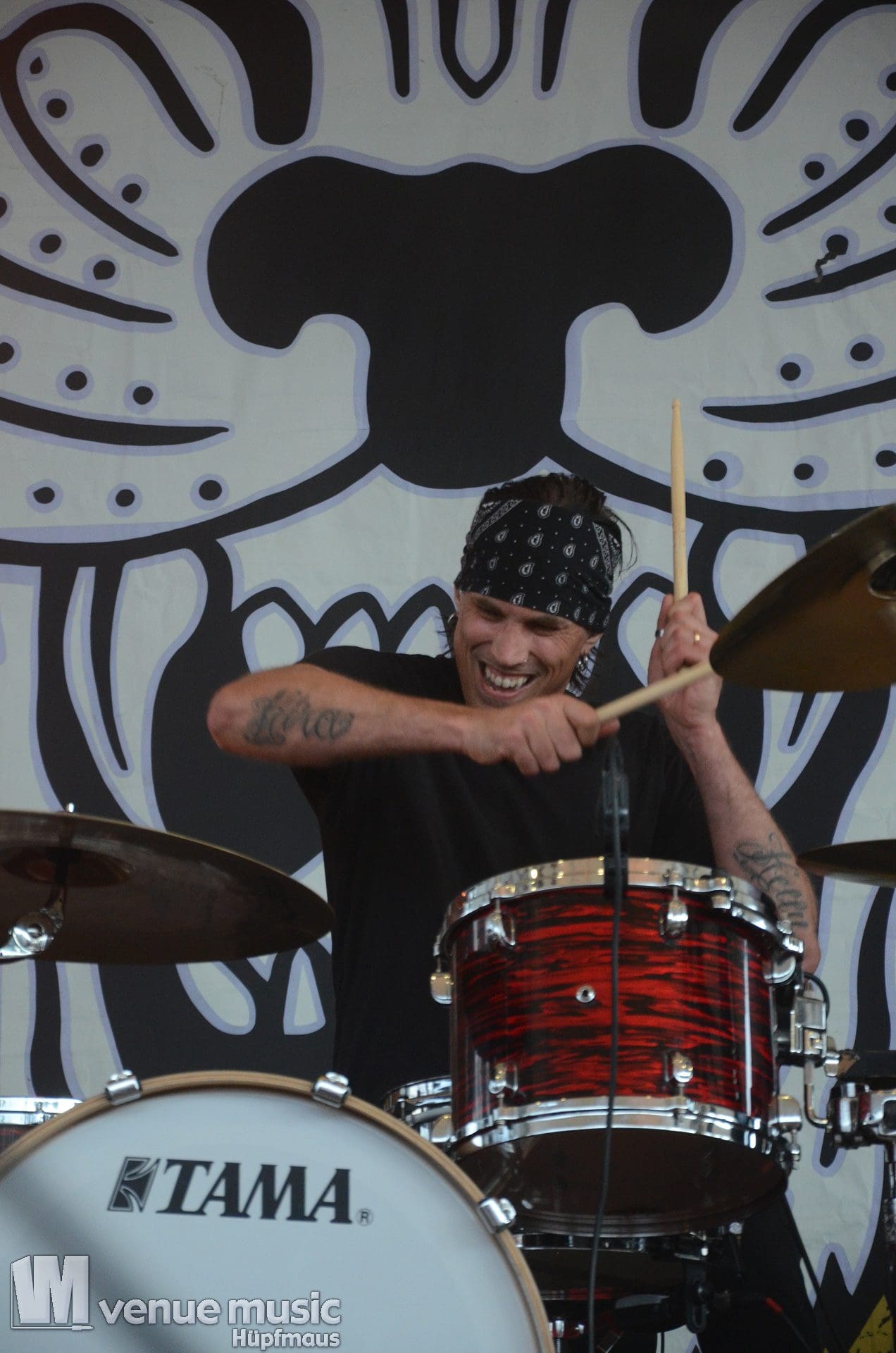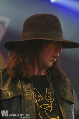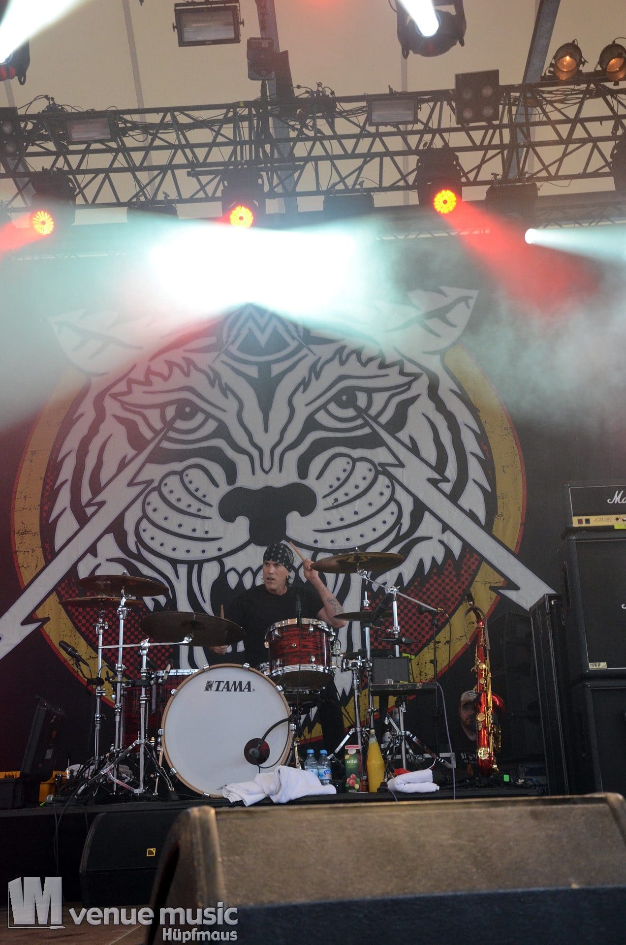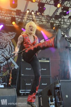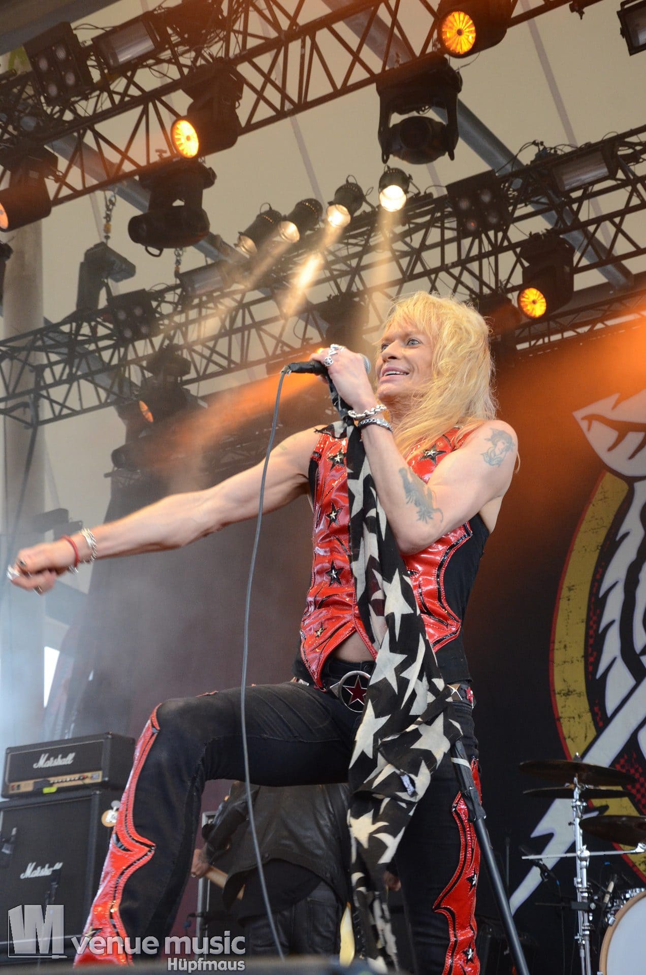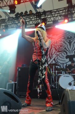 Danach war so richtig Stimmung auf der Bühne mit Michael Monroe, der wirklich quasi nie still stand. Und wenn doch, dann gab es aber eine Grimasse nach der anderen. Glam Rock´n´Roll. Vielleicht nicht jedermanns Sache, aber unterhaltsam allemal. Und nicht nur er, sondern auch der Rest der Band gaben alles, so dass es ein absolut unterhaltsames Set war. Auch wenn man – wie ich – vorher nicht einen Song kannte. Dass es da noch teils regnete, war da ziemlich egal, das trübte die Stimmung nicht.