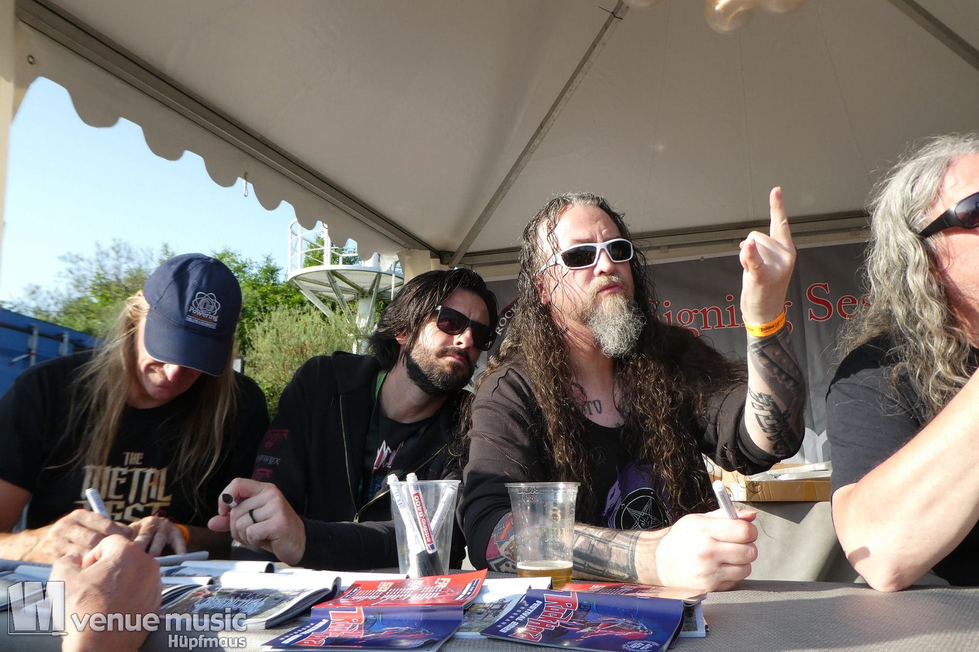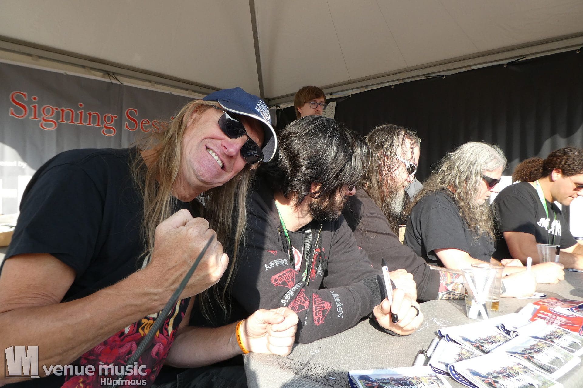 Hier ein paar Eindrücke der Autogrammstunden von Tag 1 des Festivals mit Screamer, Motorjesus, Benediction, Holy Moses und Vicious Rumors: