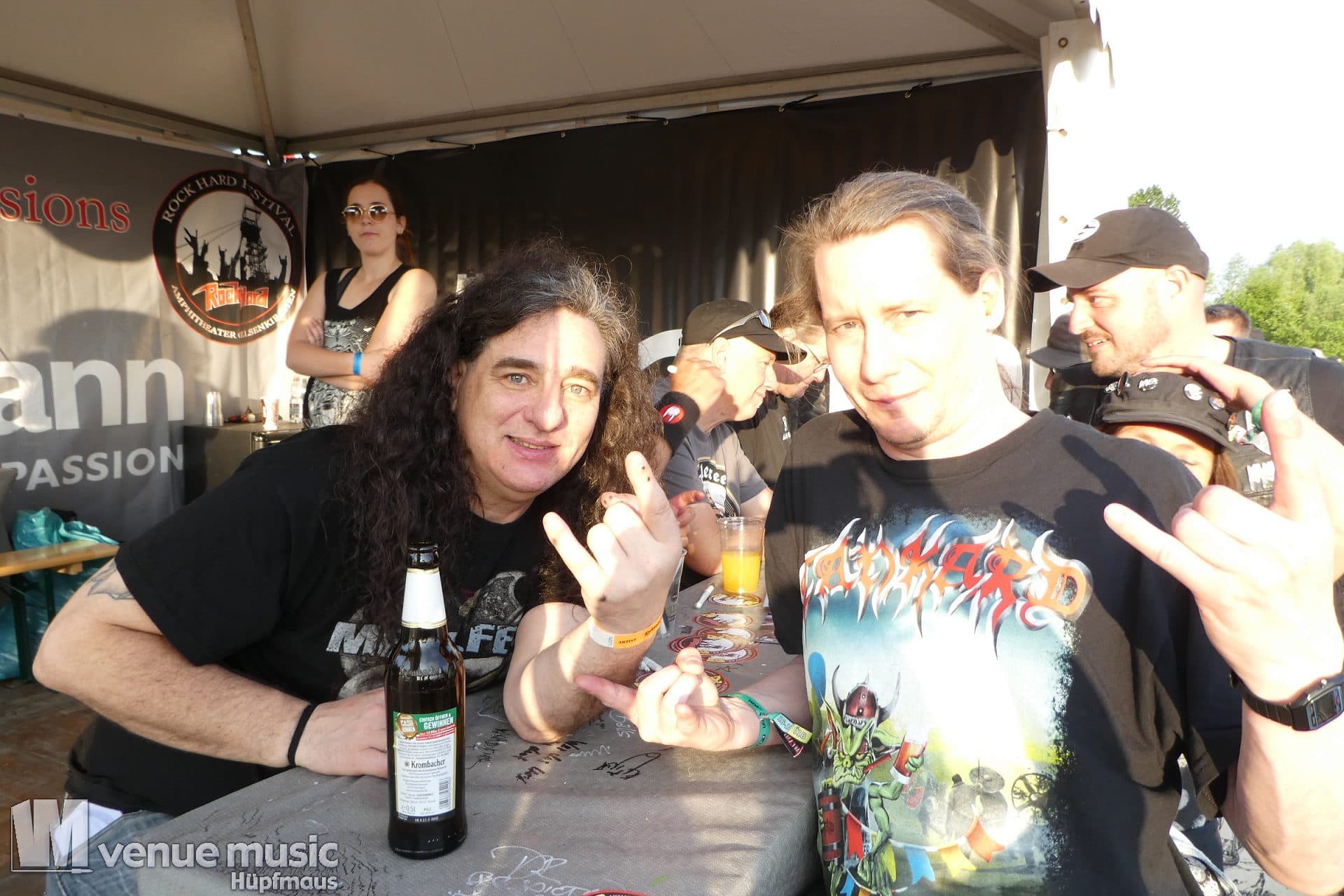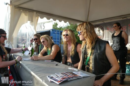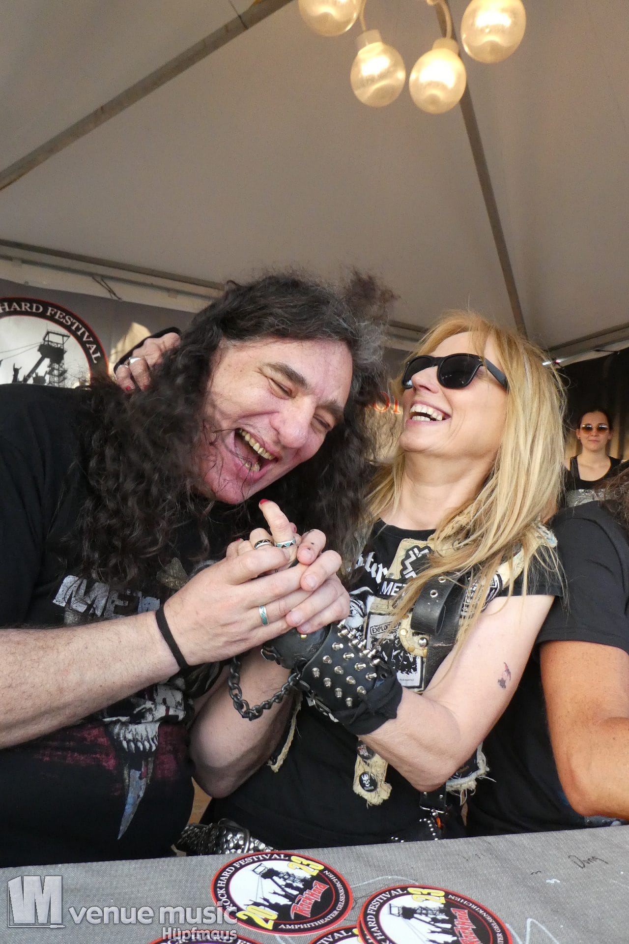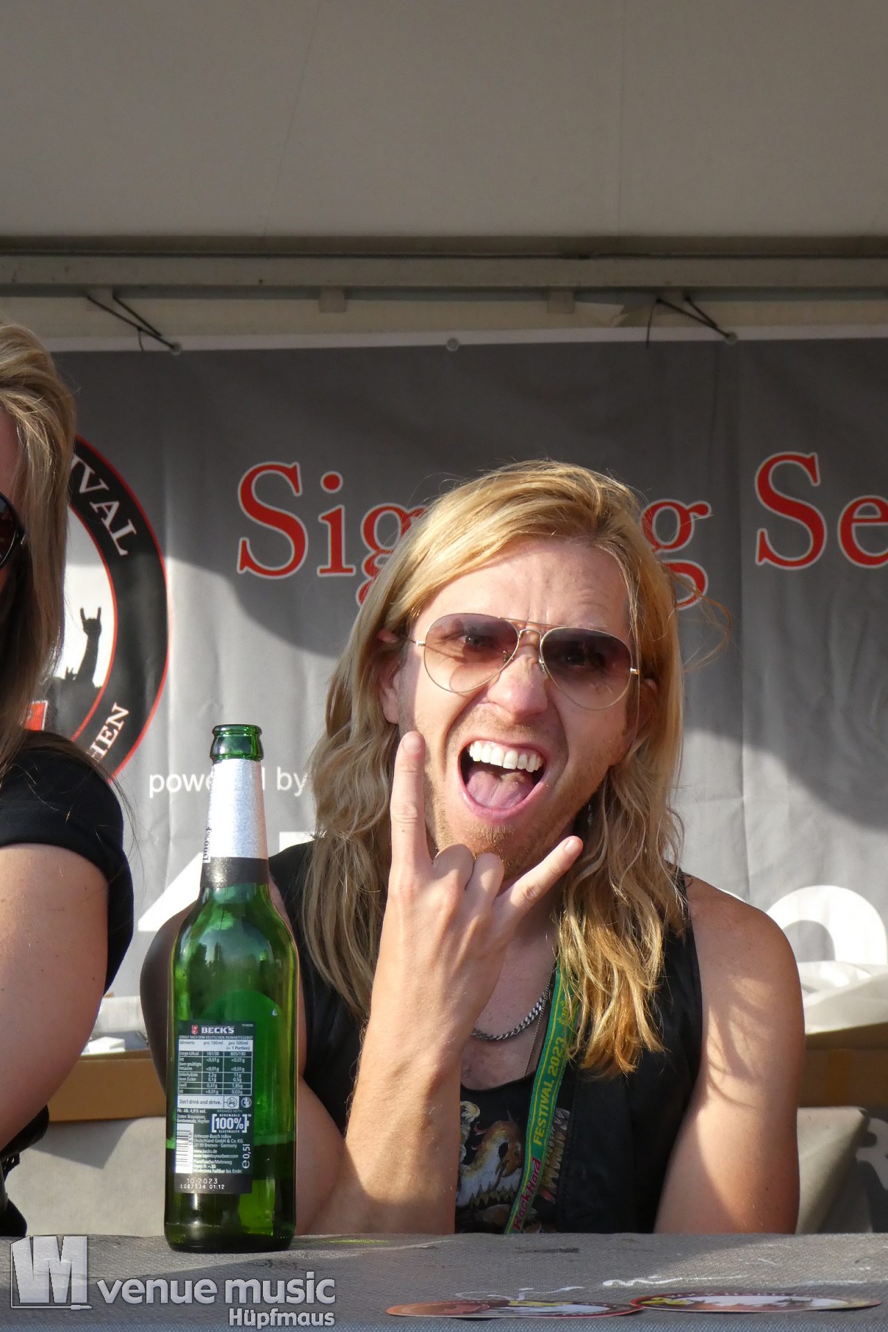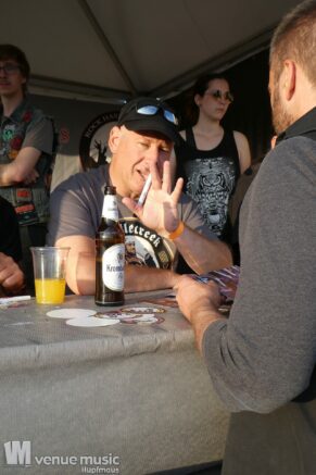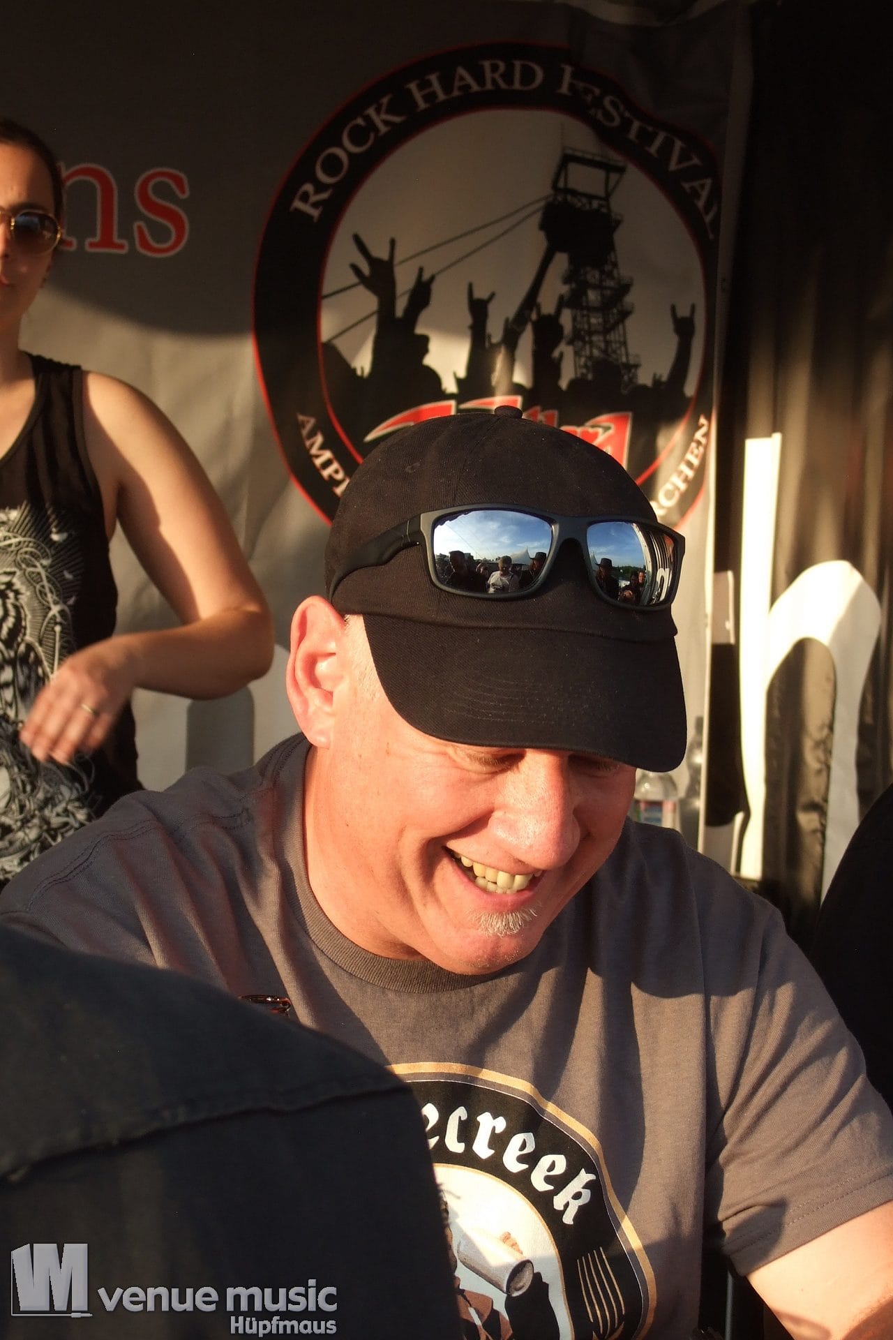 Am letzten Tag des Rock Hard Festivals signierten Iron Fate, Undertow, Legion of the Damned, Enforcer und Tankard (mit Gast Sabina Classen) wieder fleissig und machten Fotos mit ihren Fans. Zwar gab es an keinem der drei Tage Autogramme vom Headliner, aber die meisten Bands hatten dafür Zeit einplanen können.