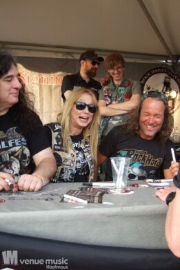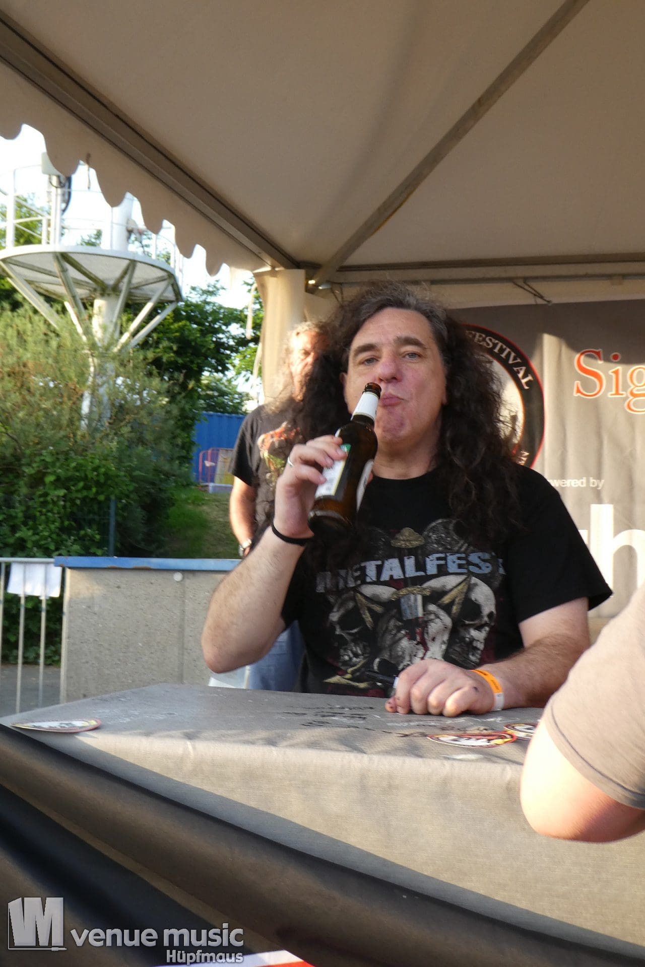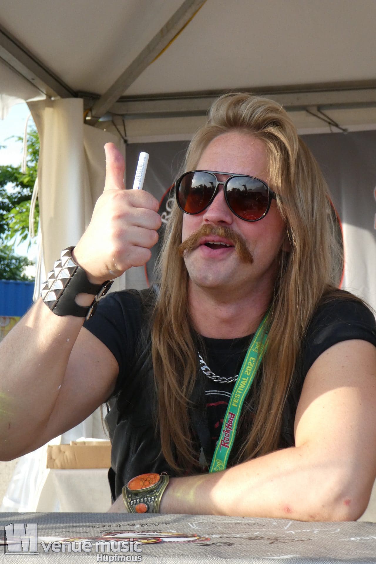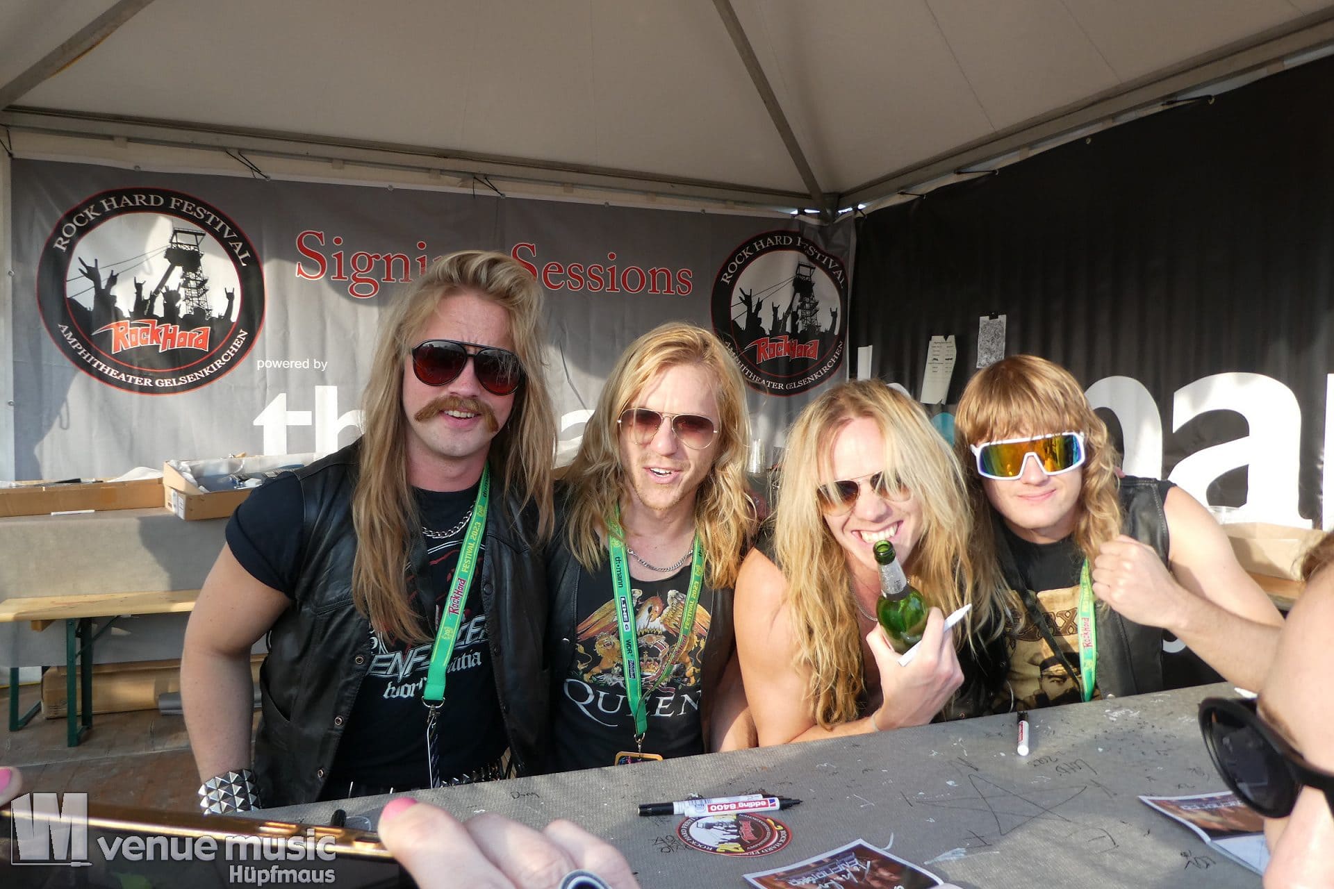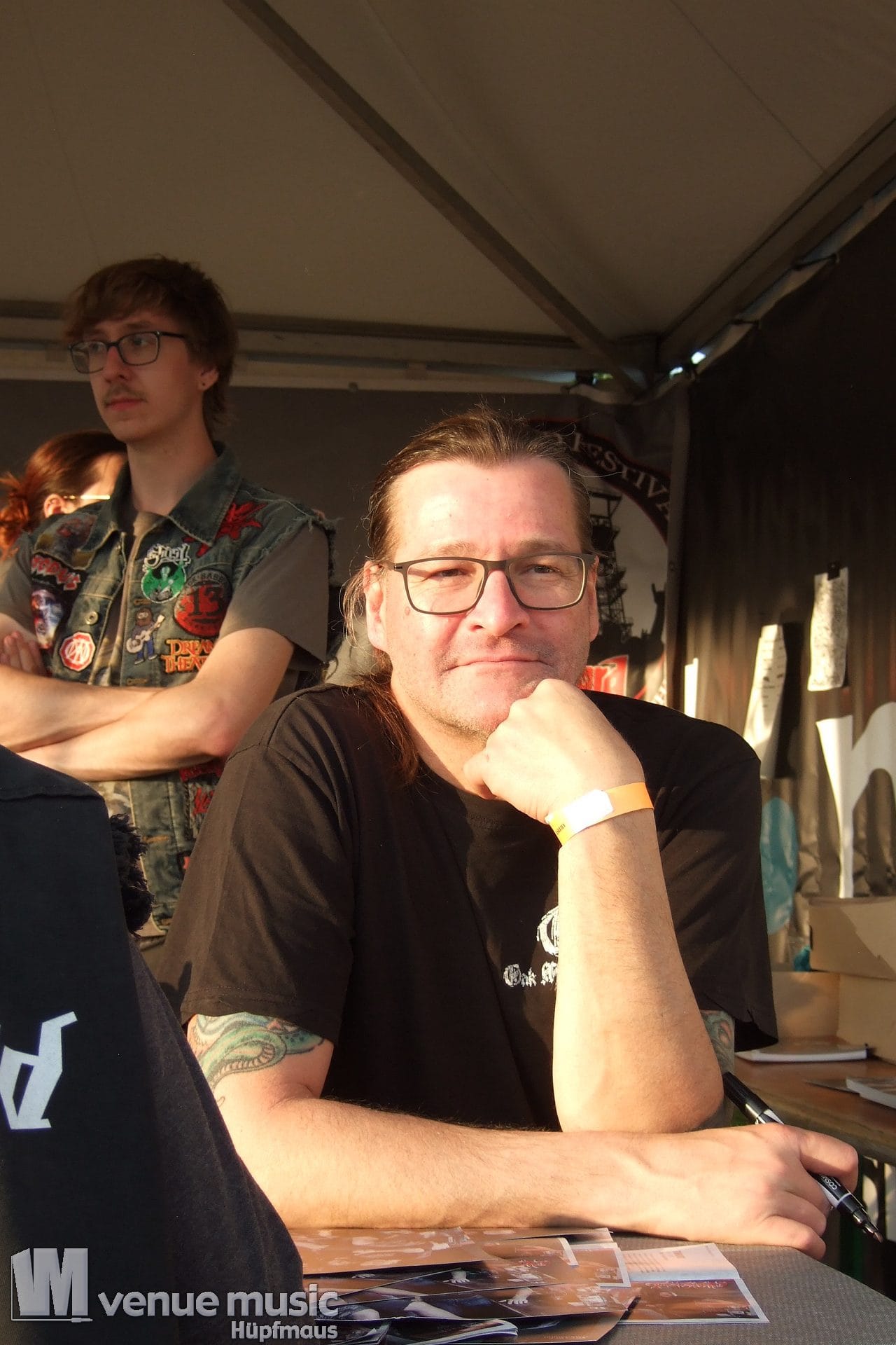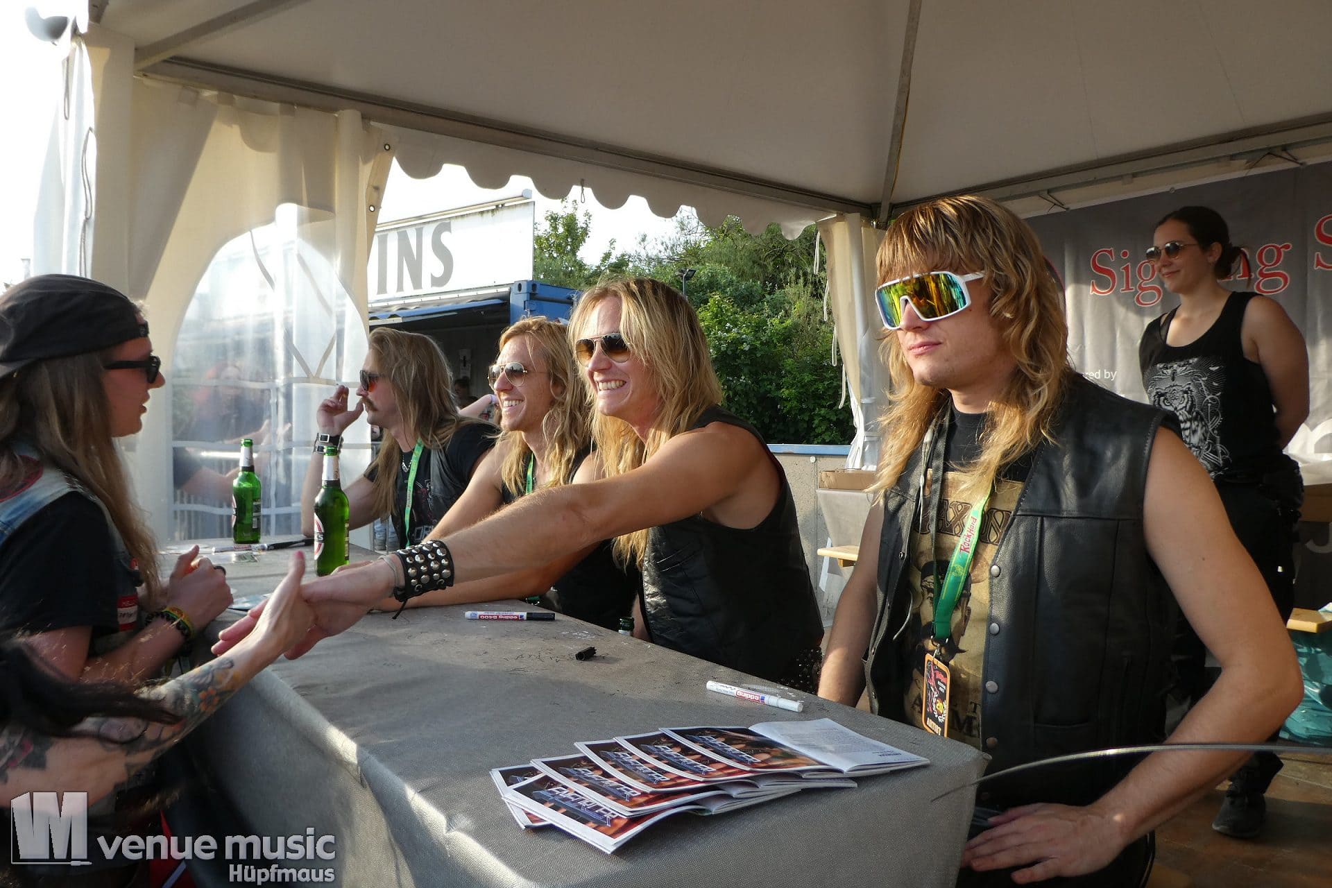 Am letzten Tag des Rock Hard Festivals signierten Iron Fate, Undertow, Legion of the Damned, Enforcer und Tankard (mit Gast Sabina Classen) wieder fleissig und machten Fotos mit ihren Fans. Zwar gab es an keinem der drei Tage Autogramme vom Headliner, aber die meisten Bands hatten dafür Zeit einplanen können.