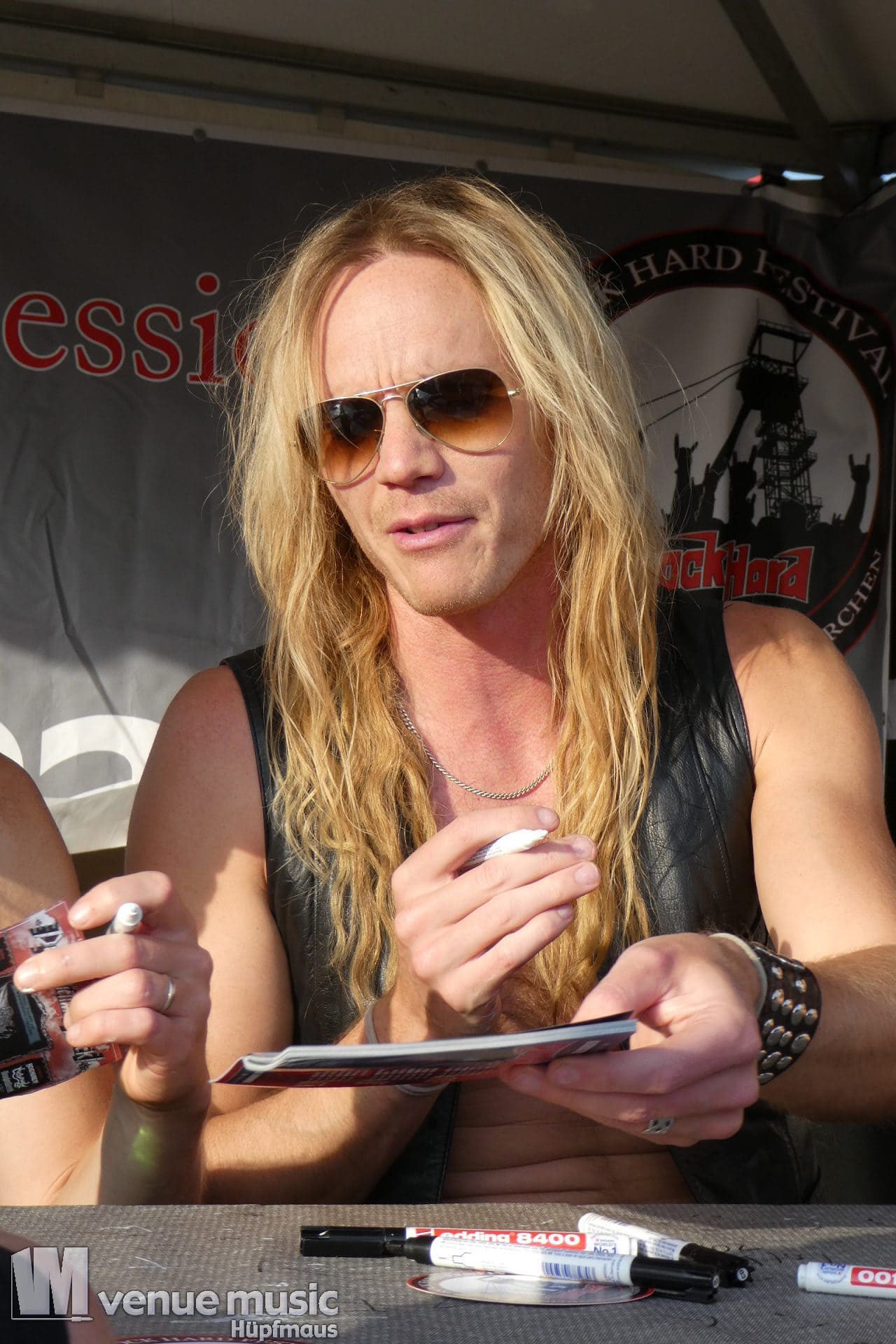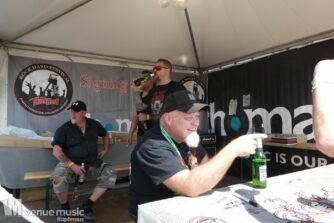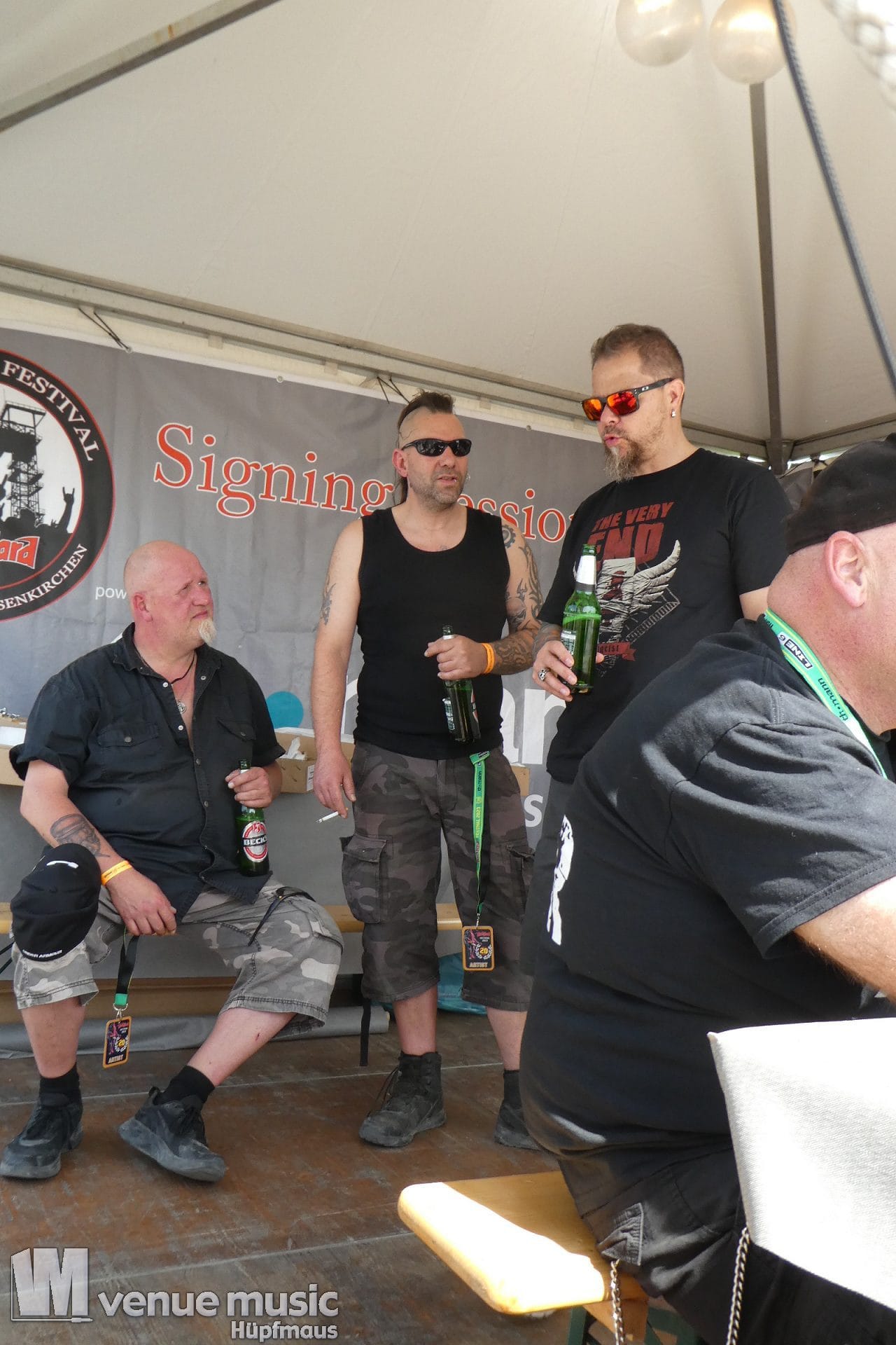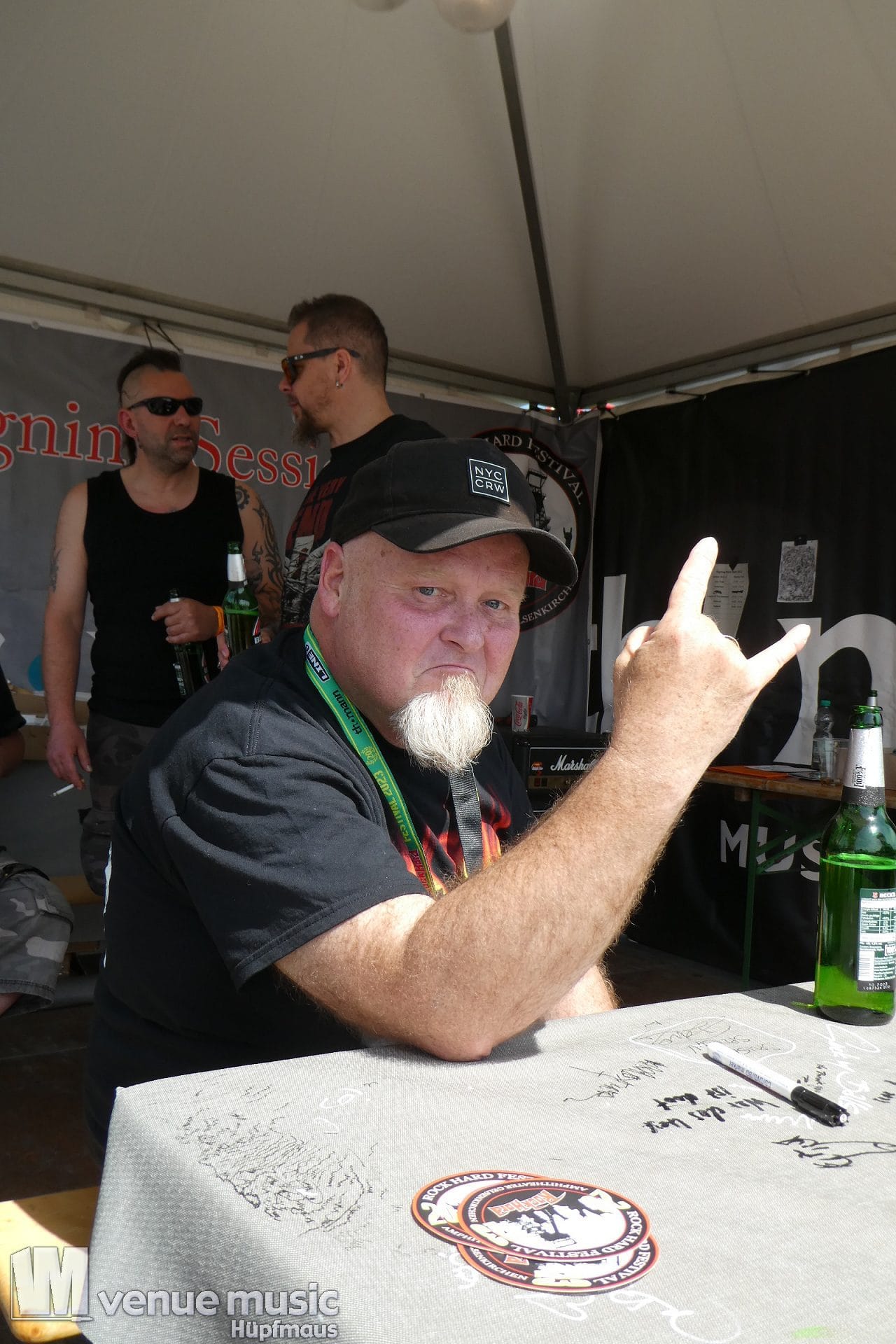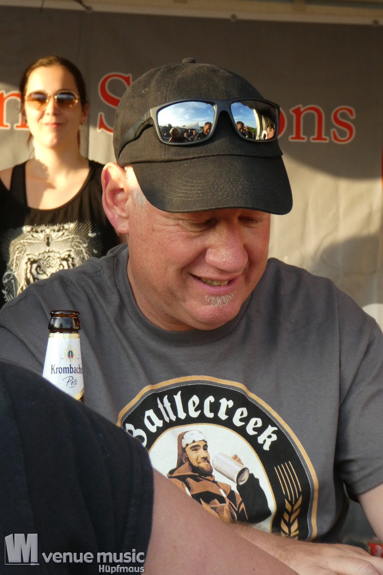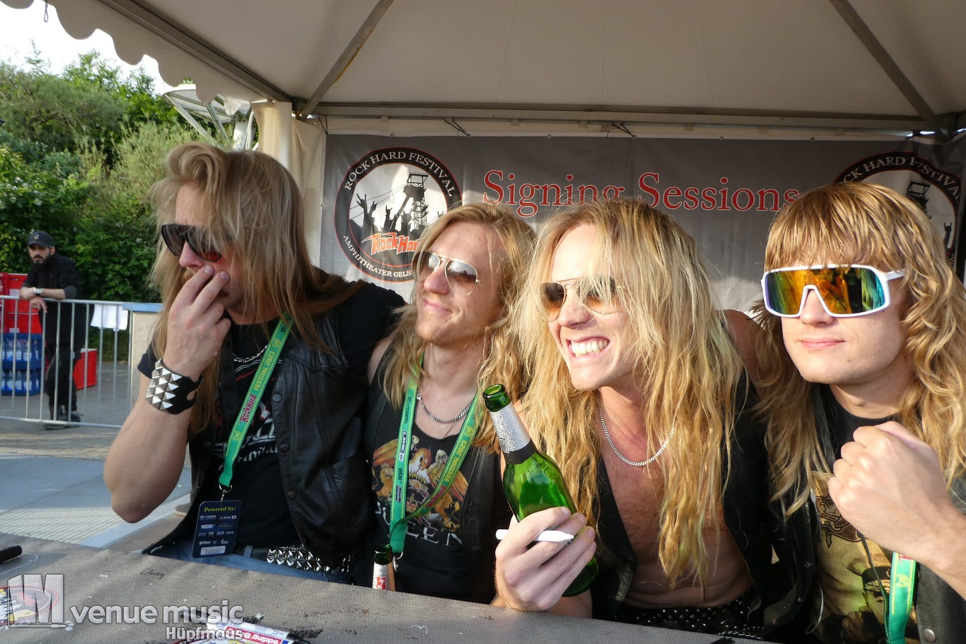Am letzten Tag des Rock Hard Festivals signierten Iron Fate, Undertow, Legion of the Damned, Enforcer und Tankard (mit Gast Sabina Classen) wieder fleissig und machten Fotos mit ihren Fans. Zwar gab es an keinem der drei Tage Autogramme vom Headliner, aber die meisten Bands hatten dafür Zeit einplanen können.