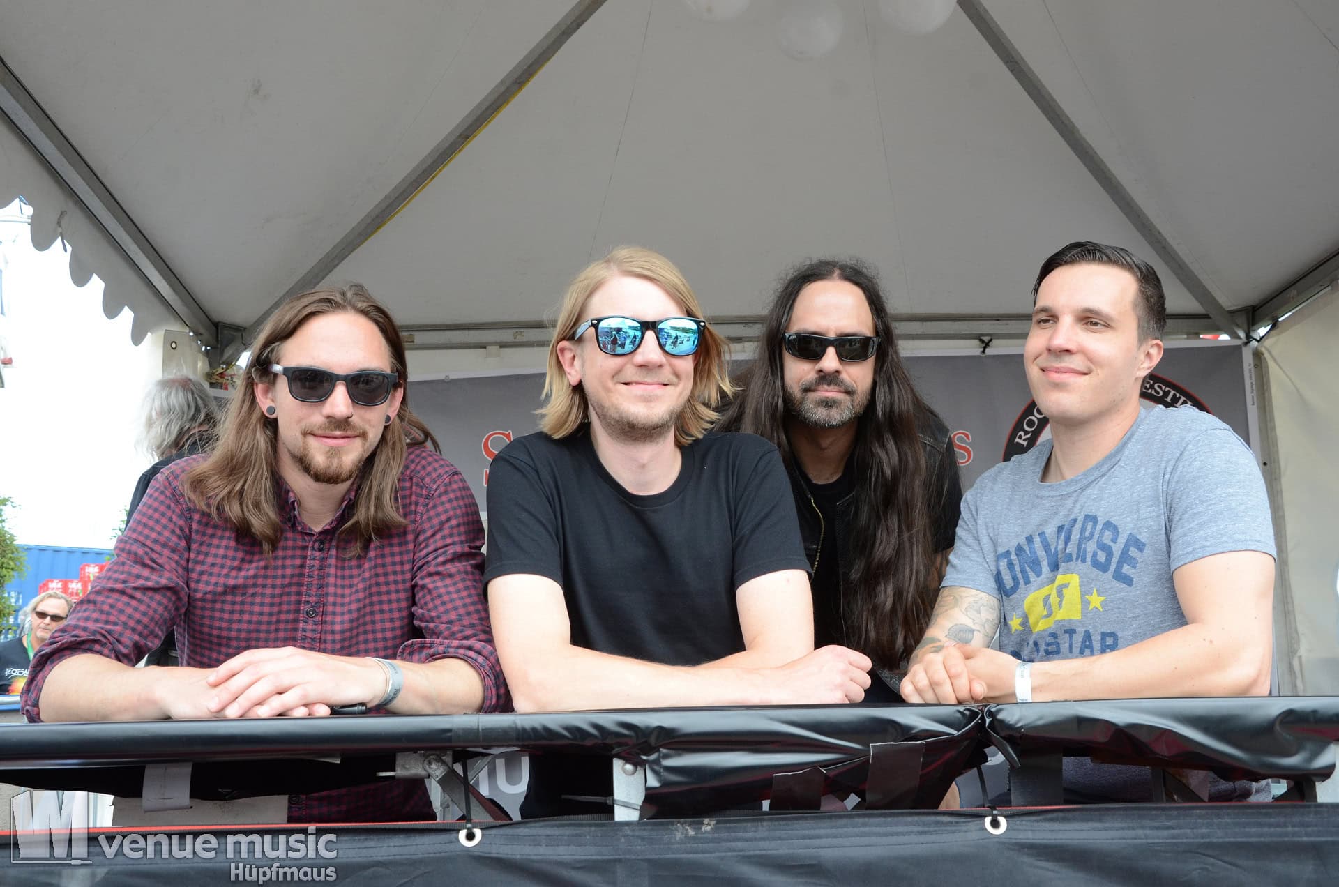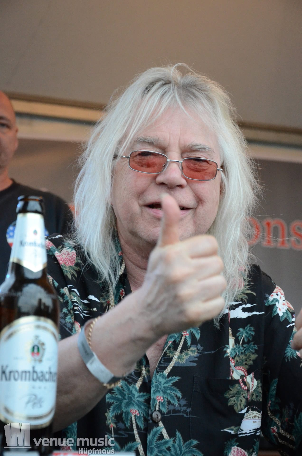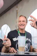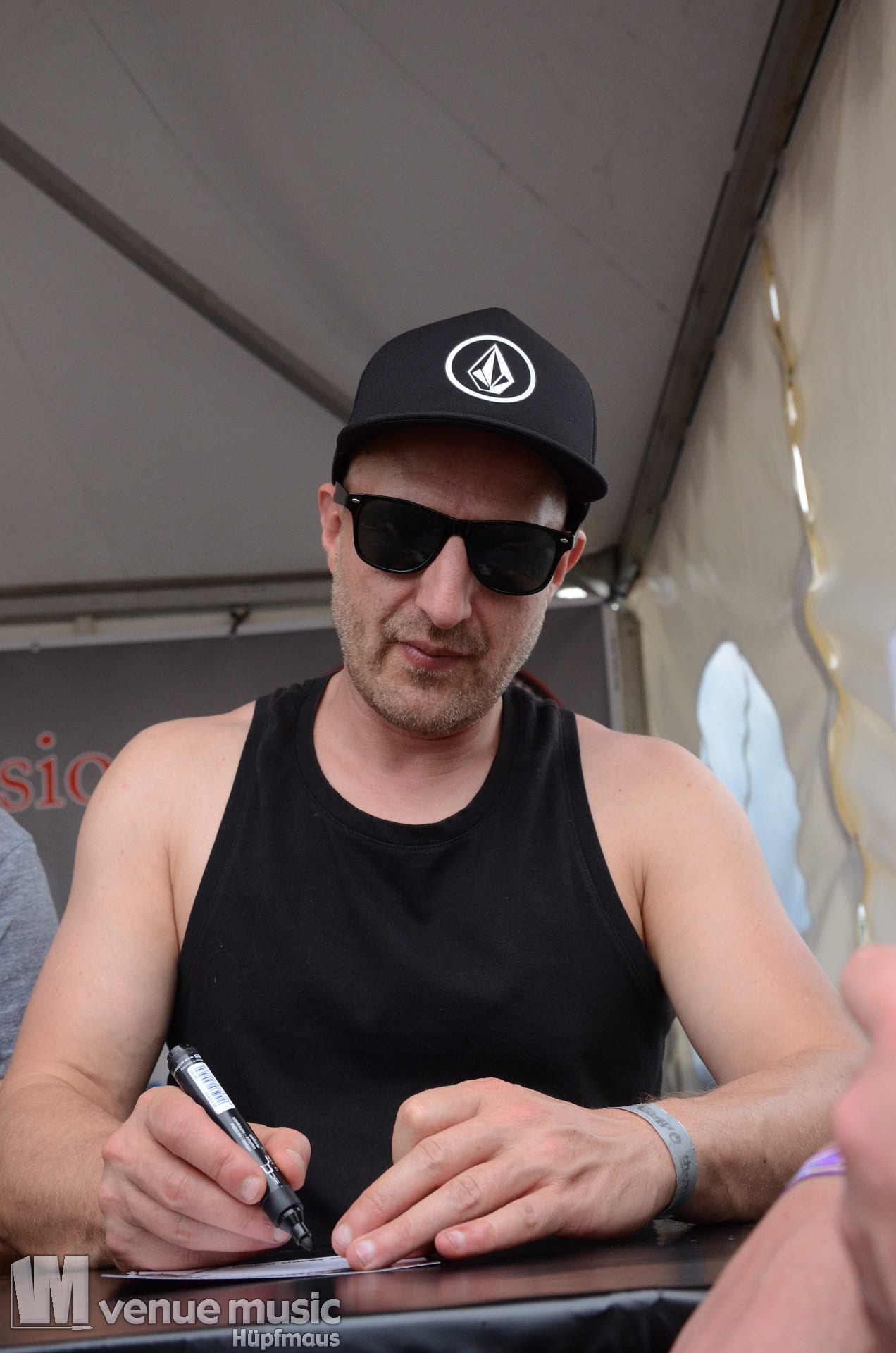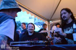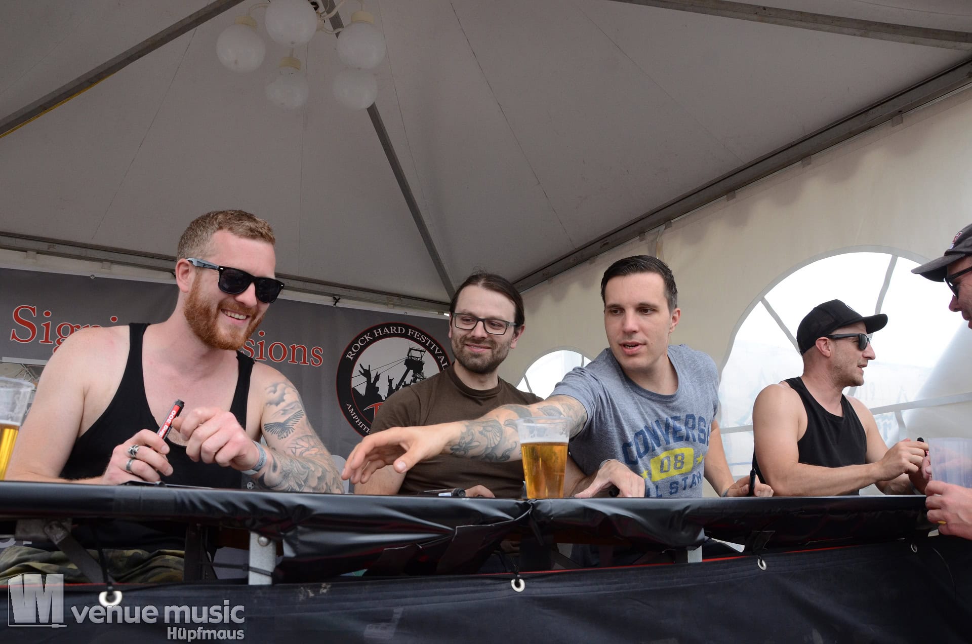 Auch am letzten Tag des Rock Hard Festivals wurde von den Bands fleissig für ihre Fans signiert, jede Menge Fotos geschossen und geklönt. Sechs gut gelaunte Bands waren für ihre Fans an diesem Tag dabei: Zodiac, Visigoth – welche so ziemlich die längste Autogrammstundenschlange hatten, Long Distance Calling, Fifth Angel, Magnum und zu guter letzt Possessed. Allerdings hätte mindestens Sänger Jeff Becerra wohl lieber einen anderen Slot gehabt, denn sie mussten parallel zum Auftritt von Anthrax signieren, dabei hätte den gerne selber gesehen. Aber das hielt ihn nicht davon ab, sich mit den Fans zu unterhalten und jeden Autogrammwunsch zu erfüllen.