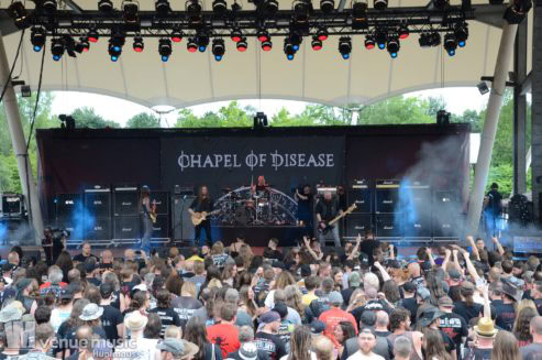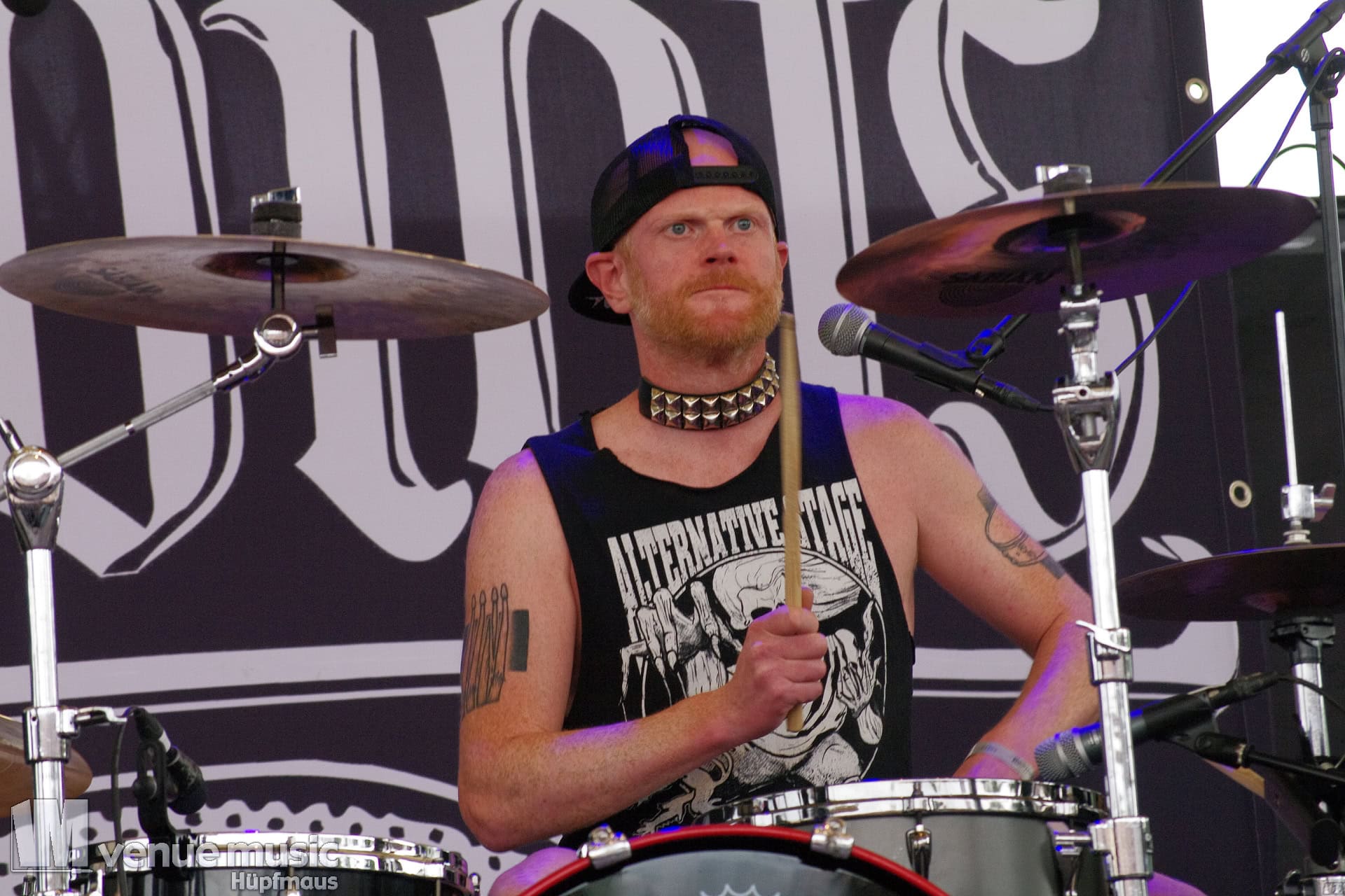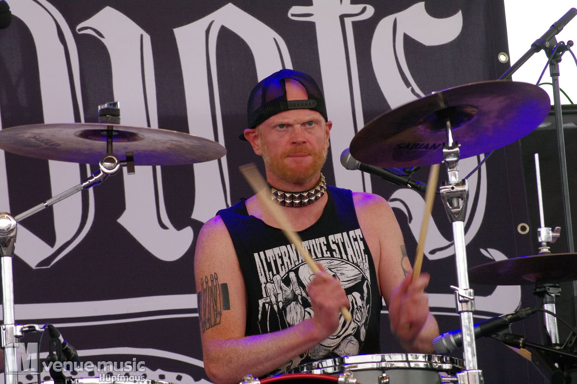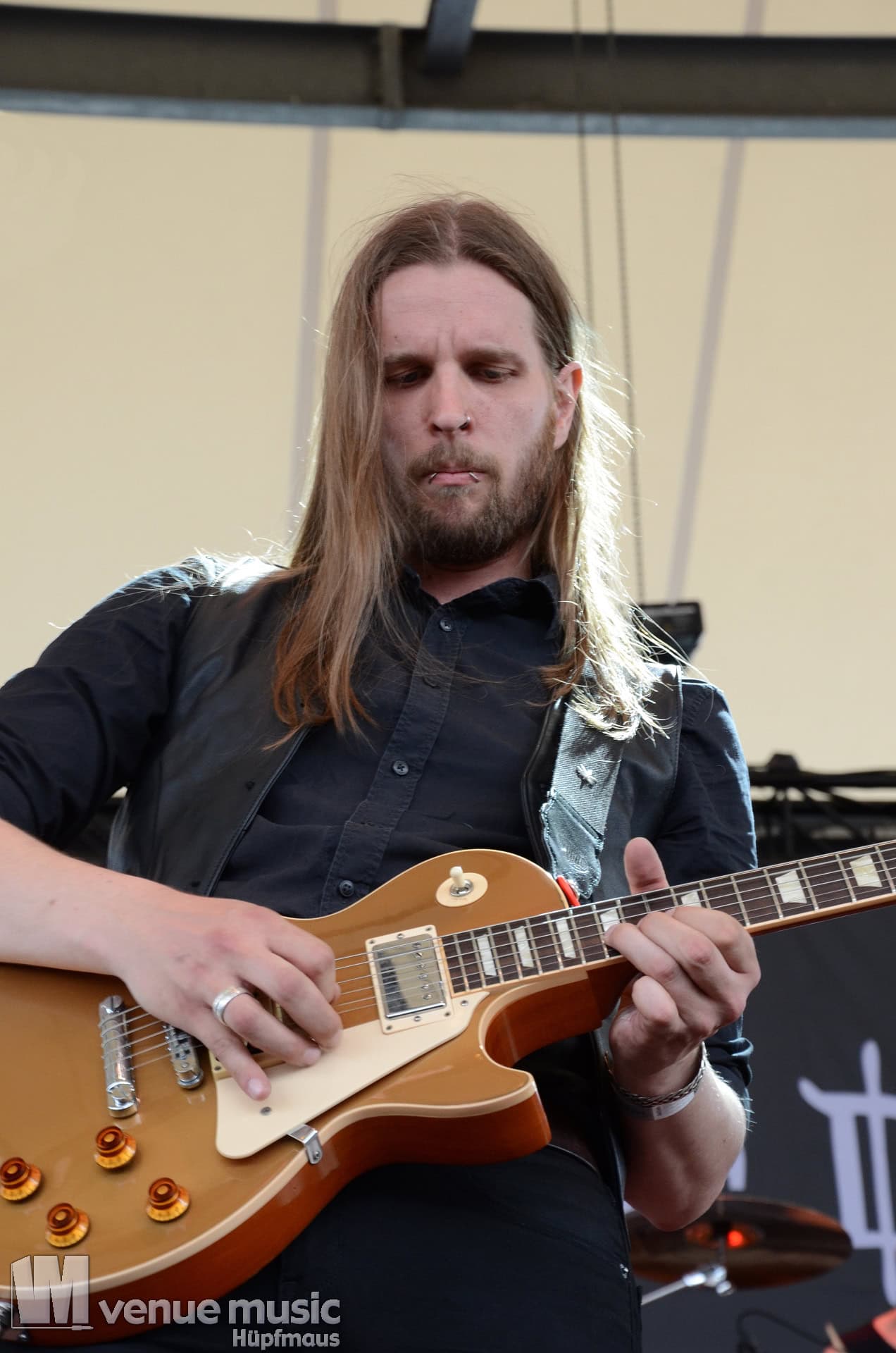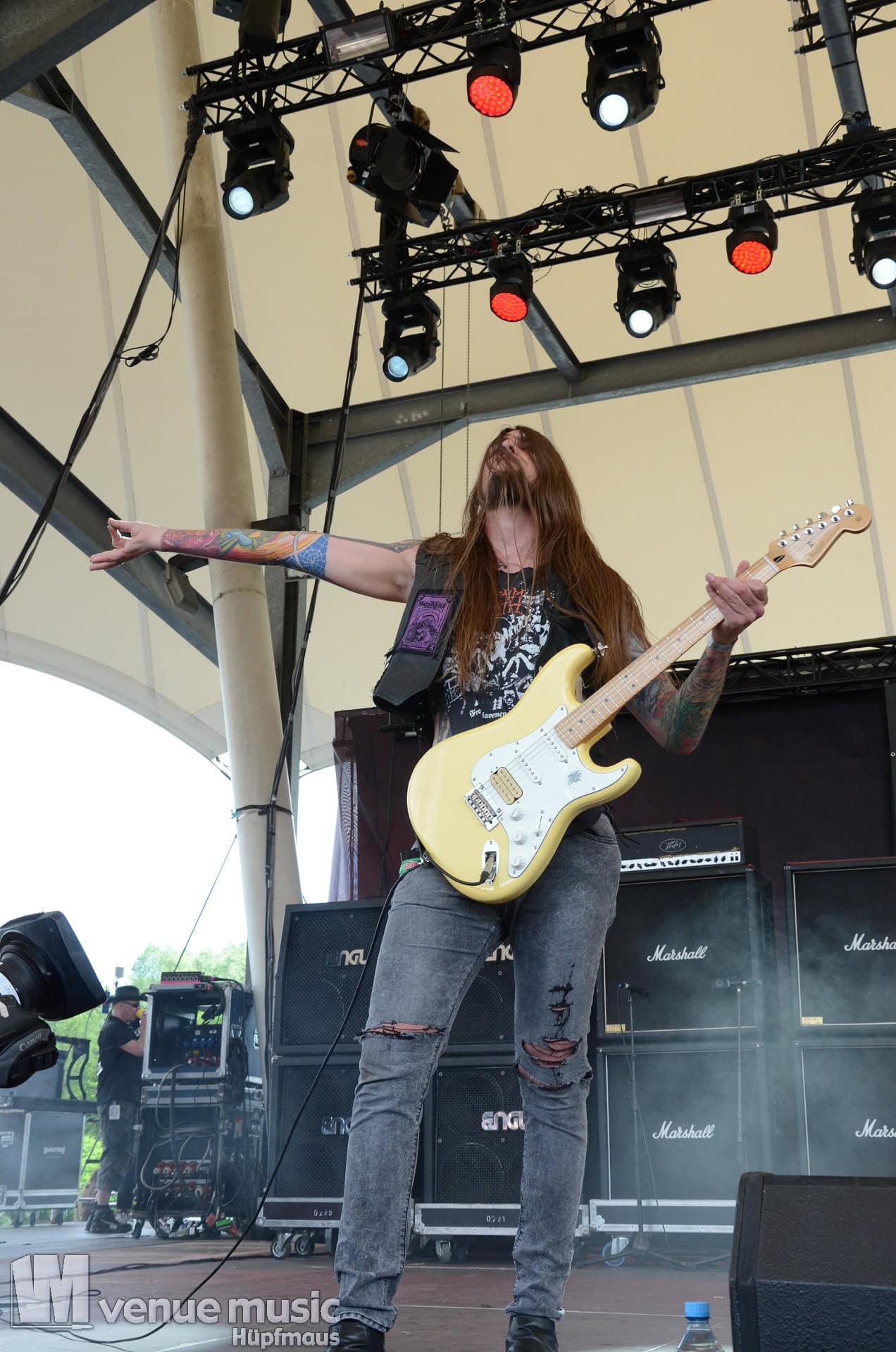 Aber nun weiter zum Festival: schnell das Band an der Ausgabe geholt, Fotopass: check. Die erste Band für mich sollten Chapel of Disease sein. Das letzte Album „…And as We Have Seen the Storm, We Have Embraced the Eye“ war noch nicht sehr alt und wurde von uns recht oft gehört. Daher hatte ich mich darauf sehr gefreut. Allerdings war ich irgendwie noch nicht richtig auf dem Festival angekommen. Zumindest konnten mich die Kölner irgendwie nicht so ganz mitreißen. Nur der letzte „Song of the Gods“, den ich direkt an seinem Intro erkannte, der kam dann richtig gut. Insgesamt waren es auch nur 5 Songs, denn die Titel von Chapel of Disease sind allesamt eher etwas länger.