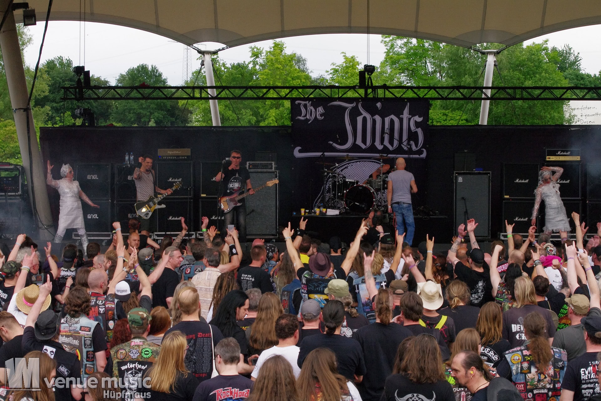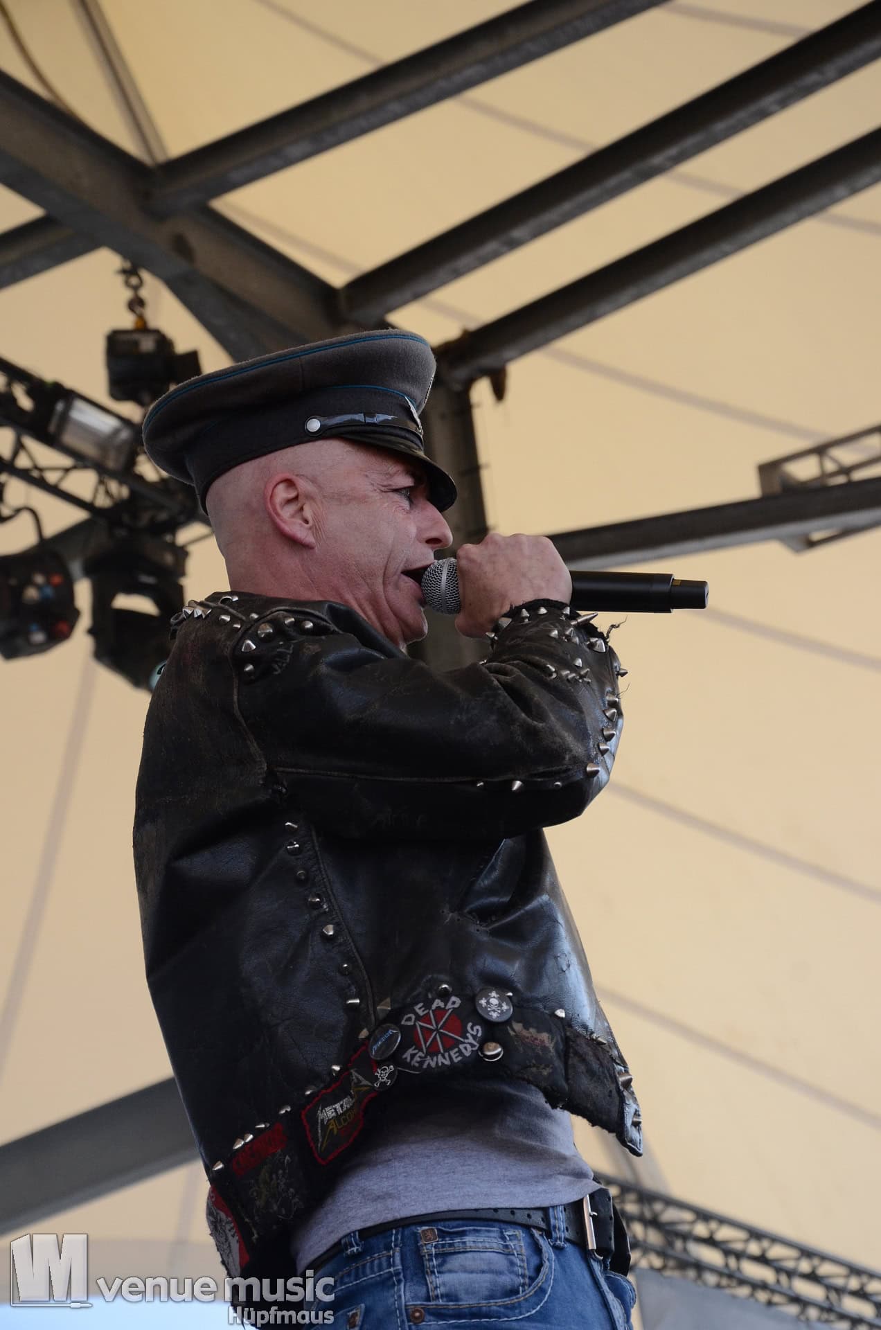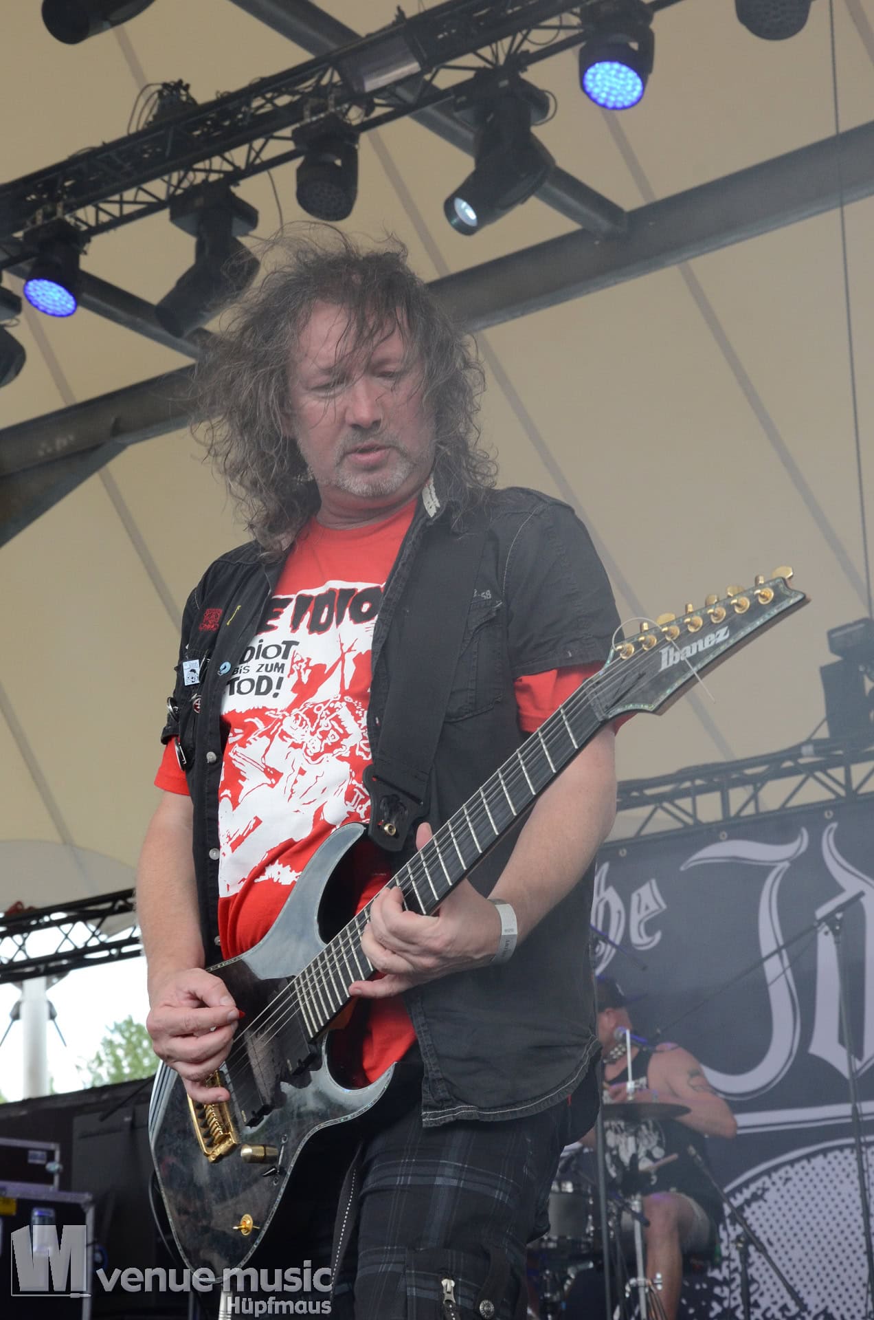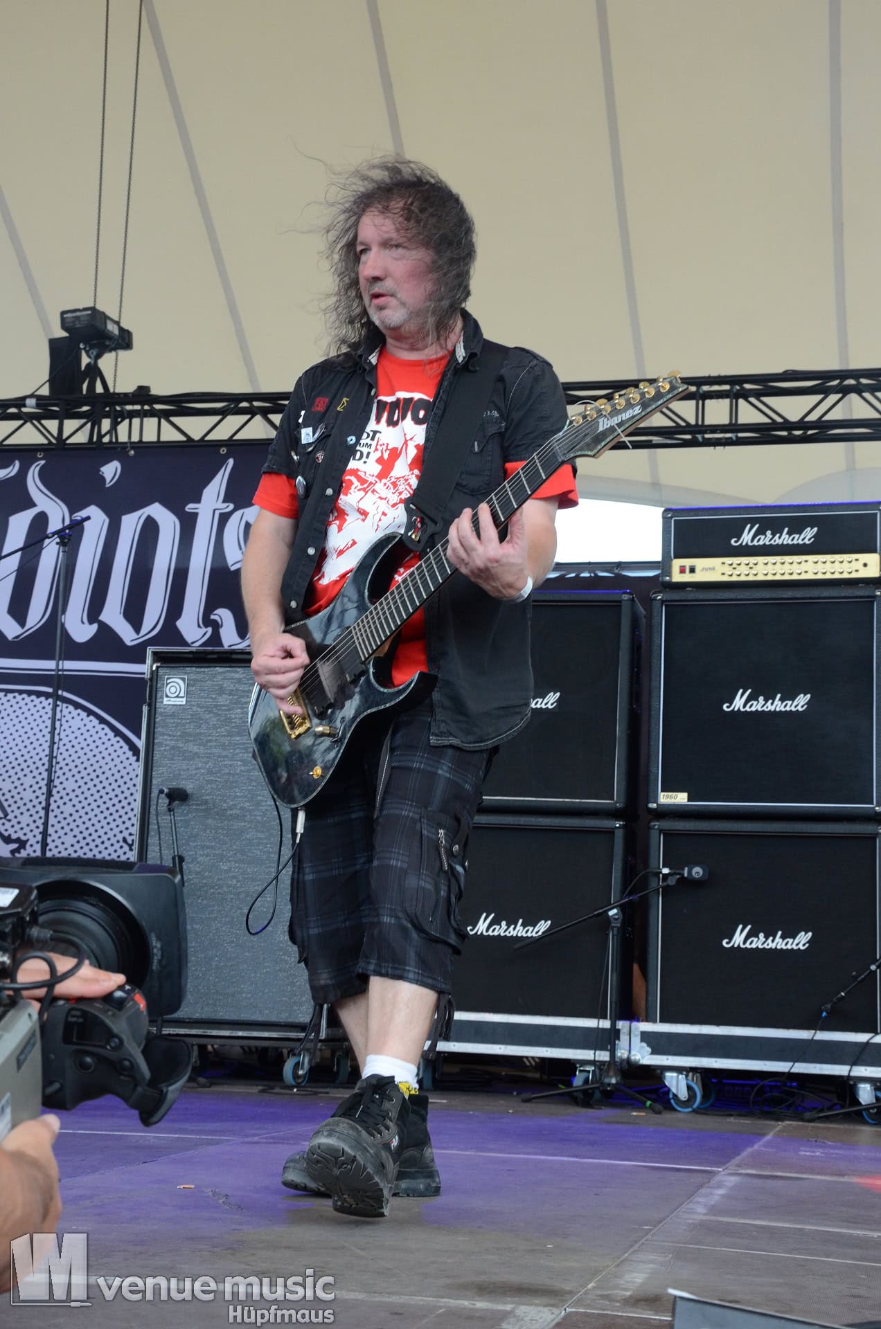 The Idiots kann ich vorher nicht, aber sie haben mir richtig Spaß gemacht. Die deutsche Punkband gibt es schon seit 1978 (OK, mit einer längeren Pause). Vielleicht kenne ich ja sogar den einen oder anderen Song und habe ihn nicht mit der Band in Verbindung gebracht. Auf jeden Fall haben sie echt Spaß und Stimmung gemacht, es gab ein schönes Moshpit. Sänger Hannes hatte ein cooles Shirt an – R.I.P. Jeff Hanneman!