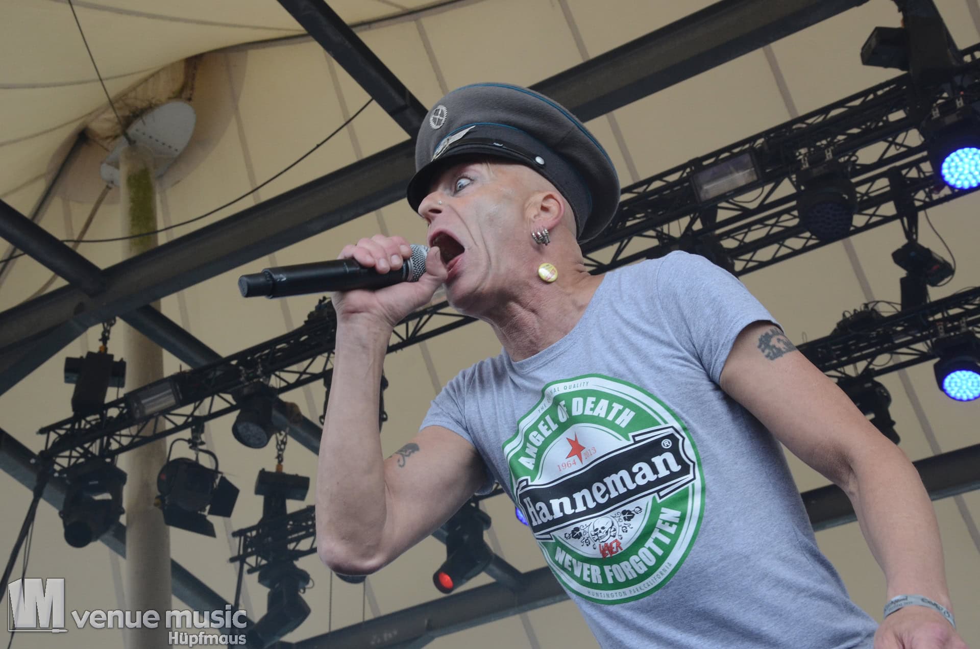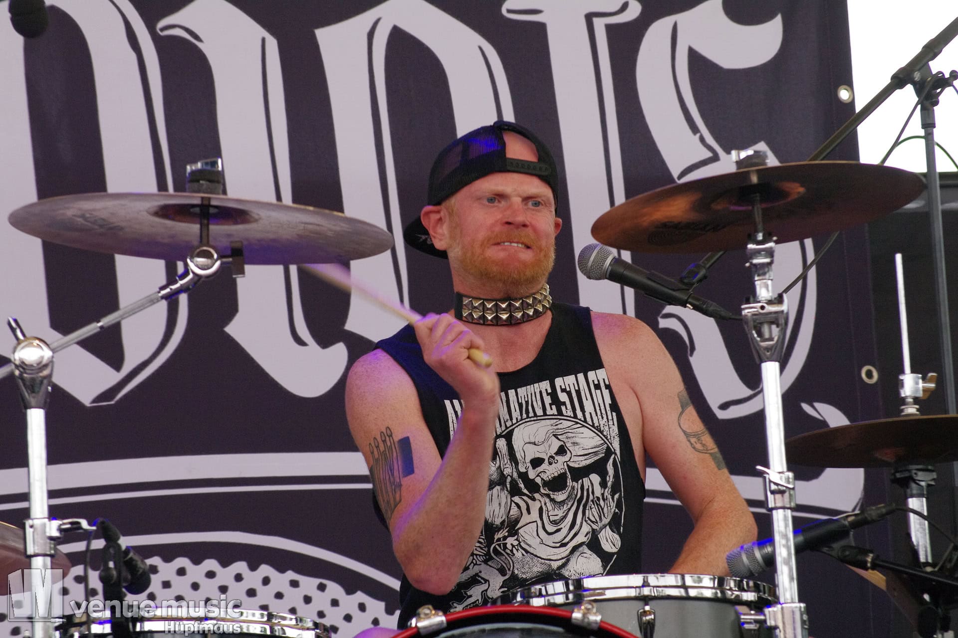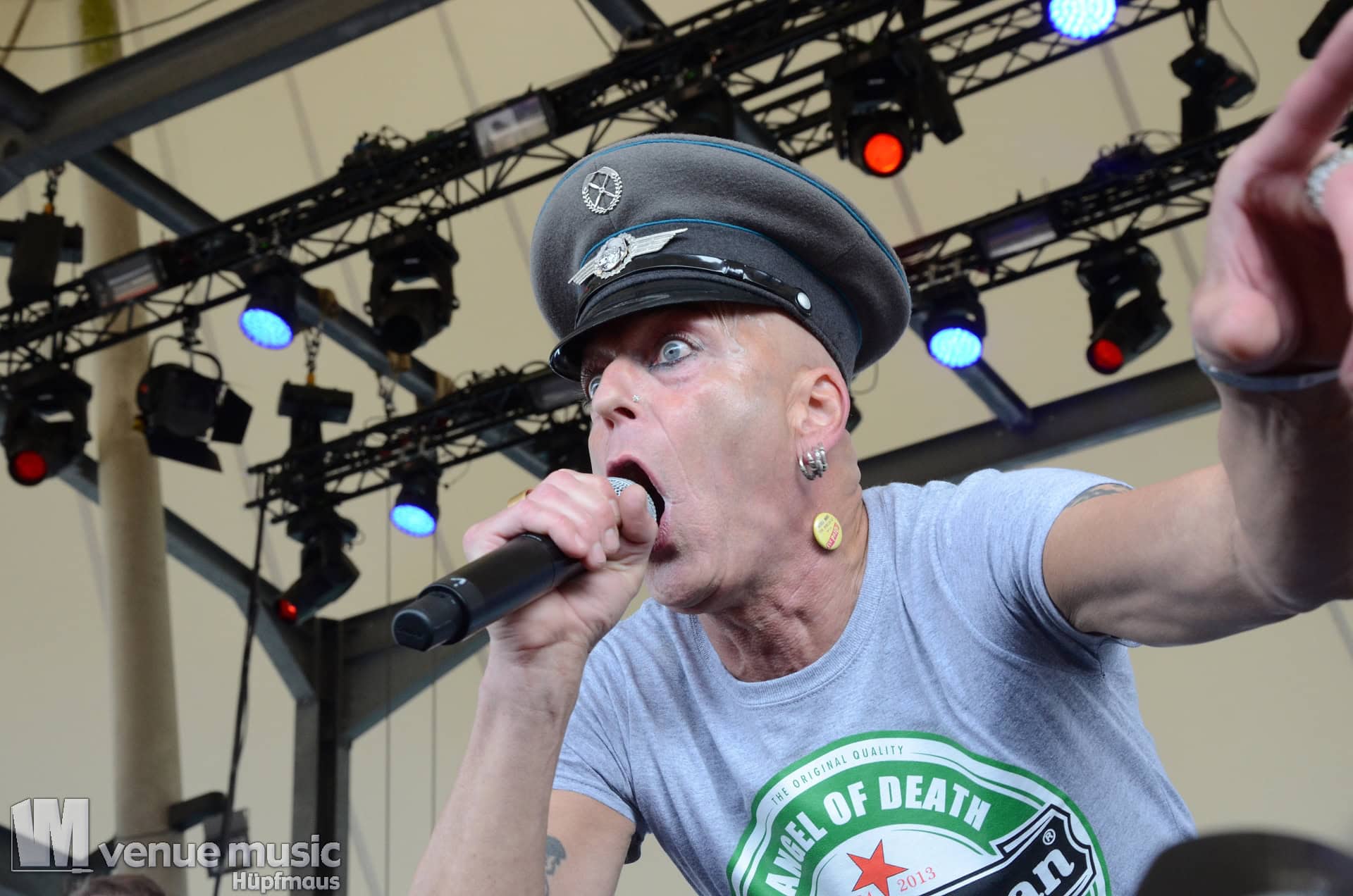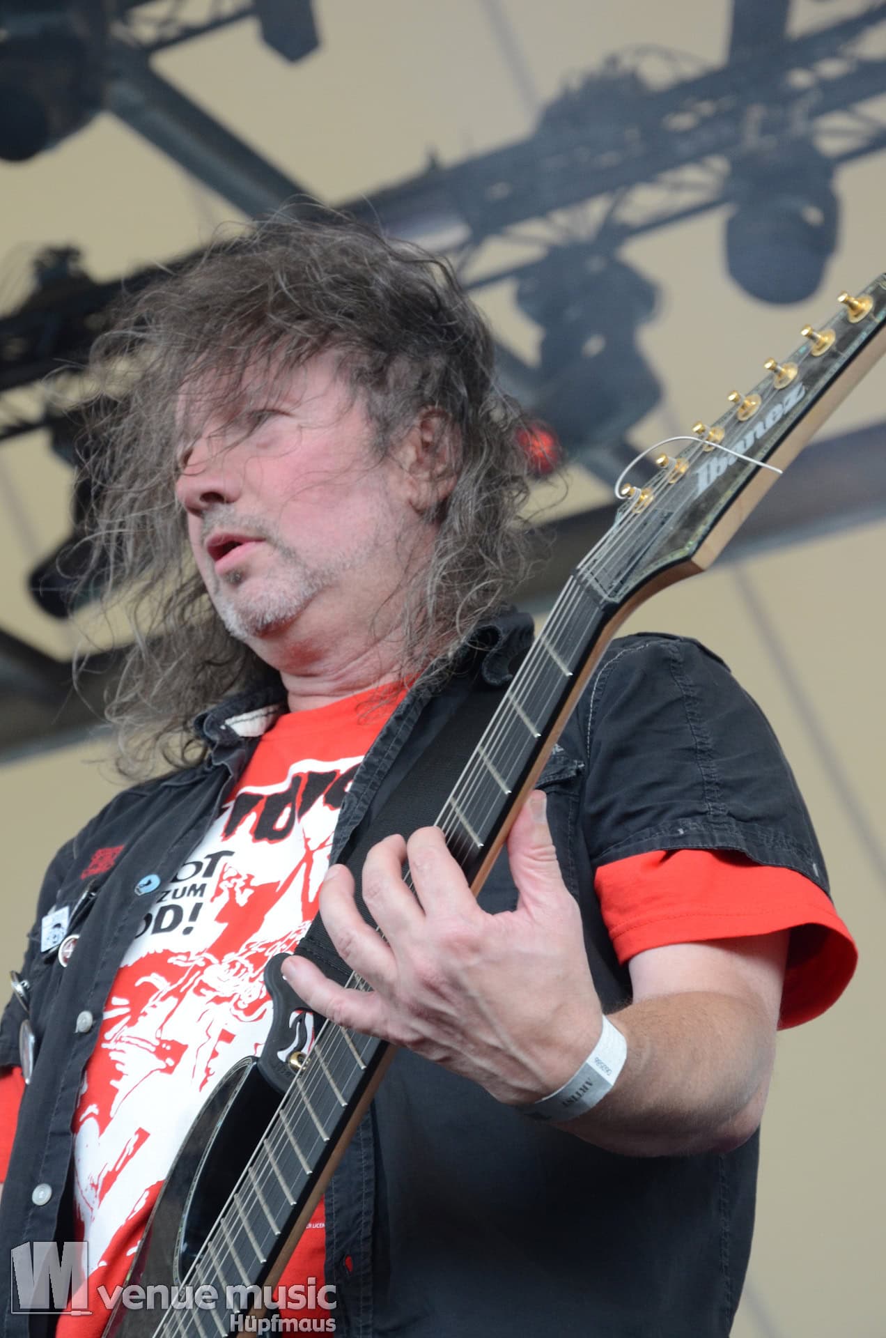 The Idiots kann ich vorher nicht, aber sie haben mir richtig Spaß gemacht. Die deutsche Punkband gibt es schon seit 1978 (OK, mit einer längeren Pause). Vielleicht kenne ich ja sogar den einen oder anderen Song und habe ihn nicht mit der Band in Verbindung gebracht. Auf jeden Fall haben sie echt Spaß und Stimmung gemacht, es gab ein schönes Moshpit. Sänger Hannes hatte ein cooles Shirt an – R.I.P. Jeff Hanneman!