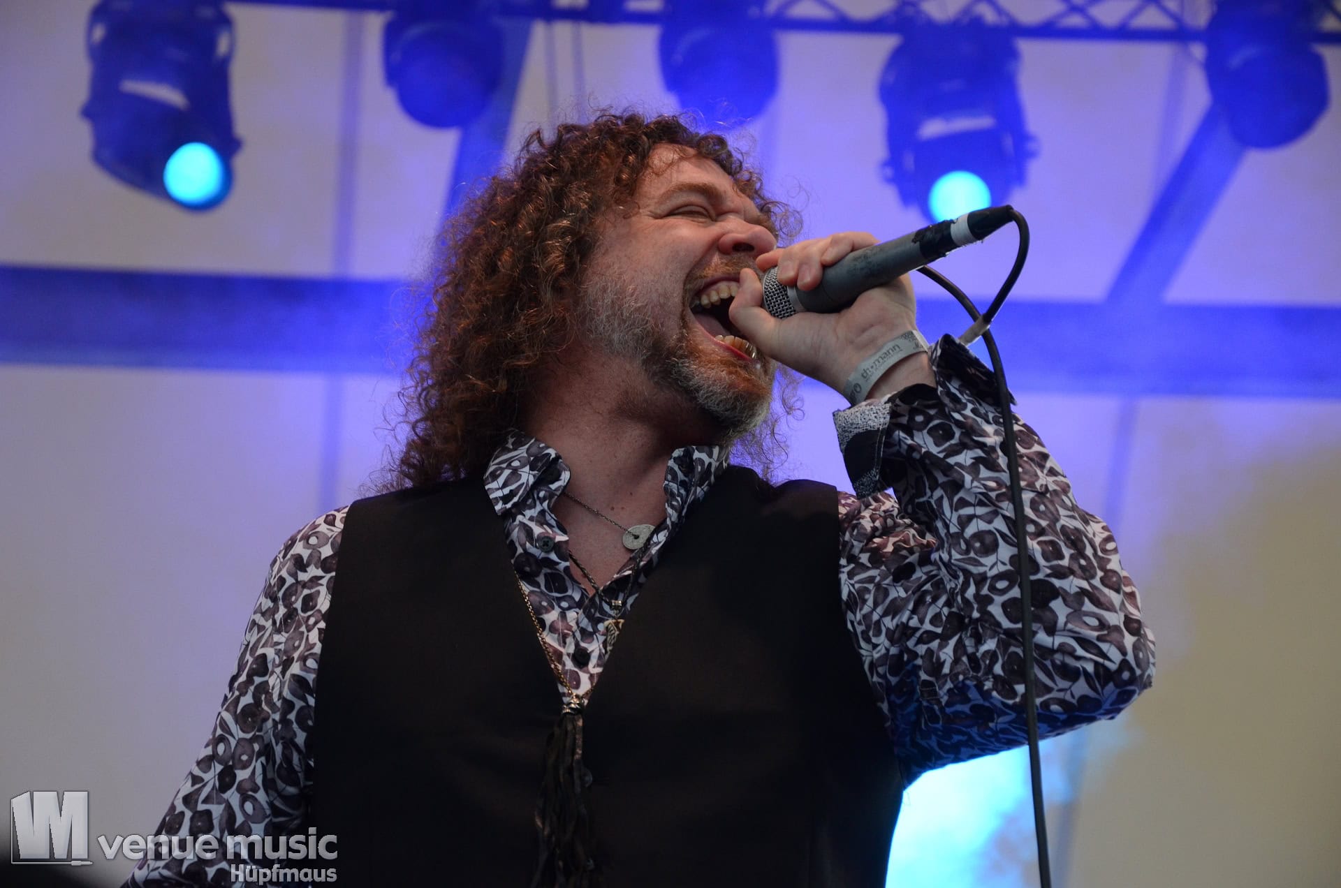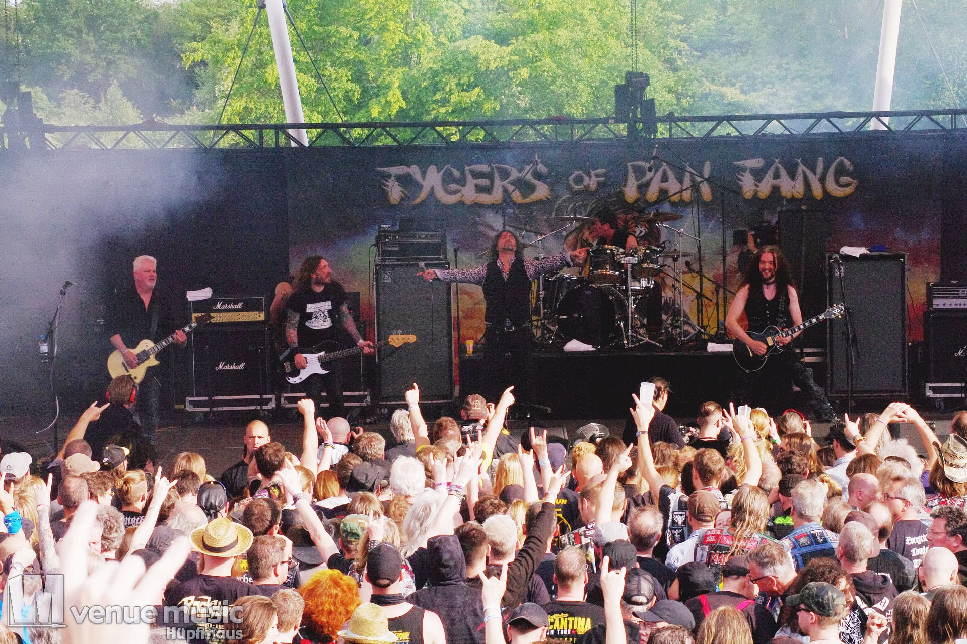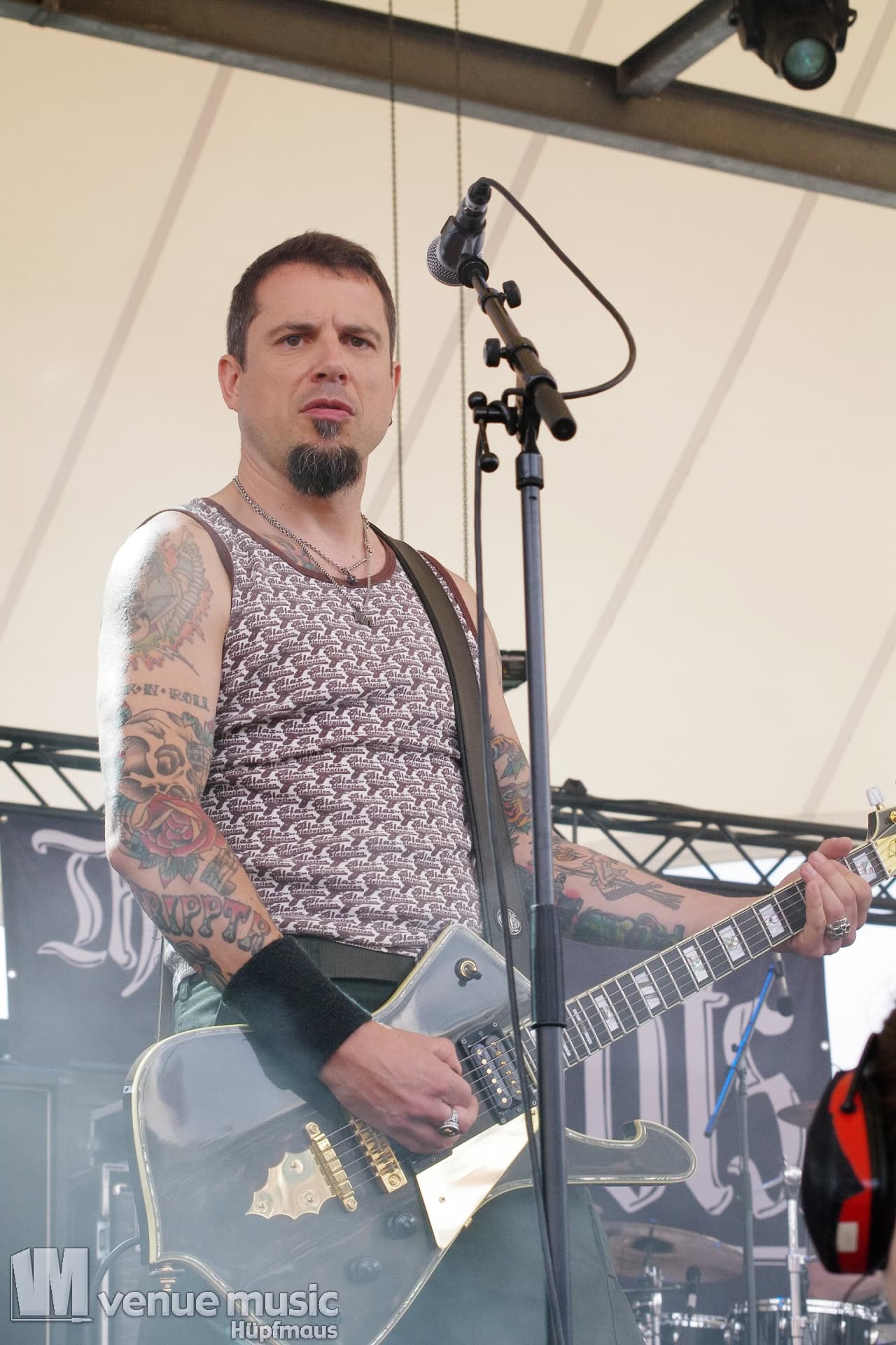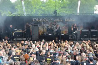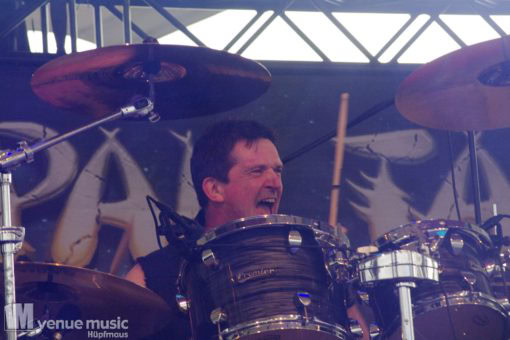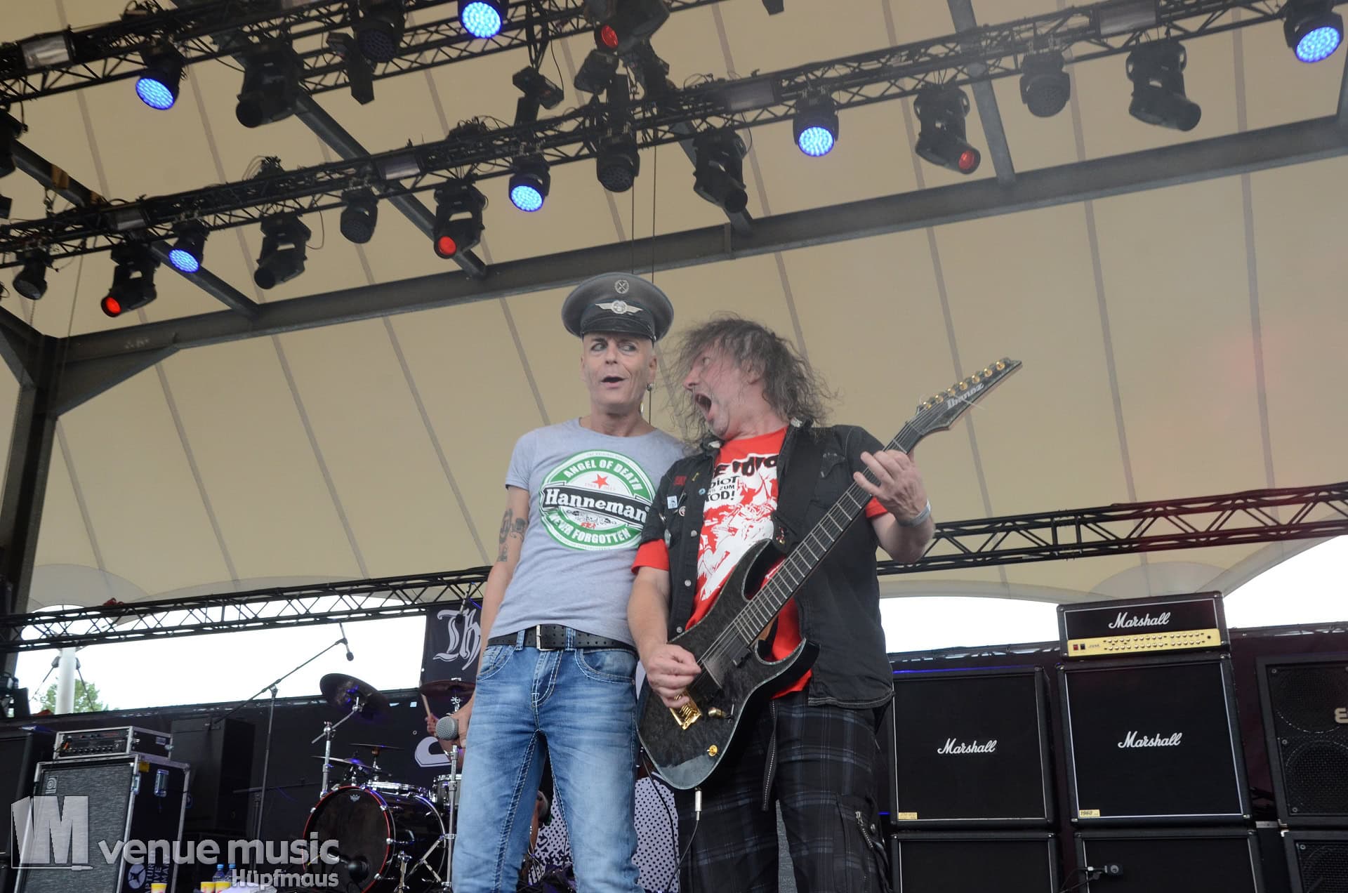 Pünktlich zum Beginn des Auftritts der „Tygers of Pan Tang“ fing es an zu schütten. Was für ein Glück, dass wir genau zu der Zeit im Fotograben waren. Auch die Briten sind bereits seit 1978 aktiv auf der Bühne und veröffenlichten in der Zeit 30 Alben, Live-Alben und Best-Of-CDs. Das nennt man produktiv. Mich überzeugt NWoBHM allerdings nicht ganz so, aber nun ja, man muss ja nicht alles total toll finden und der Rest vom Festivalgelände will ja auch erkundet und mit dem einen oder anderen Freund oder Bekannten ein Schwätzchen gehalten werden. Denn auch dafür steht das Rock Hard Festival: viele nette Leute treffen!