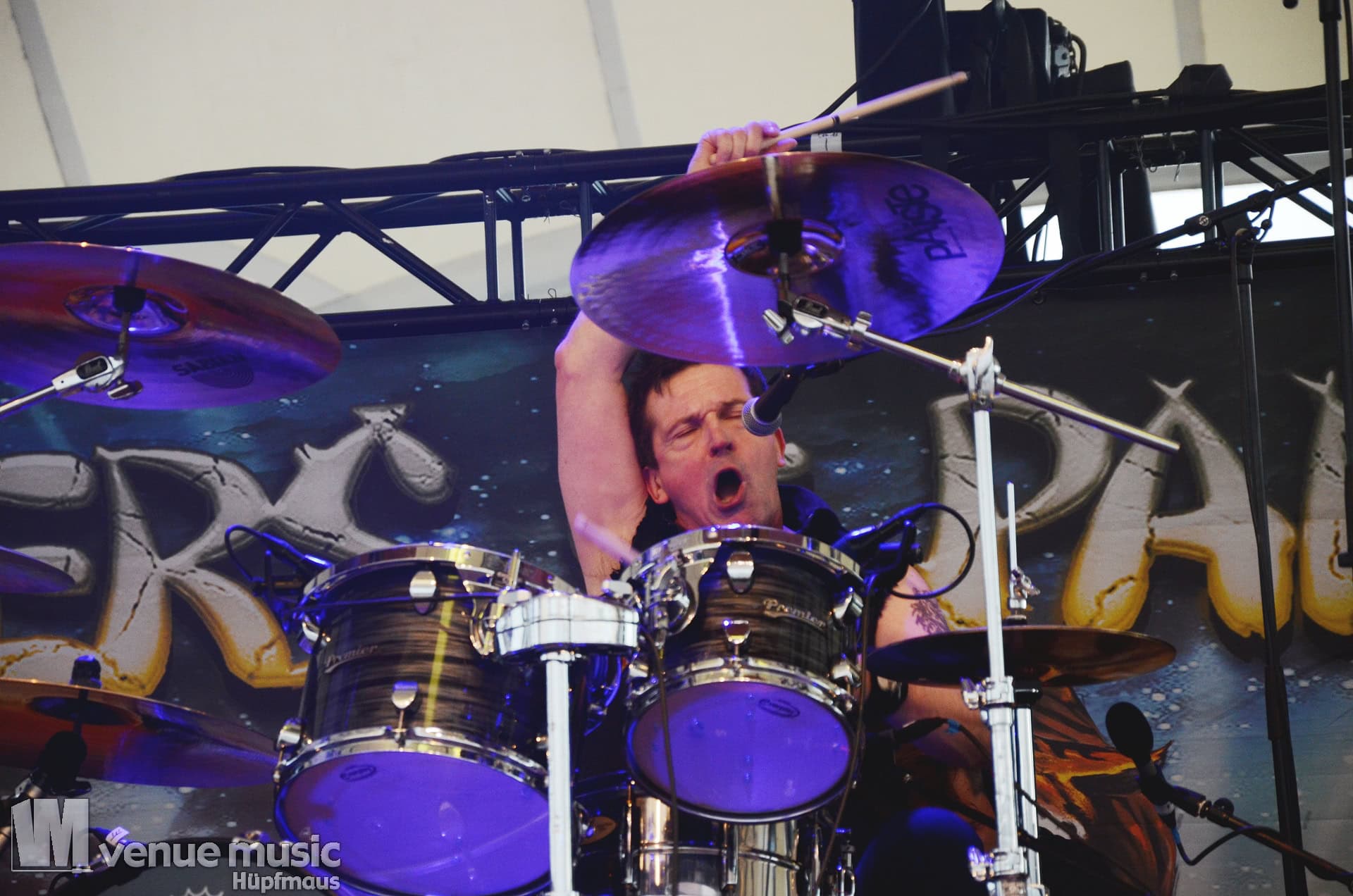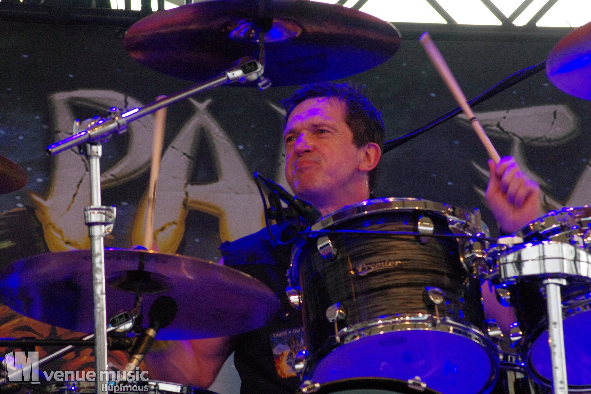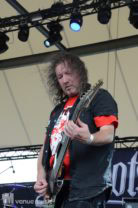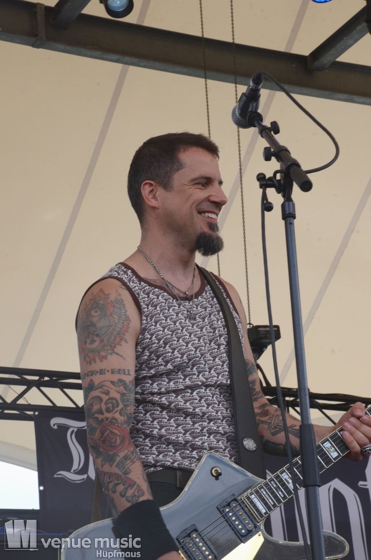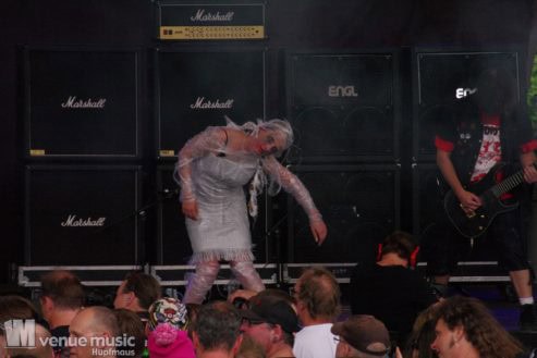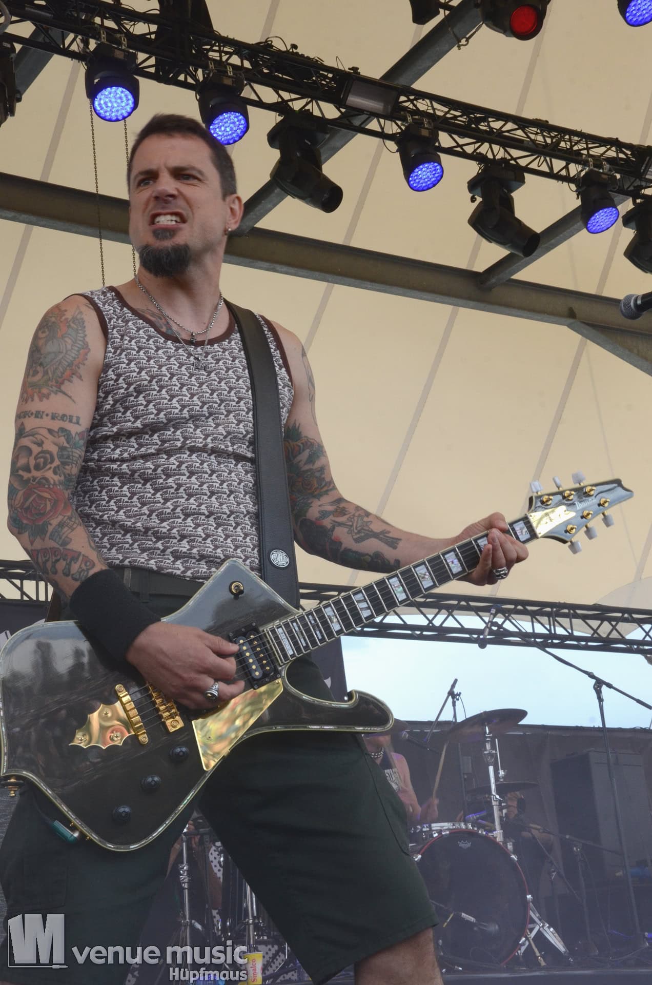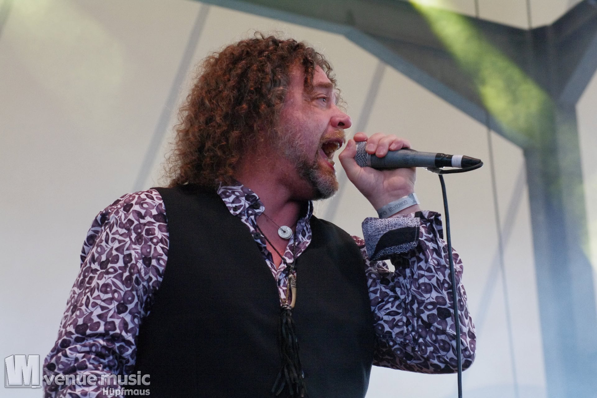 Pünktlich zum Beginn des Auftritts der „Tygers of Pan Tang“ fing es an zu schütten. Was für ein Glück, dass wir genau zu der Zeit im Fotograben waren. Auch die Briten sind bereits seit 1978 aktiv auf der Bühne und veröffenlichten in der Zeit 30 Alben, Live-Alben und Best-Of-CDs. Das nennt man produktiv. Mich überzeugt NWoBHM allerdings nicht ganz so, aber nun ja, man muss ja nicht alles total toll finden und der Rest vom Festivalgelände will ja auch erkundet und mit dem einen oder anderen Freund oder Bekannten ein Schwätzchen gehalten werden. Denn auch dafür steht das Rock Hard Festival: viele nette Leute treffen!