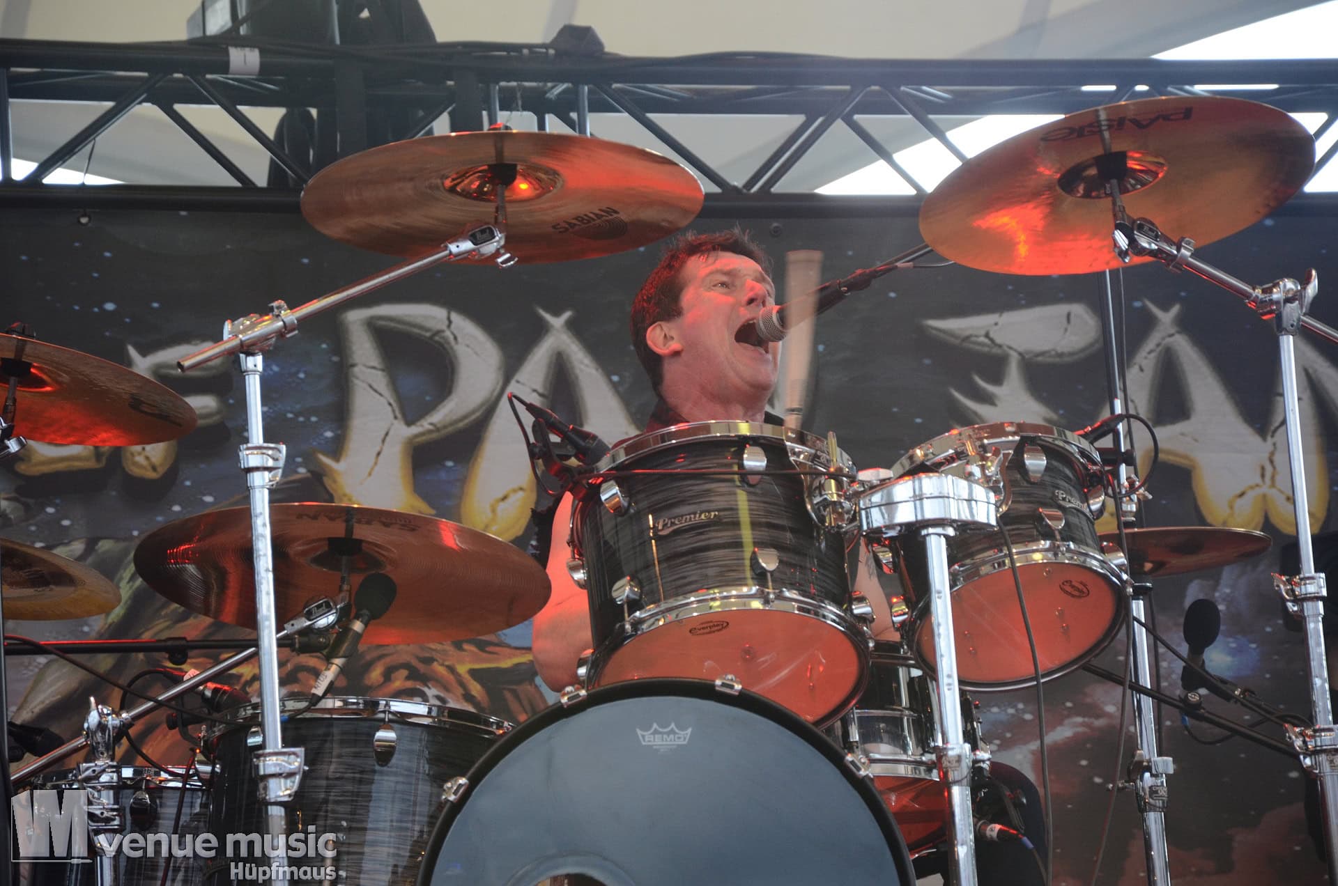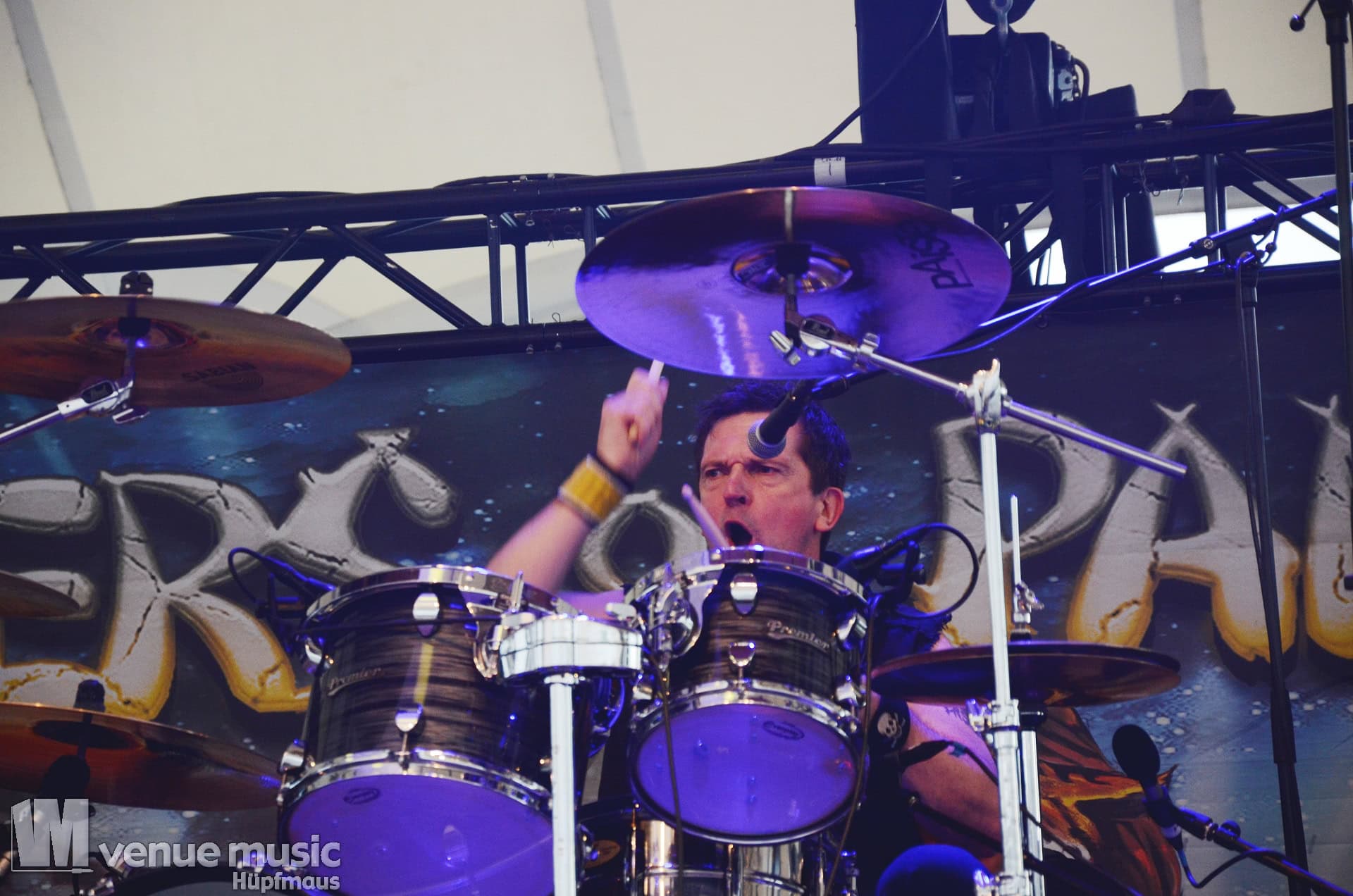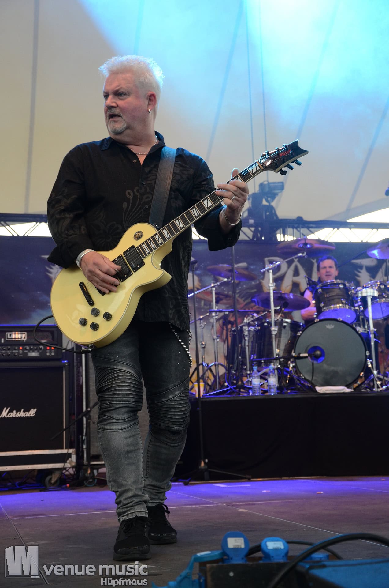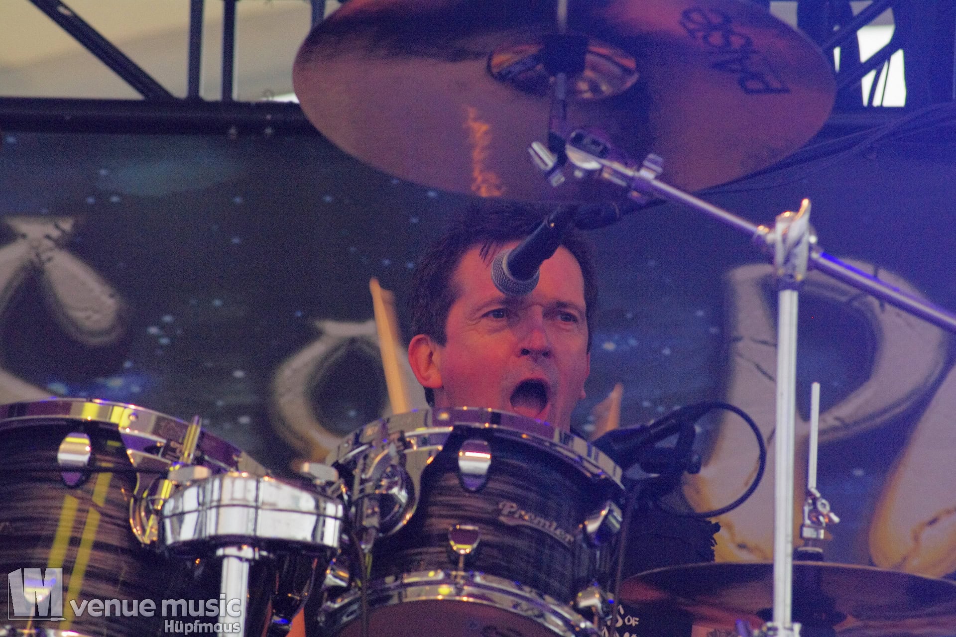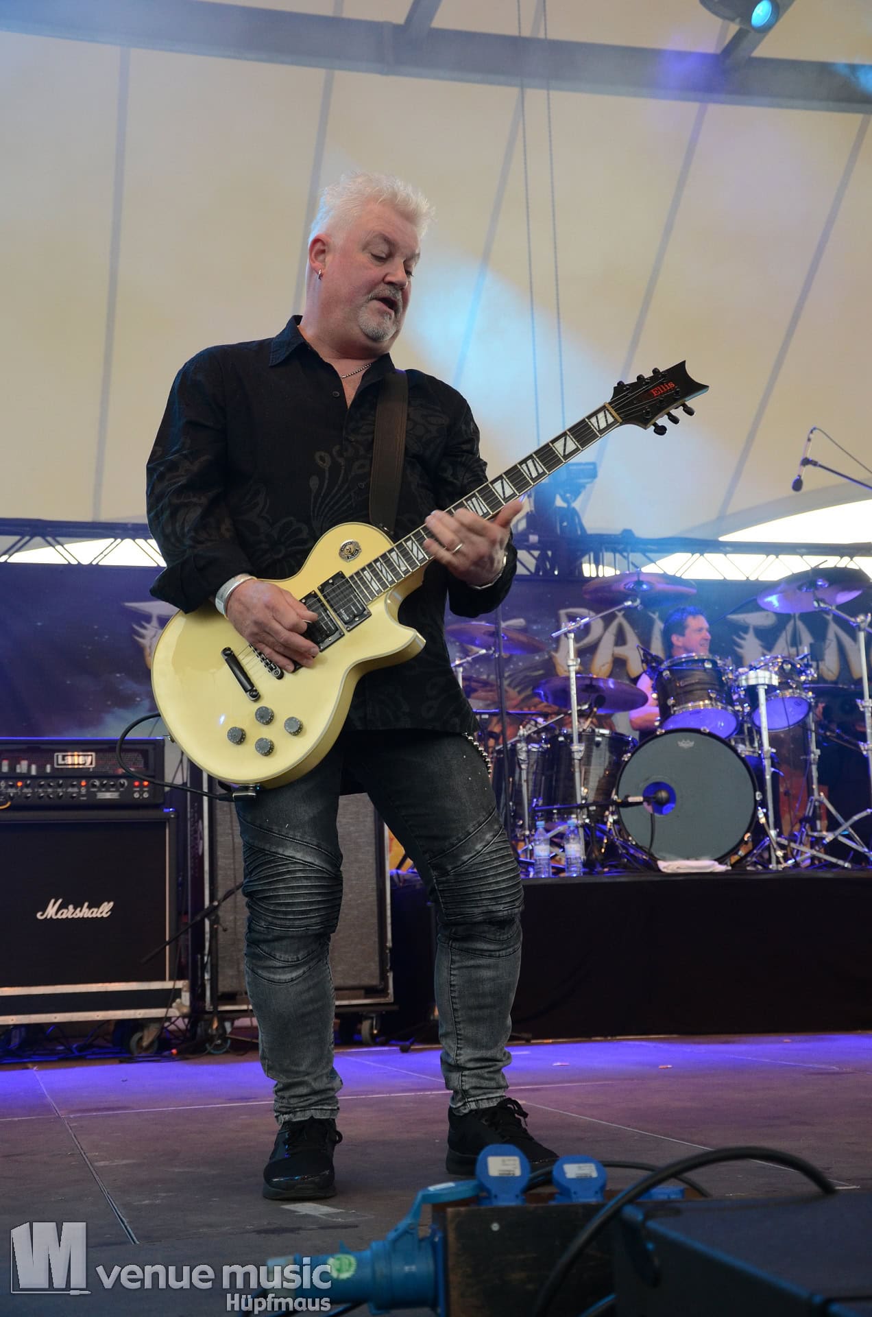 Pünktlich zum Beginn des Auftritts der „Tygers of Pan Tang“ fing es an zu schütten. Was für ein Glück, dass wir genau zu der Zeit im Fotograben waren. Auch die Briten sind bereits seit 1978 aktiv auf der Bühne und veröffenlichten in der Zeit 30 Alben, Live-Alben und Best-Of-CDs. Das nennt man produktiv. Mich überzeugt NWoBHM allerdings nicht ganz so, aber nun ja, man muss ja nicht alles total toll finden und der Rest vom Festivalgelände will ja auch erkundet und mit dem einen oder anderen Freund oder Bekannten ein Schwätzchen gehalten werden. Denn auch dafür steht das Rock Hard Festival: viele nette Leute treffen!