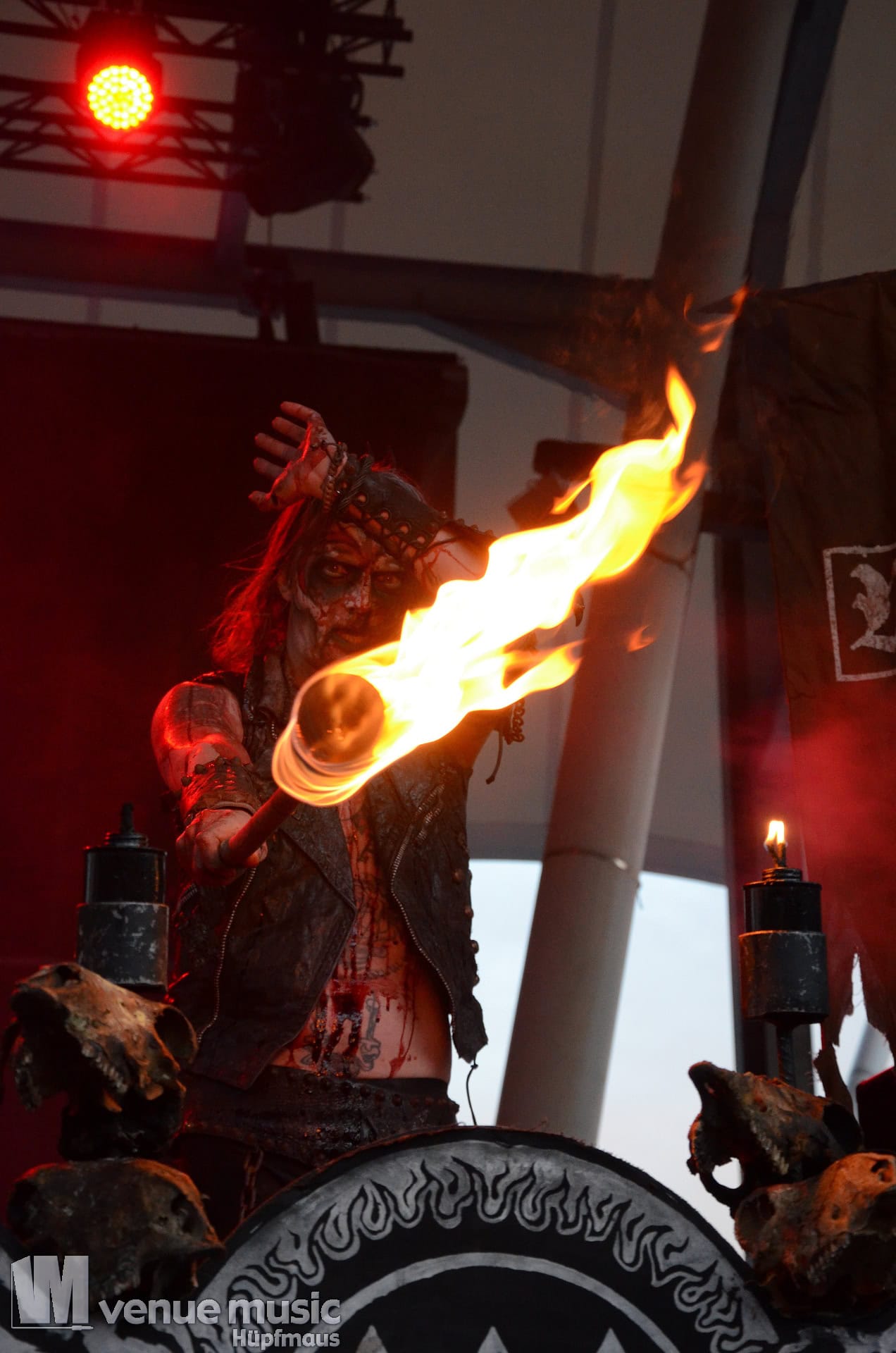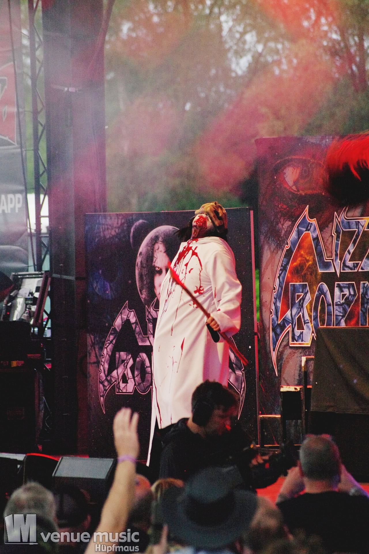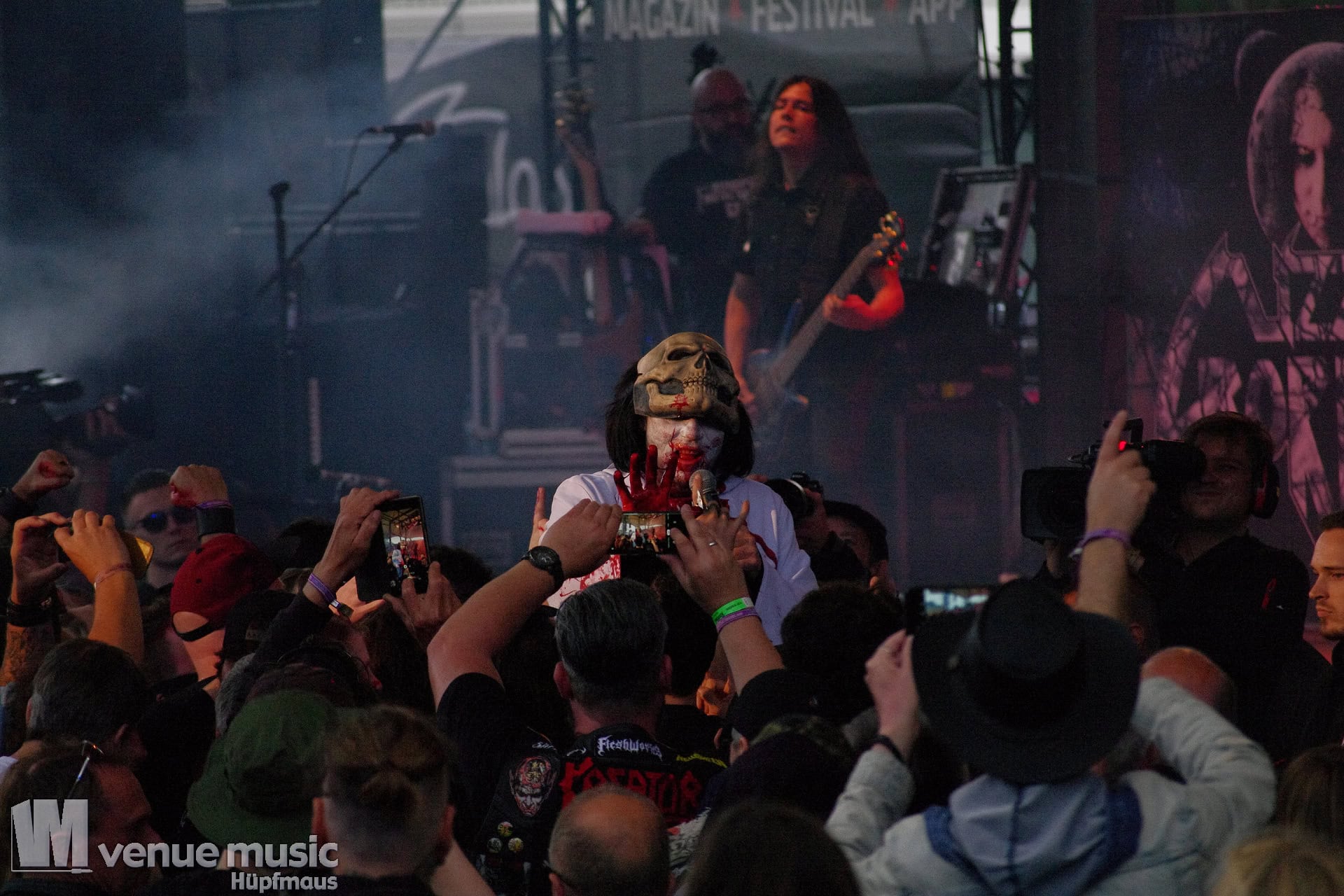 Lizzy Borden boten was Kostüme etc. angeht auf jeden Fall die beste Show des Festivals. Bei nahezu jedem Song sah Sänger Lizzy anders aus. Teilweise waren die Masken echt gruselig, zum Beispiel das dreifache Gesicht. Die Stimmung war super, das machte Laune. Die Fans in den ersten Reihen kamen dann noch sehr „blutig“ auf ihre Kosten, denn bewaffnet mit einem Eimer Kunstblut und was auch immer das sonst noch so darstellte, ging Lizzy direkt zum Publikum und es gab dann wohl nur noch wenige, die nicht zumindest ein bisschen eingesaut waren. Fotograben inklusive – der stank dann bei Watain ganz schön.