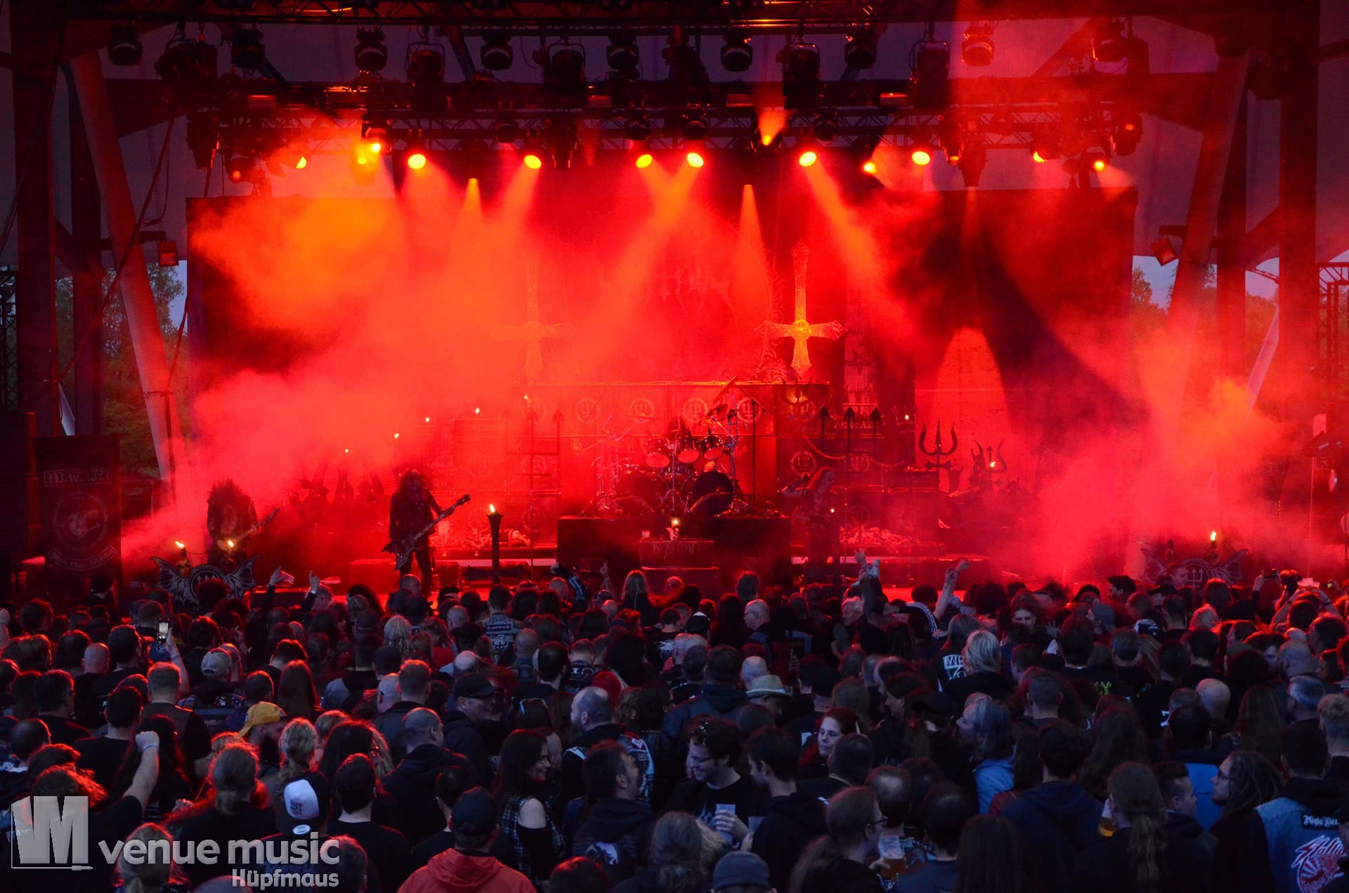 Hatten sich die Fans zu Lizzy Borden noch über den Livestream gefreut, wurden sie bei Watain enttäuscht, denn der Stream fiel aus. Aufgrund technischer Probleme konnten Watain nicht ihre volle Show zeigen und so sollte das auch nicht gestreamt werden. Auf jeden Fall gab es nur wenig Feuer während des Auftritts – bei dem Wind kein Wunder, das wäre viel zu gefährlich gewesen. Eigentlich würde man bei Watain auch eine Show mit Blut etc. erwarten, aber nach dem Lizzy Borden dafür schon gesorgt hatten, wäre das auch irgendwie doppelt gewesen. Bereits 2010 hatte ich Watain im Turock mal gesehen, aber dieses Mal konnten sie mich persönlich nicht ganz mitreißen. Doch genügend andere Fans feierten die Band ab. Vielleicht war mir am Ende doch einfach zu kalt und ich war zu müde, keine Ahnung, jedenfalls sprang der Funke bei mir nicht über und so bin ich einen Bus früher gefahren und habe damit das Ende des Auftritts verpasst.