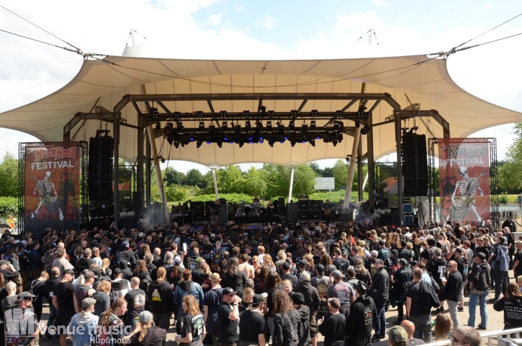 Tag 2 des Rock Hard Festivals startete für mich mit Carnivore A.D.. Die Bühne wirkte recht leer. Zum einen, weil es nur drei Musiker waren, aber es war auch ungewohnt, dass kein Backdrop den Hintergrund zierte. Es war dafür schlicht zu windig. Dafür hat Baron Misuraca Haare für drei ;) Dass die sich bei dem Wind nicht an seinem Bass verhedderten, war ein Wunder..
