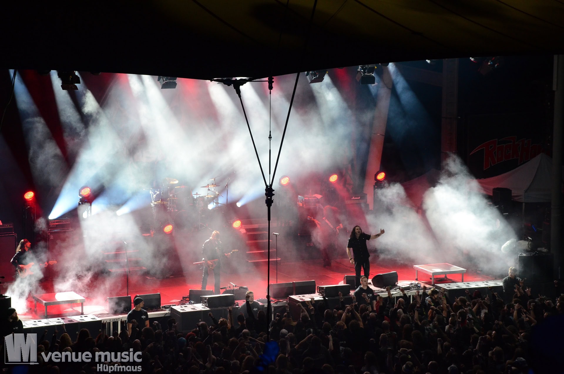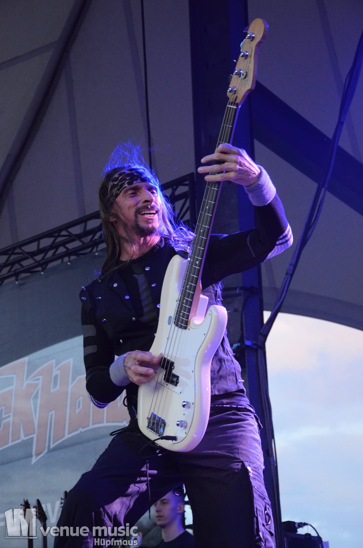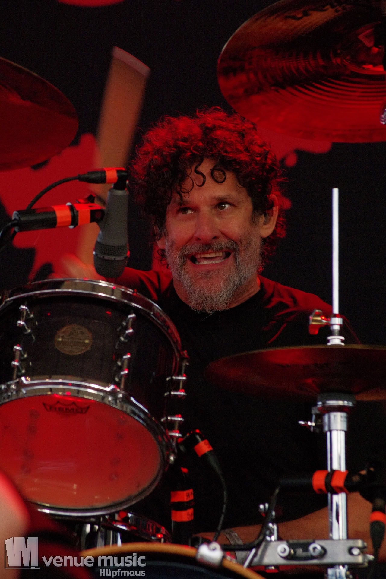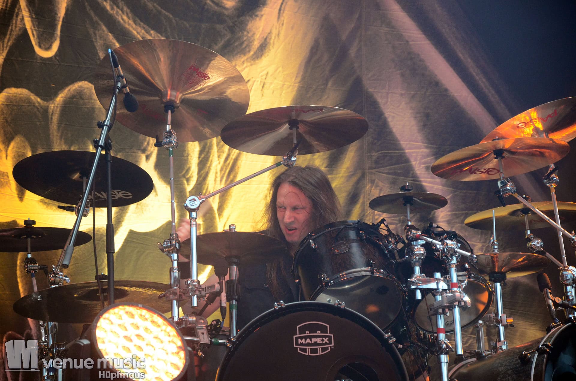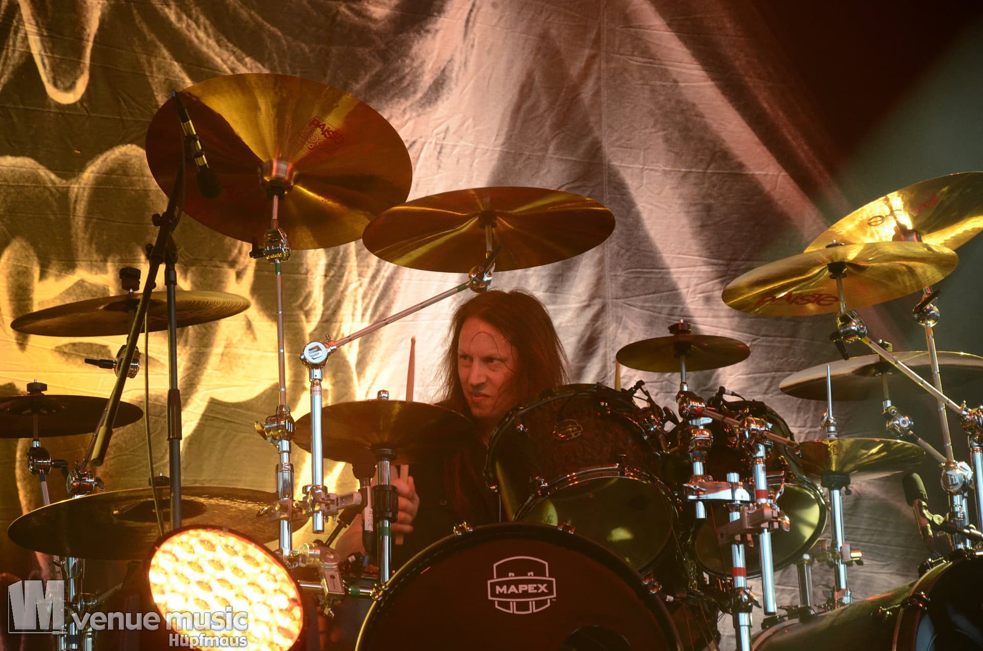 Bereits zu Skid Row hatte der Wind sich so weit gelegt, dass es wieder möglich war die Backdrops der Bands aufzuhängen und so konnte auch Cannibal Corpse ihres nutzen. Allerdings gab es vom ganzen Tag keine Videoaufzeichnung. Für die Fotografen im Graben natürlich schön, aber um im Nachhinein das Ganze noch mal Revue passieren zu lassen schade war. Ebenso für all diejenigen, die nicht kommen konnten, aber wenigstens dann das ganze live auf dem Bildschirm mitverfolgen wollten.