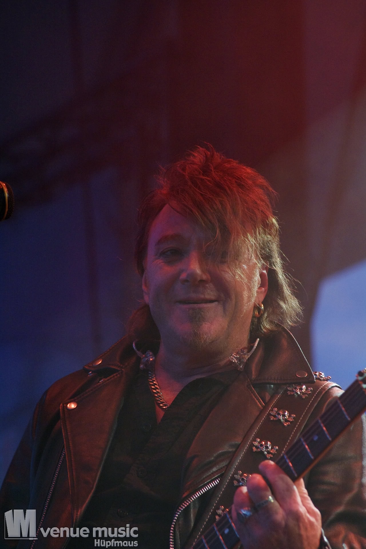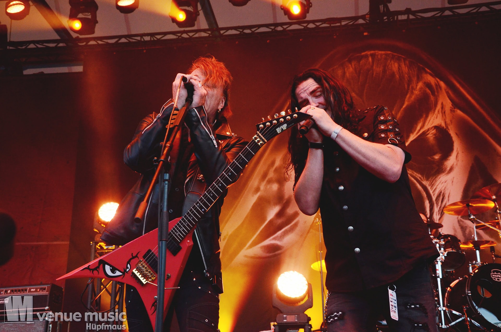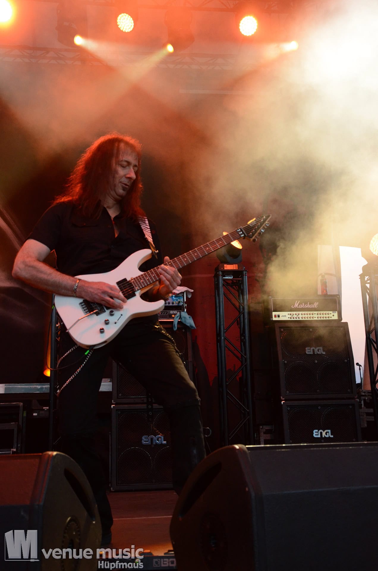 Auf Gamma Ray war ich ja persönlich schon sehr gespannt, schade dass sie mein geliebtes Cover „It´s a sin“ nicht gespielt haben, bei dem die Gitarren der absolute Wahnsinn sind. Aber man kann ja nicht alles haben. Da ich sonst fast nichts von Gamma Ray kannte, konnte ich mich entspannt nach den 3 Songs im Graben und der Possessed Autogrammstunde meinem Feierabend-Festival-Coctail widmen und den Gig genießen. Und mal ehrlich, das hat gut gerockt, so dass ich bis zum Ende geblieben bin. Auch der Rest des Publikums war begeistert – oder zumindest der größte Teil, einige traten aber schon den Heimweg an – denn es war gut voll vor der Bühne und die Band wurde abgefeiert. Mit einer Mischung aus alten Klassikern und Songs des letzten Albums (dessen Veröffenlichung auch schon wieder 5 Jahre zurück liegt) konnten Kai Hansen und seine Mannen überzeugen. Ein würdiger Headliner!