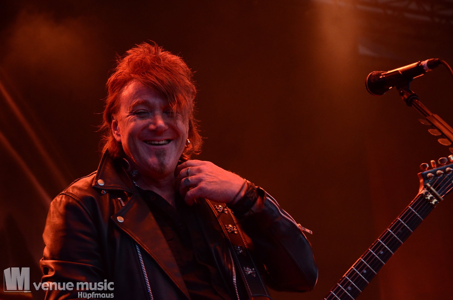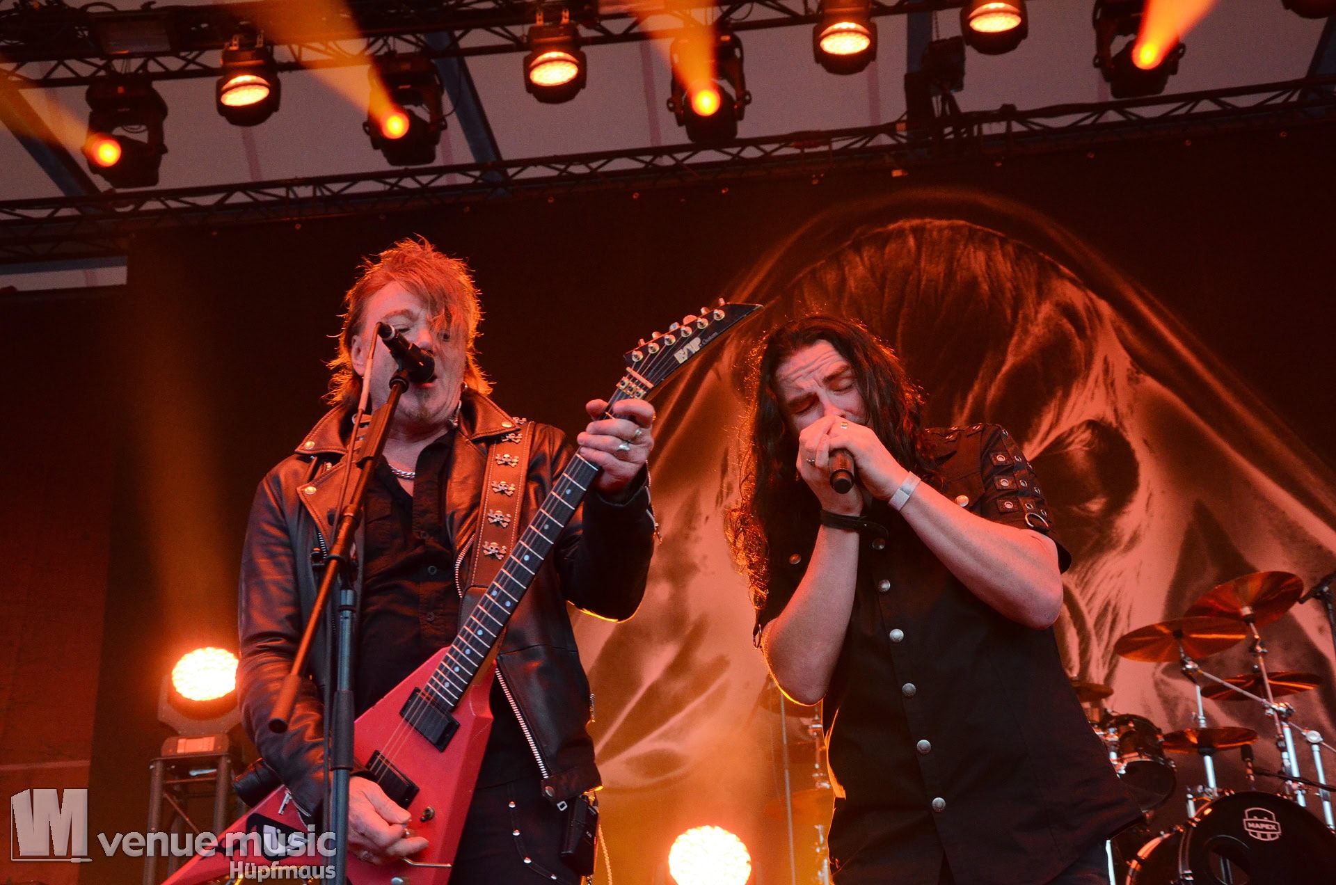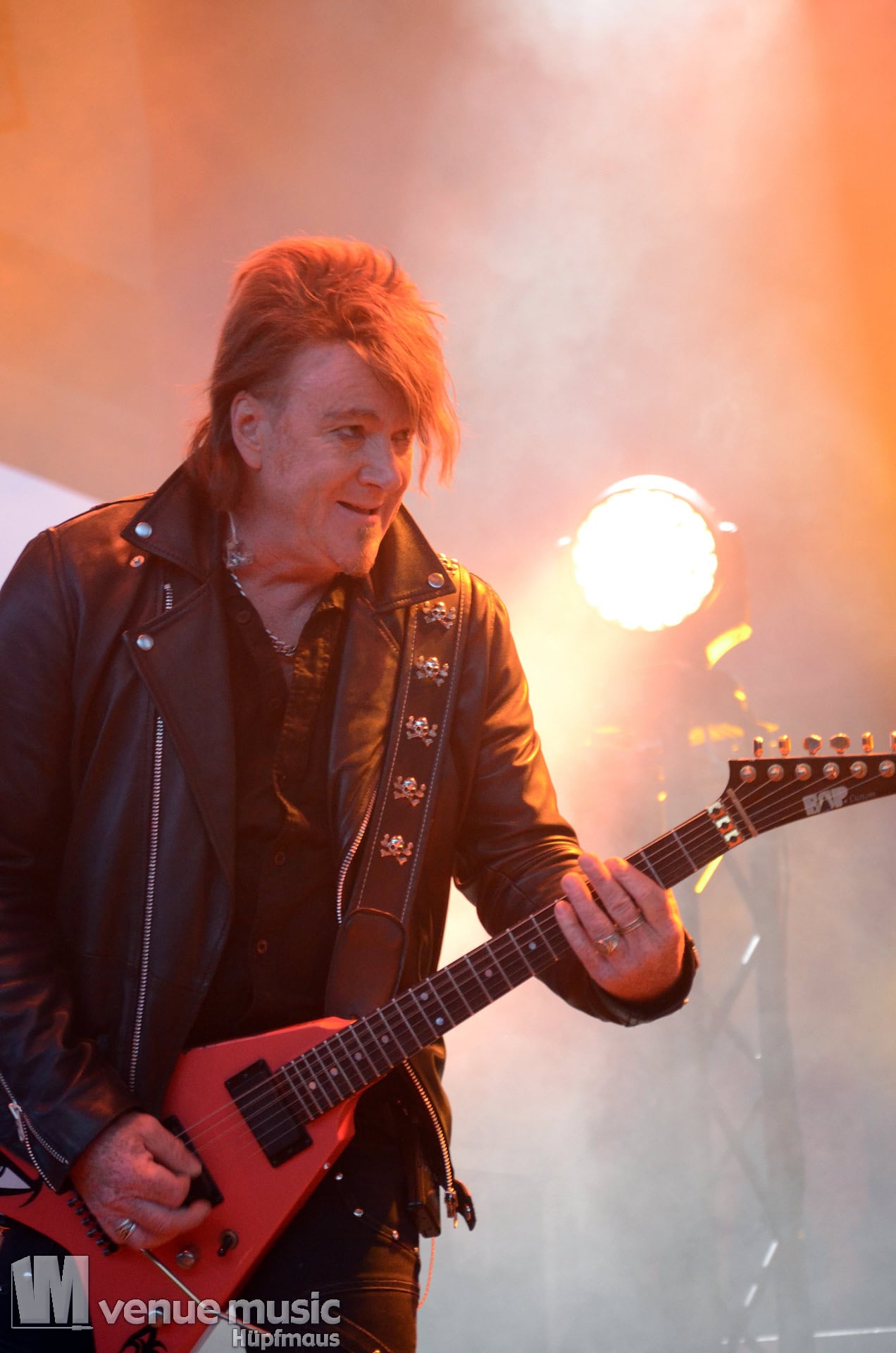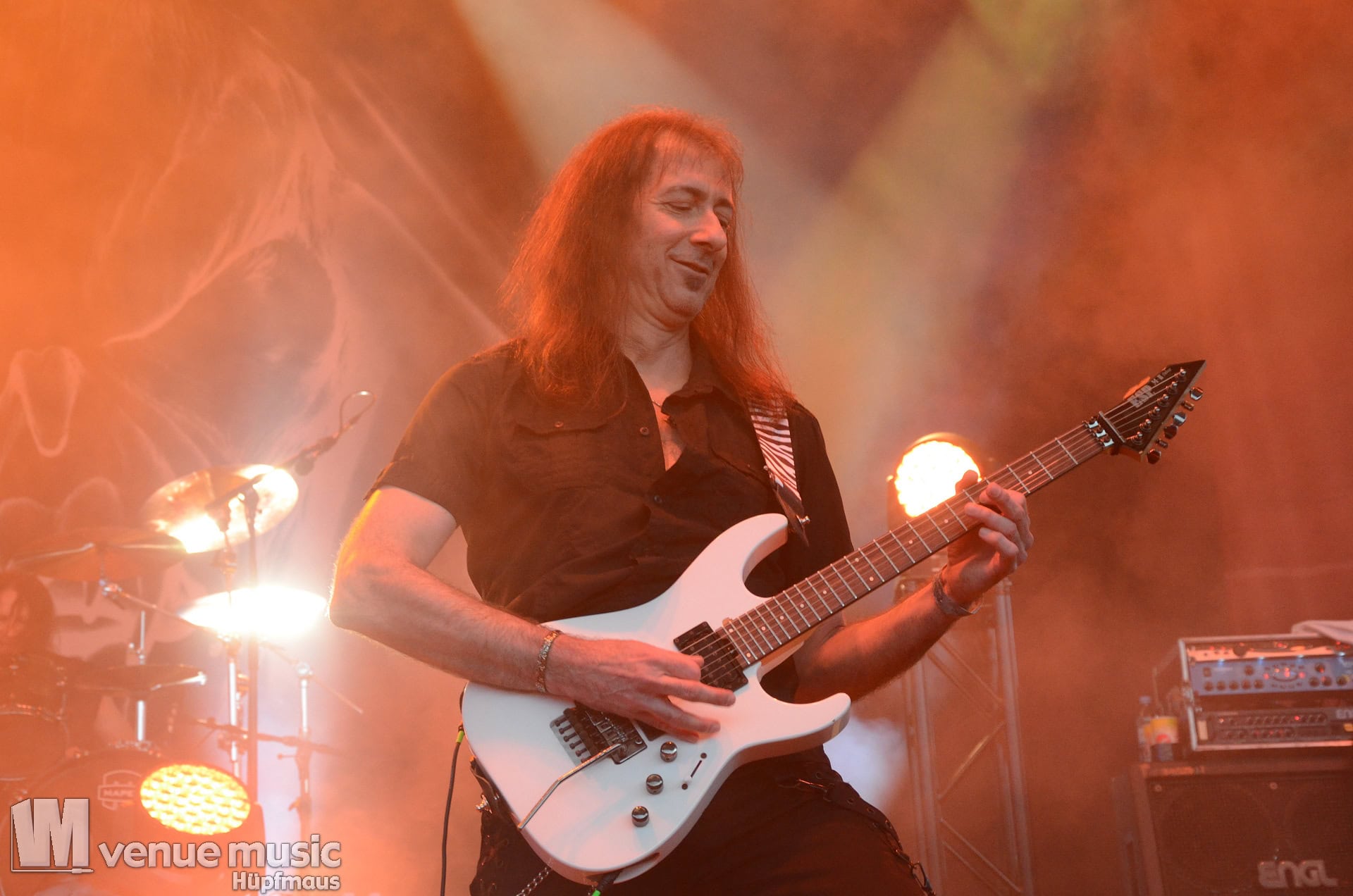 Auf Gamma Ray war ich ja persönlich schon sehr gespannt, schade dass sie mein geliebtes Cover „It´s a sin“ nicht gespielt haben, bei dem die Gitarren der absolute Wahnsinn sind. Aber man kann ja nicht alles haben. Da ich sonst fast nichts von Gamma Ray kannte, konnte ich mich entspannt nach den 3 Songs im Graben und der Possessed Autogrammstunde meinem Feierabend-Festival-Coctail widmen und den Gig genießen. Und mal ehrlich, das hat gut gerockt, so dass ich bis zum Ende geblieben bin. Auch der Rest des Publikums war begeistert – oder zumindest der größte Teil, einige traten aber schon den Heimweg an – denn es war gut voll vor der Bühne und die Band wurde abgefeiert. Mit einer Mischung aus alten Klassikern und Songs des letzten Albums (dessen Veröffenlichung auch schon wieder 5 Jahre zurück liegt) konnten Kai Hansen und seine Mannen überzeugen. Ein würdiger Headliner!