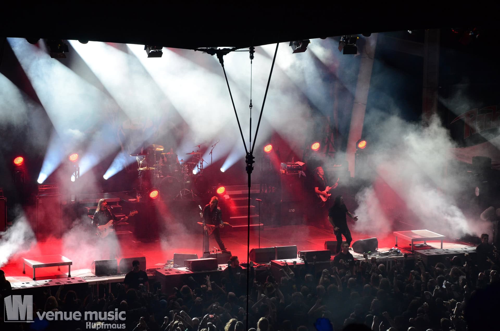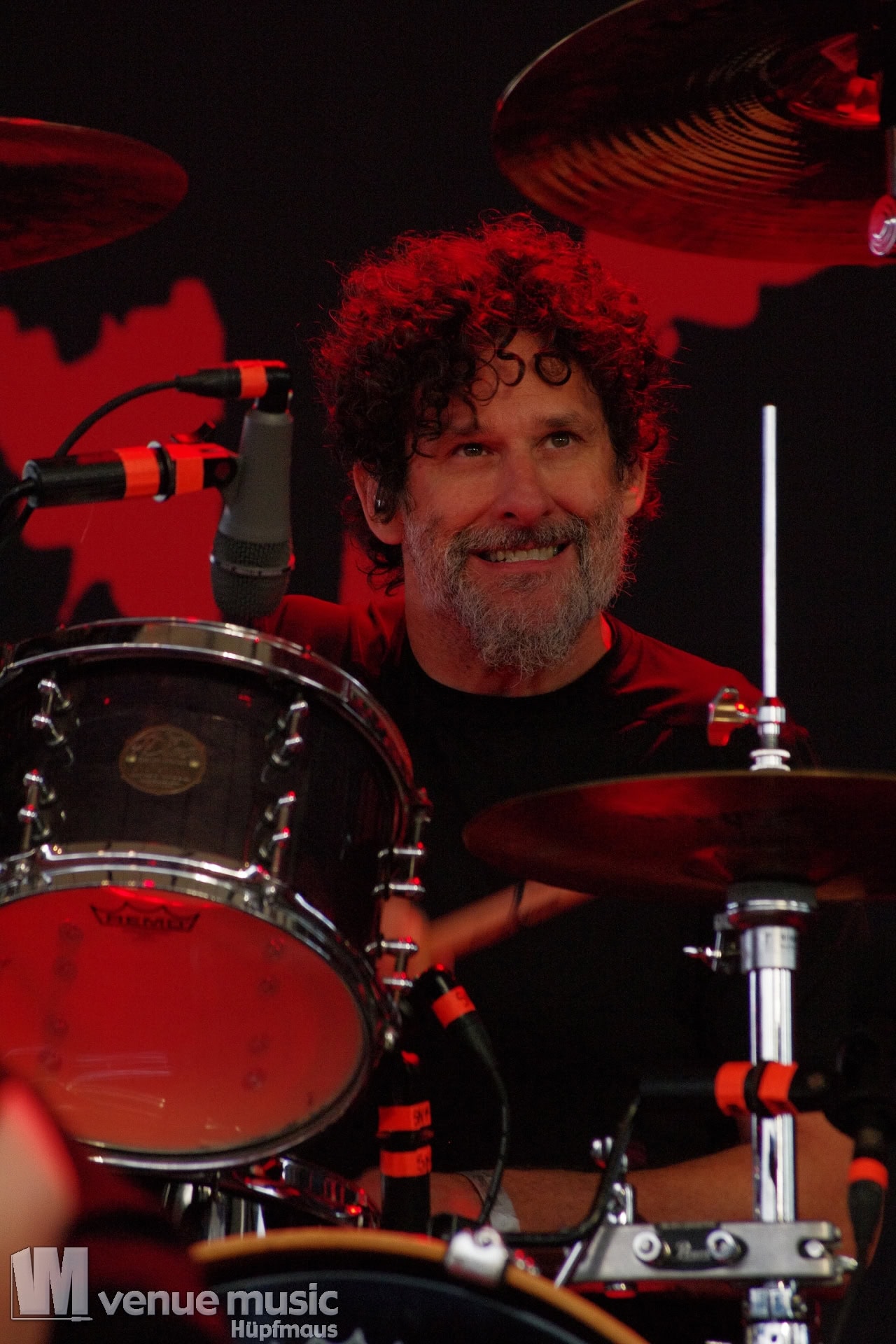 Zum Auftritt braucht man nicht viel zu sagen: die Jungs haben das Amphitheater so richtig zum Beben gebracht. Das Publikum feierte die Band ordentlich ab und das mal wieder zu recht. Insgesamt 11 Songs bekamen die Fans um die Ohren geknüppelt, wobei als Zugabe dann noch „Hammer smashed Face“ ohne Gesang zum Besten gegeben wurde. Da fehlte zwar was, aber dieser Titel war in Deutschland auch lange verboten und vielleicht wollten sie auf Nummer sicher gehen. Oder grade aus Trotz, denn geplant war der Song lt. Setlist wohl nicht.