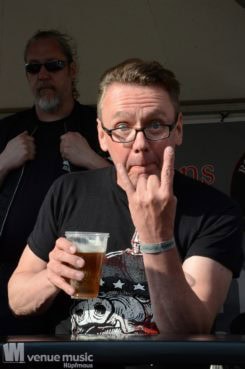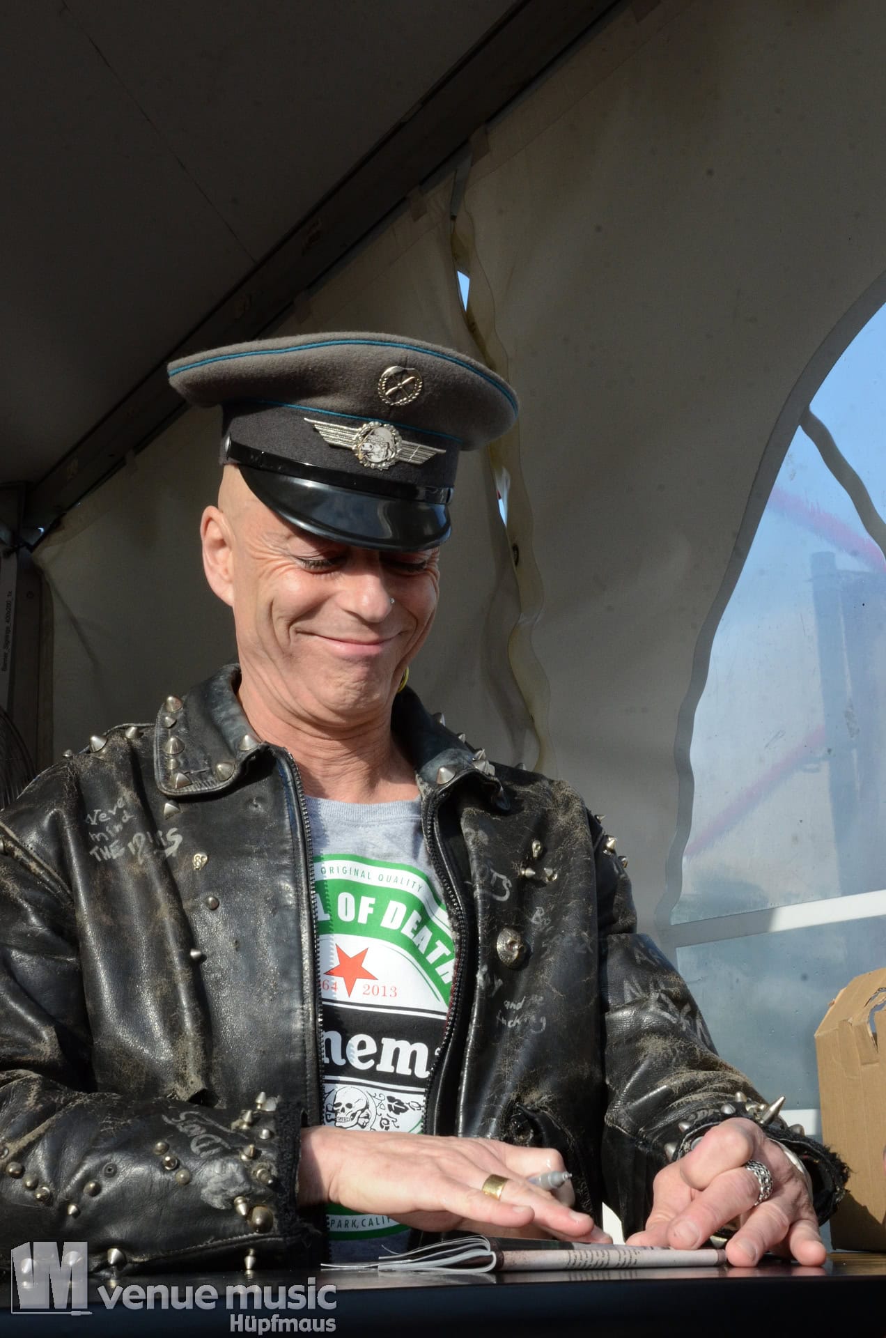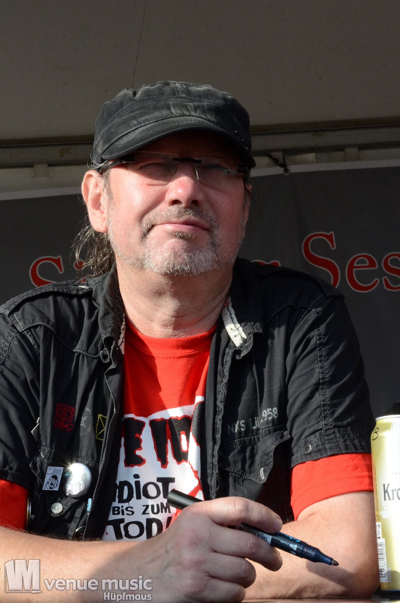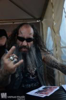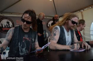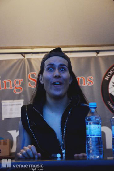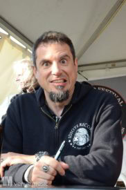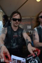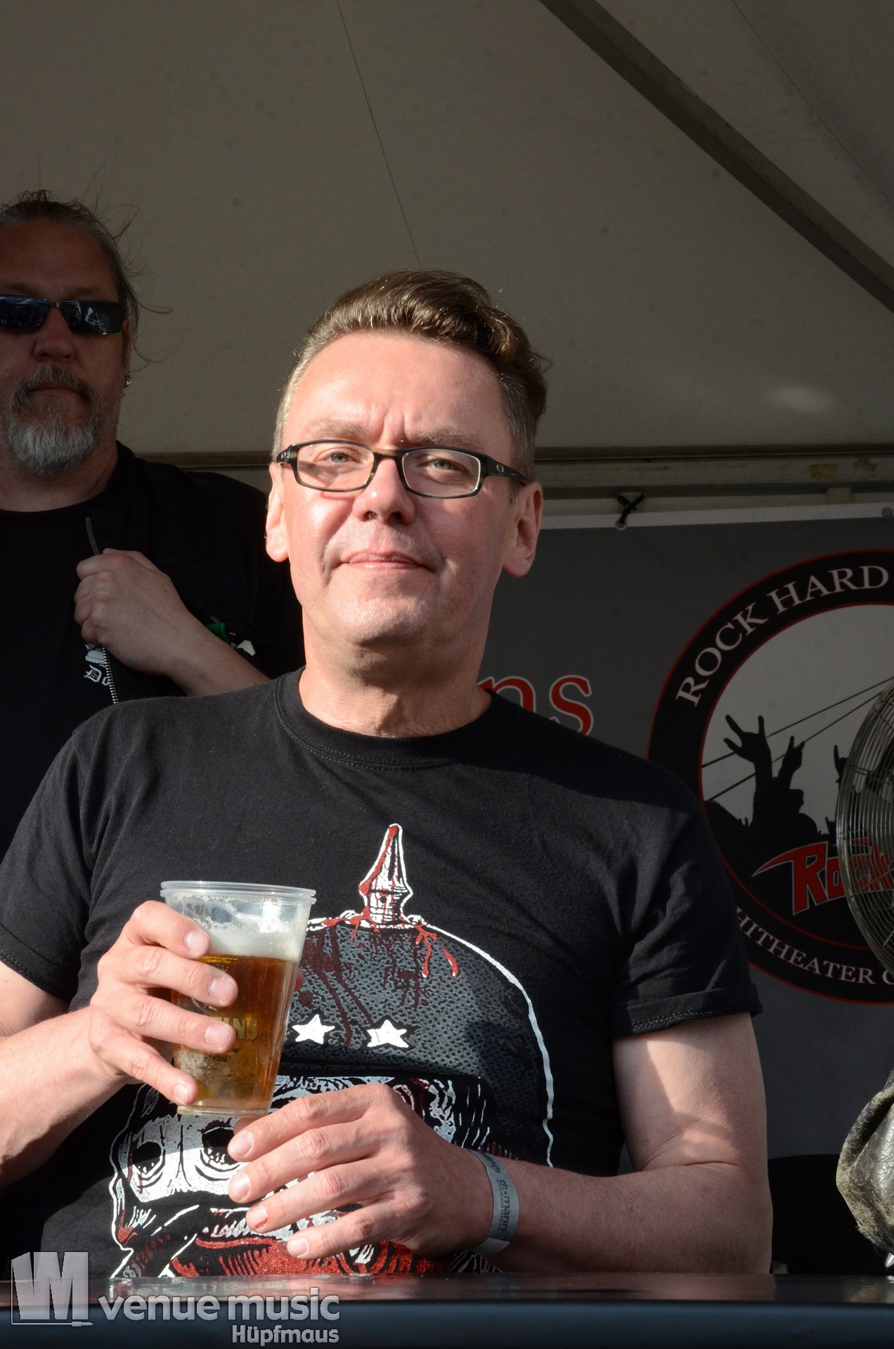Am ersten Tag des Rock Hard Festivals 2019 haben Vulture, Watain, The Idiots, Tygers of Pan Tang und Lizzy Borden fleissig für ihre Fans Autogramme gegeben und Fotos gemacht. Lediglich Chapel of Disease hatten keine Signing Session. Während es bei Lizzy Borden schon recht dunkel wurde, standen Watain bereits nachmittags für Autogramme bereit. Allerdings musste man da aufpassen, dass nicht alles, was man dabei hatte, eingesaut wurde. Denn Sänger Erik Danielsson gab mindestens jeder Autogrammkarte eine eigene „Note“ – mit individuell aufgesprenkeltem Kunstblut. Und somit wurde auch der ganze Tisch und dadurch auch viele Plattencover, die die Fans zum unterschreiben dabei hatten mit verziert… Einerseits mal eine etwas andere Autogrammkarte (die brauchte aber ewig zum Trocknen…), aber insgesamt vielleicht keine sooo gute Idee…