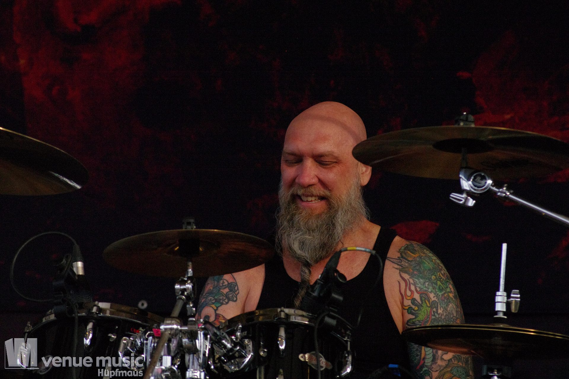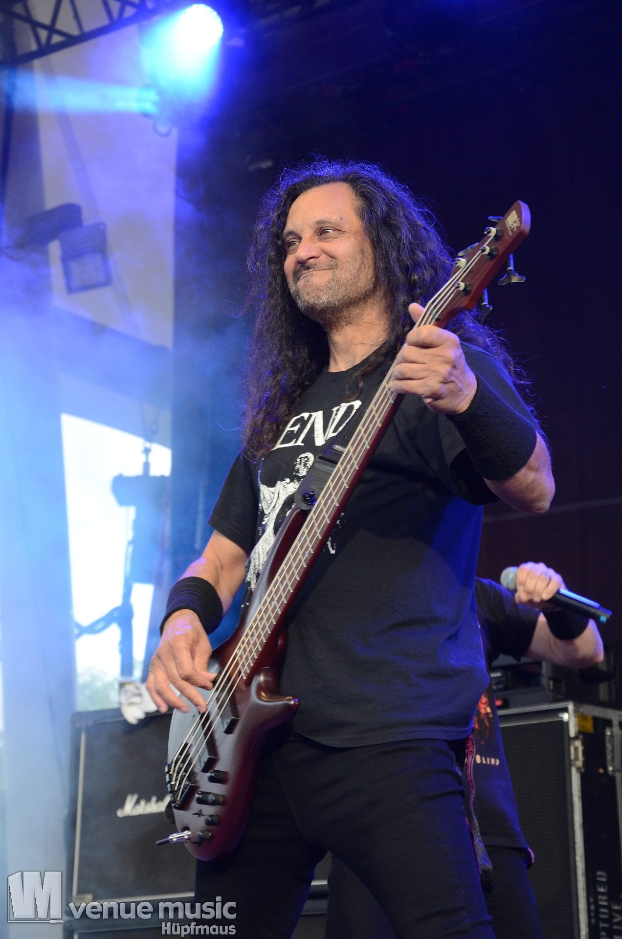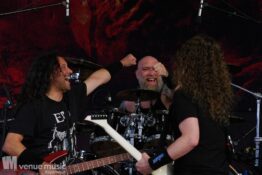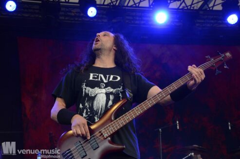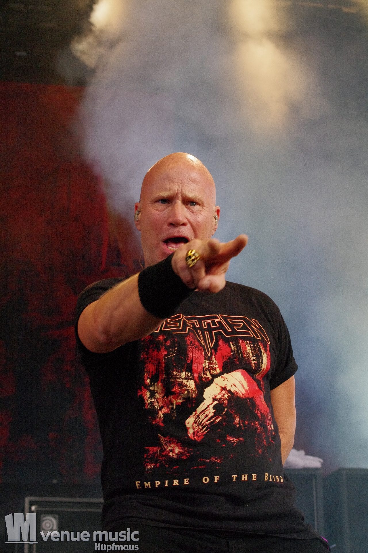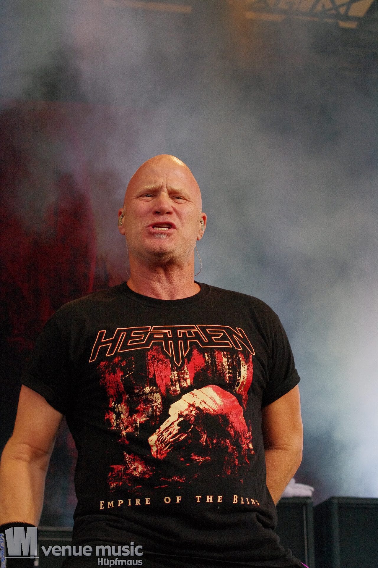 Heathen legten ihren Fokus bei der Songauswahl auf die beiden neueren Alben: die Hälfte der gespielten Titel waren vom 2020 veröffentlichten Album „Empire of the Blind“. Dabei haben die Thrash Metaller aus San Francisco auch schon bald 40 Jahre Bandgeschichte auf dem Buckel (allerdings nur 4 reguläre Alben) – viele Wechsel und eine Auflösung (und Wiedervereinigung natürlich) inklusive.