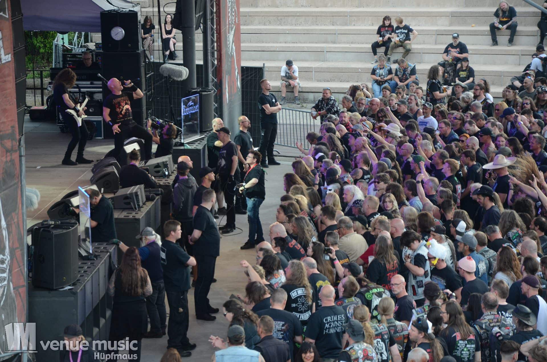 Klar: alle, die sich vor allem auf die alten Songs gefreut haben, wurden doch ein wenig enttäuscht, aber Heathen konnten die Menge trotzdem mitreißen. Es wurde gebangt, was das Zeug hält. Alle hatten Spaß. Und nach dem Gig verabschiedeten sich die Jungs noch selbst von ihren Fans, denn sie kamen noch in den Fotograben, klatschten ab und machten Fotos. Das war richtig cool und sicher noch ein Highlight für den einen oder anderen, der sich so noch direkt für den geilen Gig persönlich bedanken konnte.
