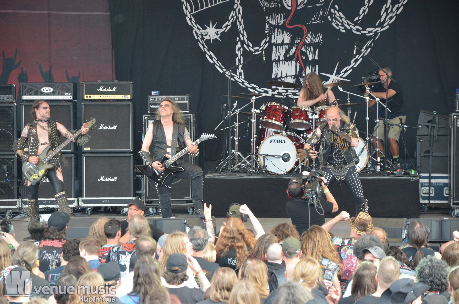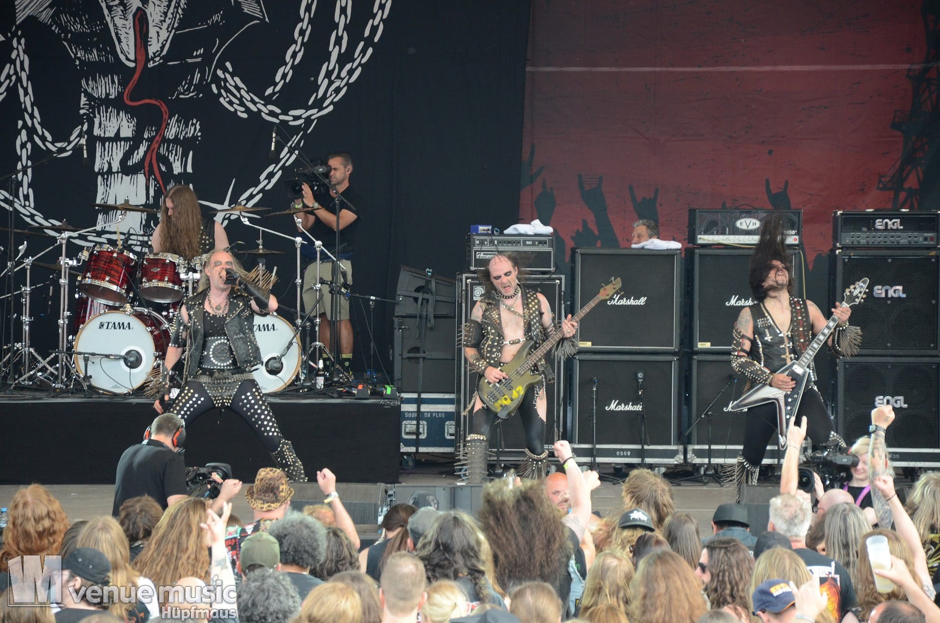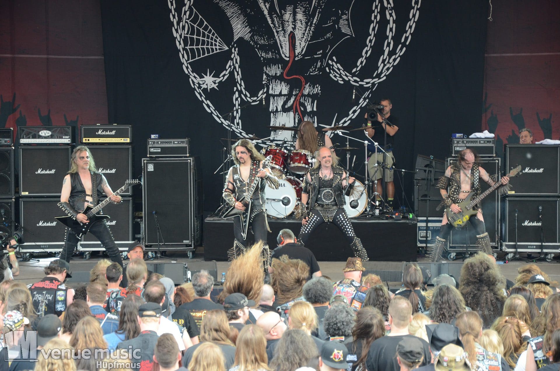 Am Freitag spielten unter anderem Nifelheim, die ich aber – da kein Urlaub – nur noch bei den letzten Klängen von den Rängen beobachten konnte. Aber so wie es aussah, wurden die schwedischen Blackmetaller ordentlich abgefeiert. Das Amphitheater war gut gefüllt und die Stimmung machte Lust auf mehr.
