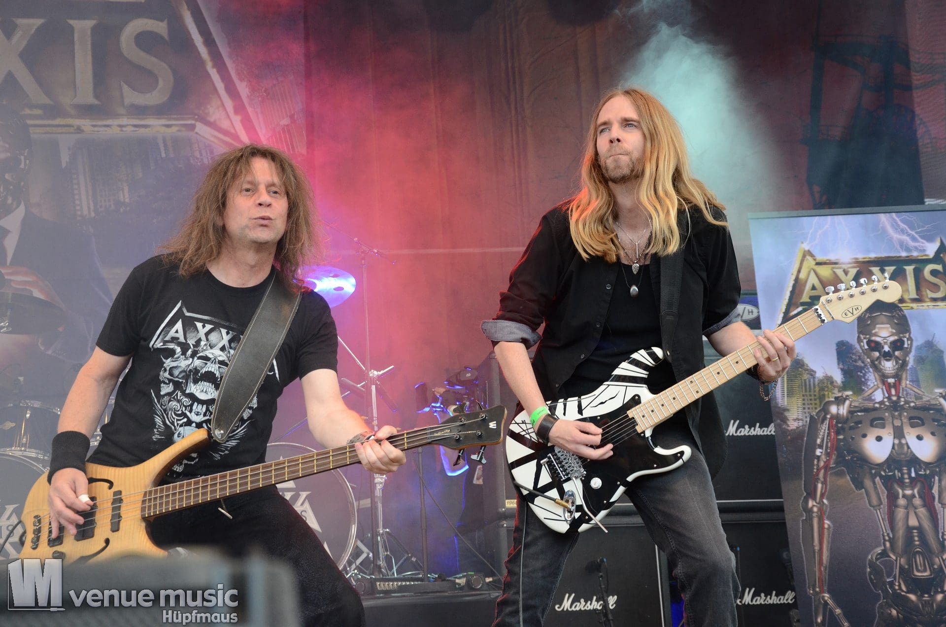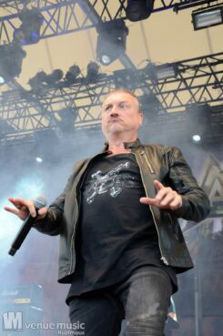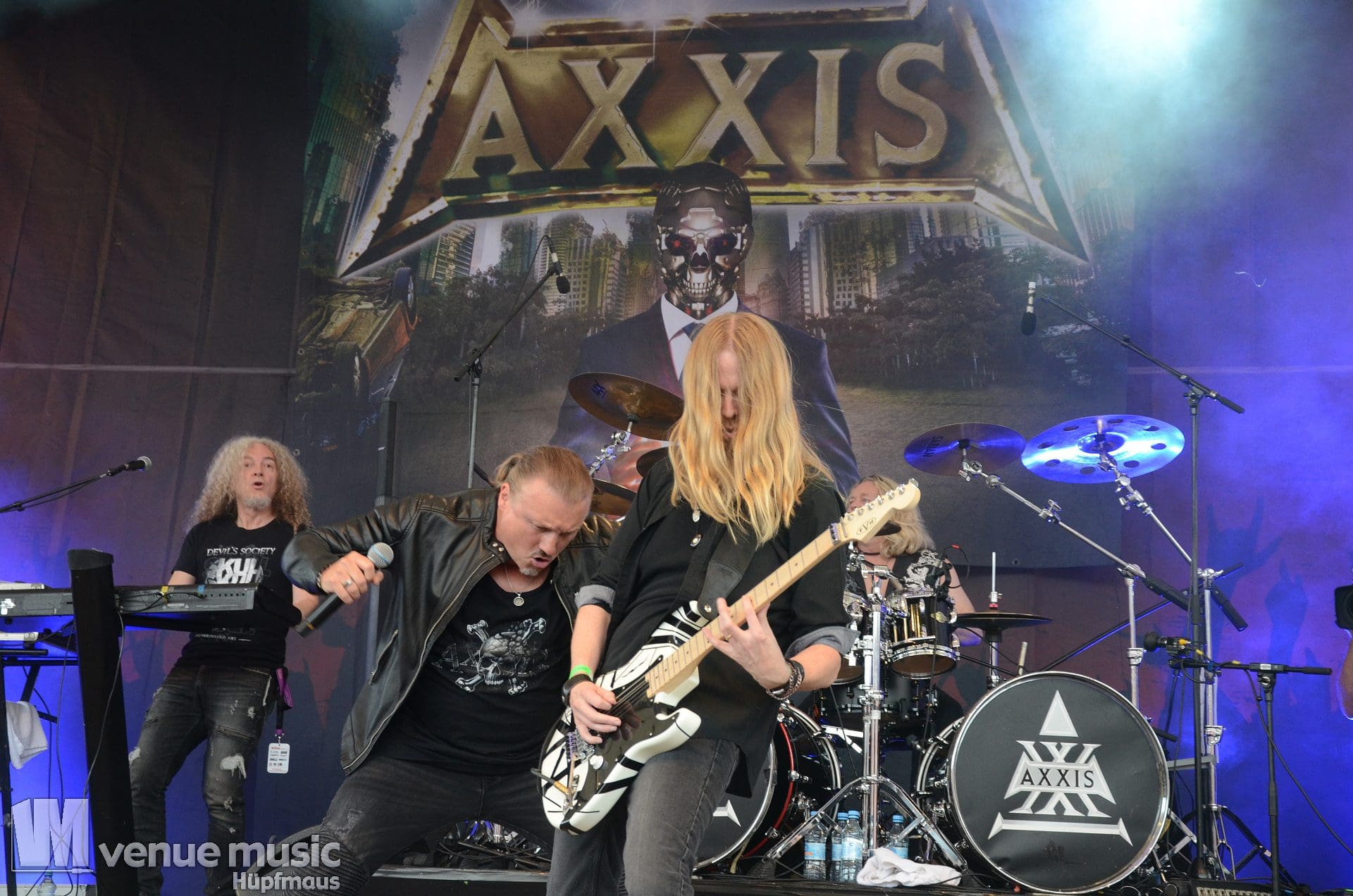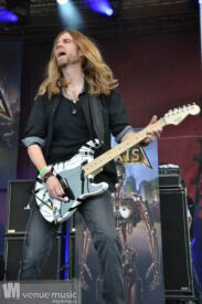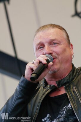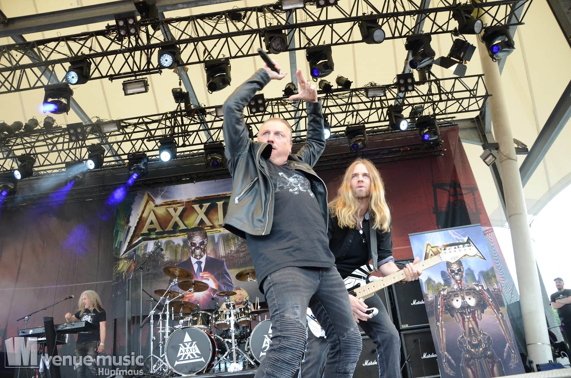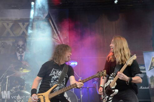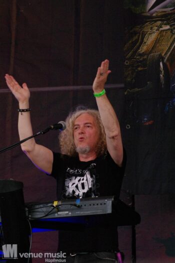 Im Anschluss daran durften Axxis so richtig abrocken. Die Band um Bernhard Weiß ist auch schon seit über 30 Jahren im Geschäft feierten aber tatsächlich ihre Premiere auf dem Rock Hard Festival – und ihr Bandjubiläum (wie ja so viele andere auch) nun nach. Insgesamt 10 Songs standen auf der Setlist – als Zugabe gabs dann noch ein Steam Cover. Wenn man mehr Alben hat als Songs gespielt werden können, fällt die Auswahl natürlich schwer und nicht jeder wird mit seinem Lieblingssong belohnt. Und wie so oft wollen viele ja den „alten Scheiss“ hören und natürlich wurden daher die letzten beiden (regulären) Songs grandios abgefeiert. Die Band hatte jedenfalls mal so richtig Spaß auf der Bühne – Ansagen von Frontman Bernhard und Singspielchen inklusive.
