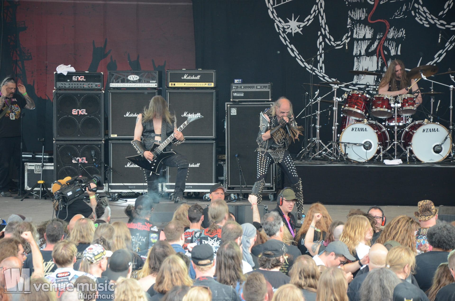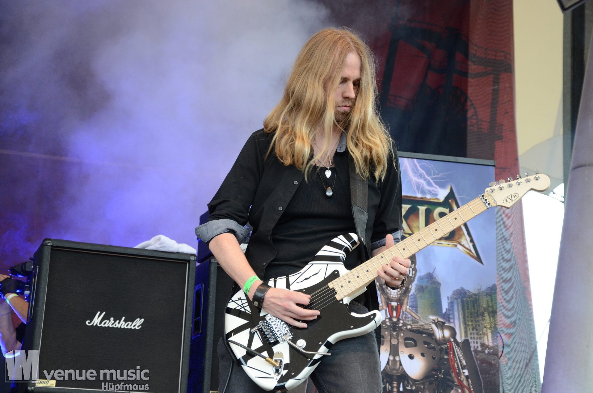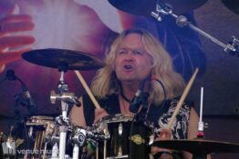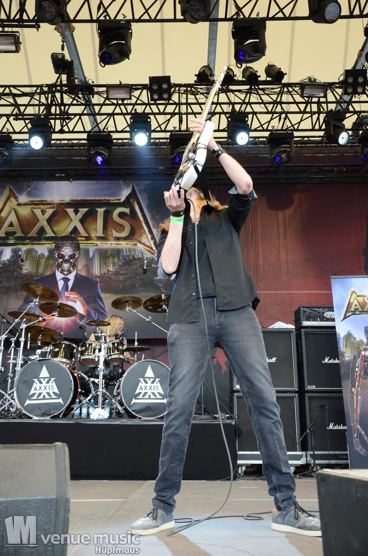 Im Anschluss daran durften Axxis so richtig abrocken. Die Band um Bernhard Weiß ist auch schon seit über 30 Jahren im Geschäft feierten aber tatsächlich ihre Premiere auf dem Rock Hard Festival – und ihr Bandjubiläum (wie ja so viele andere auch) nun nach. Insgesamt 10 Songs standen auf der Setlist – als Zugabe gabs dann noch ein Steam Cover. Wenn man mehr Alben hat als Songs gespielt werden können, fällt die Auswahl natürlich schwer und nicht jeder wird mit seinem Lieblingssong belohnt. Und wie so oft wollen viele ja den „alten Scheiss“ hören und natürlich wurden daher die letzten beiden (regulären) Songs grandios abgefeiert. Die Band hatte jedenfalls mal so richtig Spaß auf der Bühne – Ansagen von Frontman Bernhard und Singspielchen inklusive.