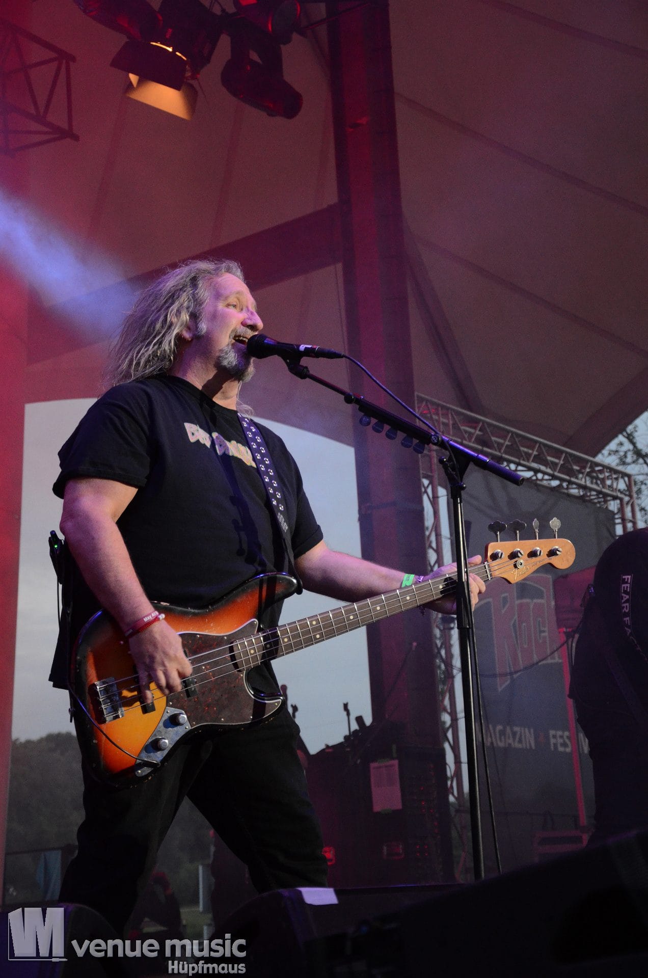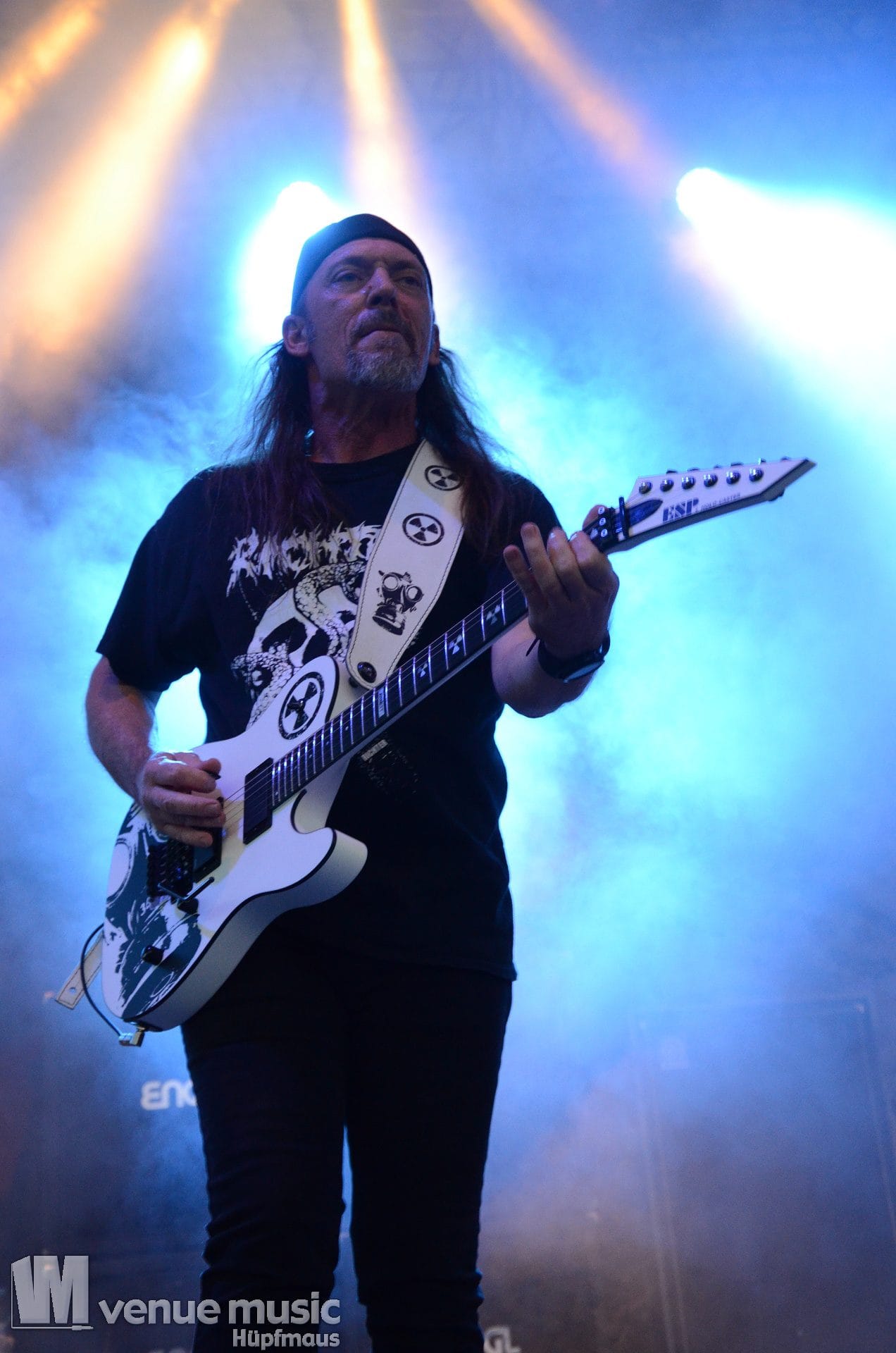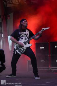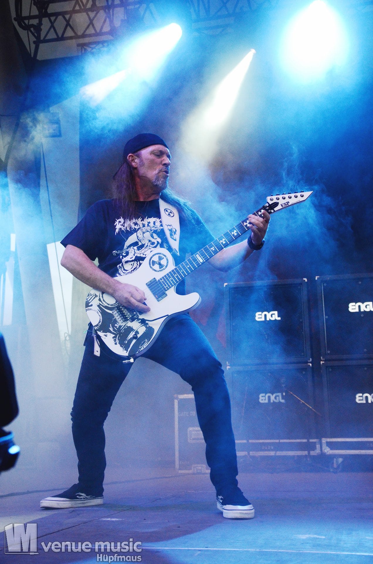 Eigentlich wollen alle ja immer die alten Songs von Sacred Reich hören, mit denen sie seit der Wiedervereinigung 2006 auch die Hallen gefüllt haben. Doch die Titel des 2019 veröffentlichten Albums „Awakening“ sind keinen Deut schlechter und insgesamt 5 davon wurden auch auf dem Rock Hard Festival zum Besten gegeben. Sauflieder wird man bei Sacred Reich nicht finden, die Texte beinhalten immer eine Botschaft. Schade, dass die Singleauskopplung „Don’t do it Donnie„(*) es nicht mit auf das aktuelle Album geschafft hat.