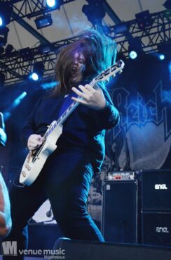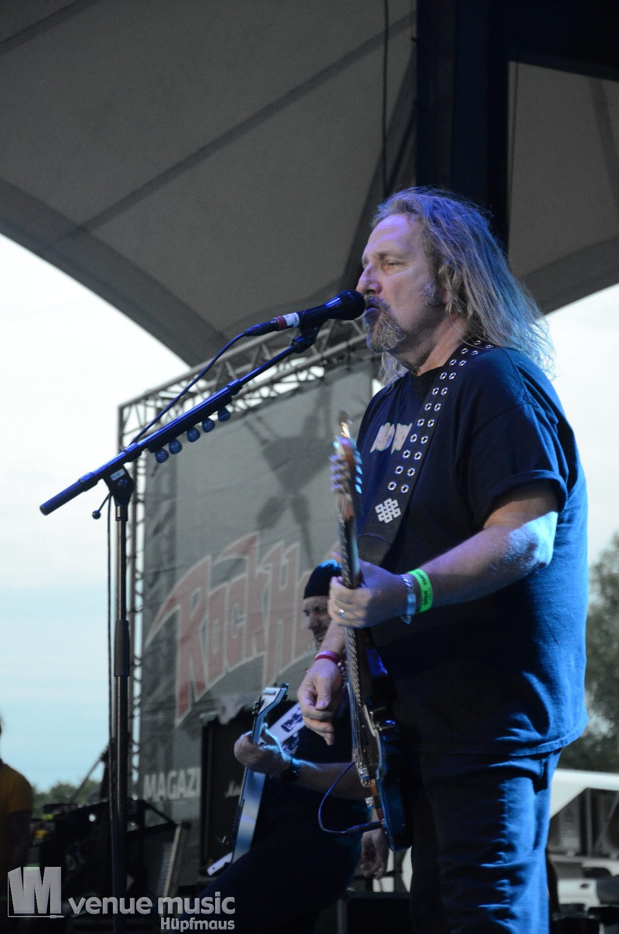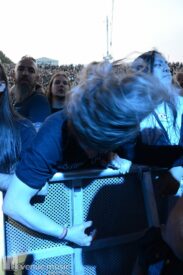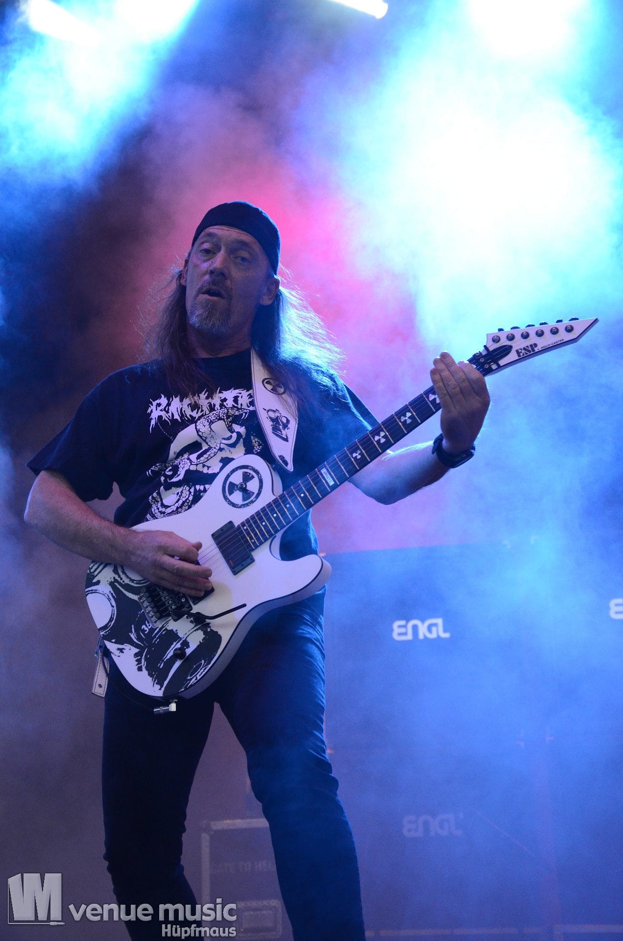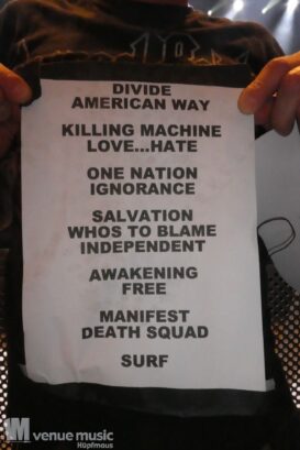 Eigentlich wollen alle ja immer die alten Songs von Sacred Reich hören, mit denen sie seit der Wiedervereinigung 2006 auch die Hallen gefüllt haben. Doch die Titel des 2019 veröffentlichten Albums „Awakening“ sind keinen Deut schlechter und insgesamt 5 davon wurden auch auf dem Rock Hard Festival zum Besten gegeben. Sauflieder wird man bei Sacred Reich nicht finden, die Texte beinhalten immer eine Botschaft. Schade, dass die Singleauskopplung „Don’t do it Donnie„(*) es nicht mit auf das aktuelle Album geschafft hat.