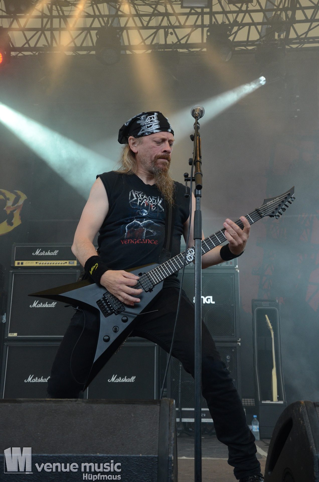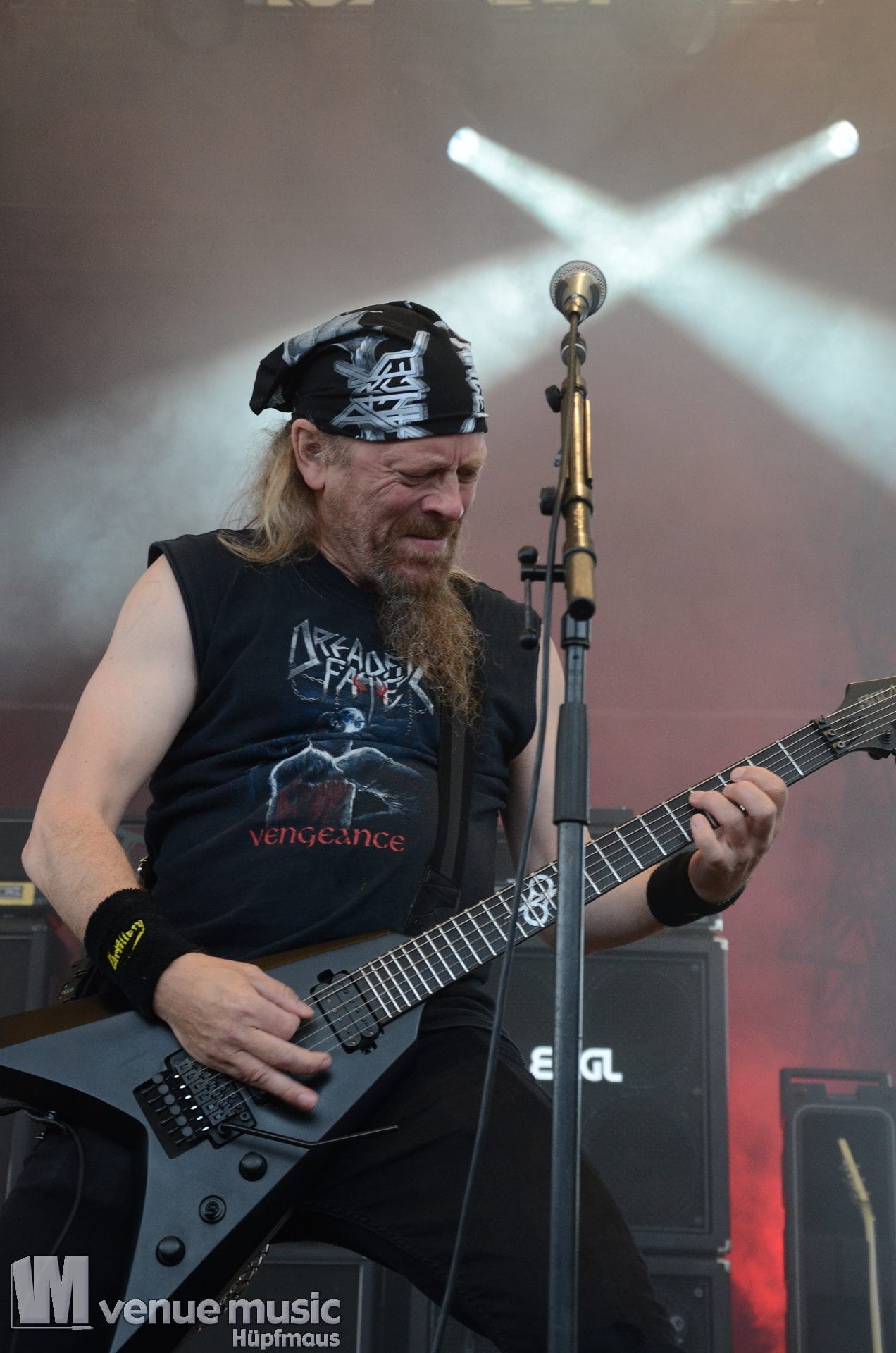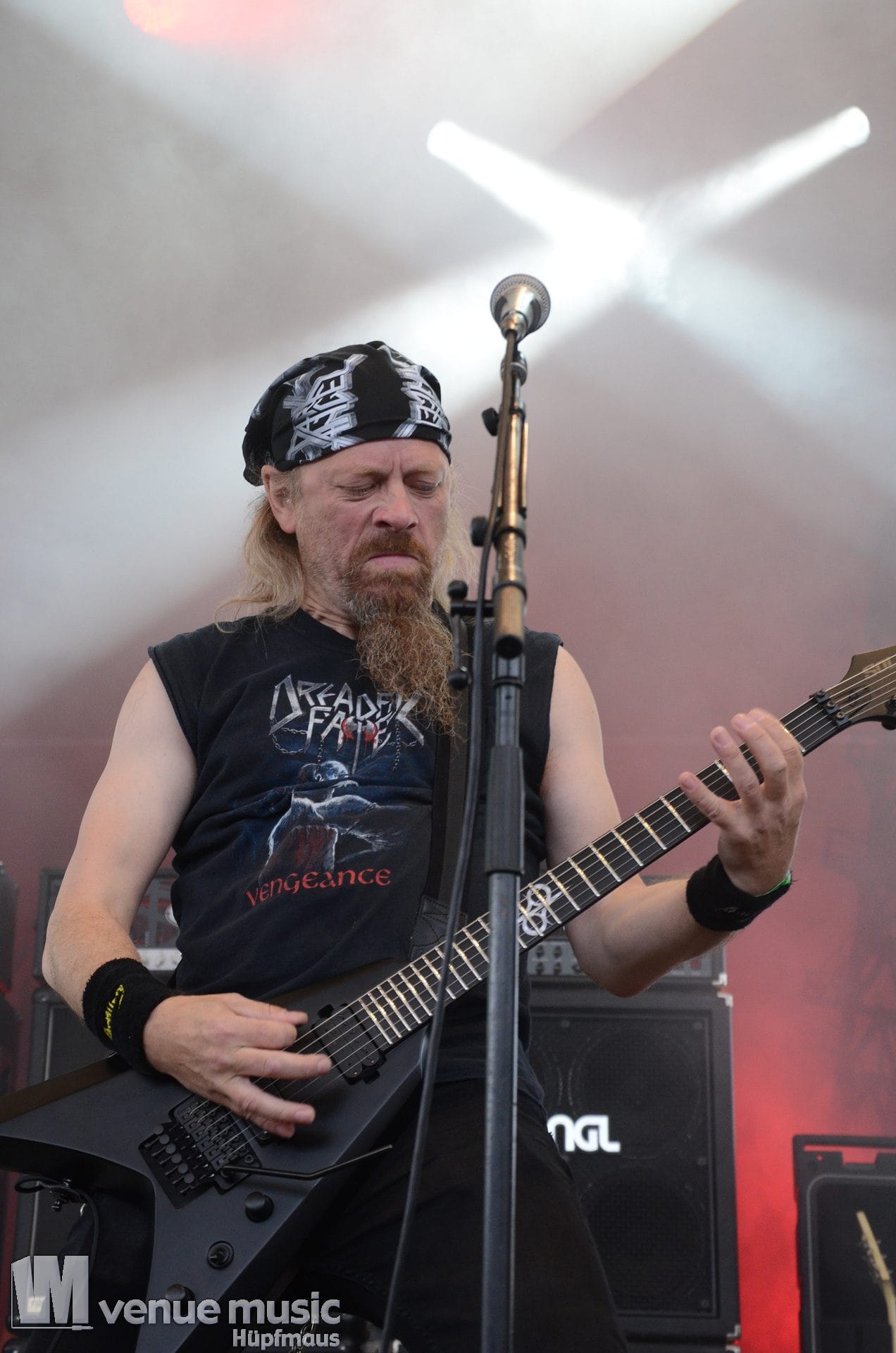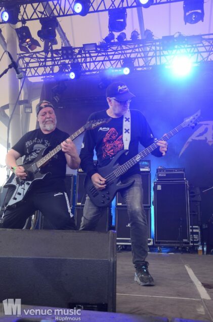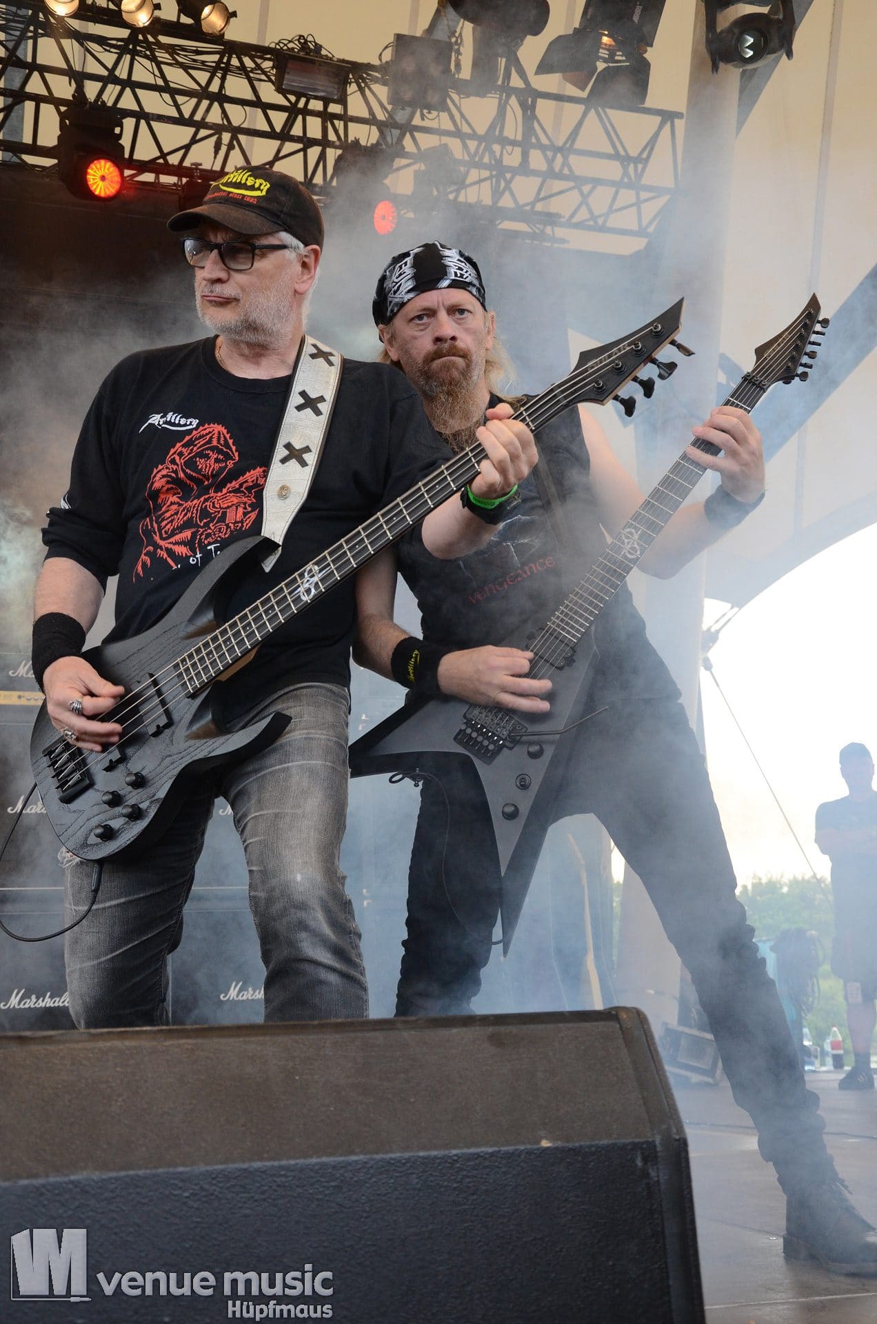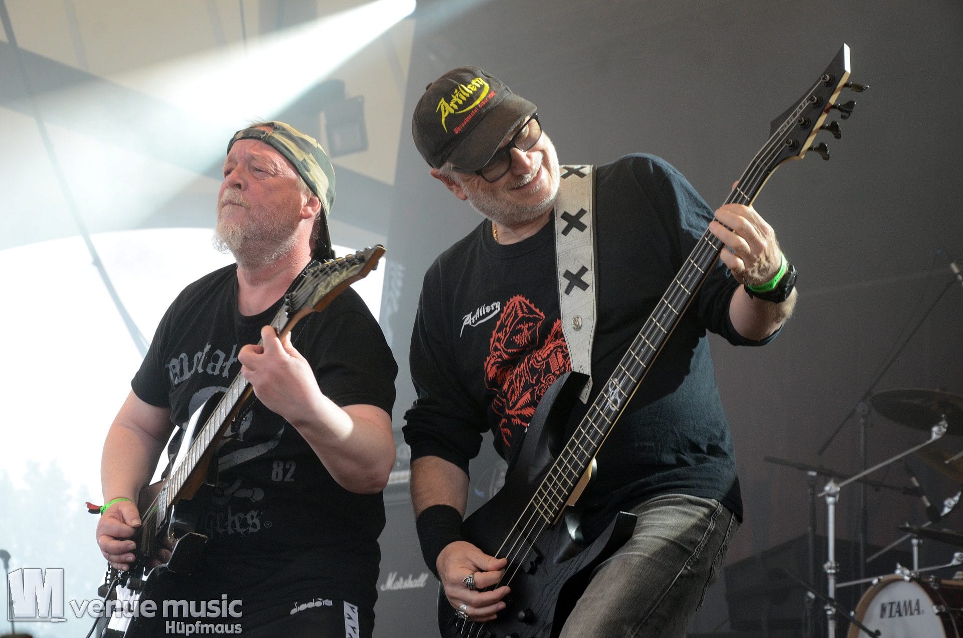 Artillery waren für Rozor eingesprungen, die ihren Auftritt im Vorfeld leider absagen mussten. Die dänischen Thrash-Metaller stehen auch schon seit 40 Jahren auf der Bühne (wenn man die kleine Bandpause zwischendurch mal vernachlässigt). In ihrem 60-minütigen Set waren Songs von fast allen Scheiben vertreten, ein kleiner Fokus lag auf dem Werk „By Inheritance“ von 1990. Das set war perfekt zum mitmoshen und gab quasi einen Überblick über die Bandgeschichte. Sie Stimmung war super und inzwischen waren auch alle im Publikum wieder so richtig in Feierlaune.