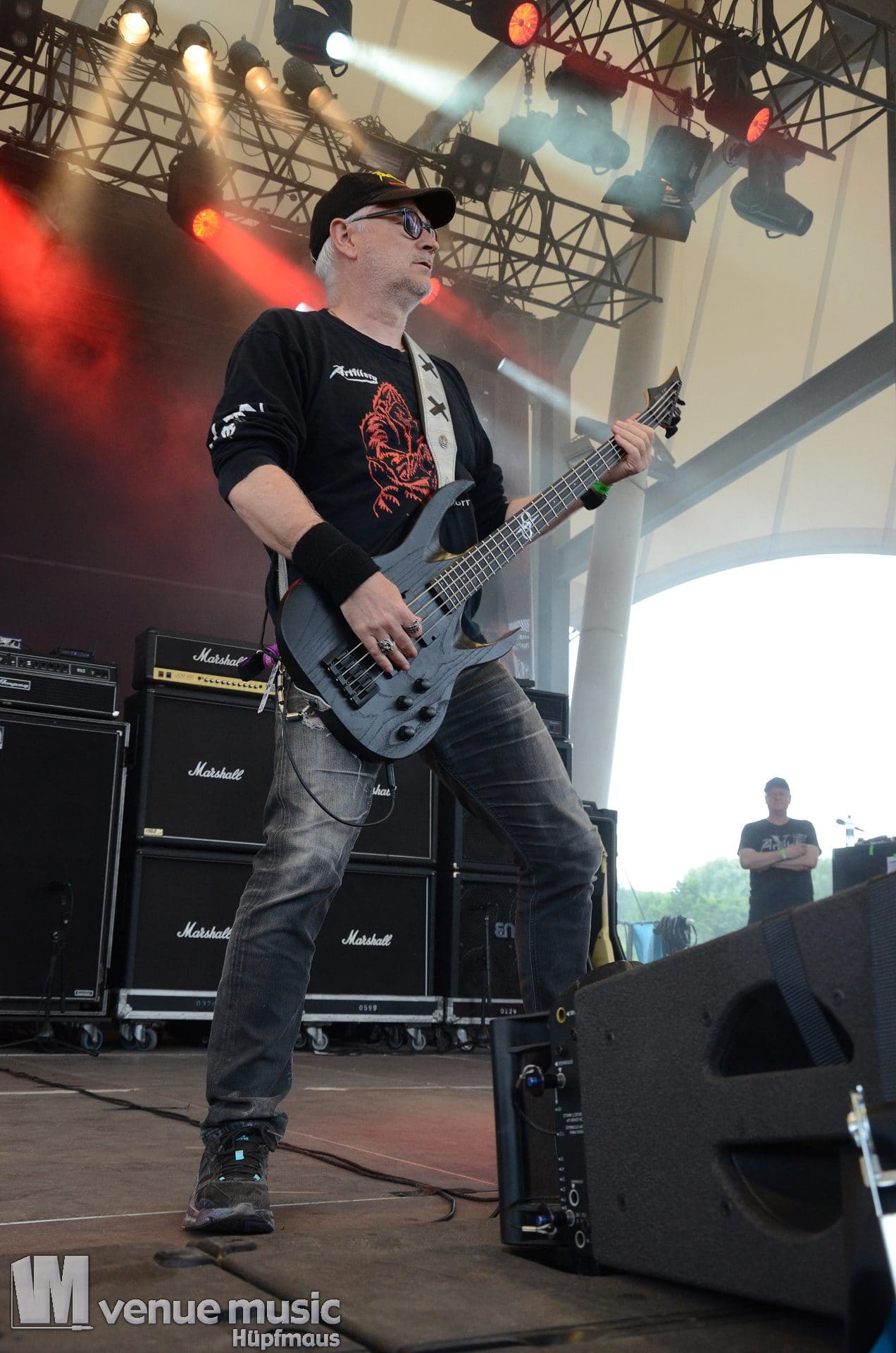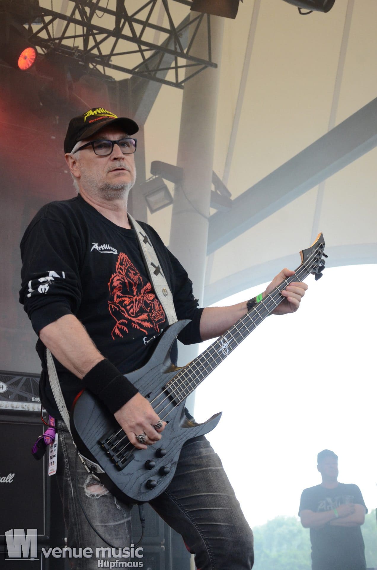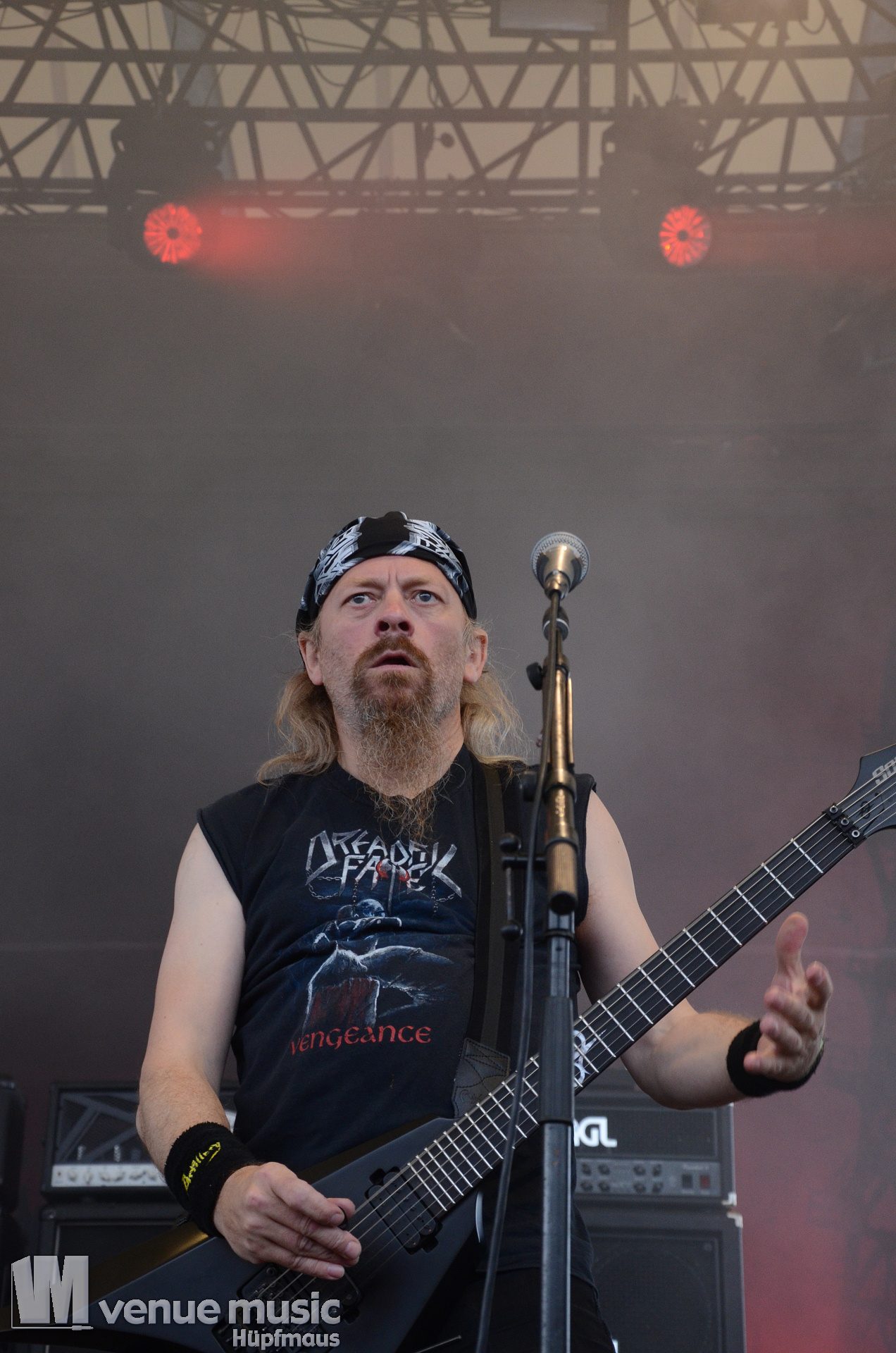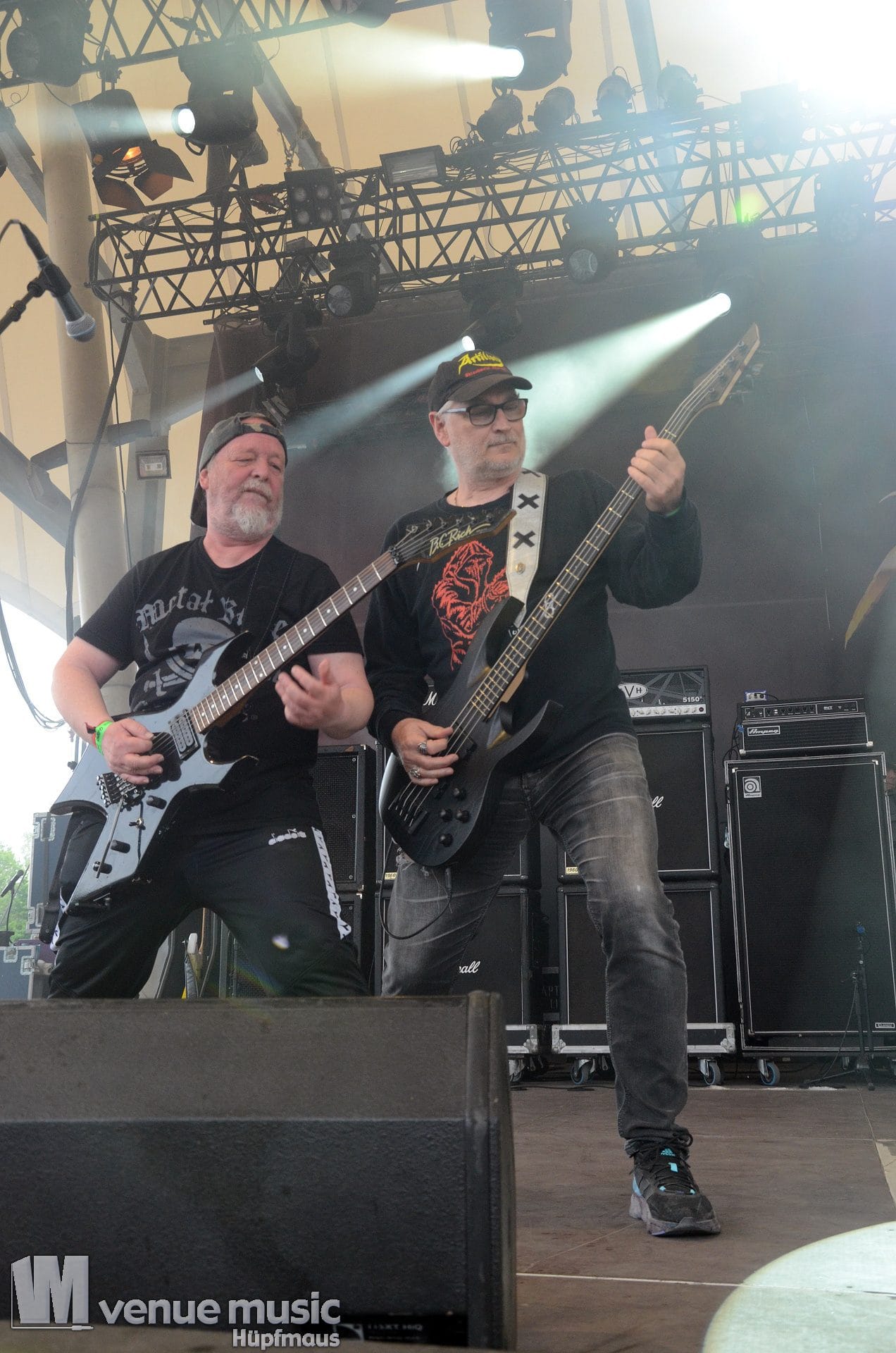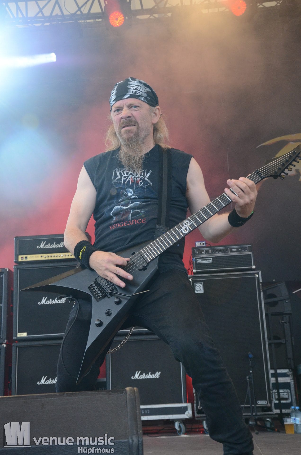 Artillery waren für Rozor eingesprungen, die ihren Auftritt im Vorfeld leider absagen mussten. Die dänischen Thrash-Metaller stehen auch schon seit 40 Jahren auf der Bühne (wenn man die kleine Bandpause zwischendurch mal vernachlässigt). In ihrem 60-minütigen Set waren Songs von fast allen Scheiben vertreten, ein kleiner Fokus lag auf dem Werk „By Inheritance“ von 1990. Das set war perfekt zum mitmoshen und gab quasi einen Überblick über die Bandgeschichte. Sie Stimmung war super und inzwischen waren auch alle im Publikum wieder so richtig in Feierlaune.