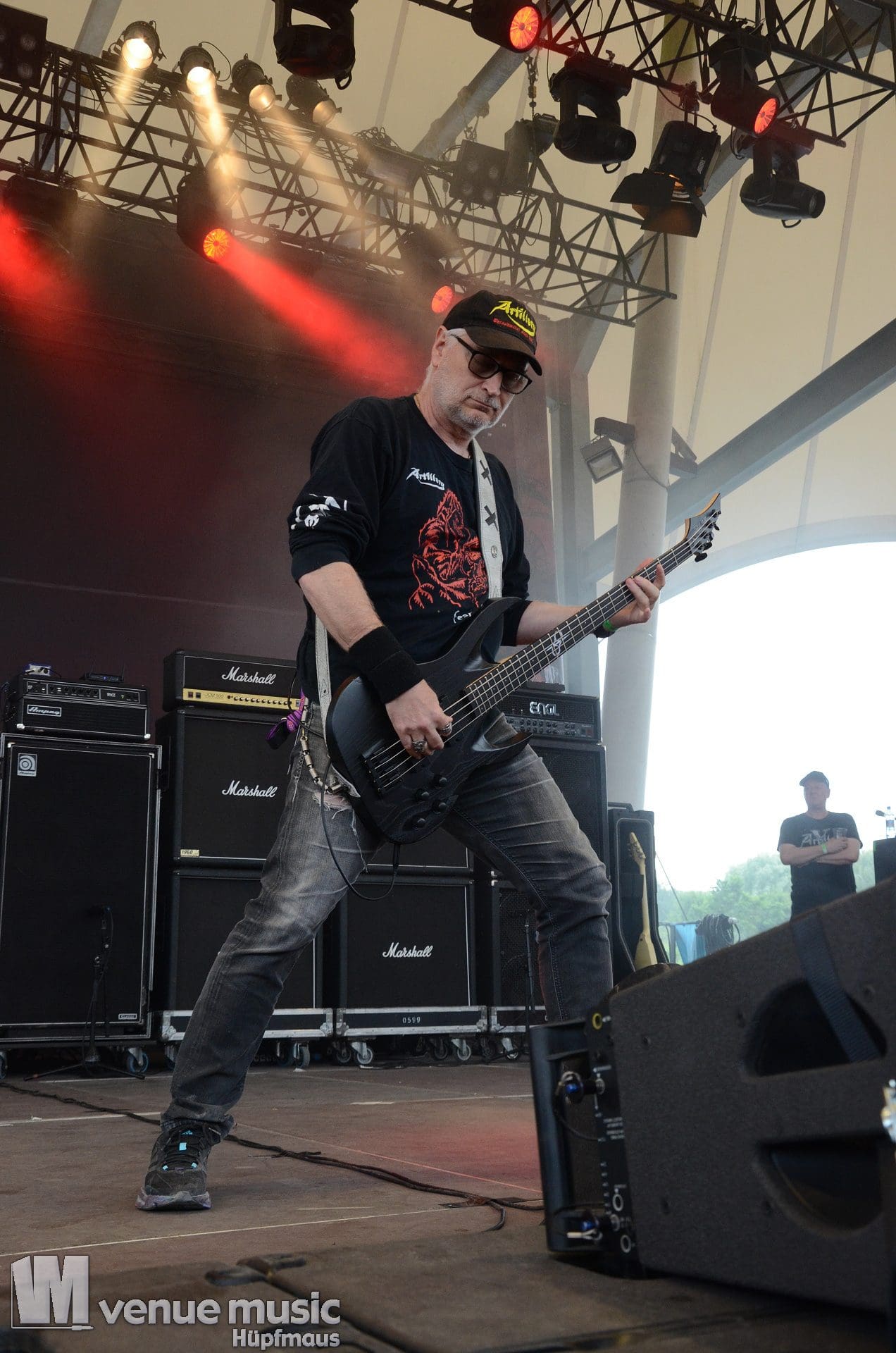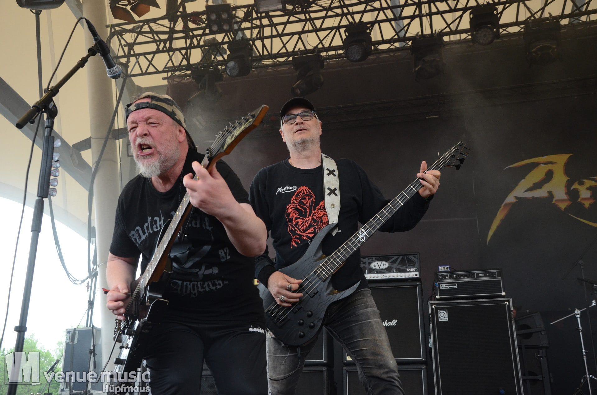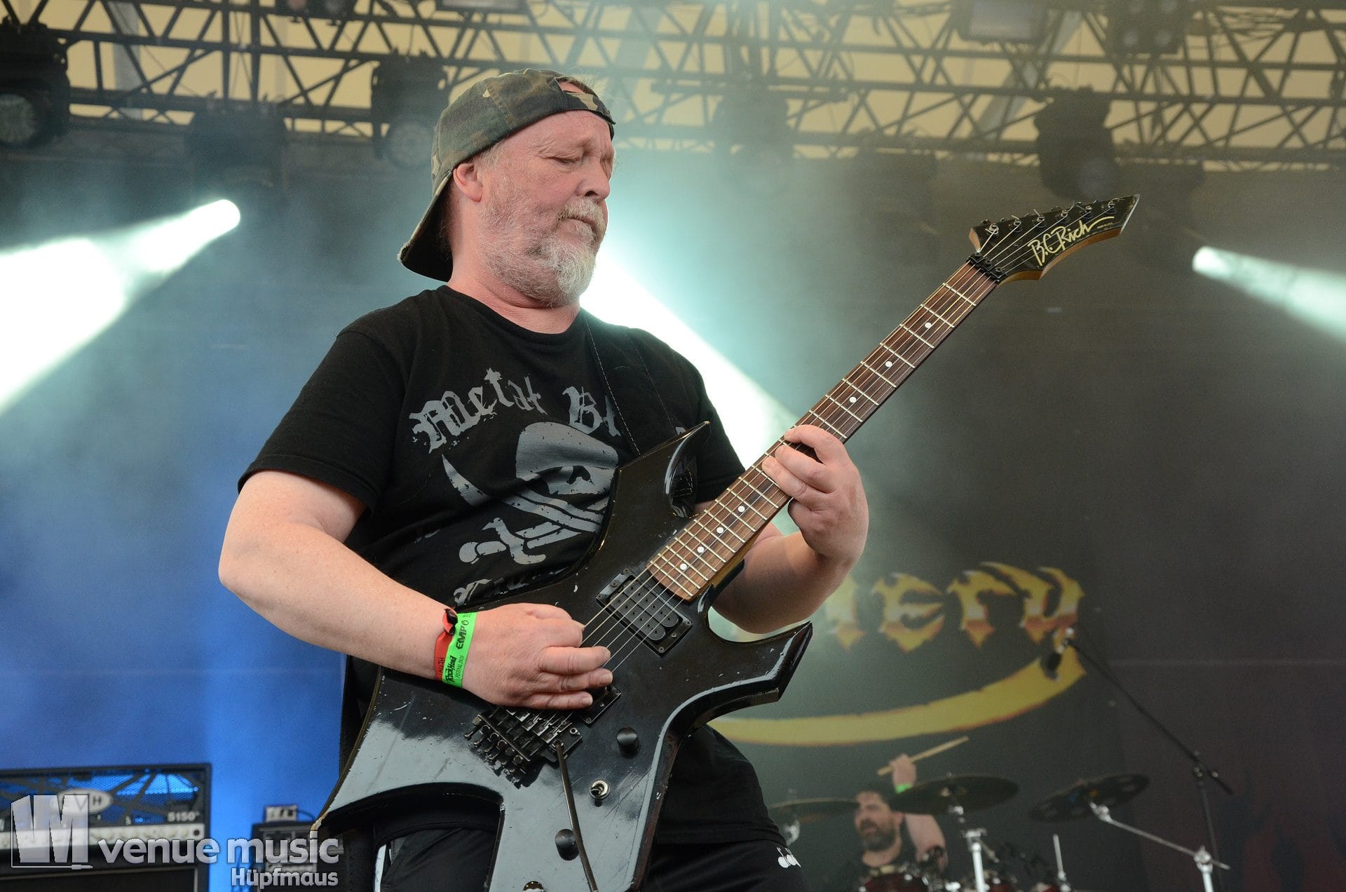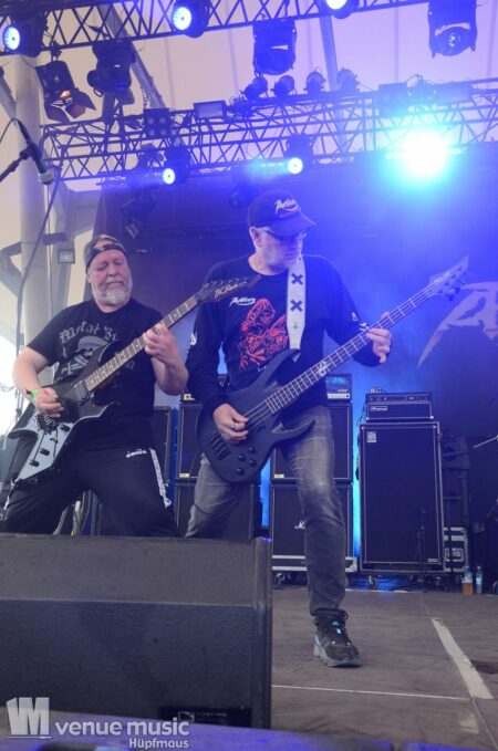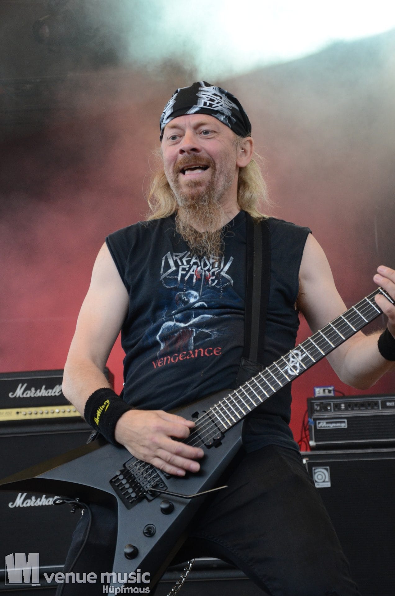 Artillery waren für Rozor eingesprungen, die ihren Auftritt im Vorfeld leider absagen mussten. Die dänischen Thrash-Metaller stehen auch schon seit 40 Jahren auf der Bühne (wenn man die kleine Bandpause zwischendurch mal vernachlässigt). In ihrem 60-minütigen Set waren Songs von fast allen Scheiben vertreten, ein kleiner Fokus lag auf dem Werk „By Inheritance“ von 1990. Das set war perfekt zum mitmoshen und gab quasi einen Überblick über die Bandgeschichte. Sie Stimmung war super und inzwischen waren auch alle im Publikum wieder so richtig in Feierlaune.