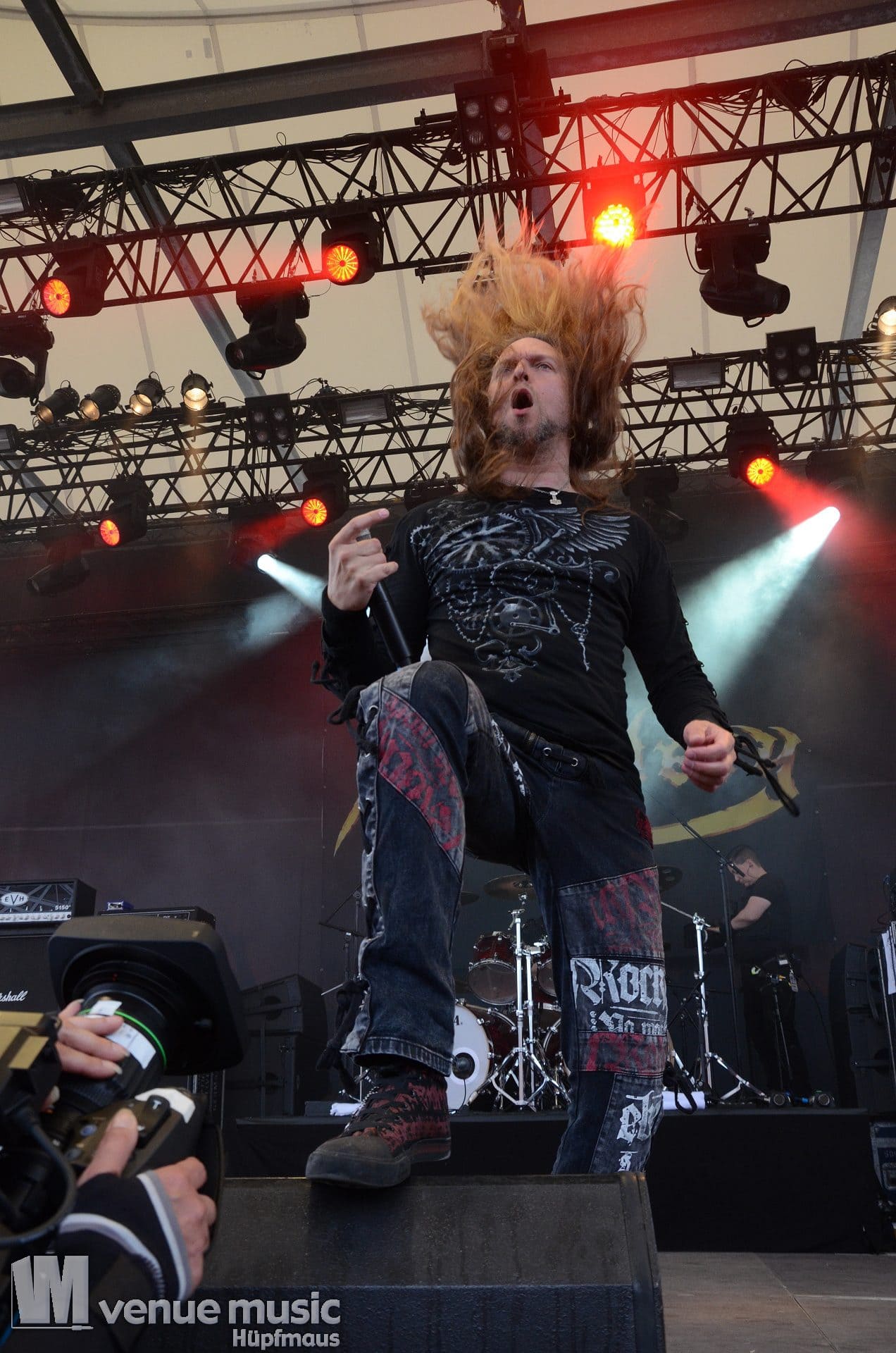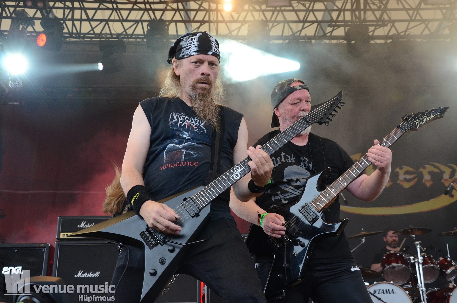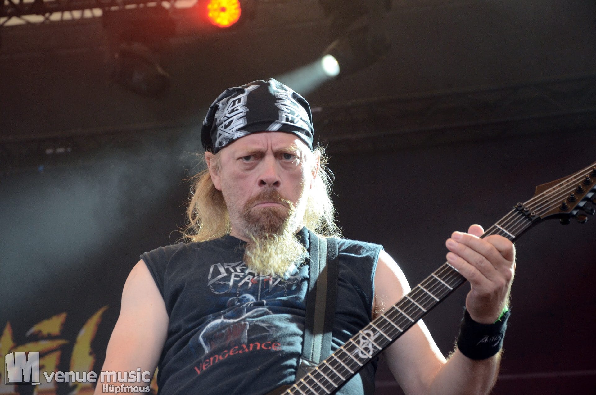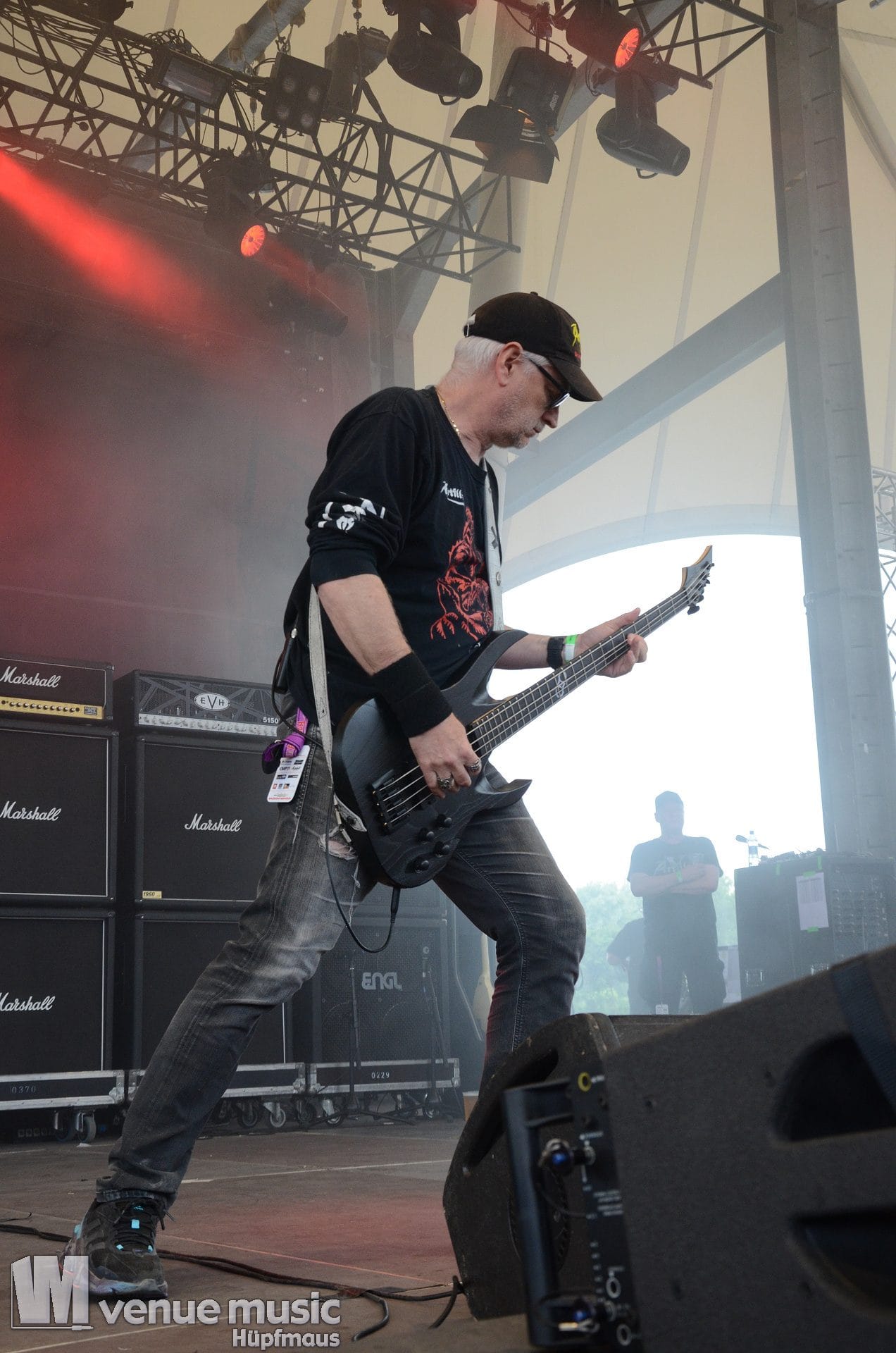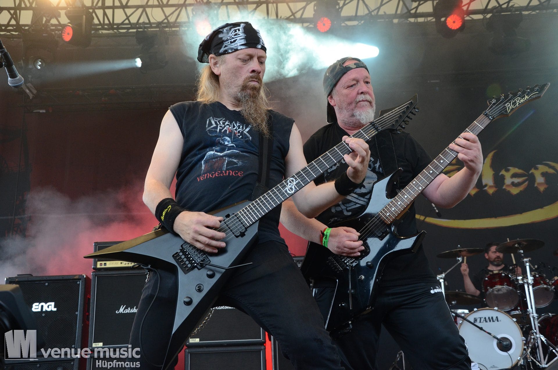 Artillery waren für Rozor eingesprungen, die ihren Auftritt im Vorfeld leider absagen mussten. Die dänischen Thrash-Metaller stehen auch schon seit 40 Jahren auf der Bühne (wenn man die kleine Bandpause zwischendurch mal vernachlässigt). In ihrem 60-minütigen Set waren Songs von fast allen Scheiben vertreten, ein kleiner Fokus lag auf dem Werk „By Inheritance“ von 1990. Das set war perfekt zum mitmoshen und gab quasi einen Überblick über die Bandgeschichte. Sie Stimmung war super und inzwischen waren auch alle im Publikum wieder so richtig in Feierlaune.