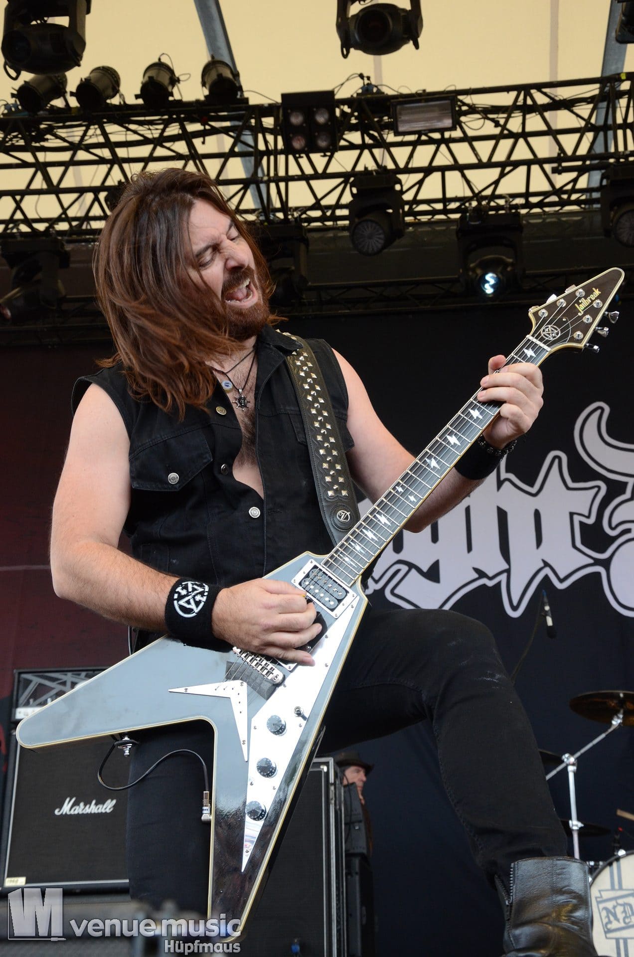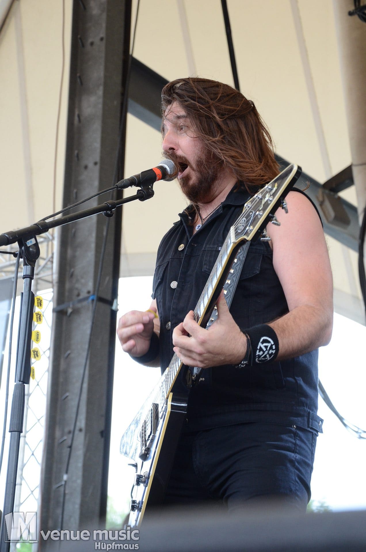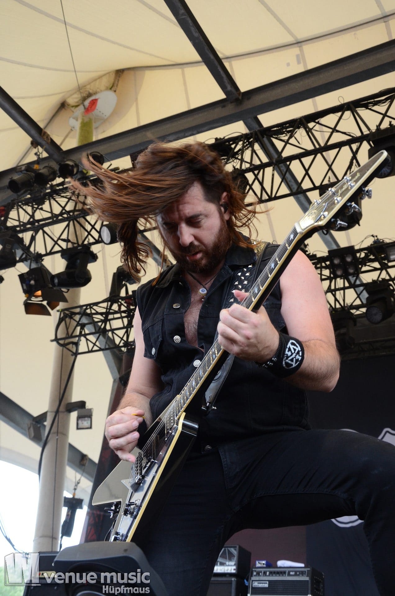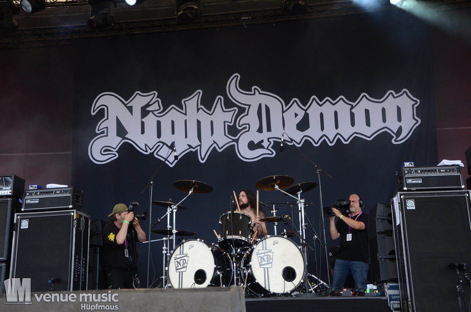 Auf Thrash folgte dann Old Scool Heavy Metal mit Night Demon, die das bereits aufgewärmte Publikum dann noch mal weiter anheizten. Und das mit Erfolg. Grade mal seit gut 10 Jahren gibt es die Band, die nicht nur diverse Songs ihrer bisherigen 3 Alben zum besten gaben, sondern auch noch das eine oder andere Cover einstreuten. Das Amphitheater brodelte, die Fans feierten die Band, die ebenfalls so richtig Spaß auf der Bühne hatte.