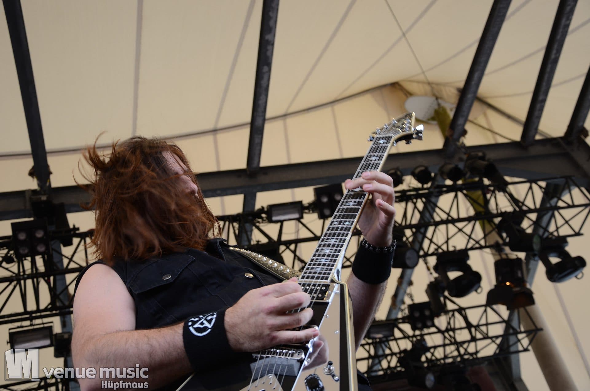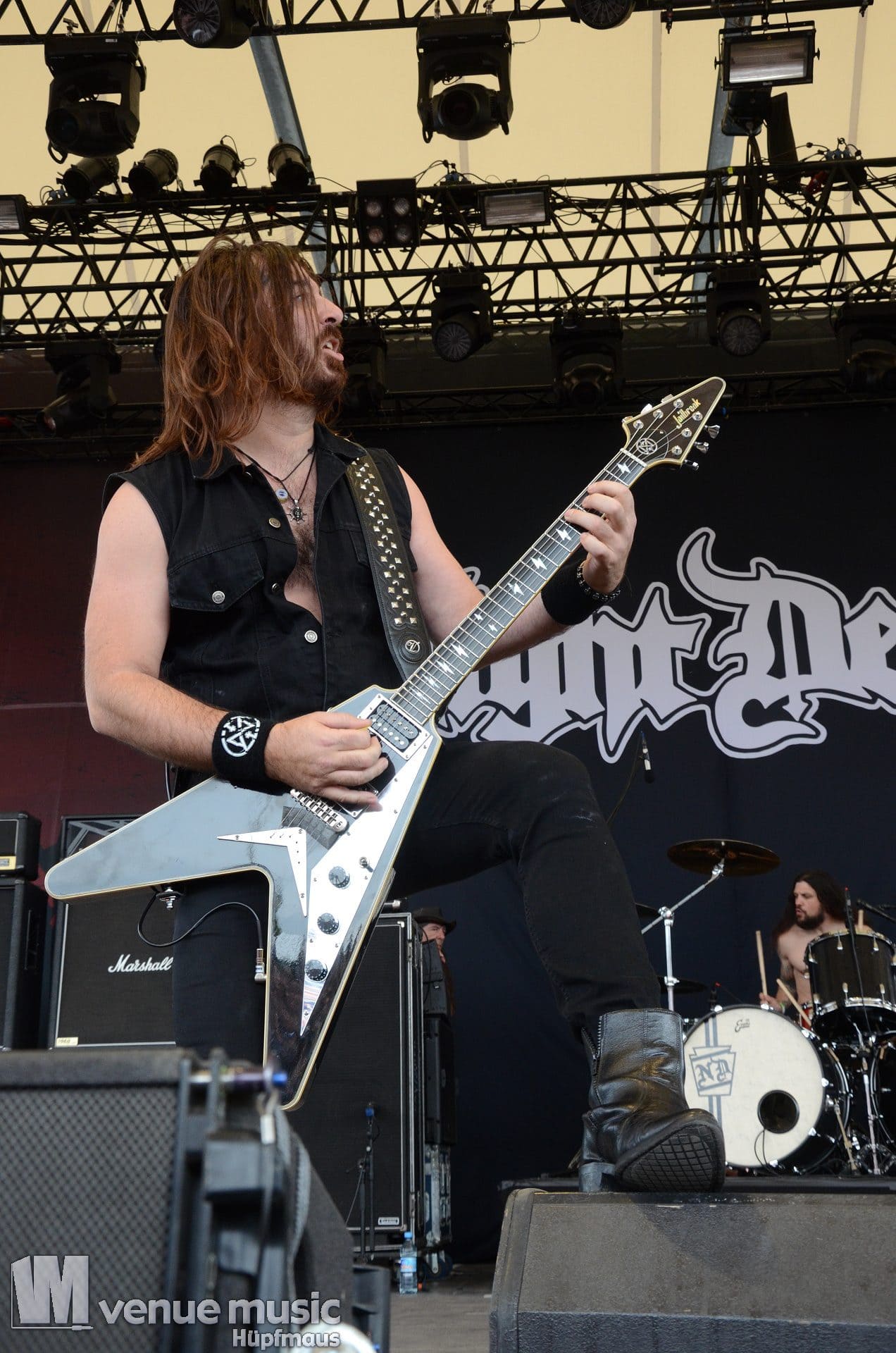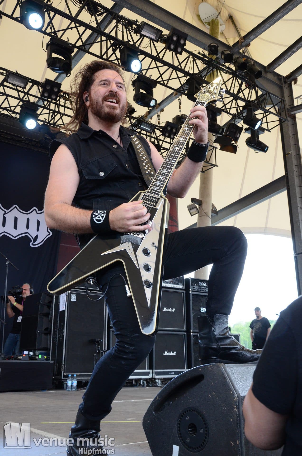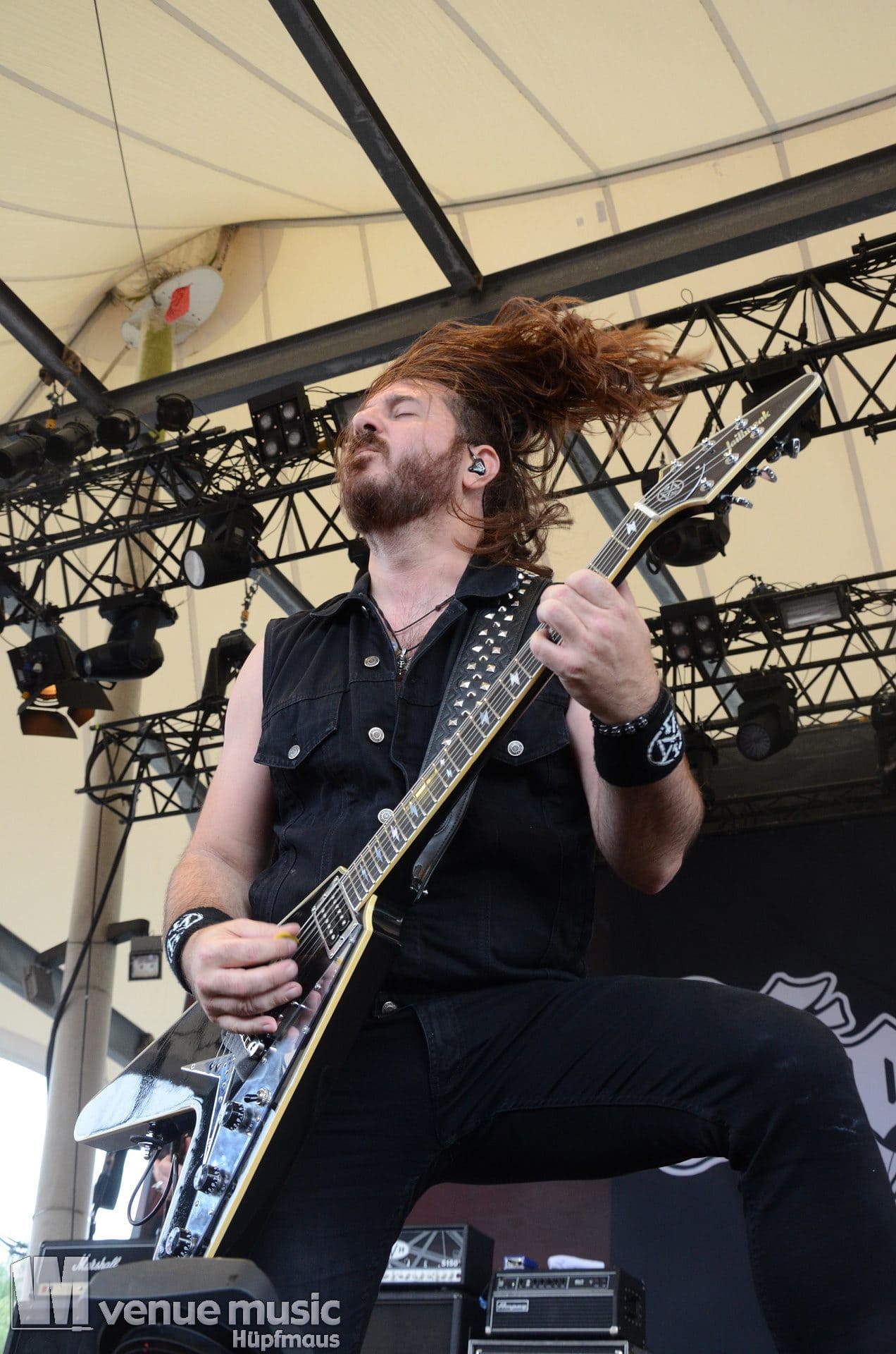 Auf Thrash folgte dann Old Scool Heavy Metal mit Night Demon, die das bereits aufgewärmte Publikum dann noch mal weiter anheizten. Und das mit Erfolg. Grade mal seit gut 10 Jahren gibt es die Band, die nicht nur diverse Songs ihrer bisherigen 3 Alben zum besten gaben, sondern auch noch das eine oder andere Cover einstreuten. Das Amphitheater brodelte, die Fans feierten die Band, die ebenfalls so richtig Spaß auf der Bühne hatte.