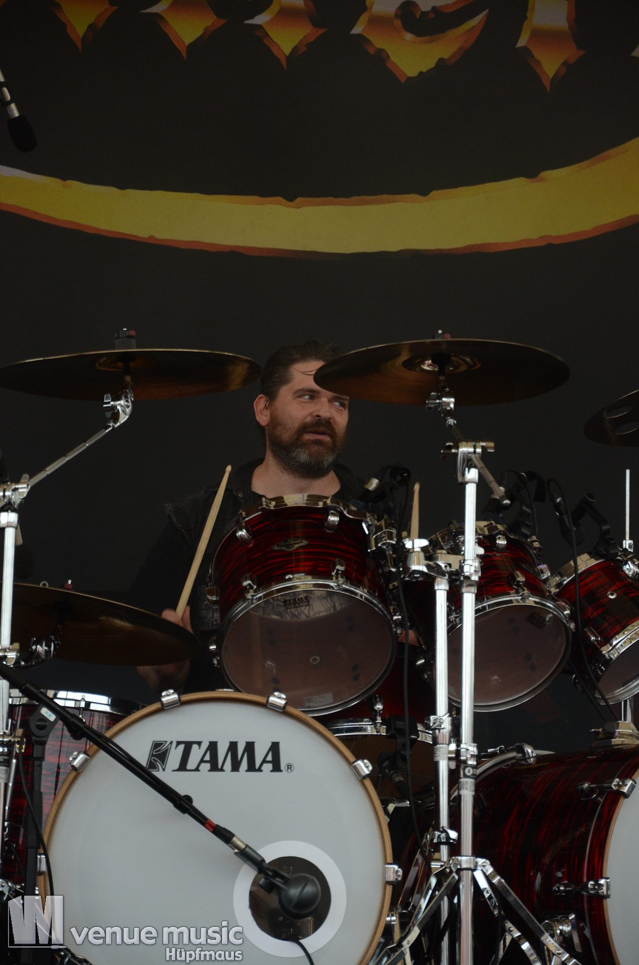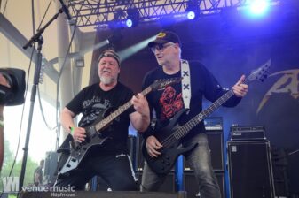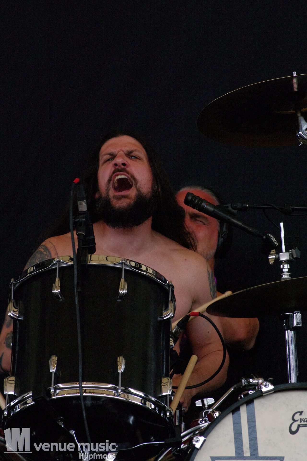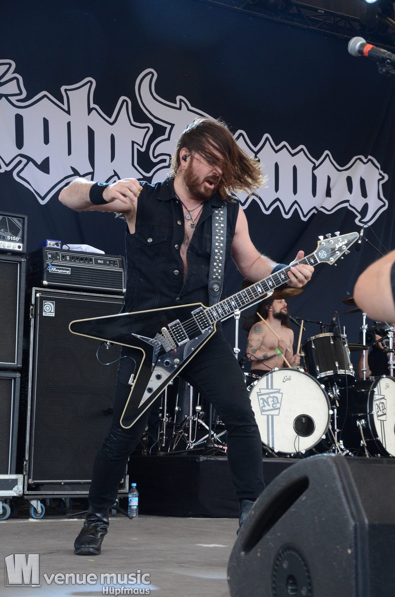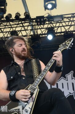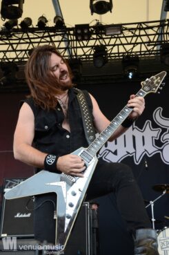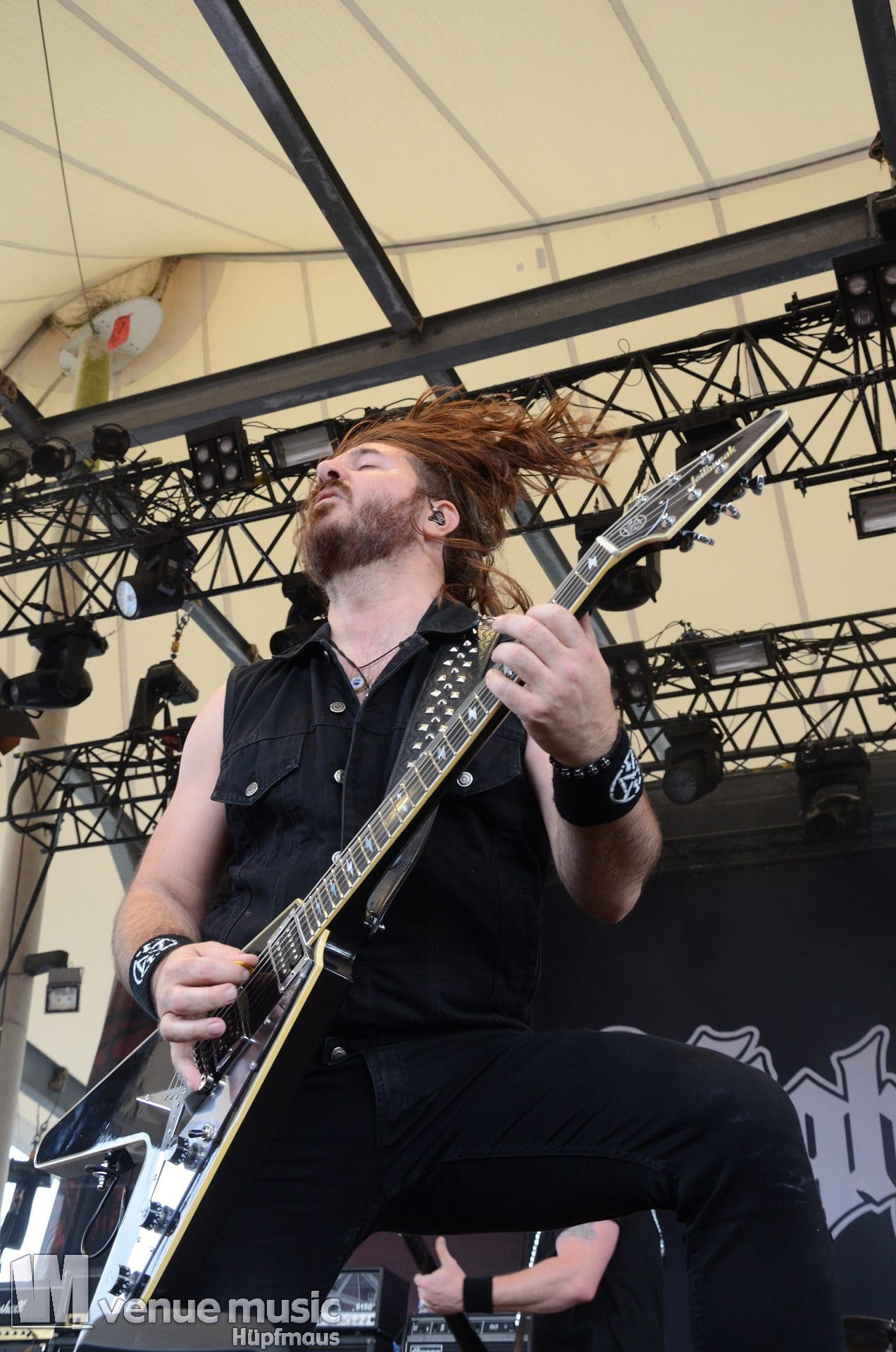 Auf Thrash folgte dann Old Scool Heavy Metal mit Night Demon, die das bereits aufgewärmte Publikum dann noch mal weiter anheizten. Und das mit Erfolg. Grade mal seit gut 10 Jahren gibt es die Band, die nicht nur diverse Songs ihrer bisherigen 3 Alben zum besten gaben, sondern auch noch das eine oder andere Cover einstreuten. Das Amphitheater brodelte, die Fans feierten die Band, die ebenfalls so richtig Spaß auf der Bühne hatte.