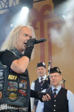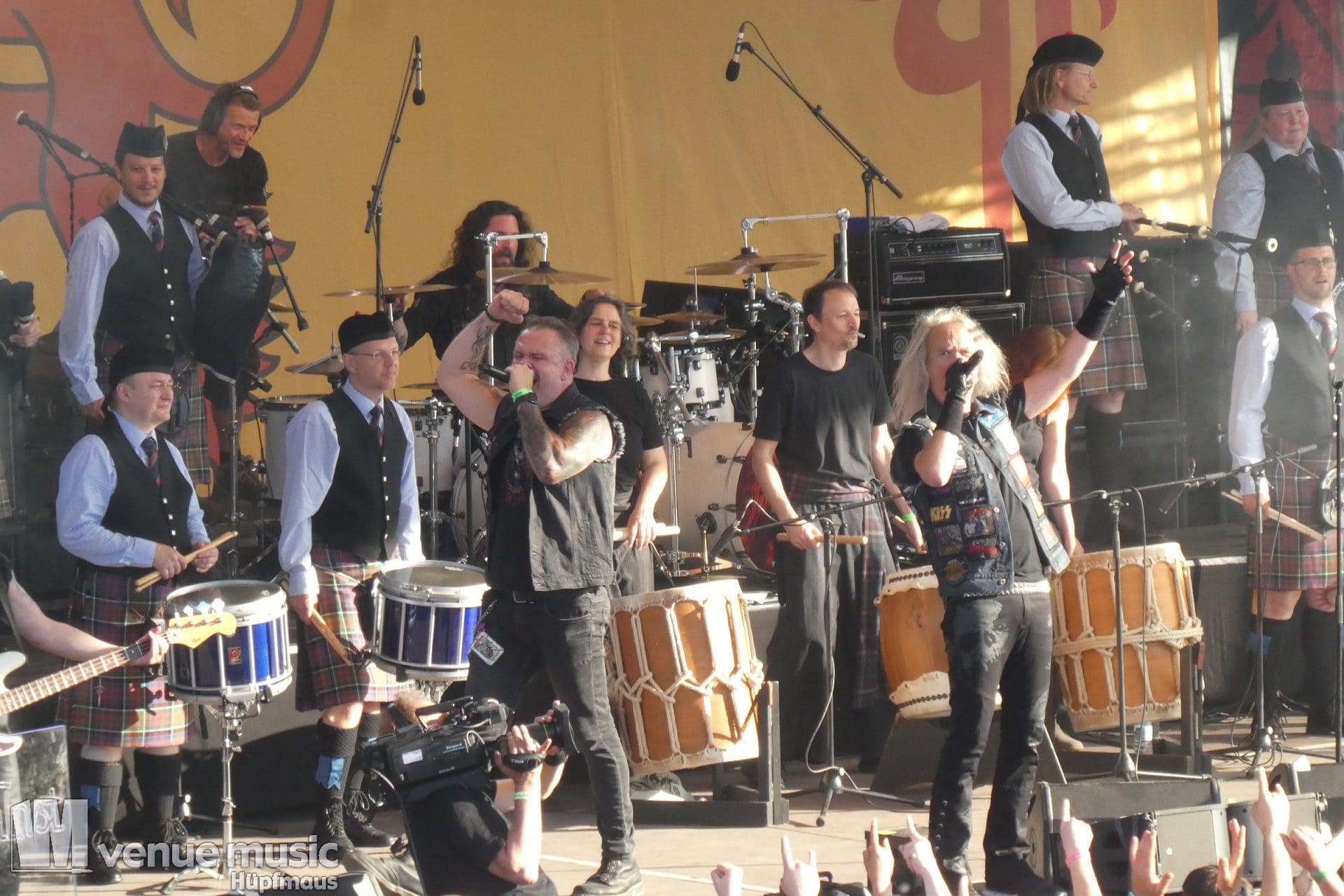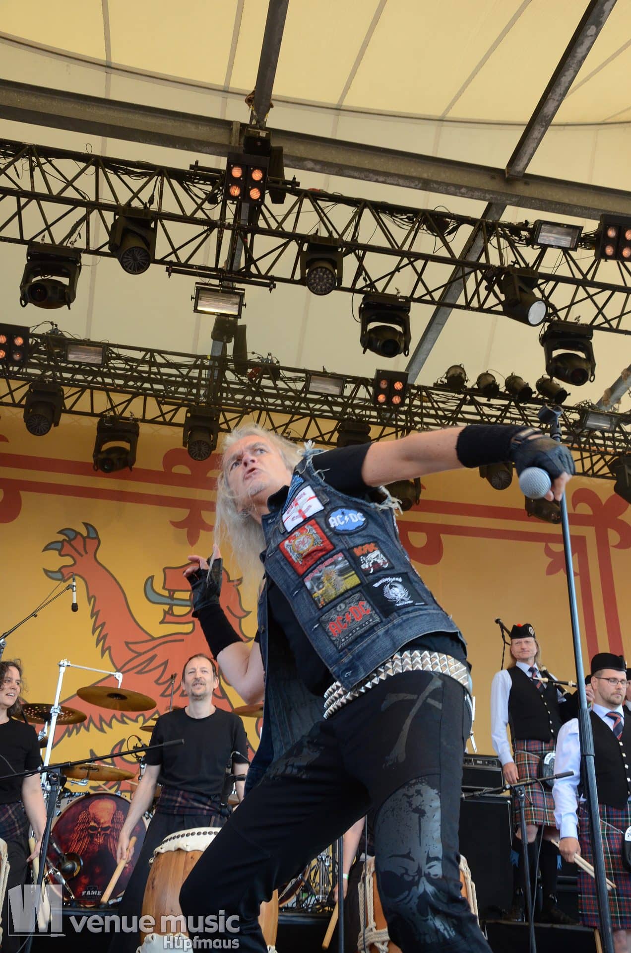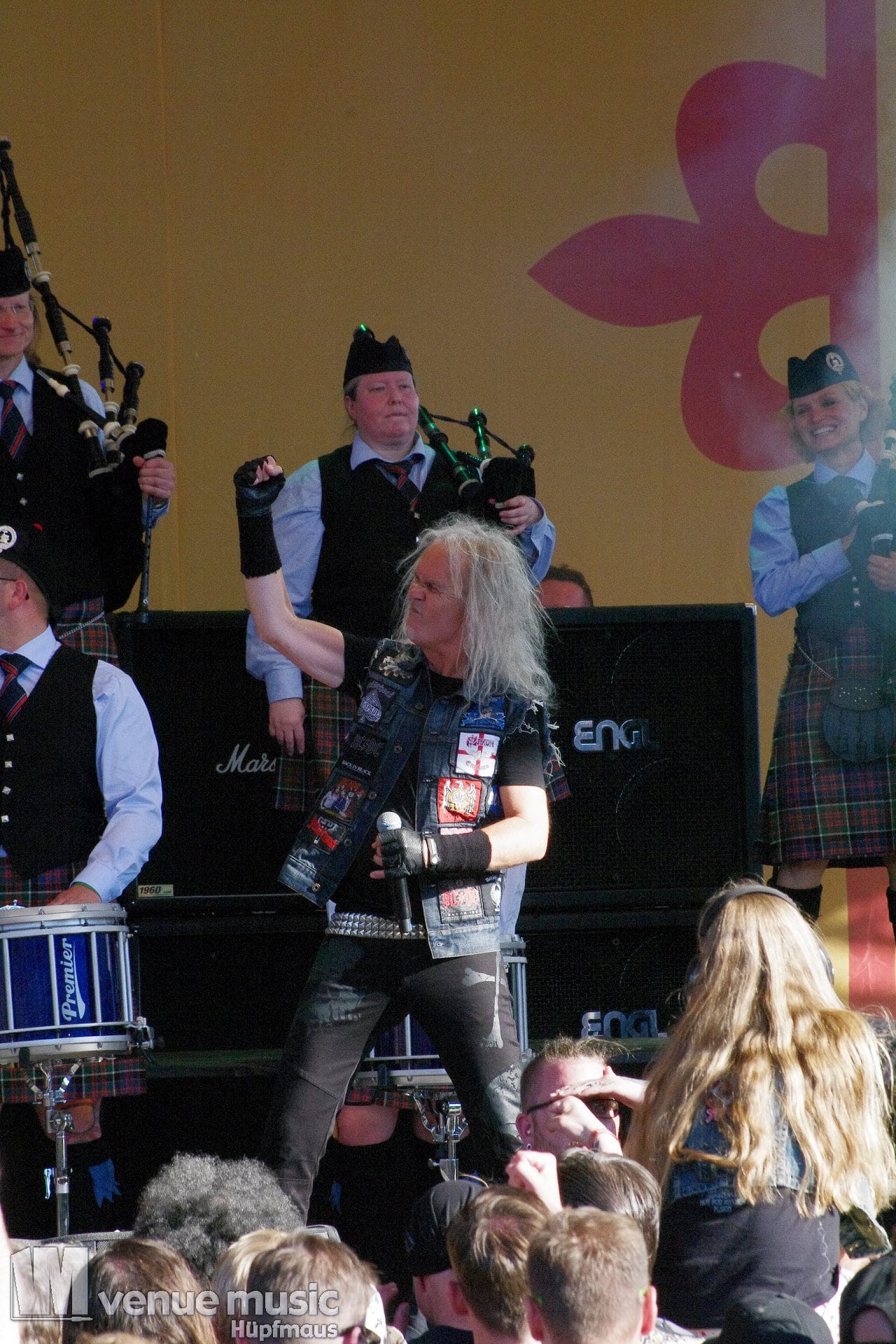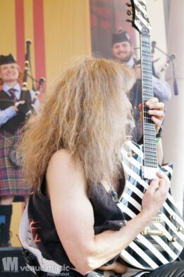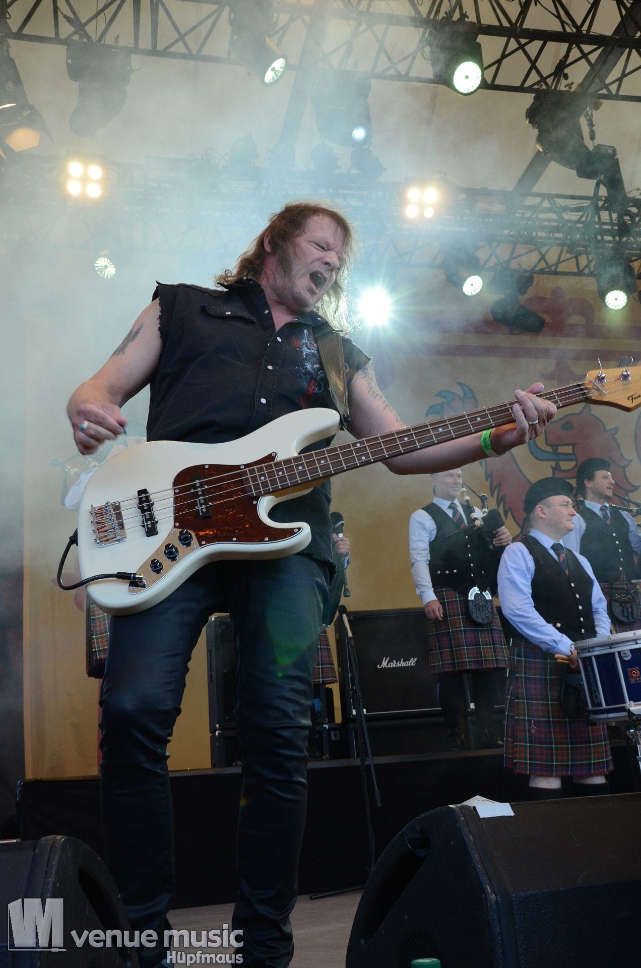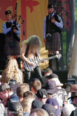 Bei Grave Digger wurde es voll auf der Bühne, hatten sie sich doch Unterstützung mit Baul Muluy Pipes & Drums mitgebracht. Für den Song „Rebellion“ ja quasi Pflicht, aber natürlich kamen die Musiker noch bei Titeln wie ‚The Clans Will Rise Again‘, ‚The Ballad Of Mary‘, ‚The Heart Of Scotland‘ oder ‚Highland Farewell‘ zum Zuge.