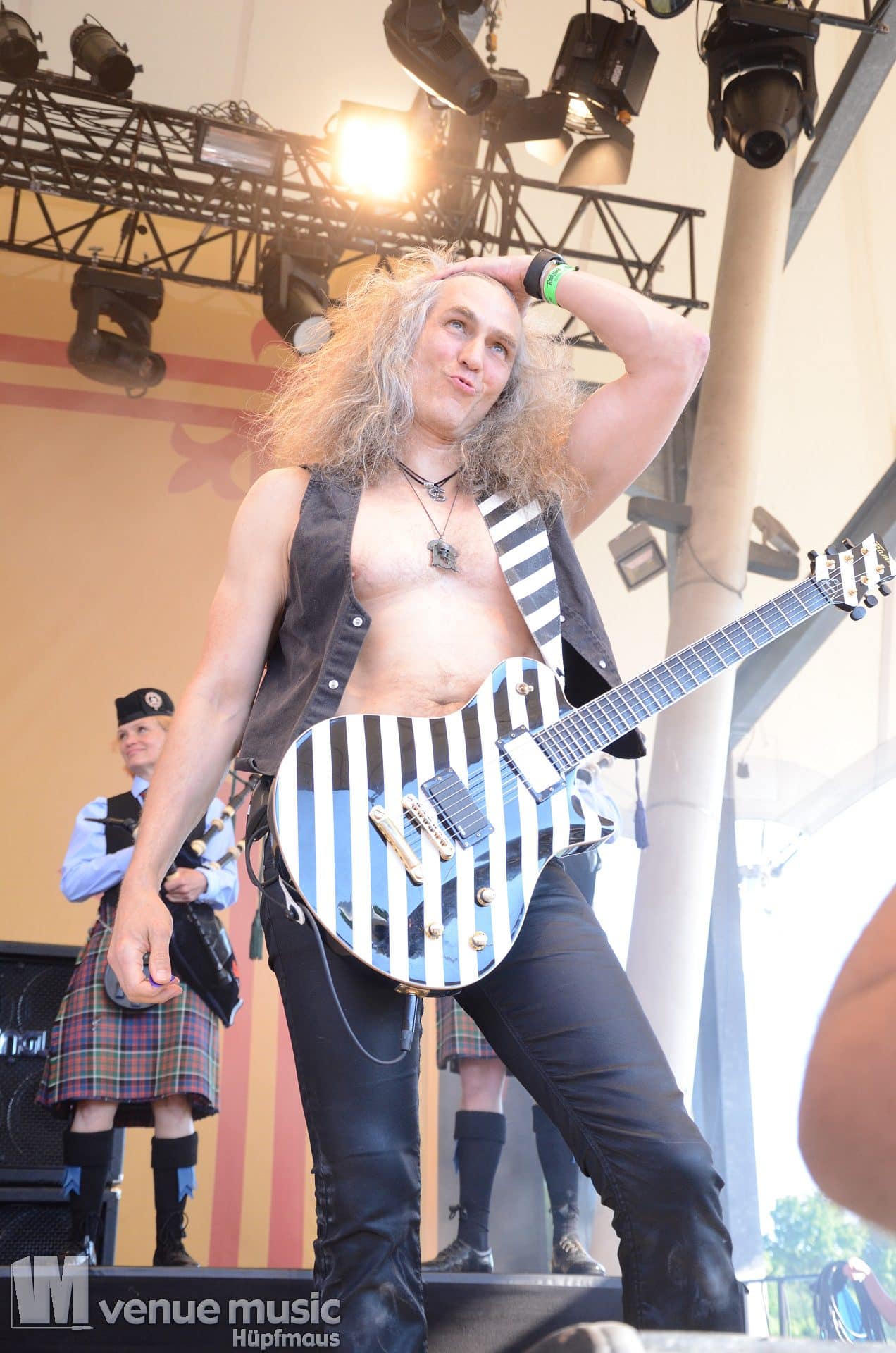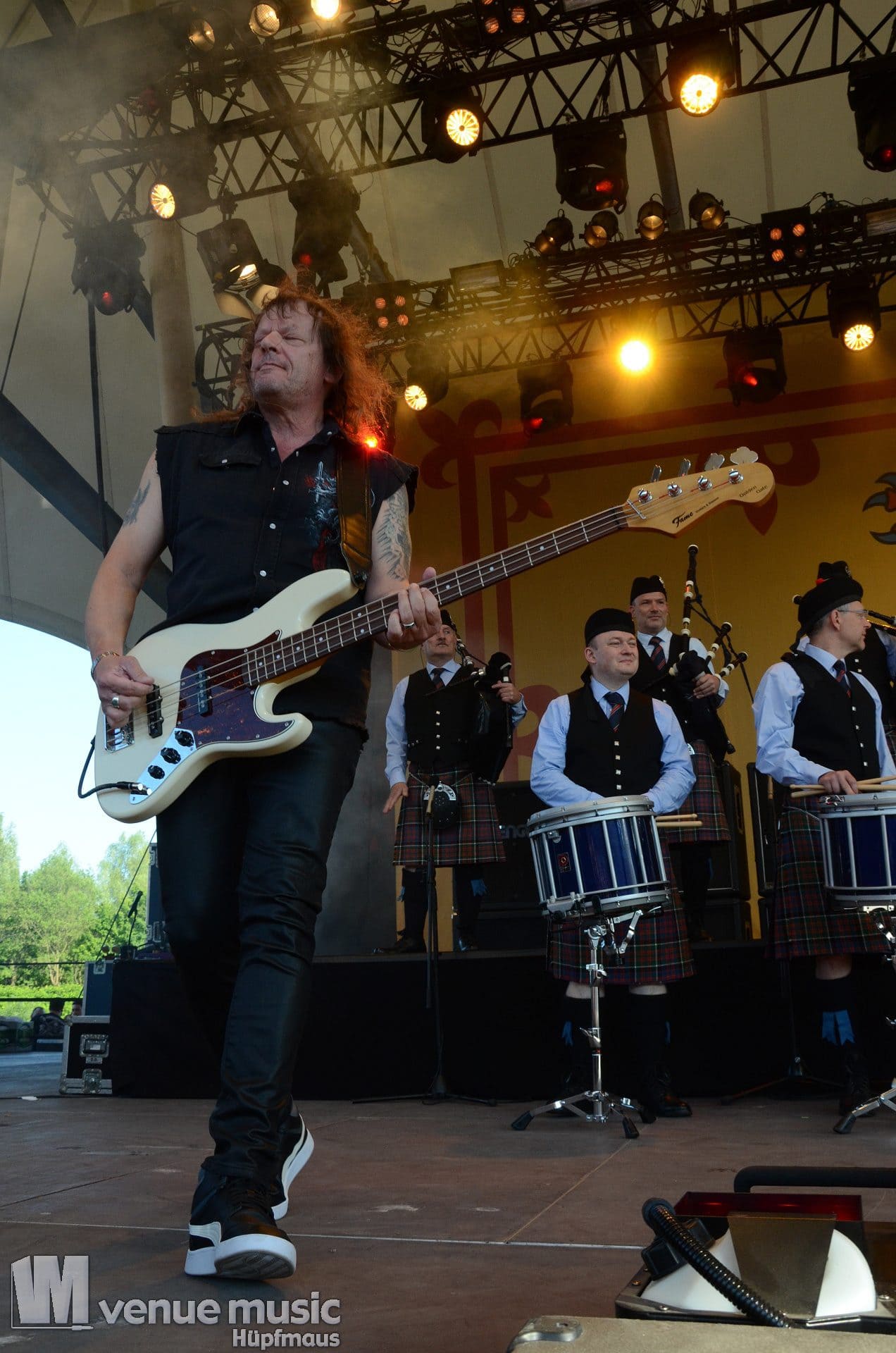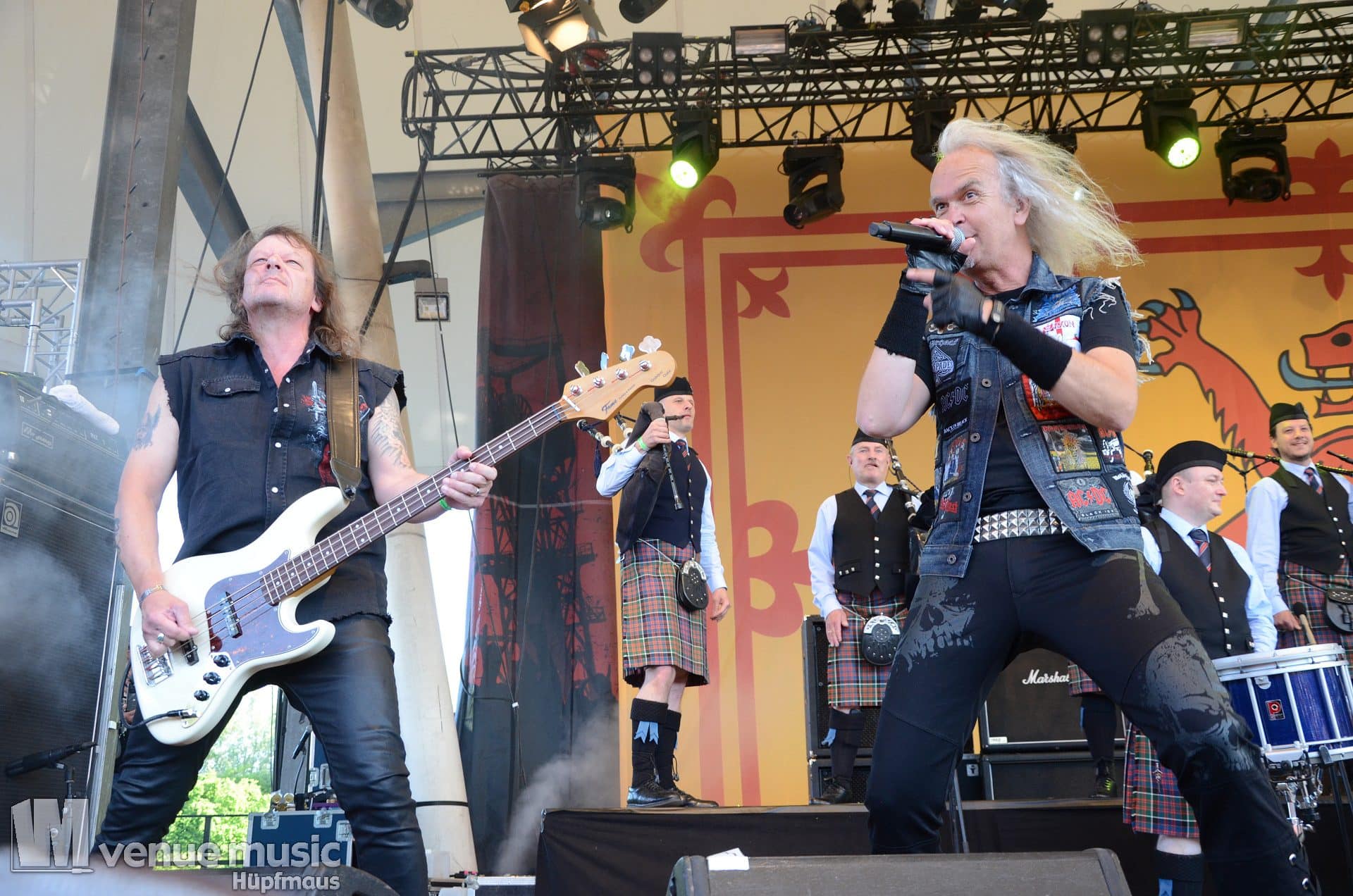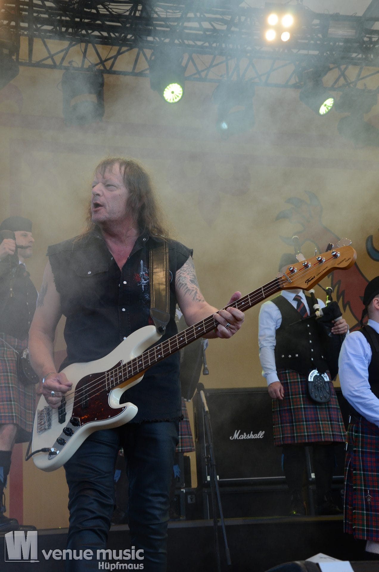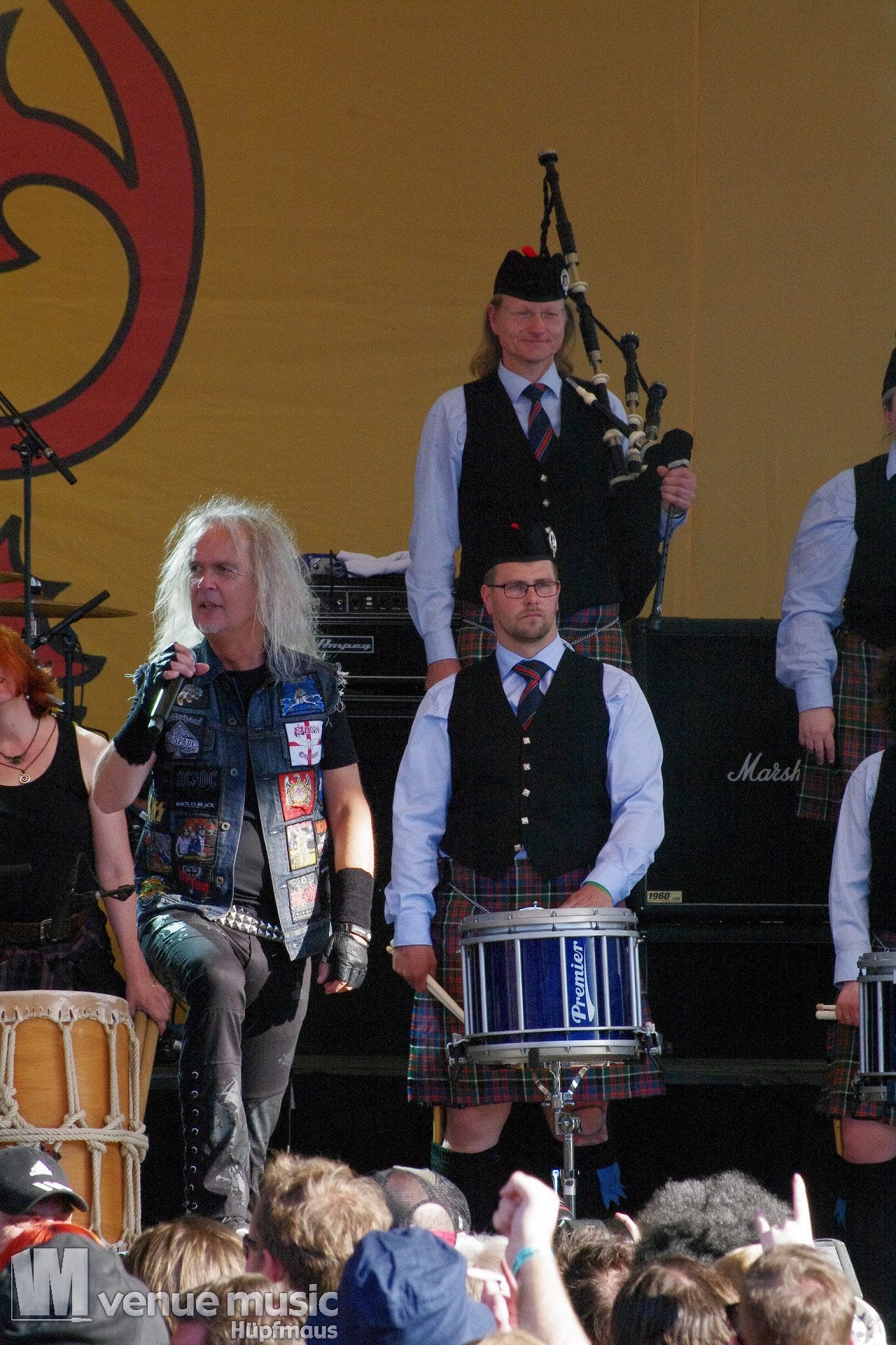 Bei Grave Digger wurde es voll auf der Bühne, hatten sie sich doch Unterstützung mit Baul Muluy Pipes & Drums mitgebracht. Für den Song „Rebellion“ ja quasi Pflicht, aber natürlich kamen die Musiker noch bei Titeln wie ‚The Clans Will Rise Again‘, ‚The Ballad Of Mary‘, ‚The Heart Of Scotland‘ oder ‚Highland Farewell‘ zum Zuge.