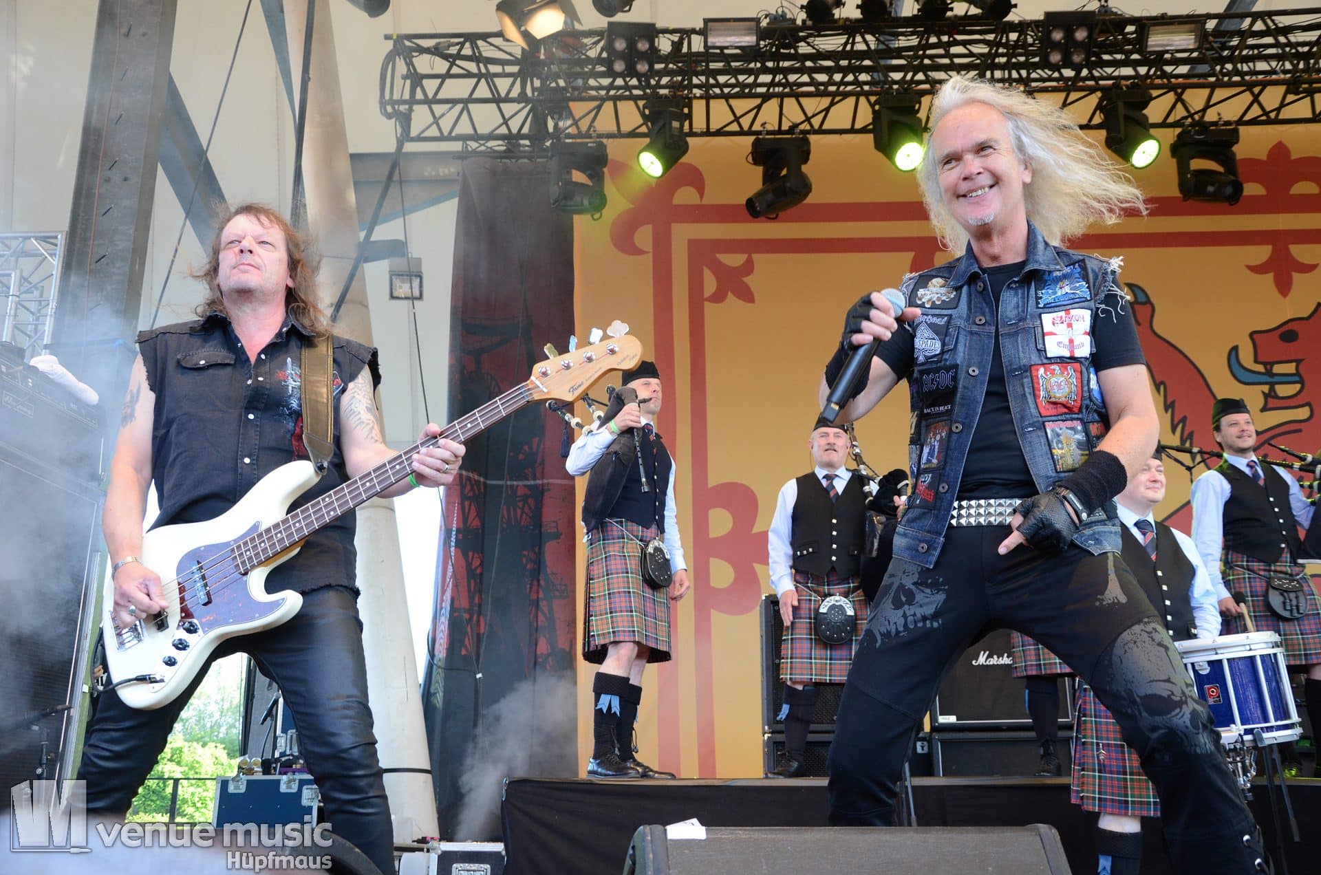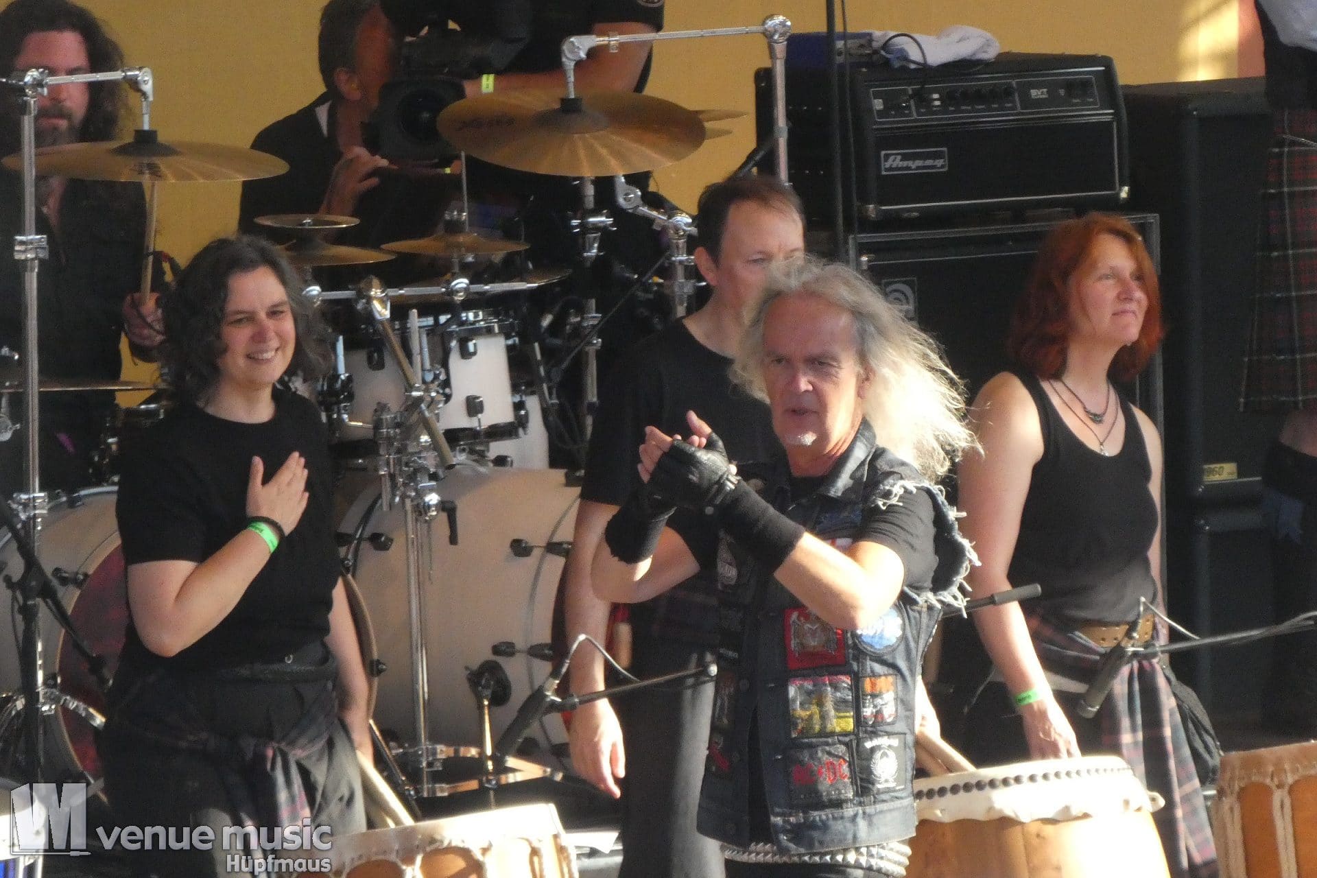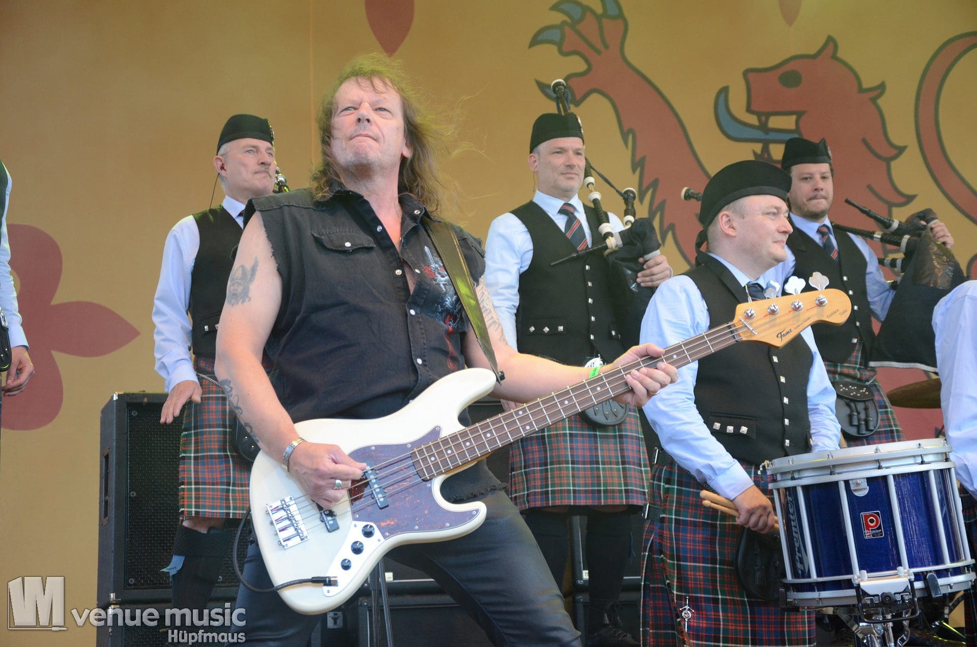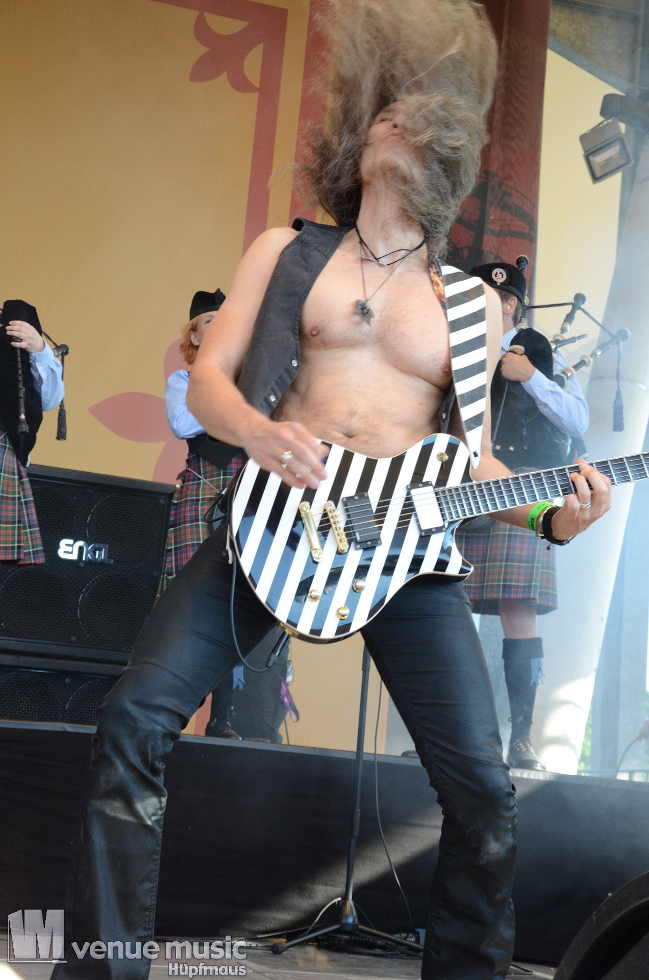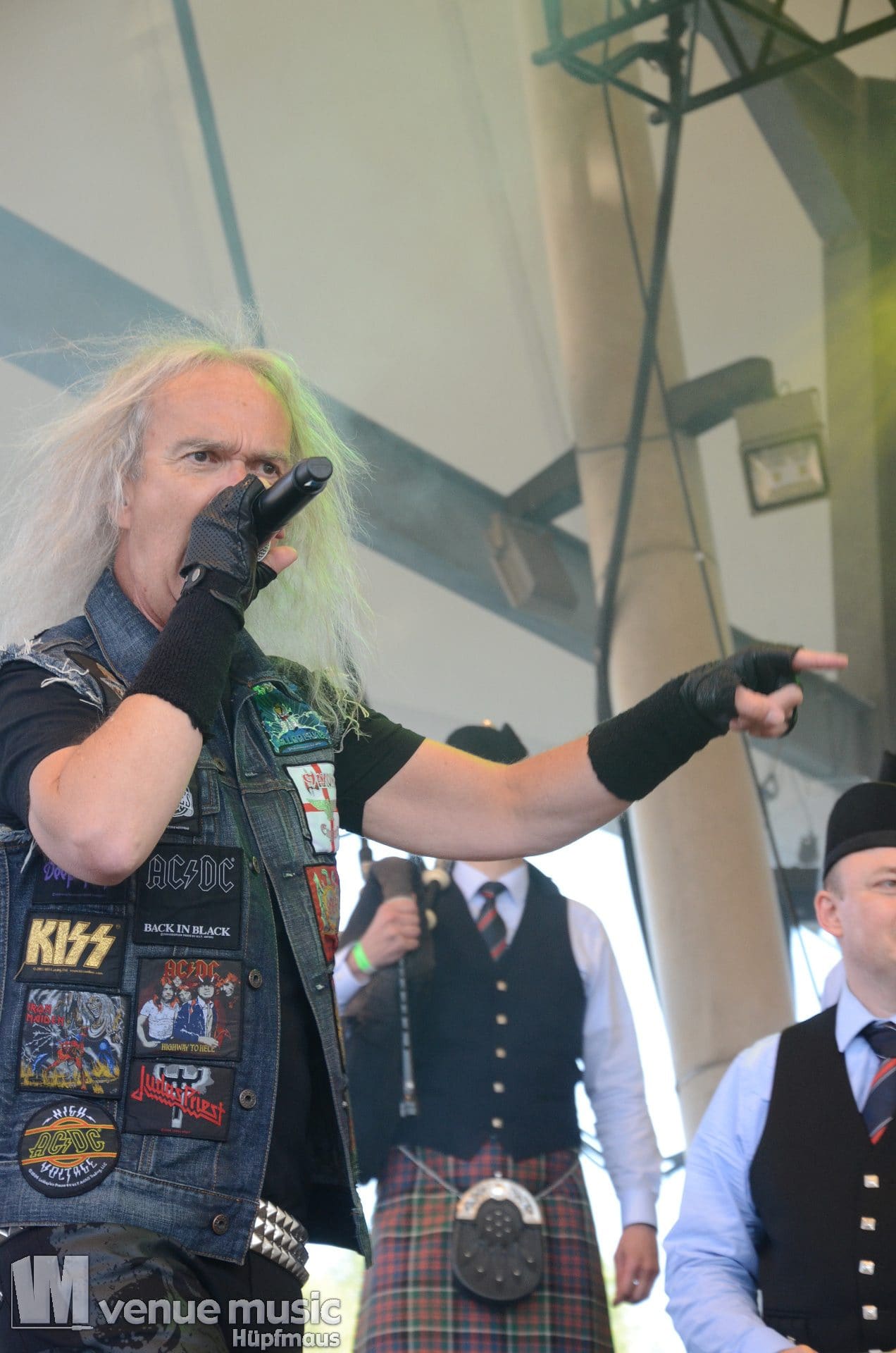 Bei Grave Digger wurde es voll auf der Bühne, hatten sie sich doch Unterstützung mit Baul Muluy Pipes & Drums mitgebracht. Für den Song „Rebellion“ ja quasi Pflicht, aber natürlich kamen die Musiker noch bei Titeln wie ‚The Clans Will Rise Again‘, ‚The Ballad Of Mary‘, ‚The Heart Of Scotland‘ oder ‚Highland Farewell‘ zum Zuge.