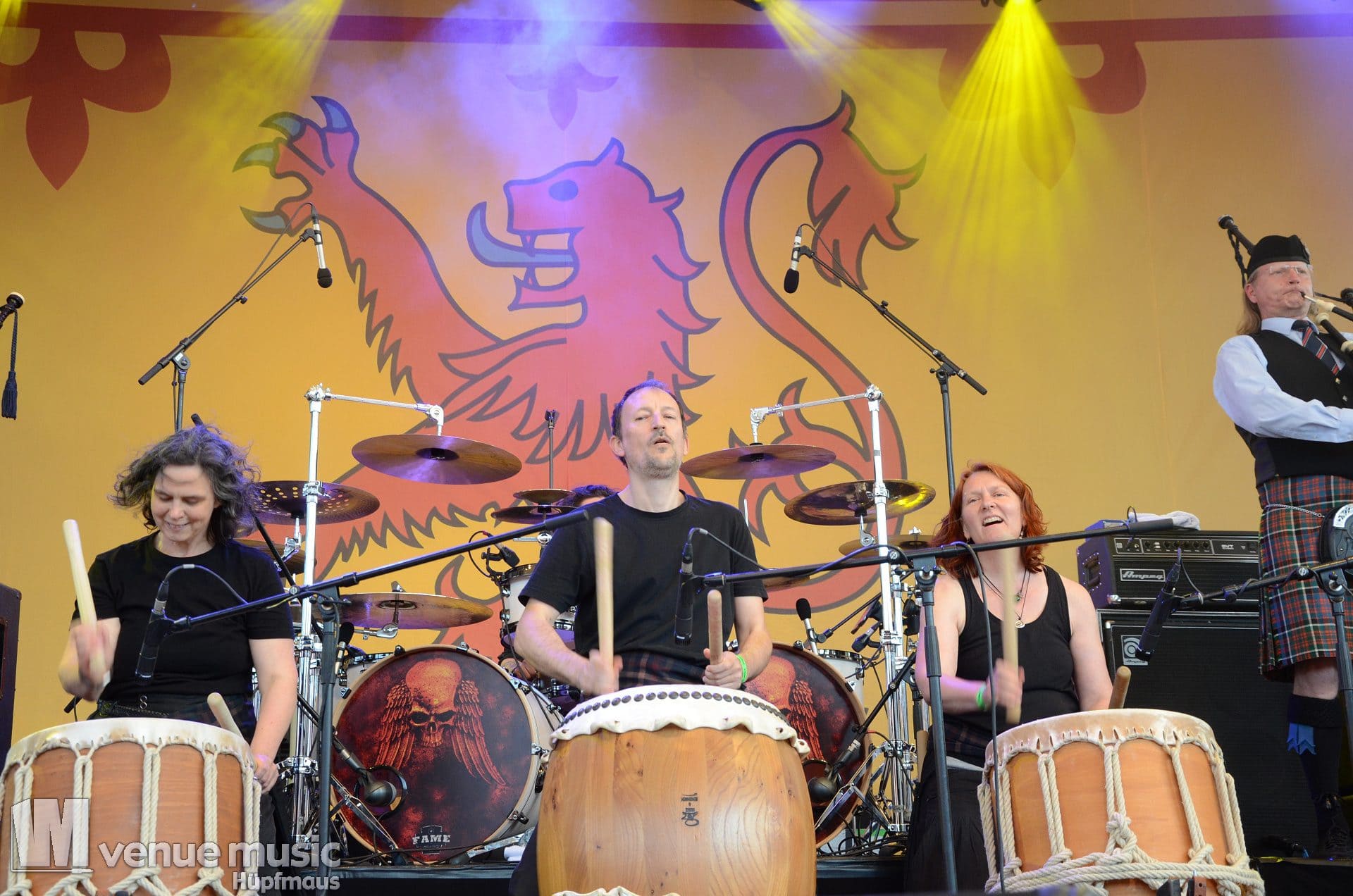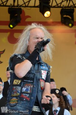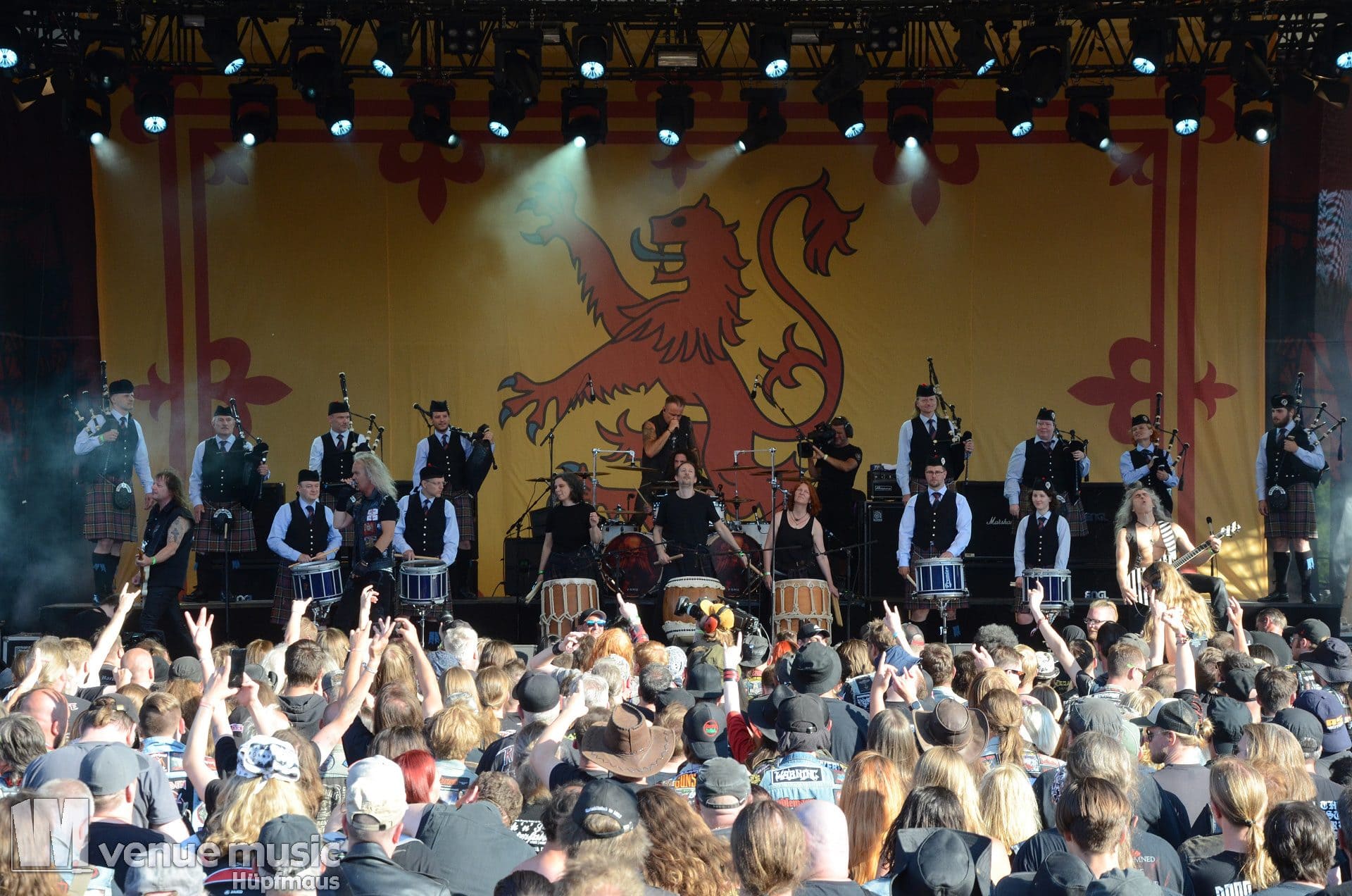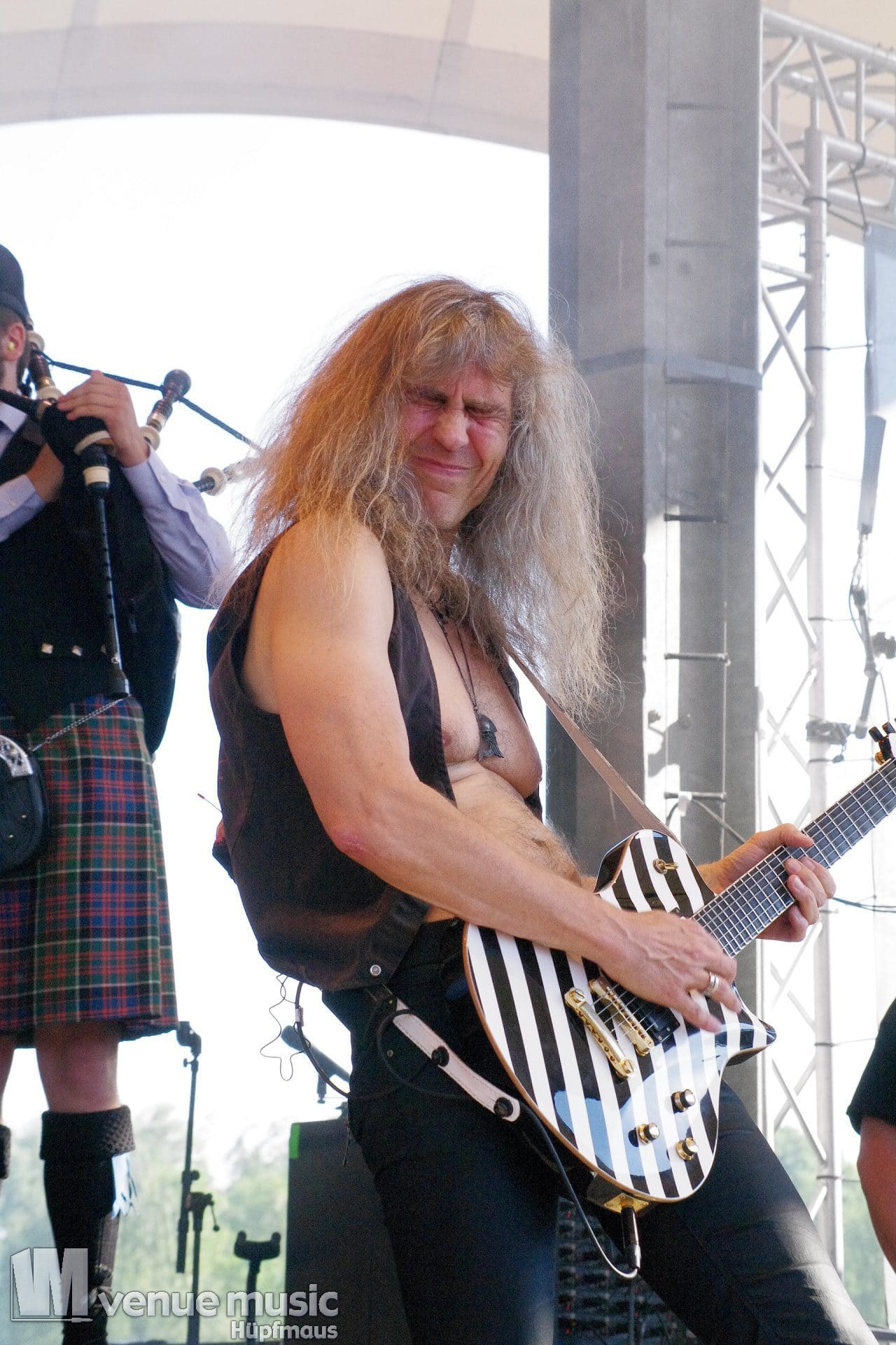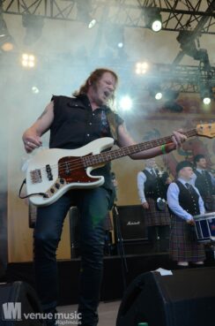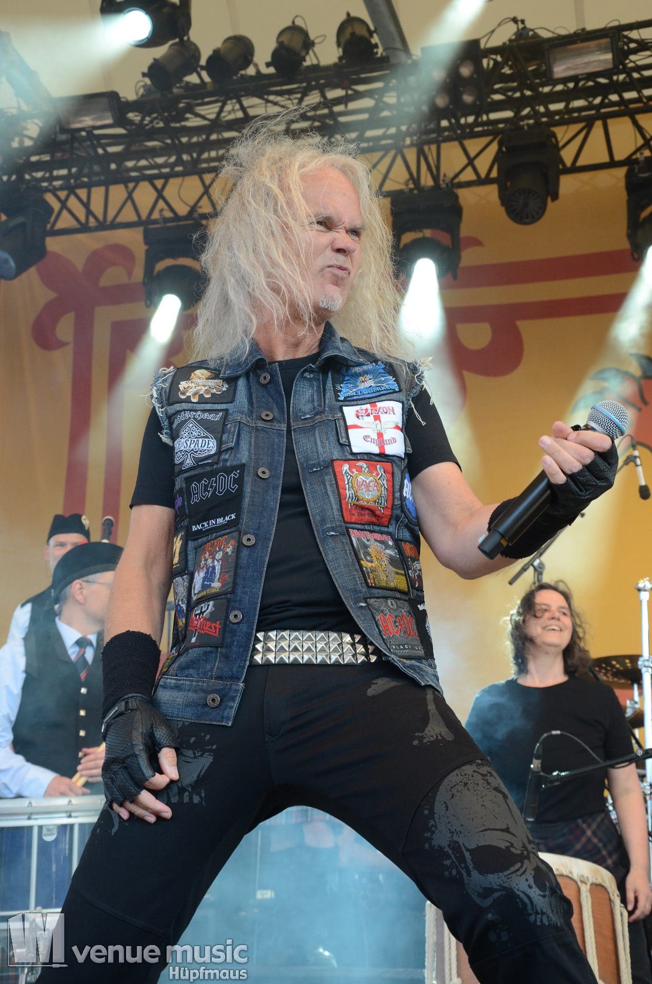 Bei Grave Digger wurde es voll auf der Bühne, hatten sie sich doch Unterstützung mit Baul Muluy Pipes & Drums mitgebracht. Für den Song „Rebellion“ ja quasi Pflicht, aber natürlich kamen die Musiker noch bei Titeln wie ‚The Clans Will Rise Again‘, ‚The Ballad Of Mary‘, ‚The Heart Of Scotland‘ oder ‚Highland Farewell‘ zum Zuge.