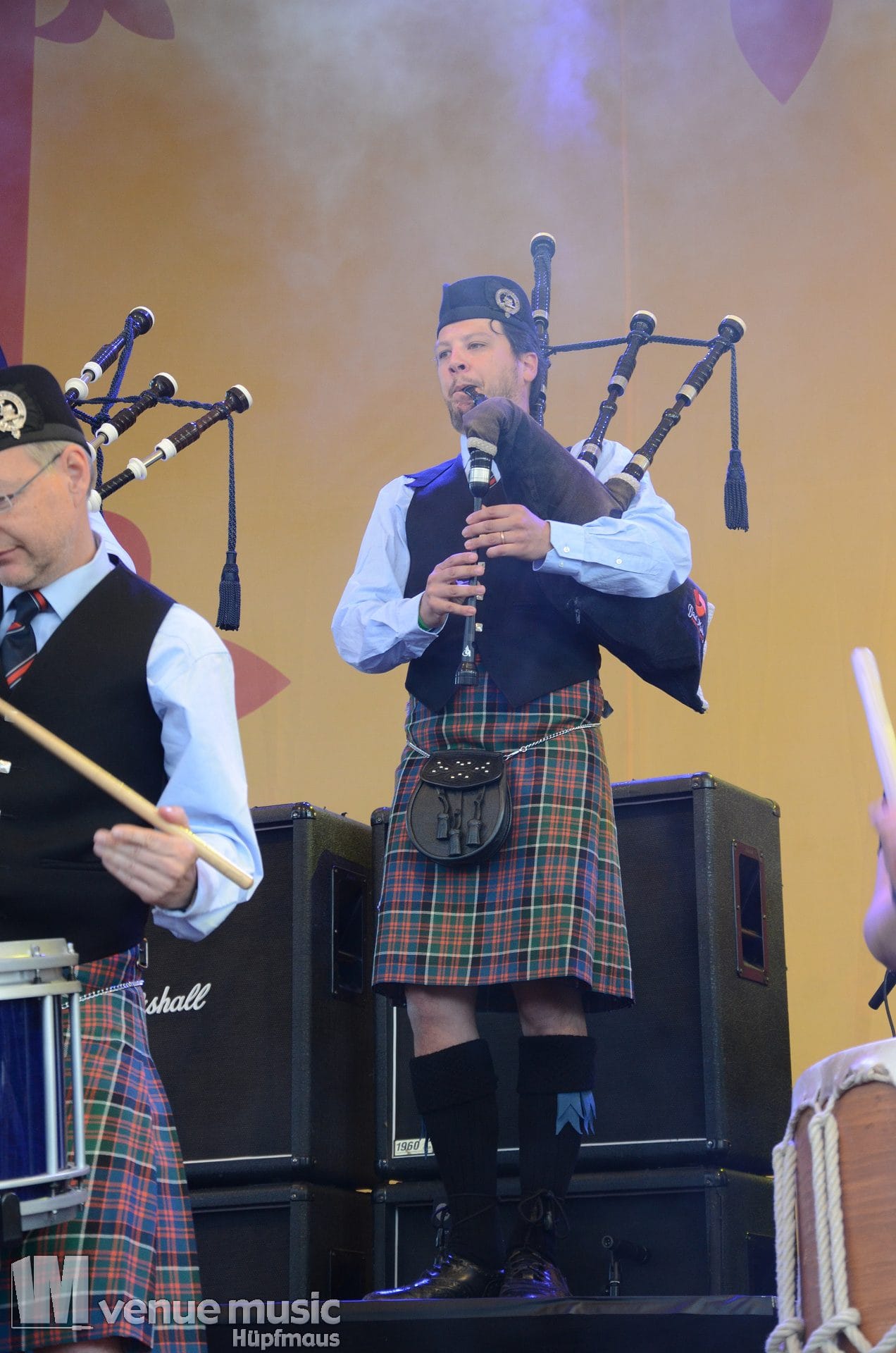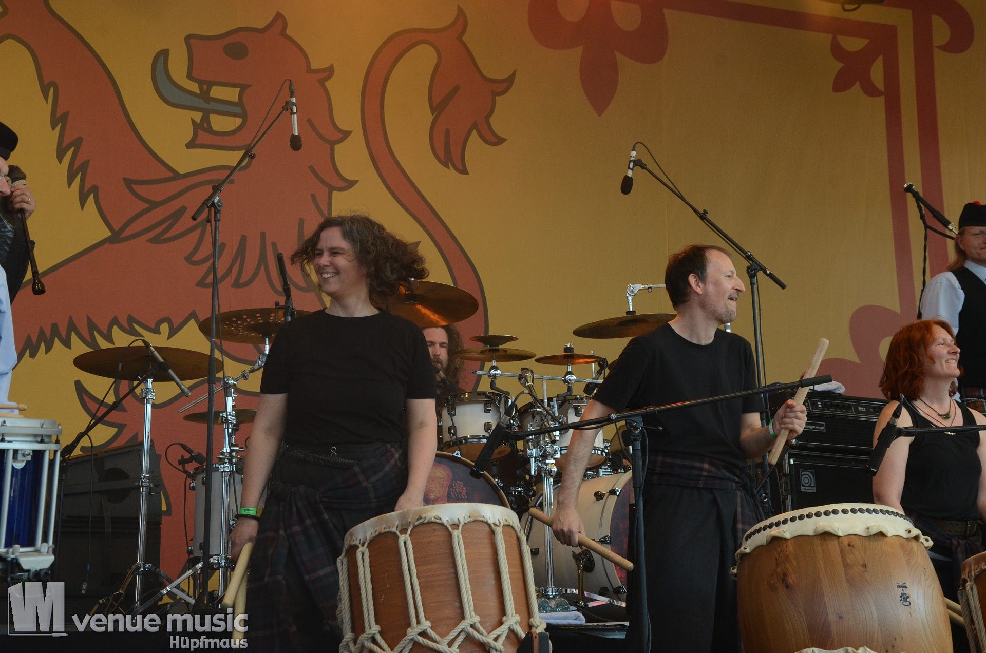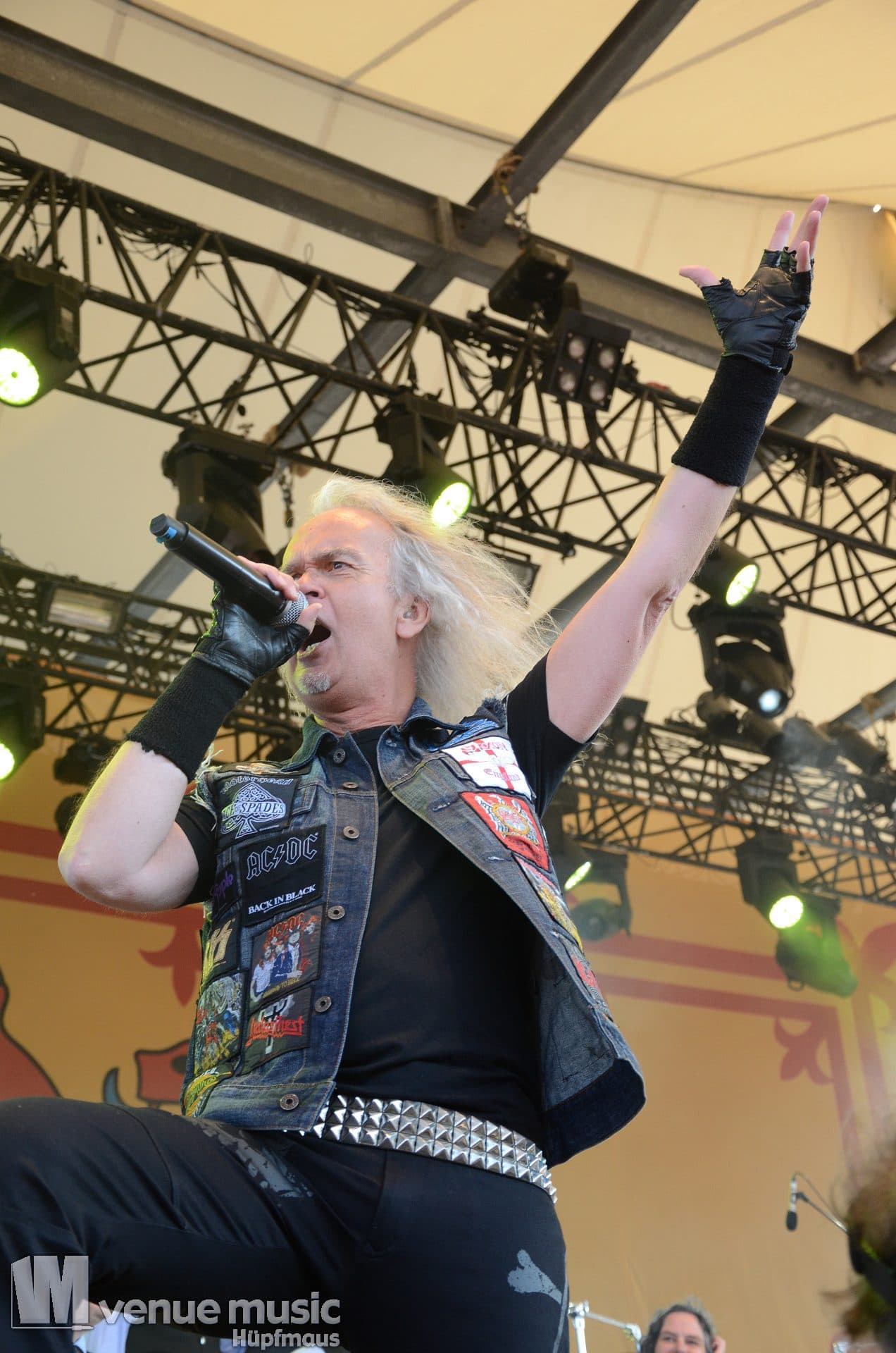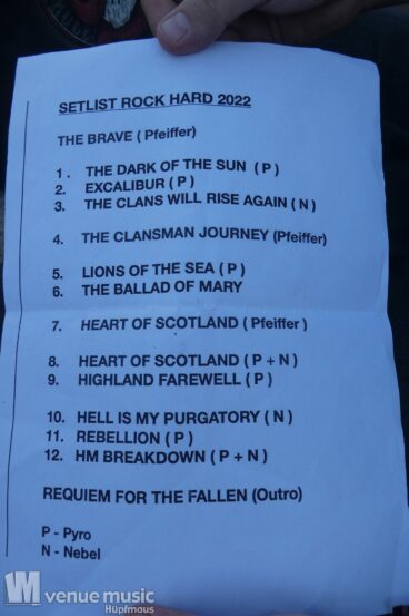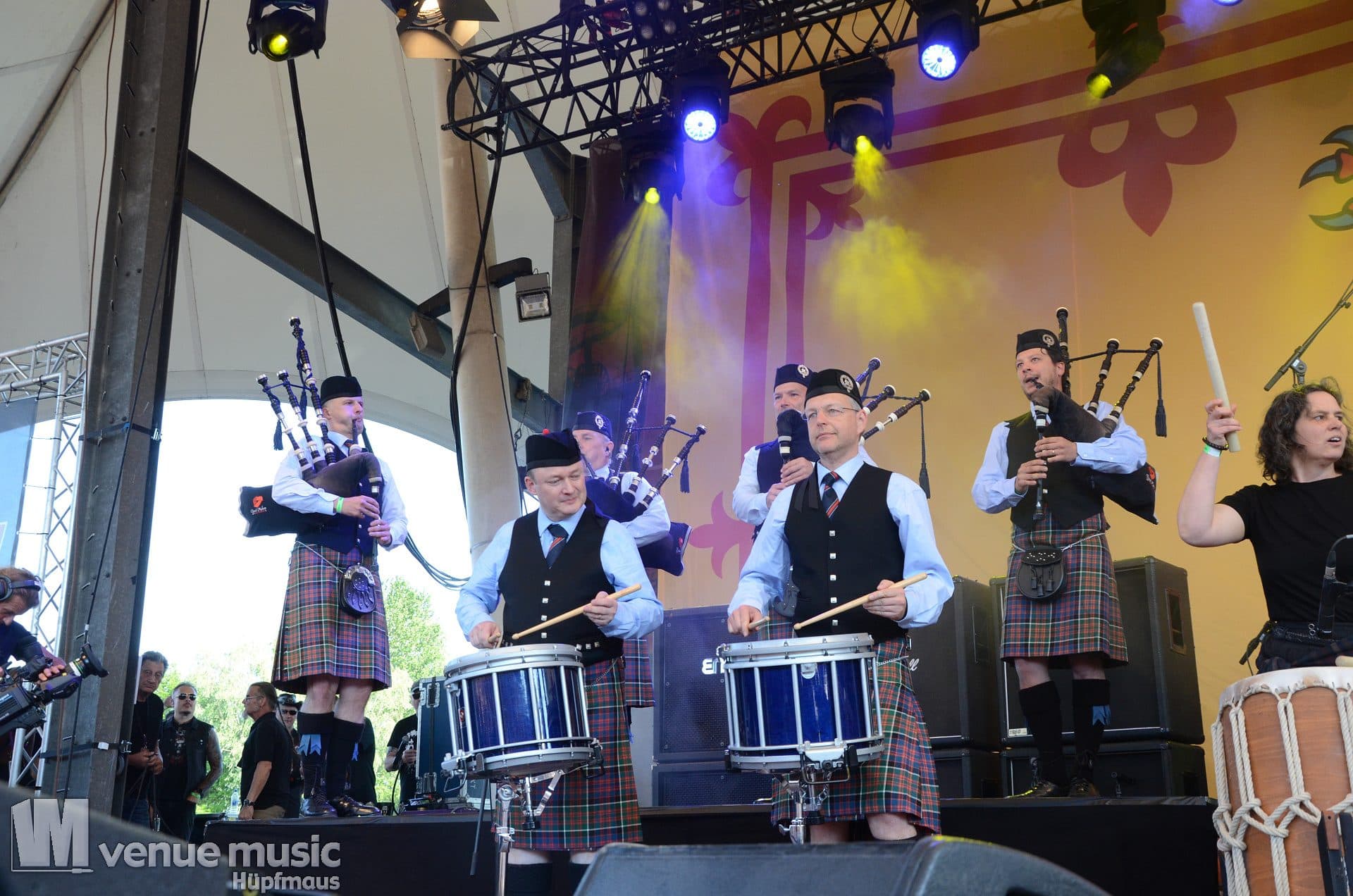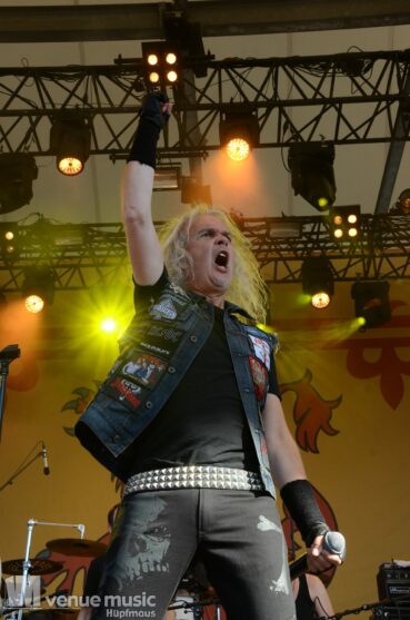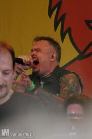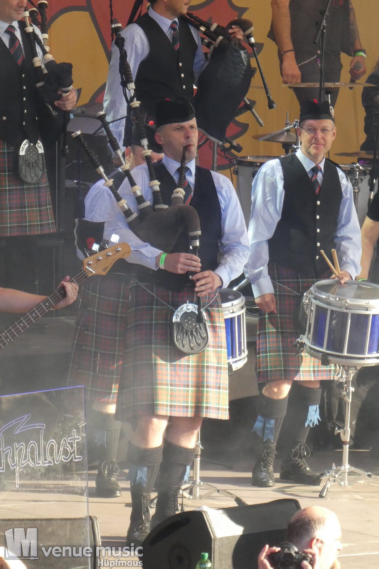Bei Grave Digger wurde es voll auf der Bühne, hatten sie sich doch Unterstützung mit Baul Muluy Pipes & Drums mitgebracht. Für den Song „Rebellion“ ja quasi Pflicht, aber natürlich kamen die Musiker noch bei Titeln wie ‚The Clans Will Rise Again‘, ‚The Ballad Of Mary‘, ‚The Heart Of Scotland‘ oder ‚Highland Farewell‘ zum Zuge.