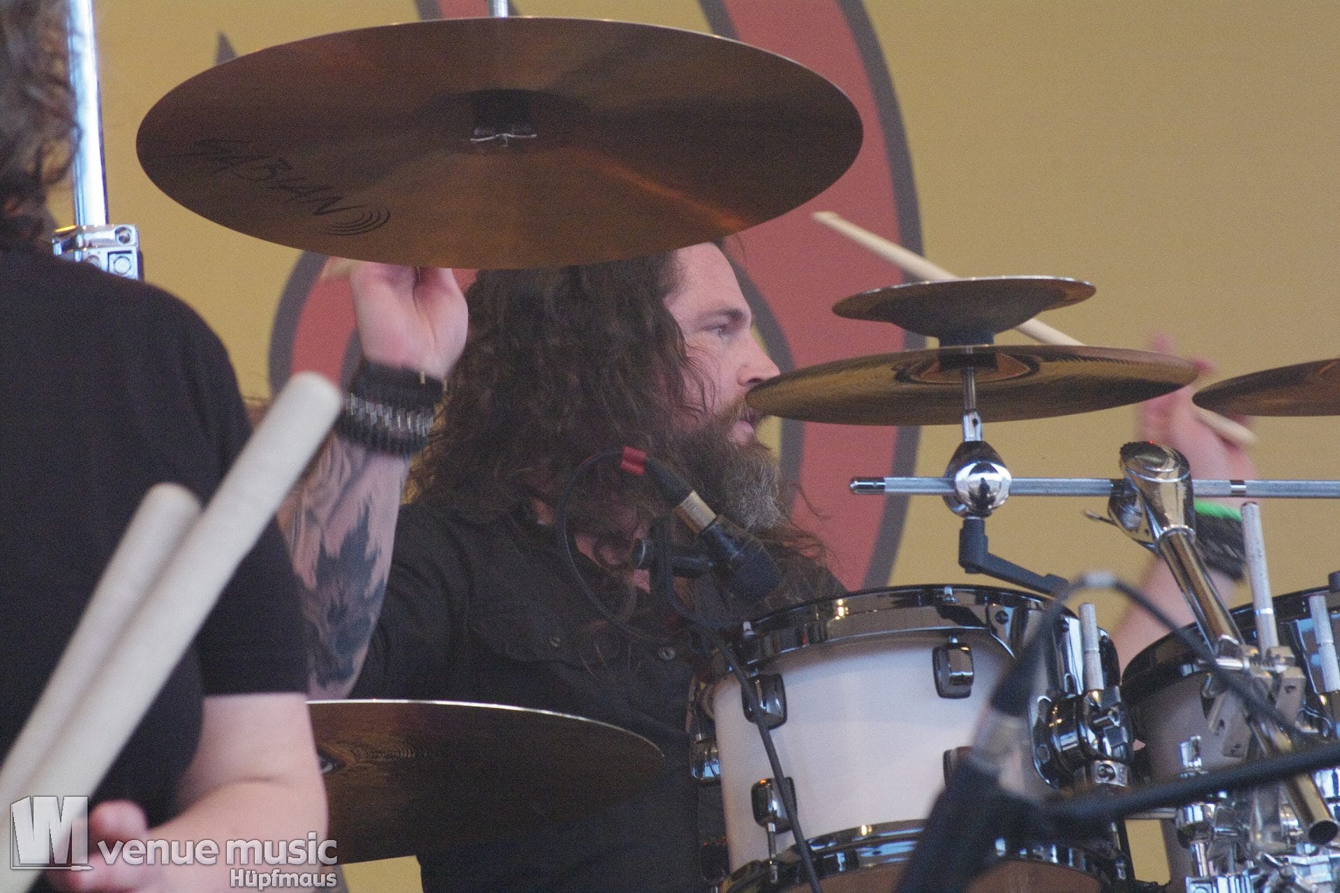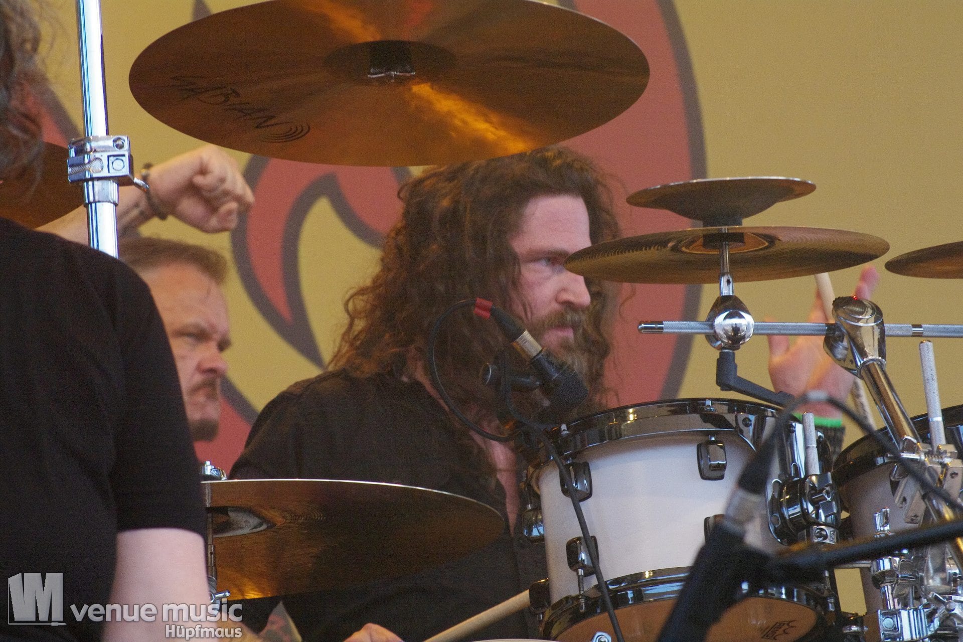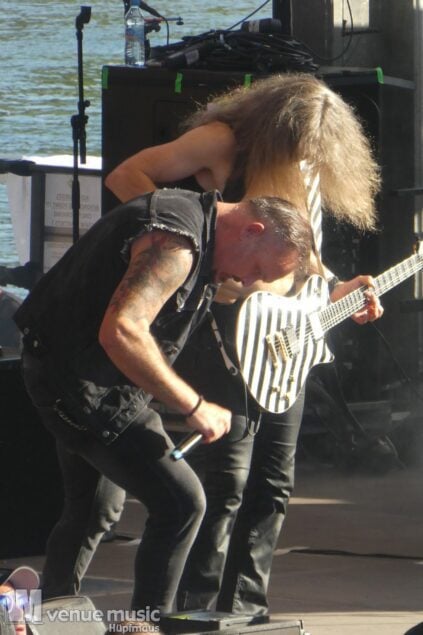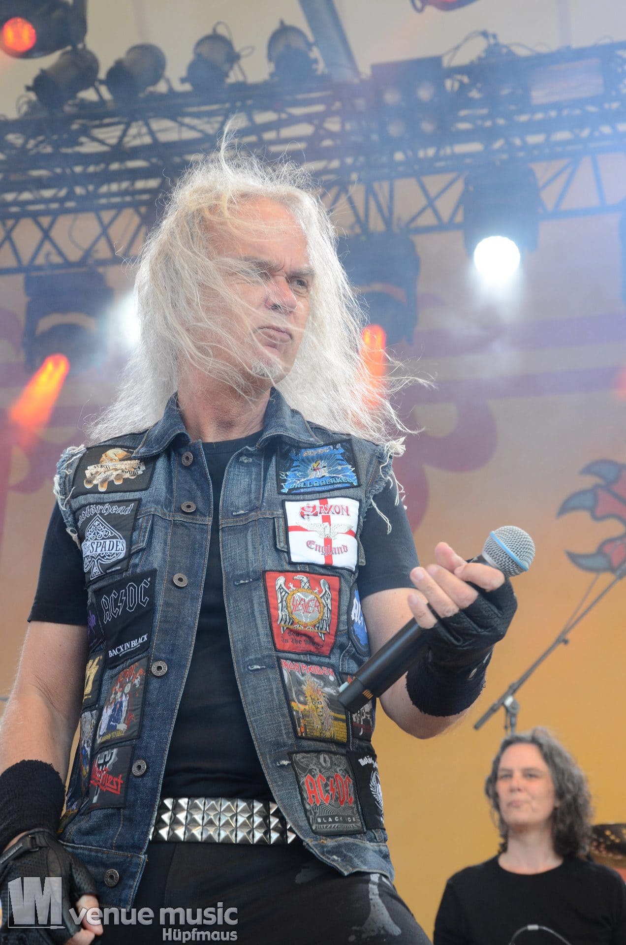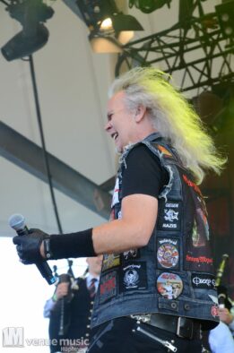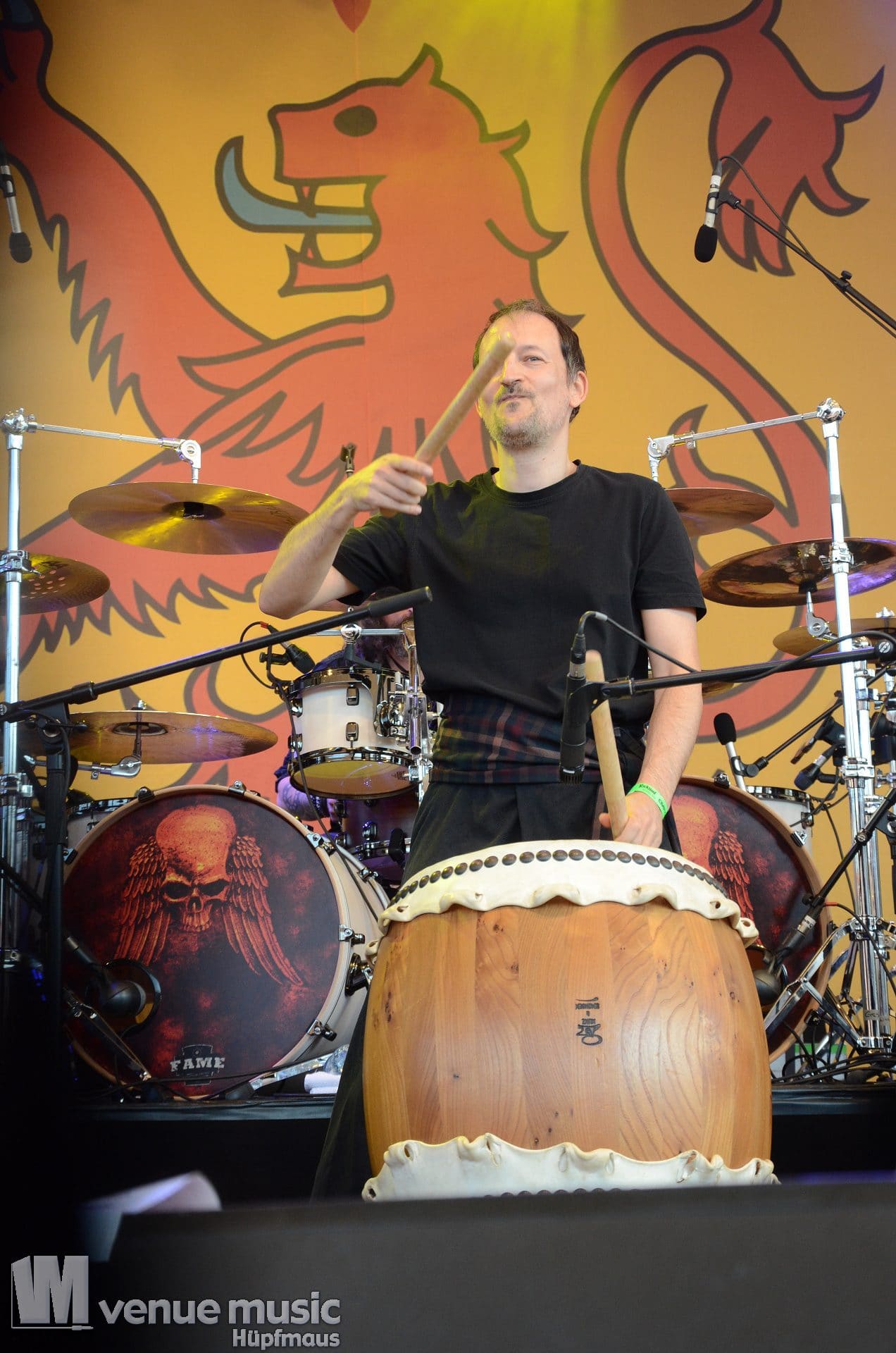 Bei Grave Digger wurde es voll auf der Bühne, hatten sie sich doch Unterstützung mit Baul Muluy Pipes & Drums mitgebracht. Für den Song „Rebellion“ ja quasi Pflicht, aber natürlich kamen die Musiker noch bei Titeln wie ‚The Clans Will Rise Again‘, ‚The Ballad Of Mary‘, ‚The Heart Of Scotland‘ oder ‚Highland Farewell‘ zum Zuge.