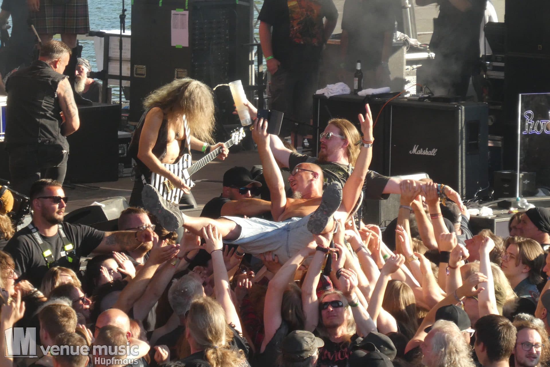 Die Band rockte die 60 Minuten so richtig. Vor allem Chris Boltendahl flitzte auf der Bühne rum und strahlte über das ganze Gesicht. Live Konzerte sind halt nicht nur für die Fans, sondern auch für die Bands einfach immer wieder genial und konnten in den letzten Jahren viel zu wenig stattfinden. Doch hier konnte endlich wieder richtig gefeirt werden – und das genossen alle in vollen Zügen. Und voll war es vor der Bühne auf jeden Fall!