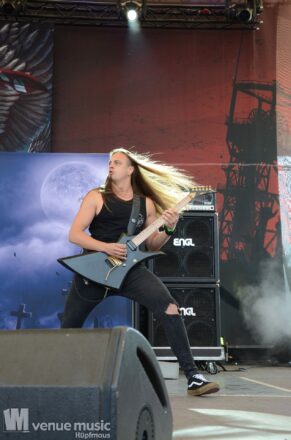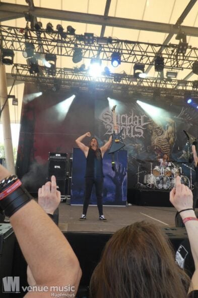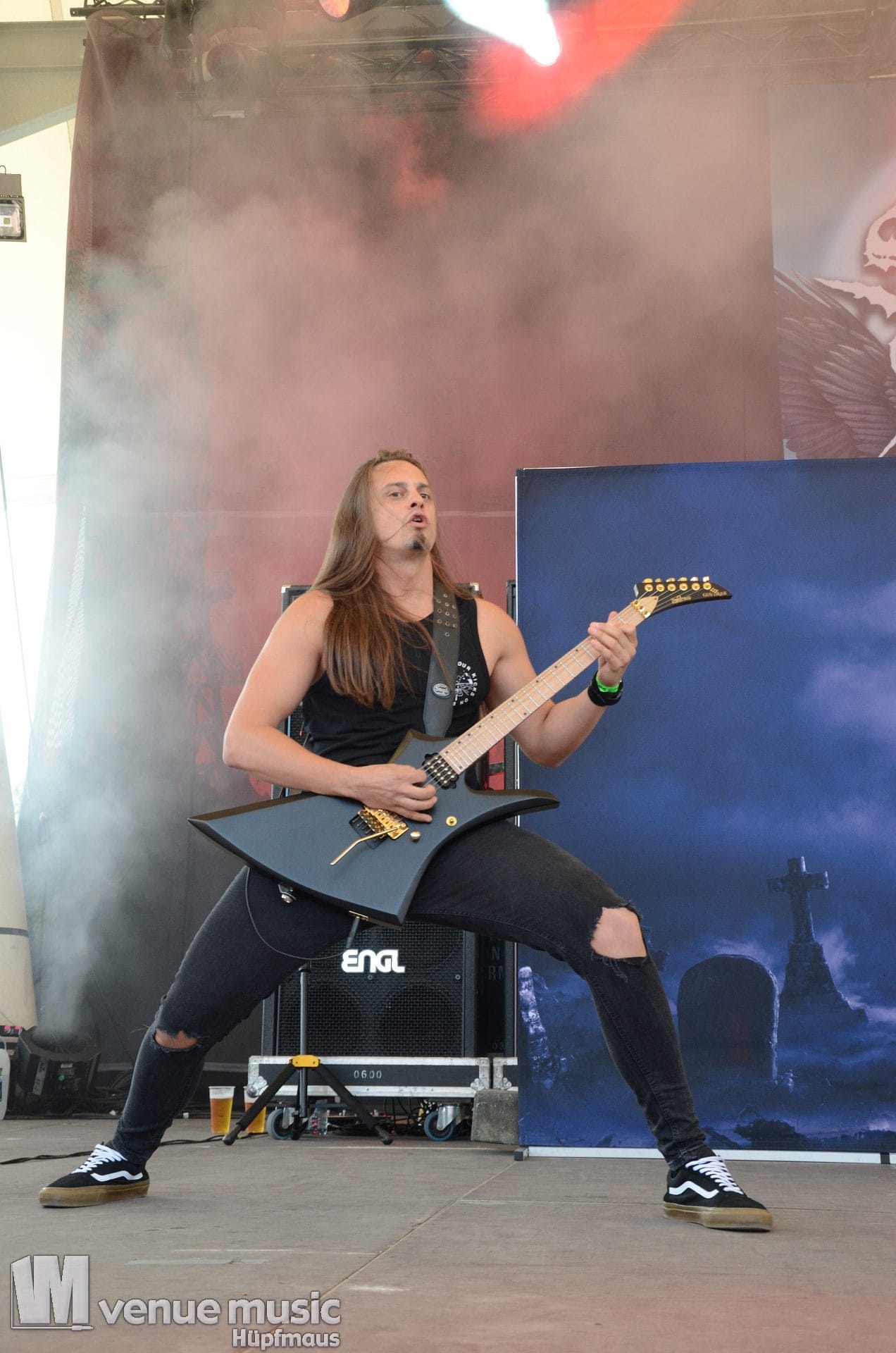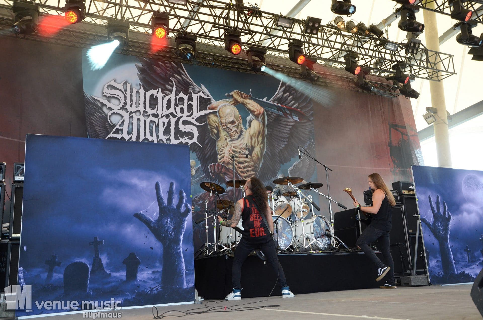 Leider waren die Suicidal Angels am zweiten Festivaltag schon total früh an der Reihe – und damit ihr Set gefühlt viel viel zu kurz. Aber so ist das leider, wenn der Terminplan so eng getaktet ist.