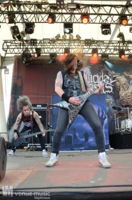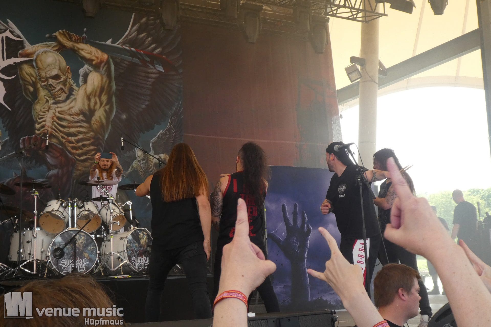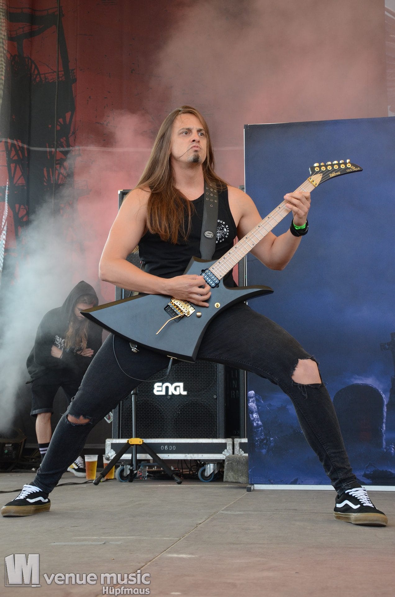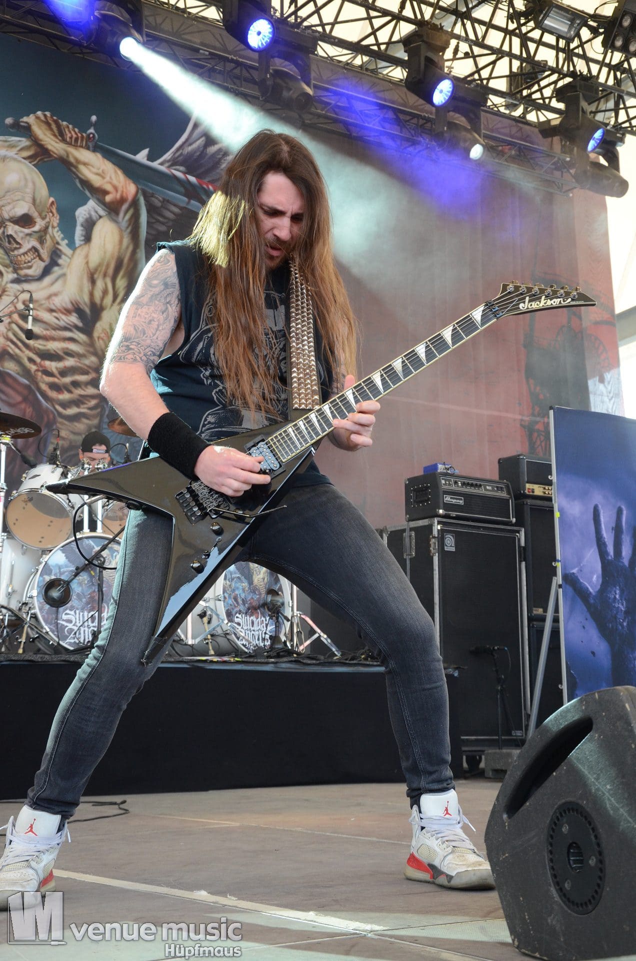 Leider waren die Suicidal Angels am zweiten Festivaltag schon total früh an der Reihe – und damit ihr Set gefühlt viel viel zu kurz. Aber so ist das leider, wenn der Terminplan so eng getaktet ist.